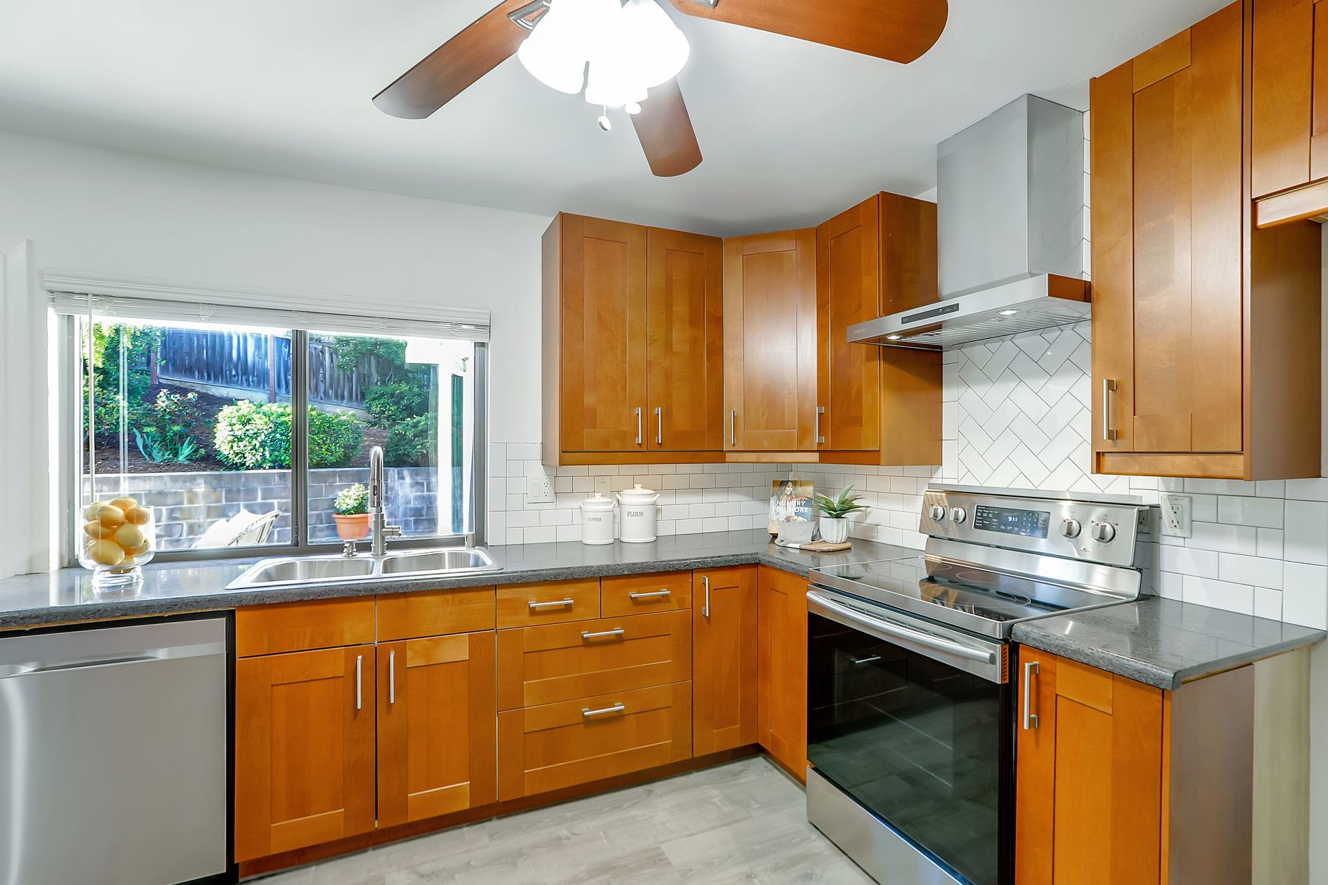 Nestled near the foothills with gorgeous views and peaceful, private cul-de-sac location, this naturally bright and inviting home has all you need! Remodeled kitchen with quartz countertops, stainless appliances, cherry cabinets with pull outs and soft close drawers, pantry and lots of storage, large living room with vaulted ceilings and bay window, large master suite with walk in closet and junior suite perfect for extended family. Featuring freshly painted interior and exterior with brand new luxury vinyl floors throughout, dual pane windows, copper plumbing, Nest thermostat, recessed lighting, new bathroom vanities, new master shower plus Tesla EV charger, newer AC, furnace and ducting, upgraded to 200 amp electrical service. The large deck is perfect for entertaining or relaxation and the split level yard is perfect for hide and seek or gardening and large built in shed for storage & more storage options in attic. Located near freeways, shopping, Discovery Charter School and walking distance to Foothill Glen Park and walking trails. This is a wonderful home!