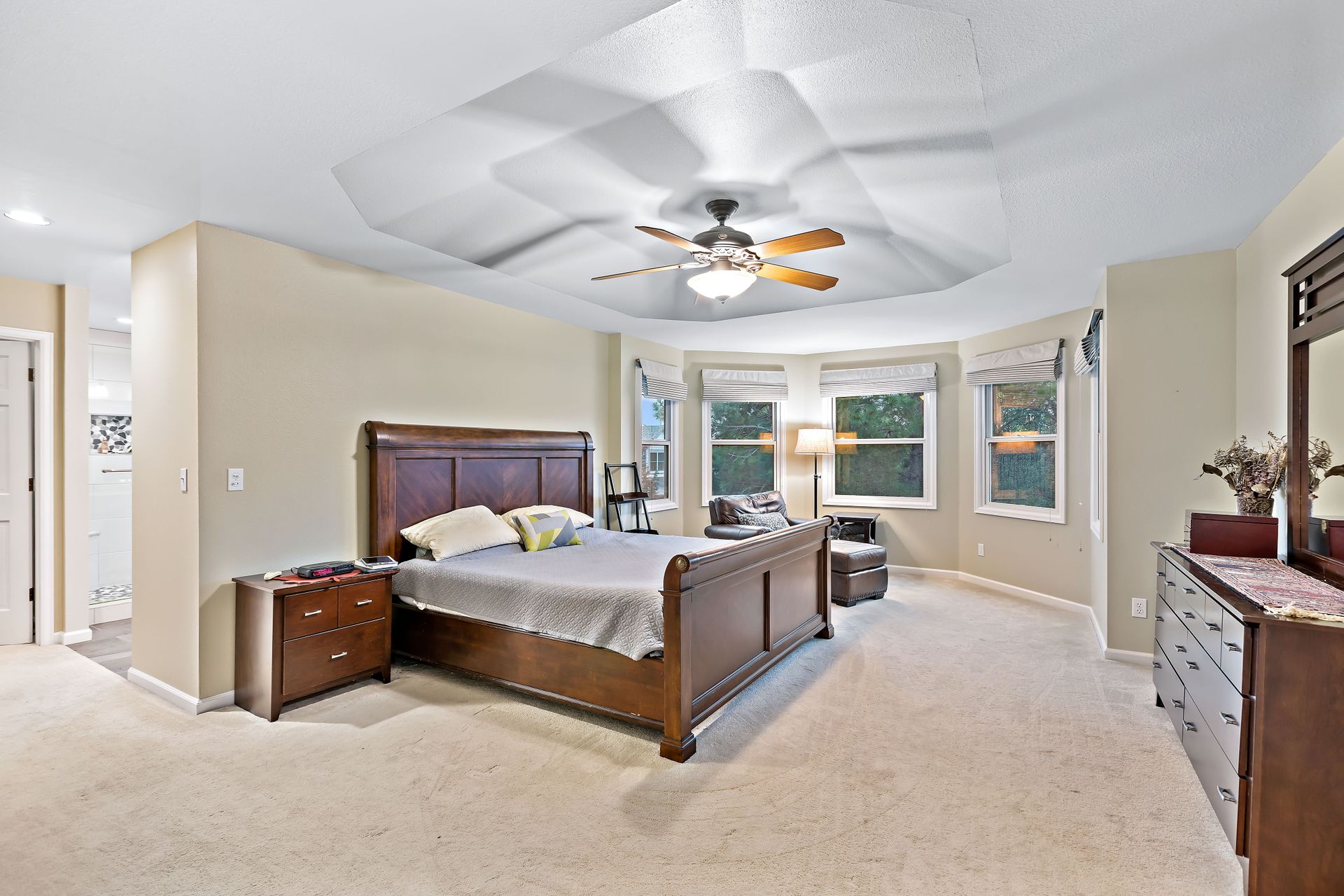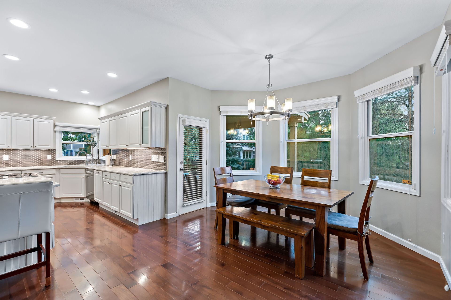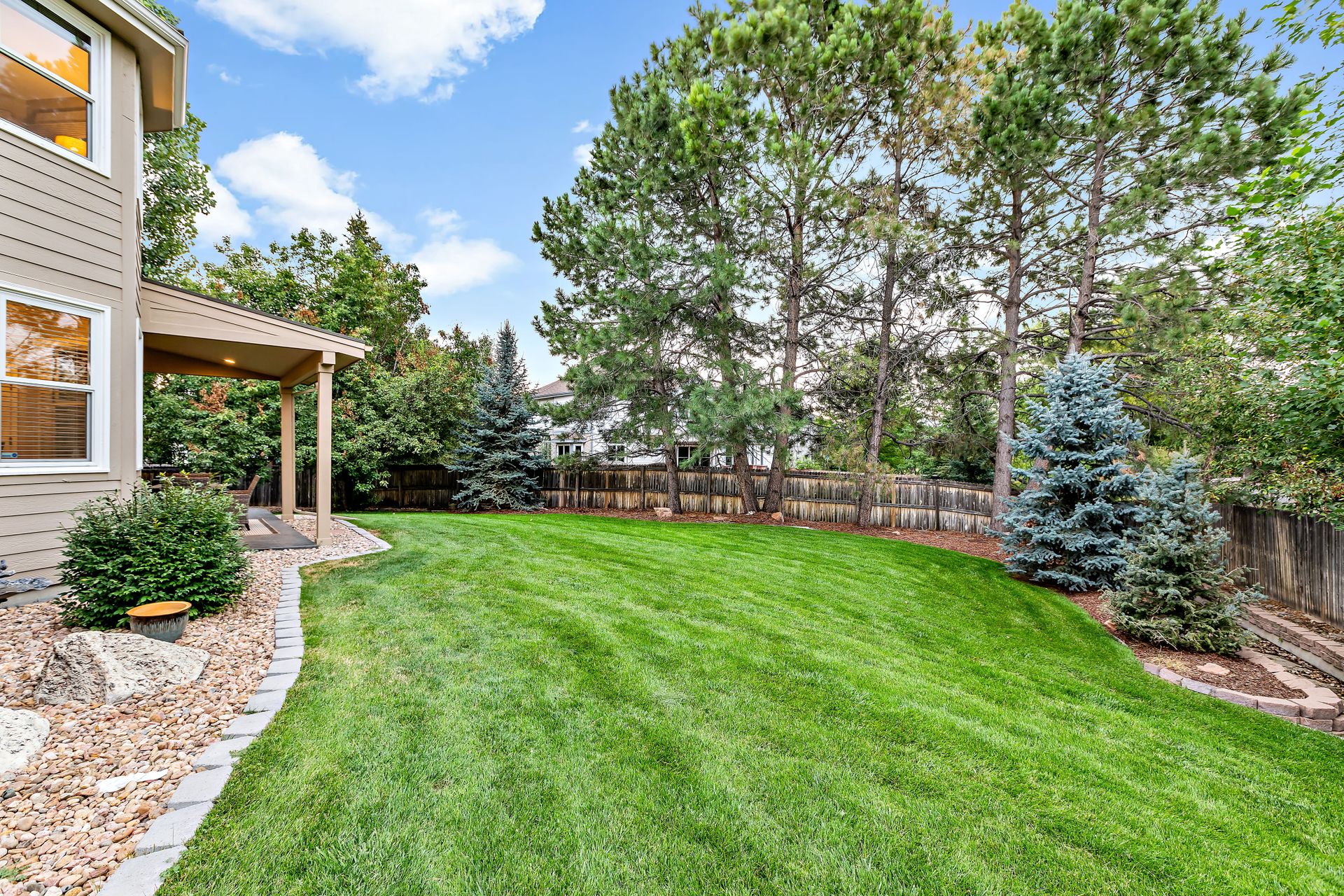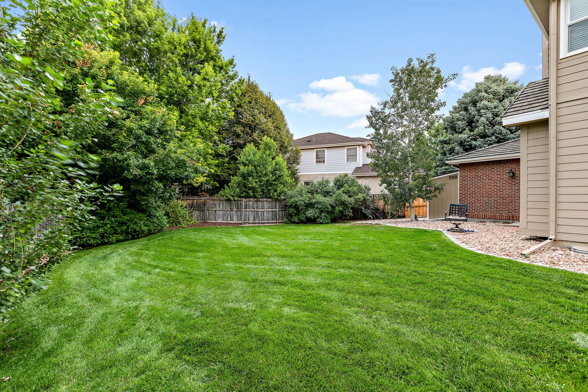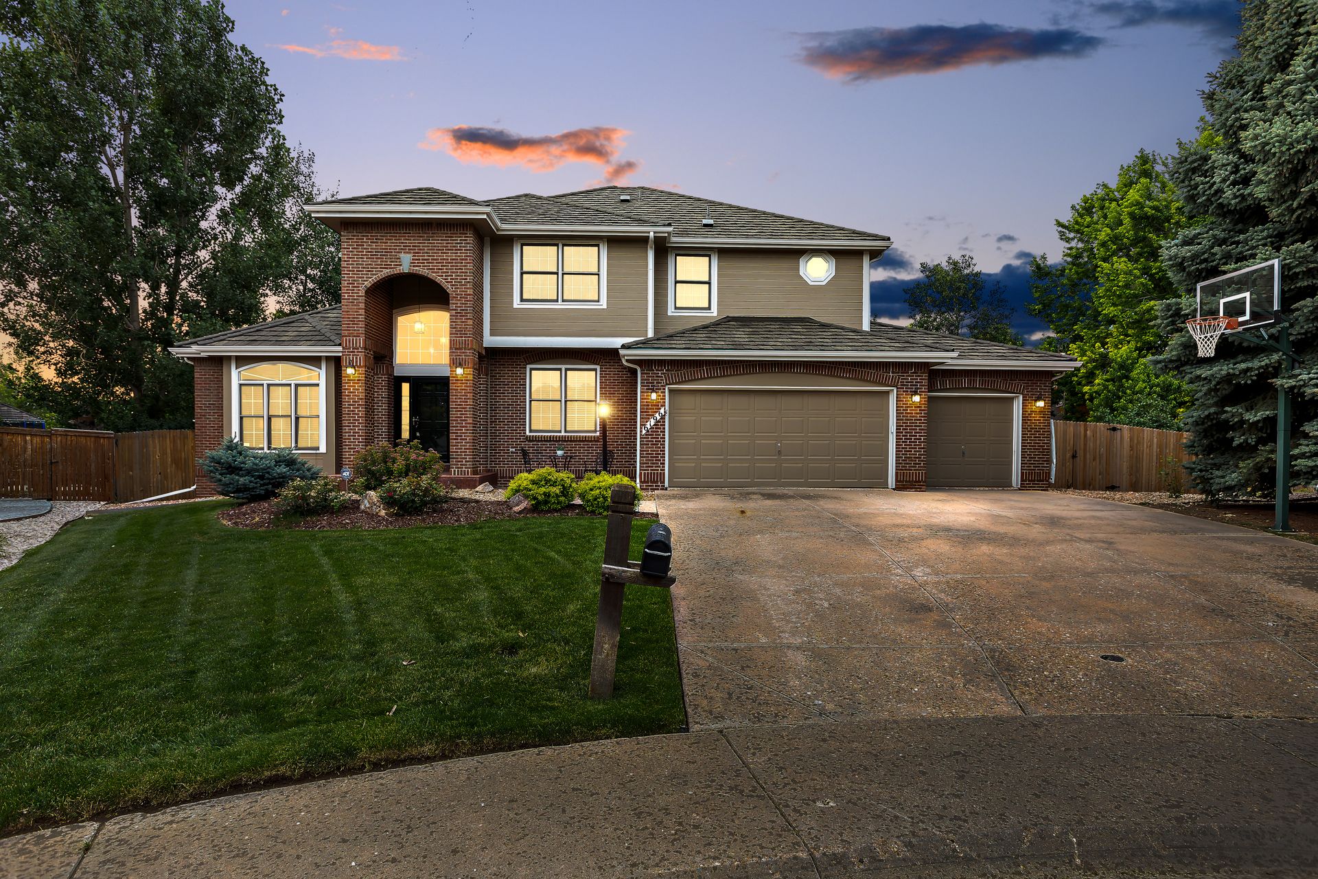 Welcome home to The Hills at Cherry Creek Vista East—a stunning retreat that seamlessly blends elegance and comfort. Step into the two-story foyer with its inviting open staircase. The updated kitchen opens to a charming family room with a gas fireplace and hardwood floors, while the main level offers a study, spacious living and dining rooms, and a fantastic mud/laundry room off the 3-car garage.With over 4,300 sq. feet of finished living space, including 4 upper-level bedrooms, there's no shortage of space! The large primary suite features a newly remodeled en-suite bathroom and three additional bedrooms, one boasting a private en-suite bathroom and the two others feature a shared full bath. The finished basement has a large recreation/family room space, a 5th bathroom, and plenty of storage which could easily be made into a 5th bedroom with full egress window already in place. This gorgeous home is nestled on a quiet cul-de-sac within the desirable Cherry Creek Vista community. Boasting a wonderful private backyard on a large 1/3-acre lot with a covered patio and lots of mature trees. All this, within walking distance to the Cherry Creek State Park, as well as Peakview playground/park, community basketball, tennis and Pickle-ball courts. Outstanding schools including the coveted Cottonwood Creek Elementary and Cherry Creek High School. Rarely available in this sought-after neighborhood, don't miss this beautiful property.