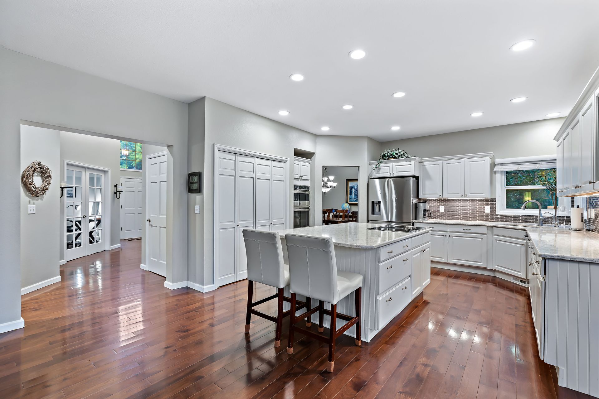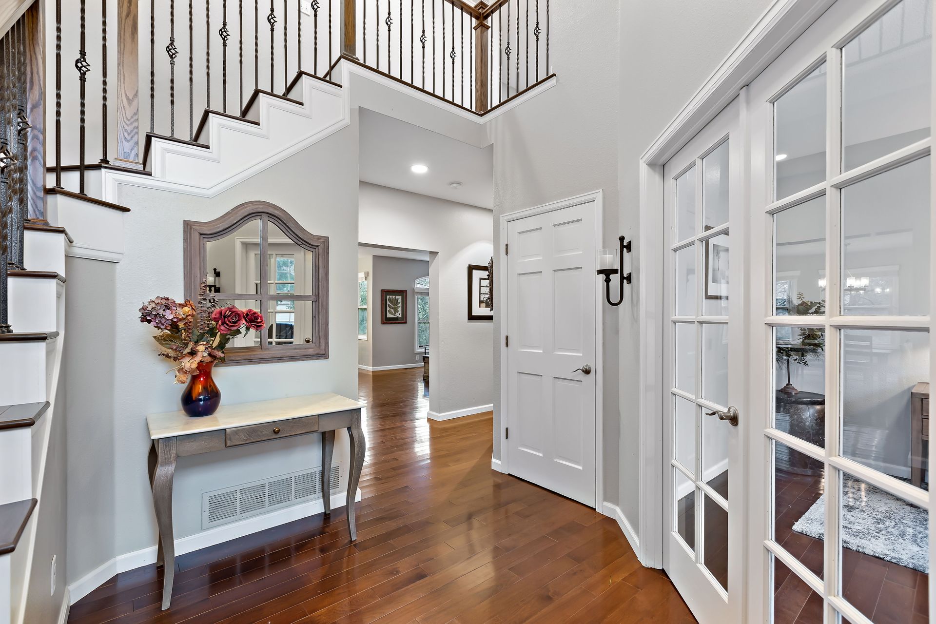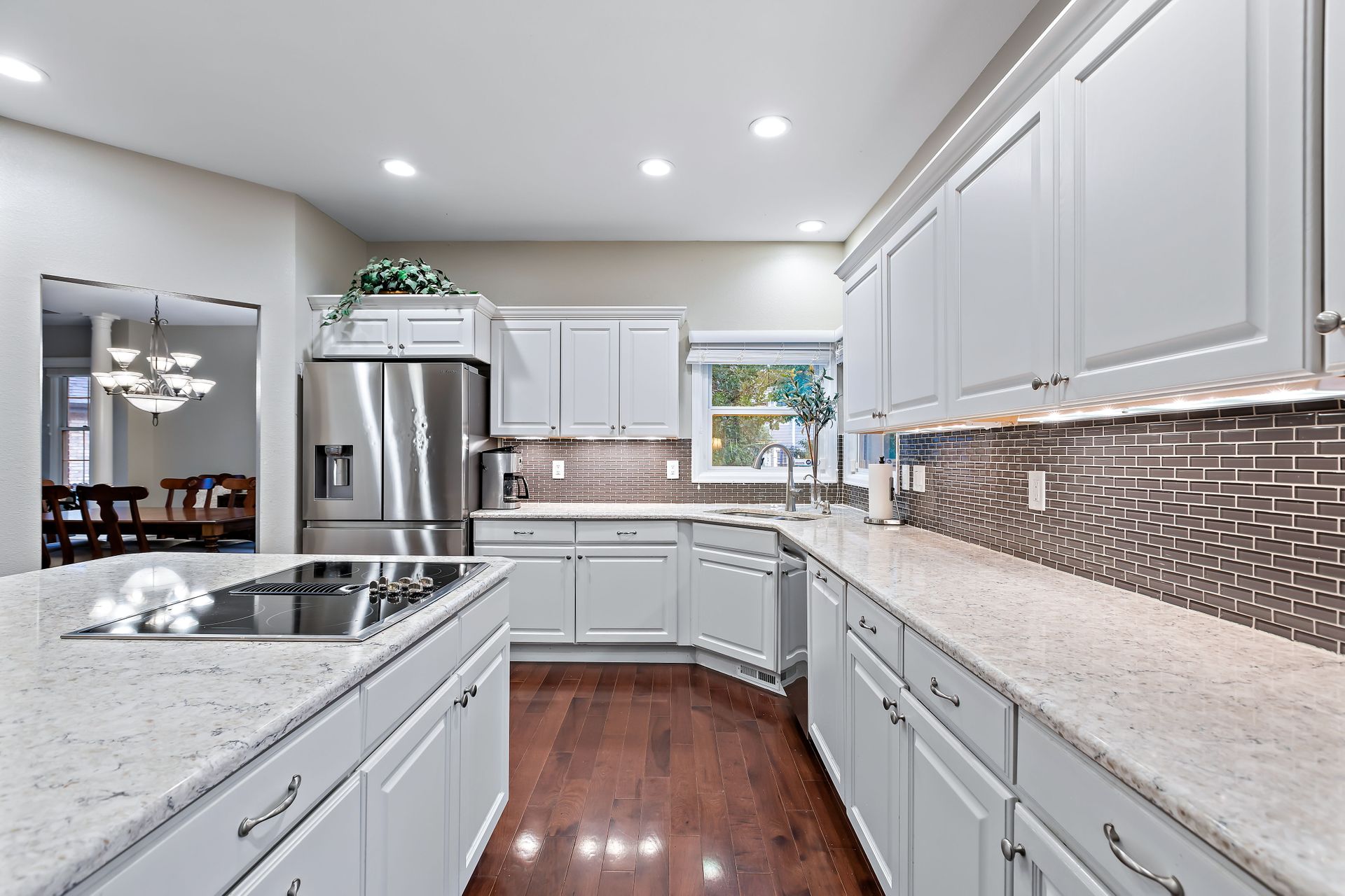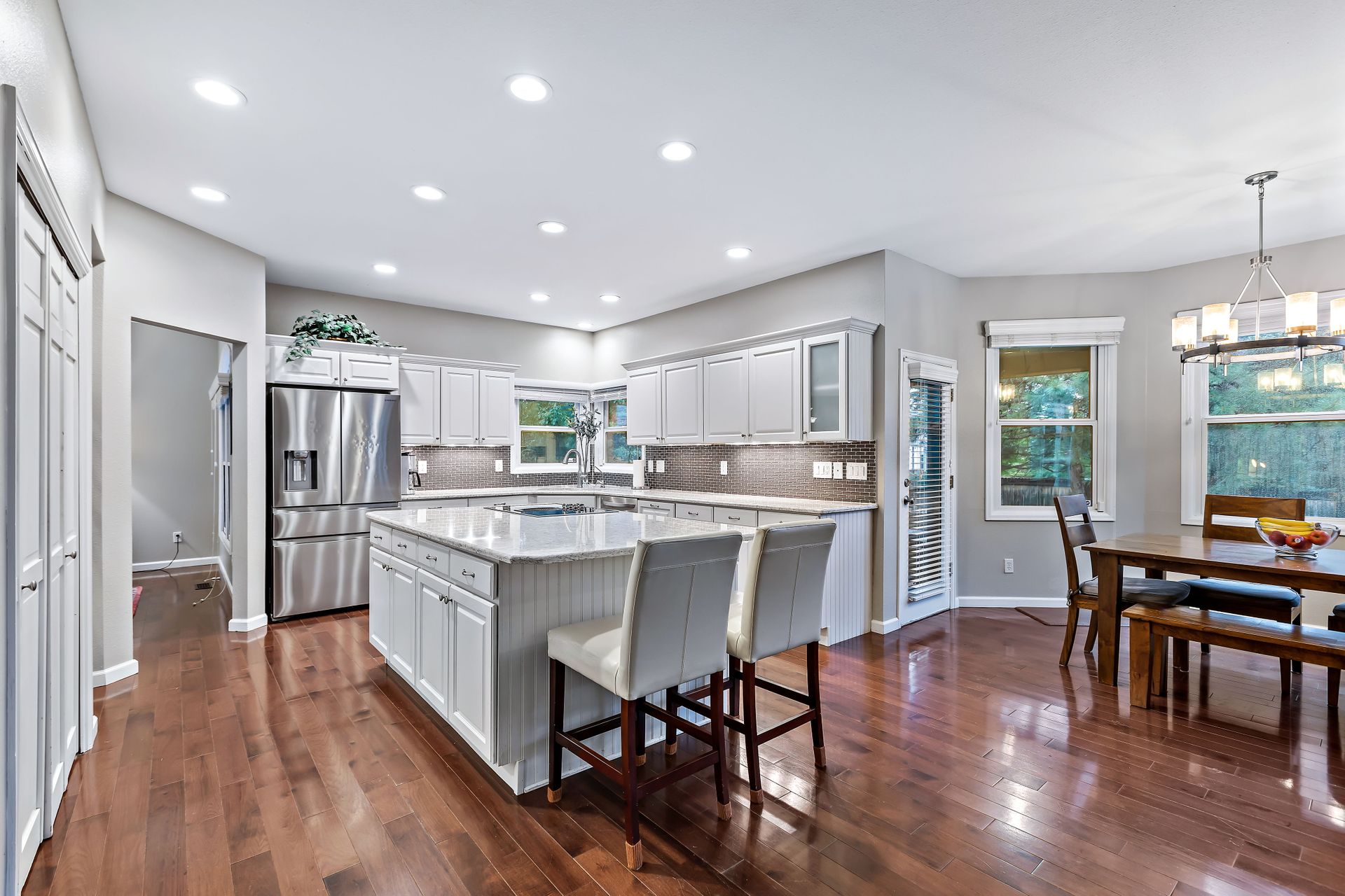 Welcome home to The Hills at Cherry Creek Vista East—a stunning retreat that seamlessly blends elegance and comfort. Step into the two-story foyer with its inviting open staircase. The updated kitchen opens to a charming family room with a gas fireplace and hardwood floors, while the main level offers a study, spacious living and dining rooms, and a fantastic mud/laundry room off the 3-car garage.With over 4,300 sq. feet of finished living space, including 4 upper-level bedrooms, there's no shortage of space! The large primary suite features a newly remodeled en-suite bathroom and three additional bedrooms, one boasting a private en-suite bathroom and the two others feature a shared full bath. The finished basement has a large recreation/family room space, a 5th bathroom, and plenty of storage which could easily be made into a 5th bedroom with full egress window already in place. This gorgeous home is nestled on a quiet cul-de-sac within the desirable Cherry Creek Vista community. Boasting a wonderful private backyard on a large 1/3-acre lot with a covered patio and lots of mature trees. All this, within walking distance to the Cherry Creek State Park, as well as Peakview playground/park, community basketball, tennis and Pickle-ball courts. Outstanding schools including the coveted Cottonwood Creek Elementary and Cherry Creek High School. Rarely available in this sought-after neighborhood, don't miss this beautiful property.