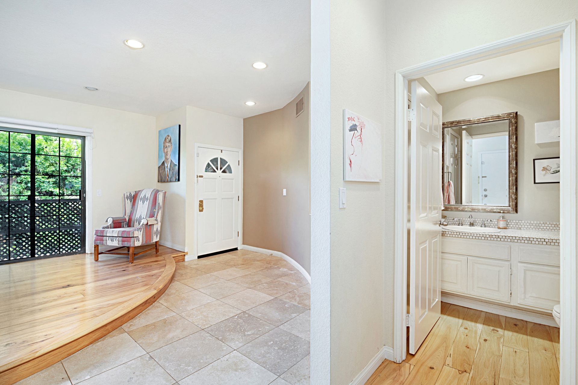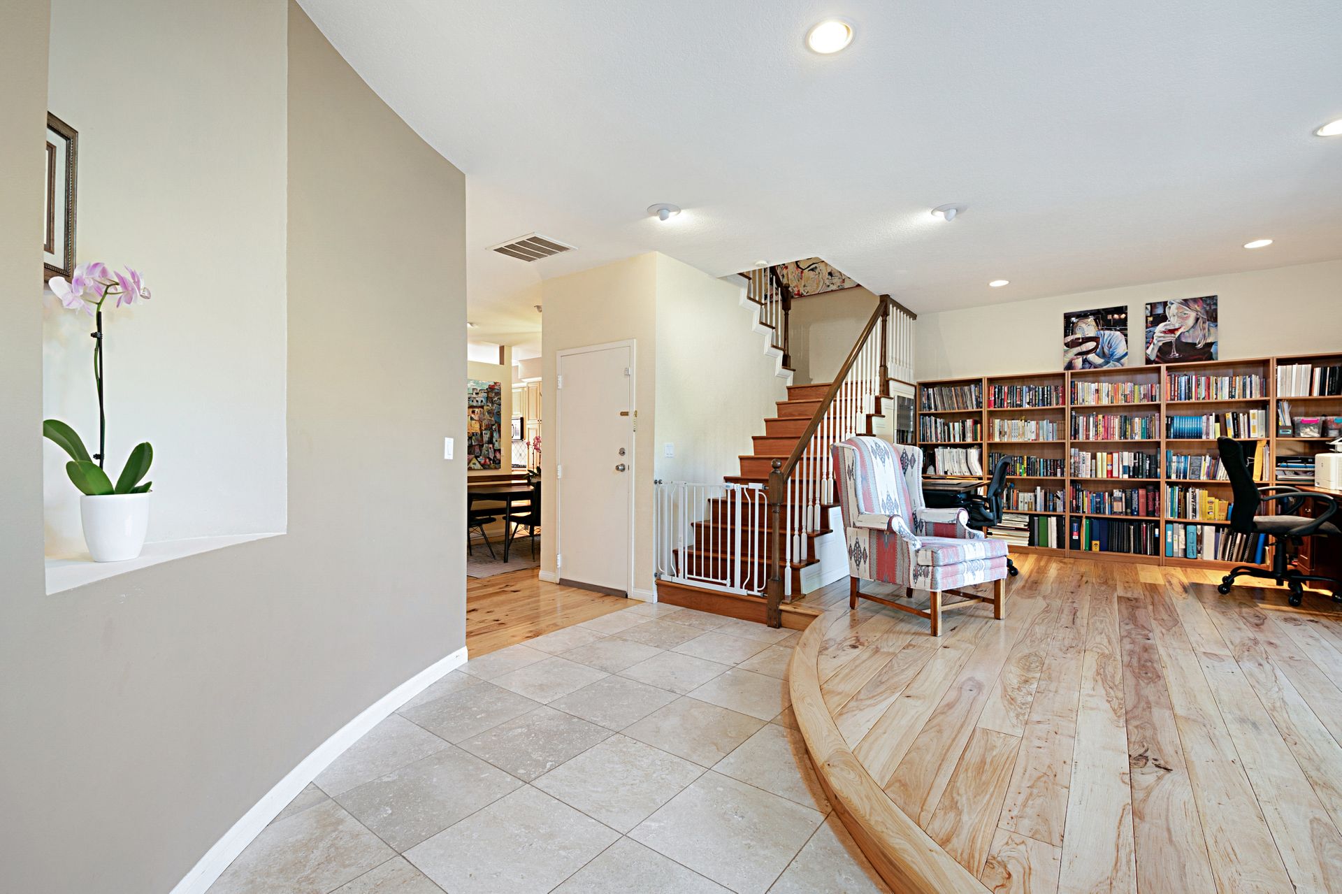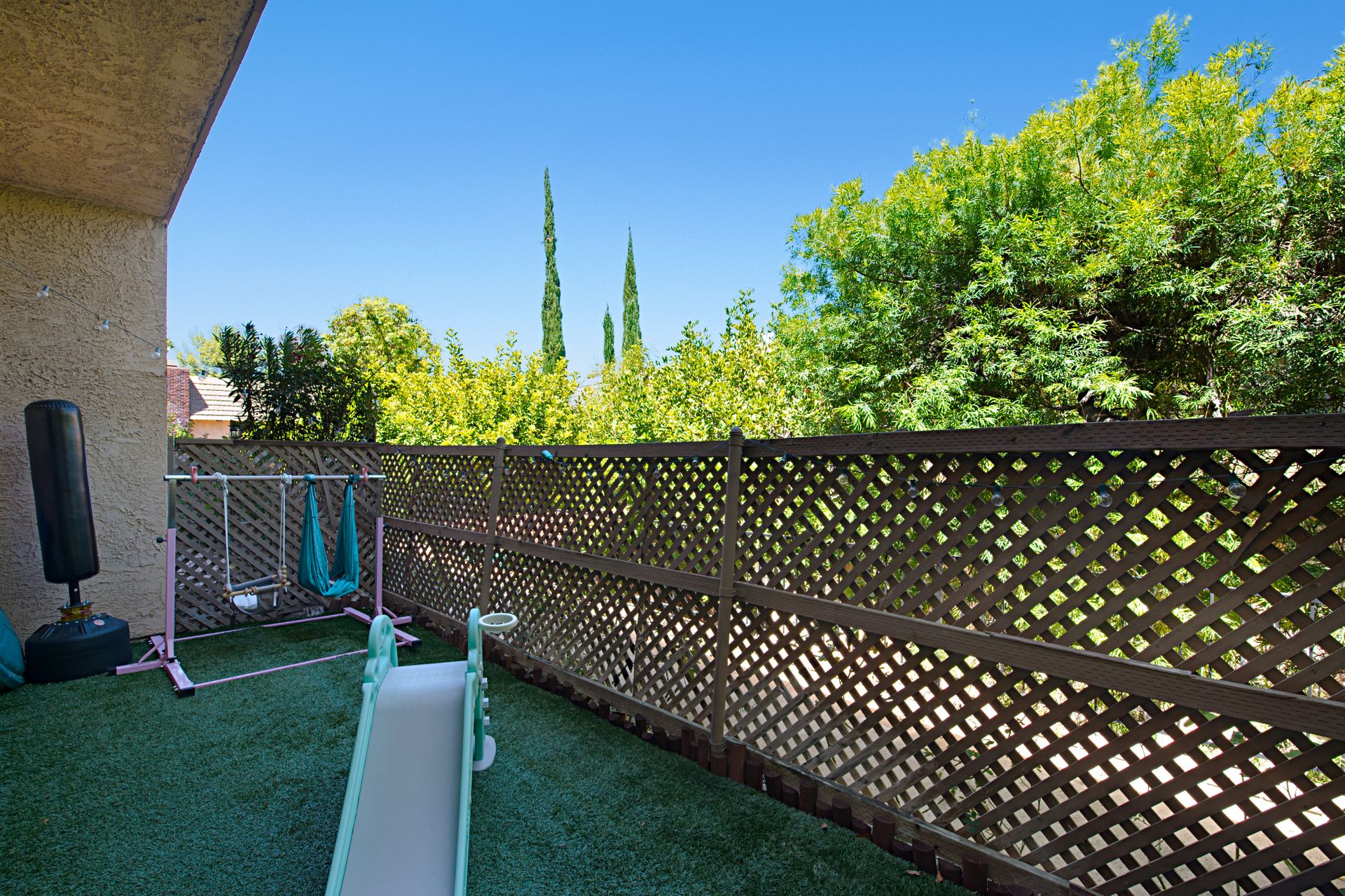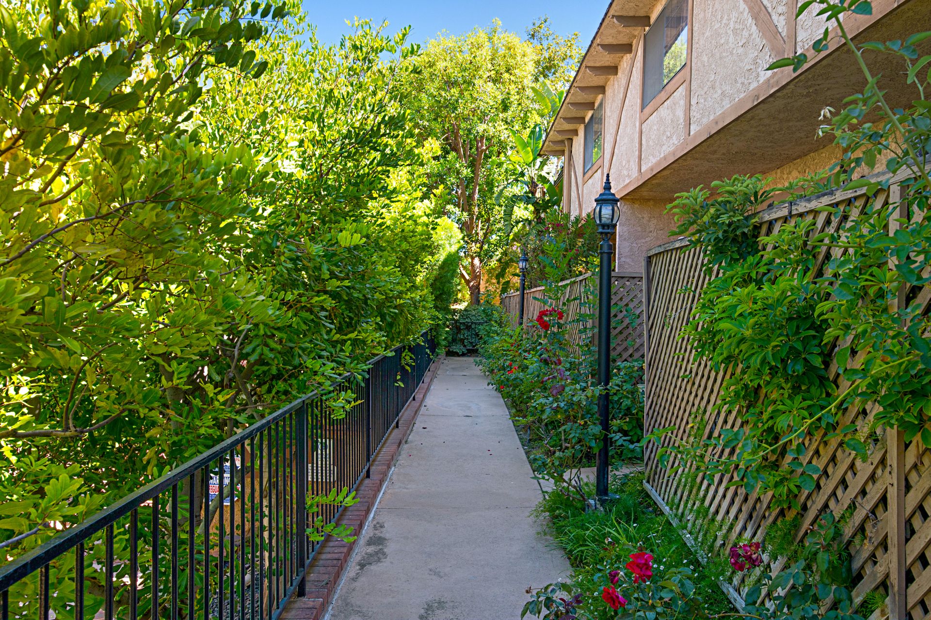 Welcome to this fantastic opportunity to live in beautiful Woodland Hills in this spacious three bedroom and two and one-half bathroom Townhome, with over 2,000 square-feet and an additional huge bonus room! Nestled in a desirable interior location by the sparkling community pool and spa in the heart of Valley Circle Townhomes! The formal entry has travertine flooring, high ceilings with recessed lighting and opens to the airy living room with beautiful hardwood flooring. Floor to ceiling sliders open to the relaxing private outdoor patio with artificial turf! The kitchen has granite countertops, a travertine backsplash with detailed inlay, a built-in wine rack, hardwood floors and stainless steel appliances including a KitchenAid dishwasher! The kitchen also includes a breakfast bar and opens to the family room complete with a fireplace, hardwood floors and plantation shutters. The light and bright dining room is separate and a great space for entertaining! Head upstairs to the oversized primary bedroom suite which boasts a luxurious closet as well as a separate built-in wardrobe and plantation shutters that open to mountaintop valley views. The en suite bathroom has double sinks, a soaking tub, a separate remodeled shower and remodeled tile flooring with decorative inlays. There are two other sizable bedrooms upstairs with vaulted ceilings, ceiling fans and plantation shutters! The hall bathroom upstairs has two sinks, tile floors and a remodeled shower with pebble flooring. A side-by-side laundry closet is conveniently located upstairs by the bedrooms! Head downstairs to the enormous bonus room which is not counted as part of the square-footage! Makes for a wonderful office, gym, playroom or storage area! Enjoy an oversized attached two-car garage, refurbished air conditioning and a newer water heater! Located in the El Camino School District, close to the Village, Warner Center, Calabasas and local parks and restaurants all with easy access to the 101 freeway.