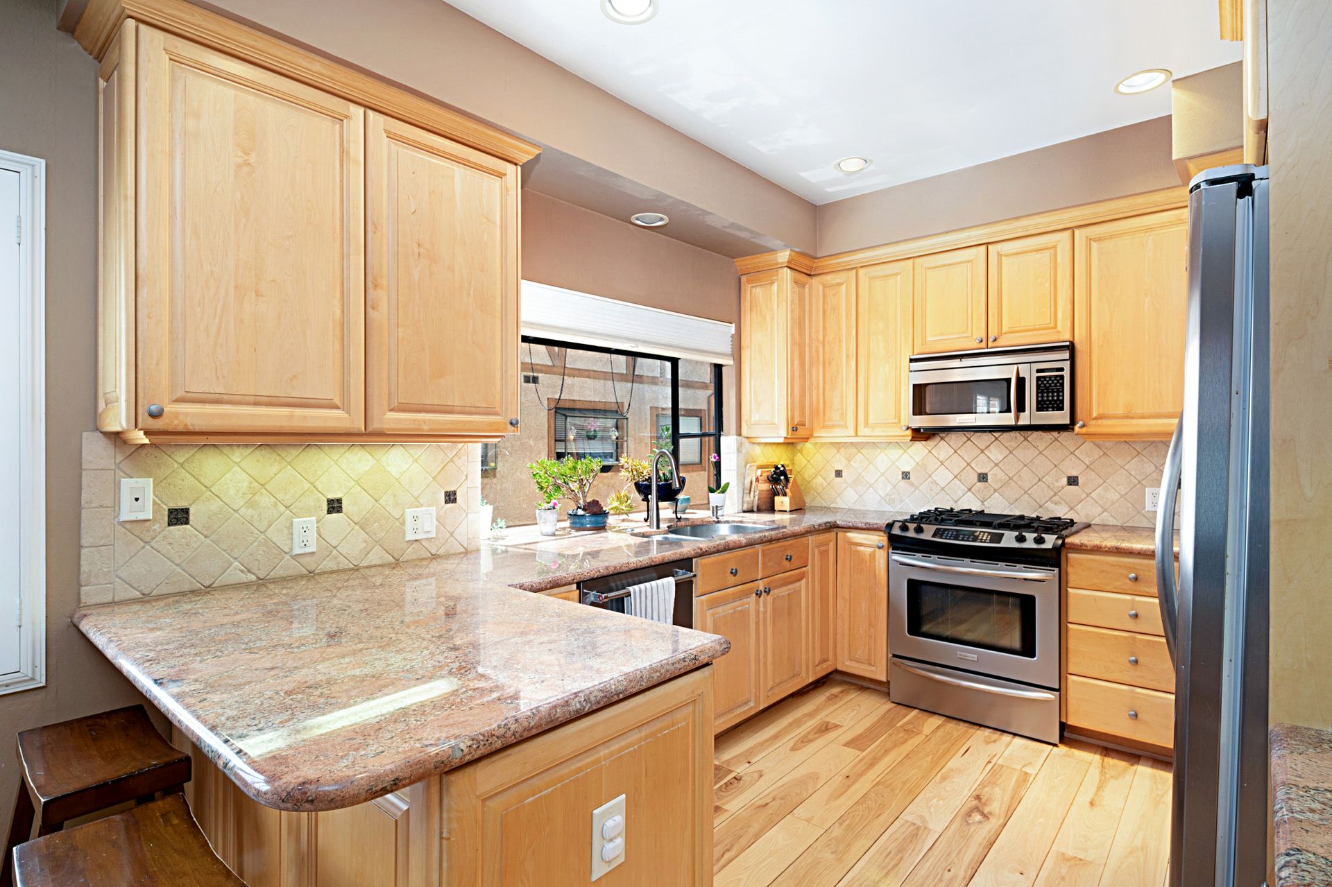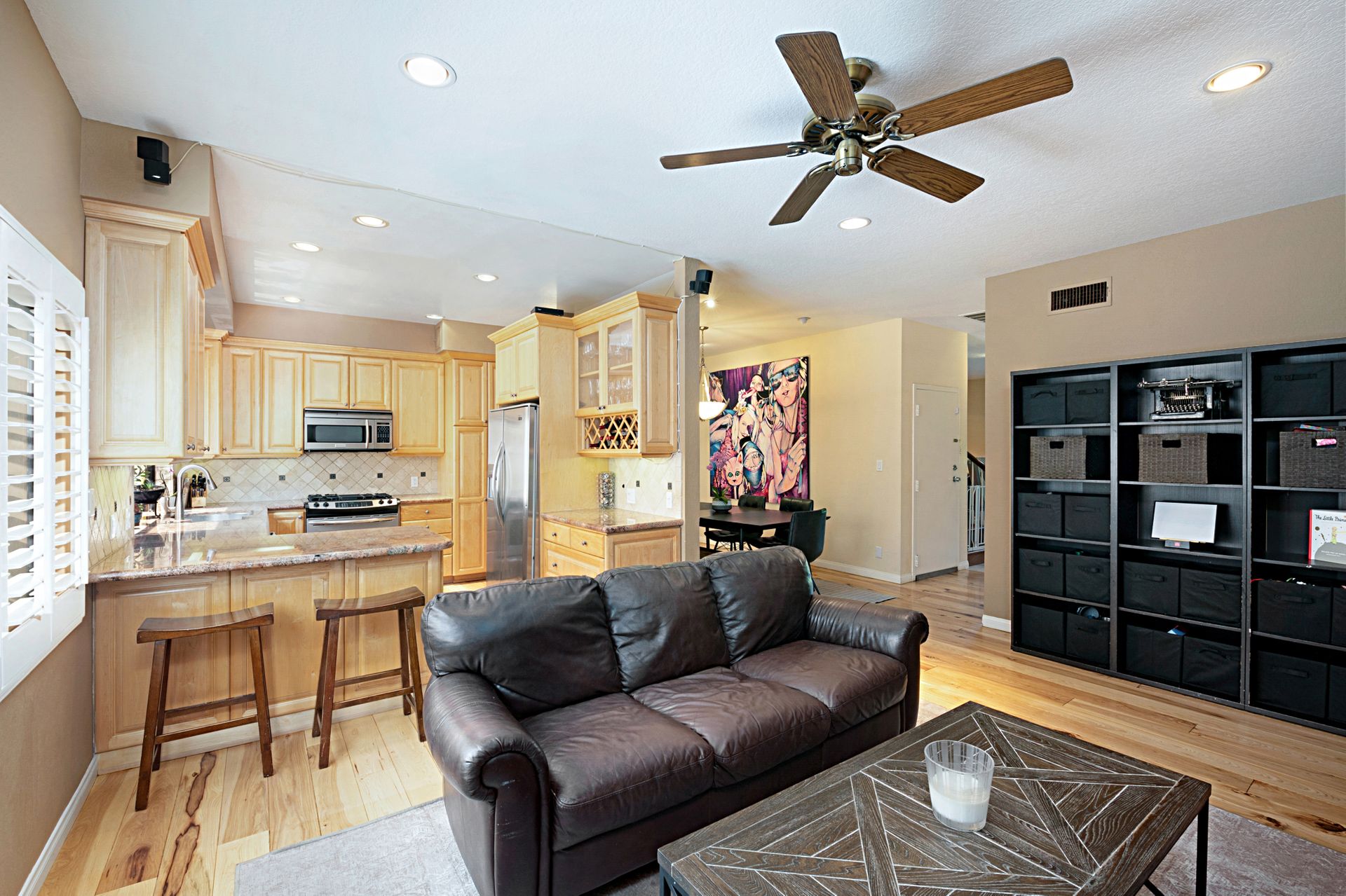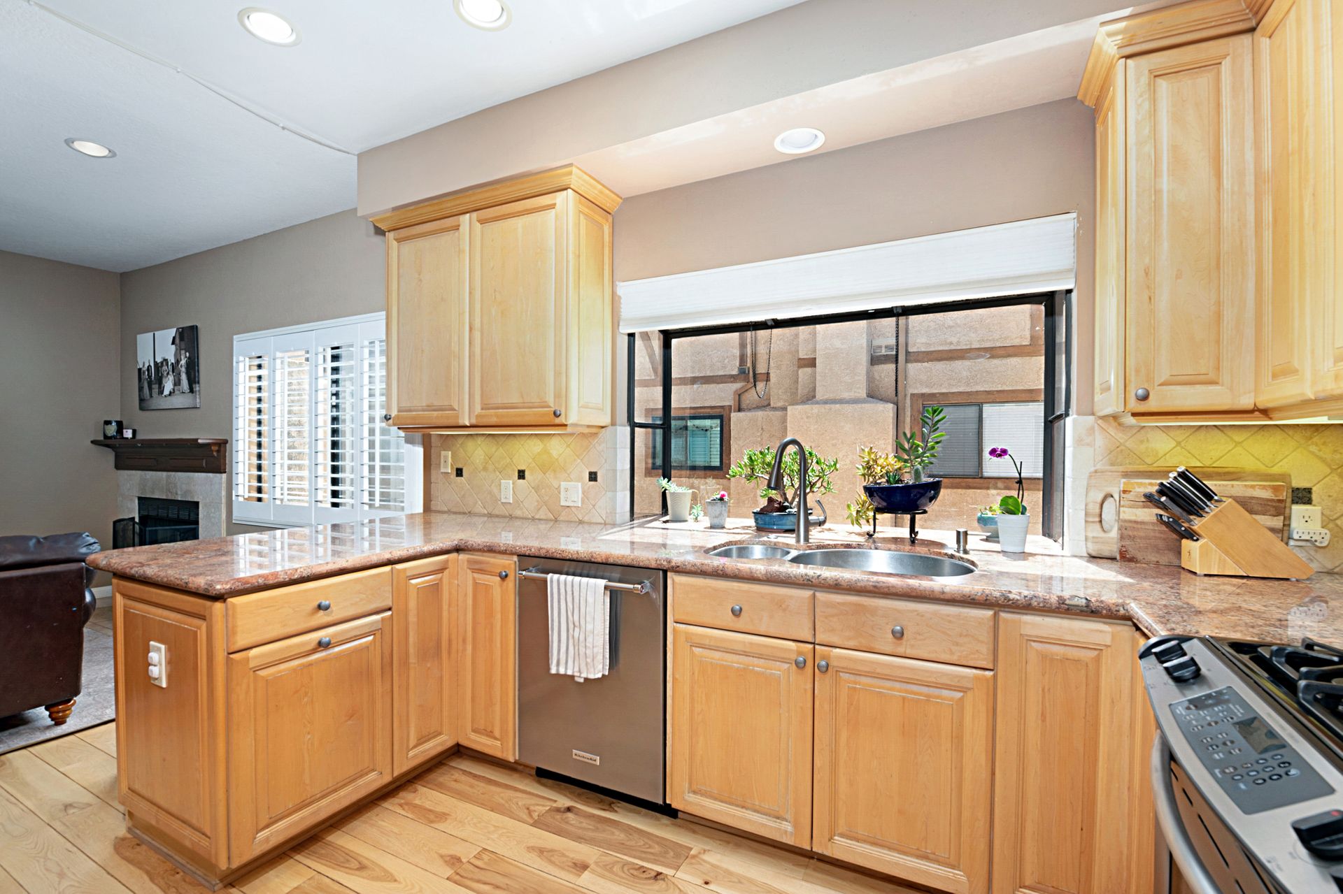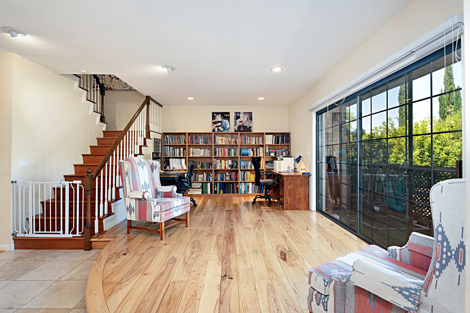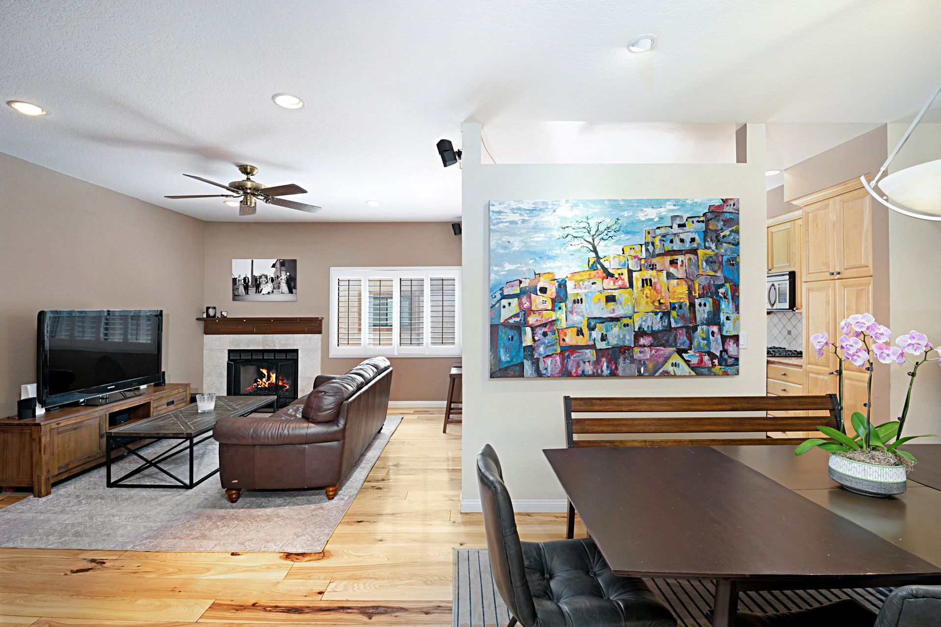 Welcome to this fantastic opportunity to live in beautiful Woodland Hills in this spacious three bedroom and two and one-half bathroom Townhome, with over 2,000 square-feet and an additional huge bonus room! Nestled in a desirable interior location by the sparkling community pool and spa in the heart of Valley Circle Townhomes! The formal entry has travertine flooring, high ceilings with recessed lighting and opens to the airy living room with beautiful hardwood flooring. Floor to ceiling sliders open to the relaxing private outdoor patio with artificial turf! The kitchen has granite countertops, a travertine backsplash with detailed inlay, a built-in wine rack, hardwood floors and stainless steel appliances including a KitchenAid dishwasher! The kitchen also includes a breakfast bar and opens to the family room complete with a fireplace, hardwood floors and plantation shutters. The light and bright dining room is separate and a great space for entertaining! Head upstairs to the oversized primary bedroom suite which boasts a luxurious closet as well as a separate built-in wardrobe and plantation shutters that open to mountaintop valley views. The en suite bathroom has double sinks, a soaking tub, a separate remodeled shower and remodeled tile flooring with decorative inlays. There are two other sizable bedrooms upstairs with vaulted ceilings, ceiling fans and plantation shutters! The hall bathroom upstairs has two sinks, tile floors and a remodeled shower with pebble flooring. A side-by-side laundry closet is conveniently located upstairs by the bedrooms! Head downstairs to the enormous bonus room which is not counted as part of the square-footage! Makes for a wonderful office, gym, playroom or storage area! Enjoy an oversized attached two-car garage, refurbished air conditioning and a newer water heater! Located in the El Camino School District, close to the Village, Warner Center, Calabasas and local parks and restaurants all with easy access to the 101 freeway.