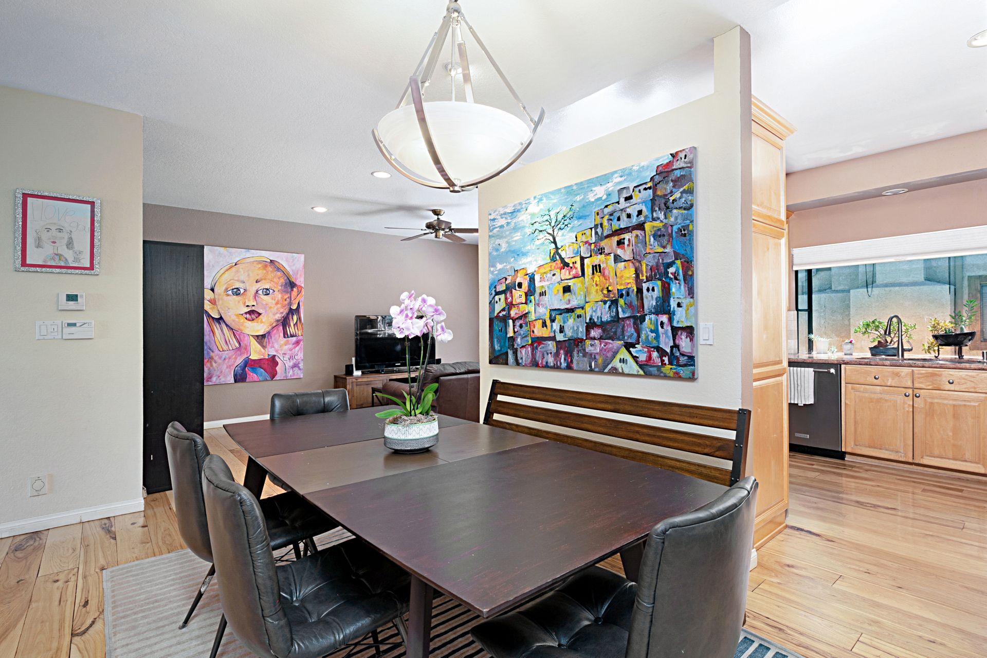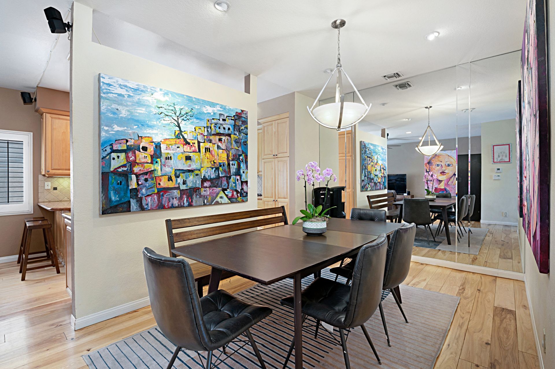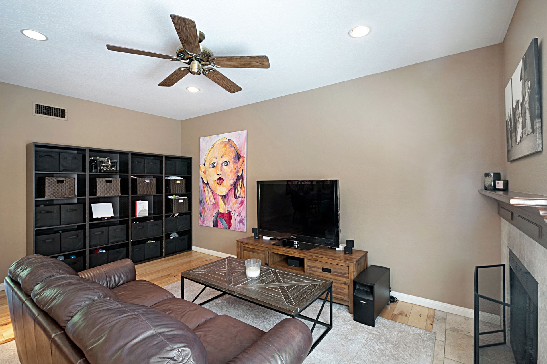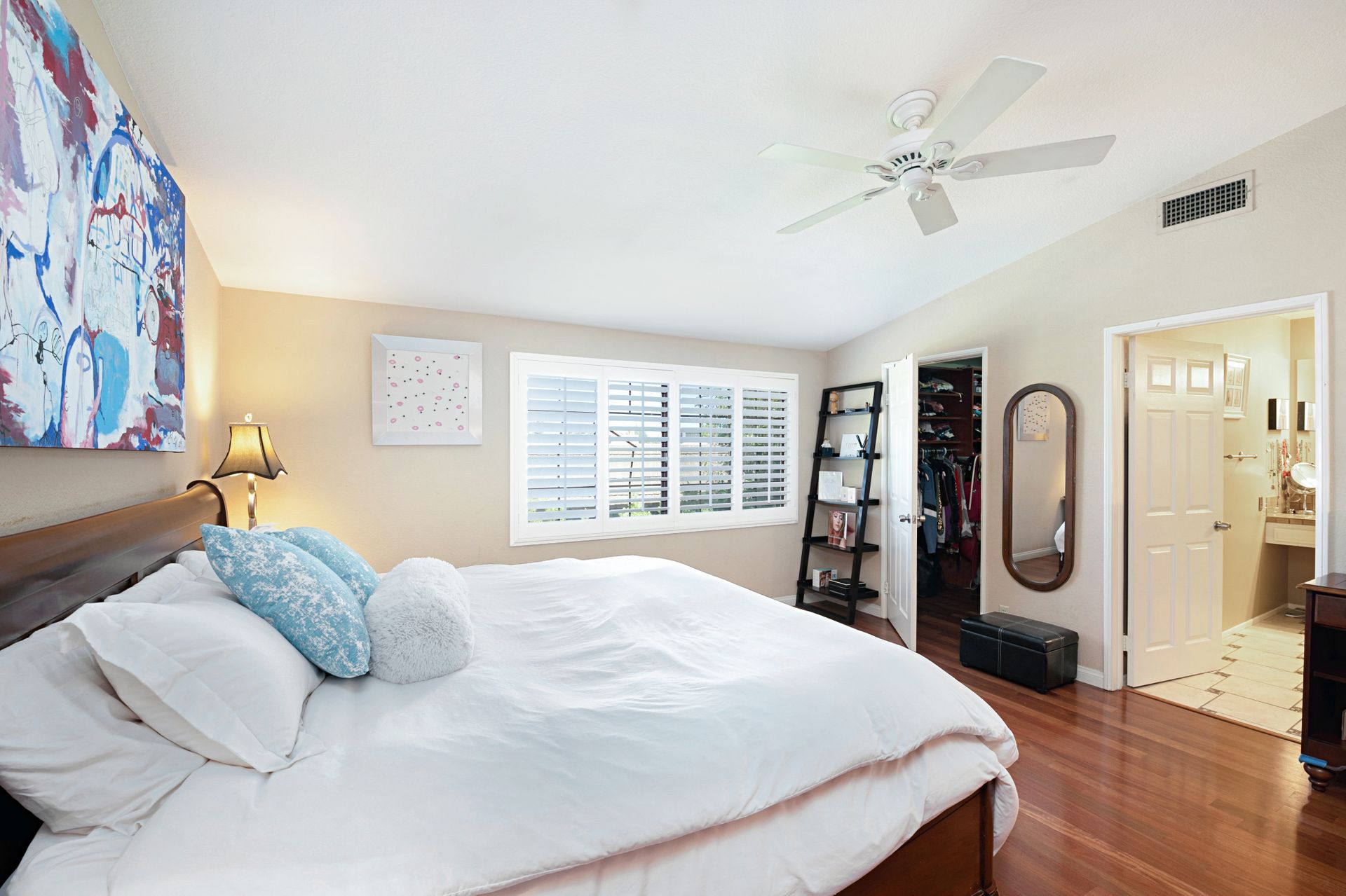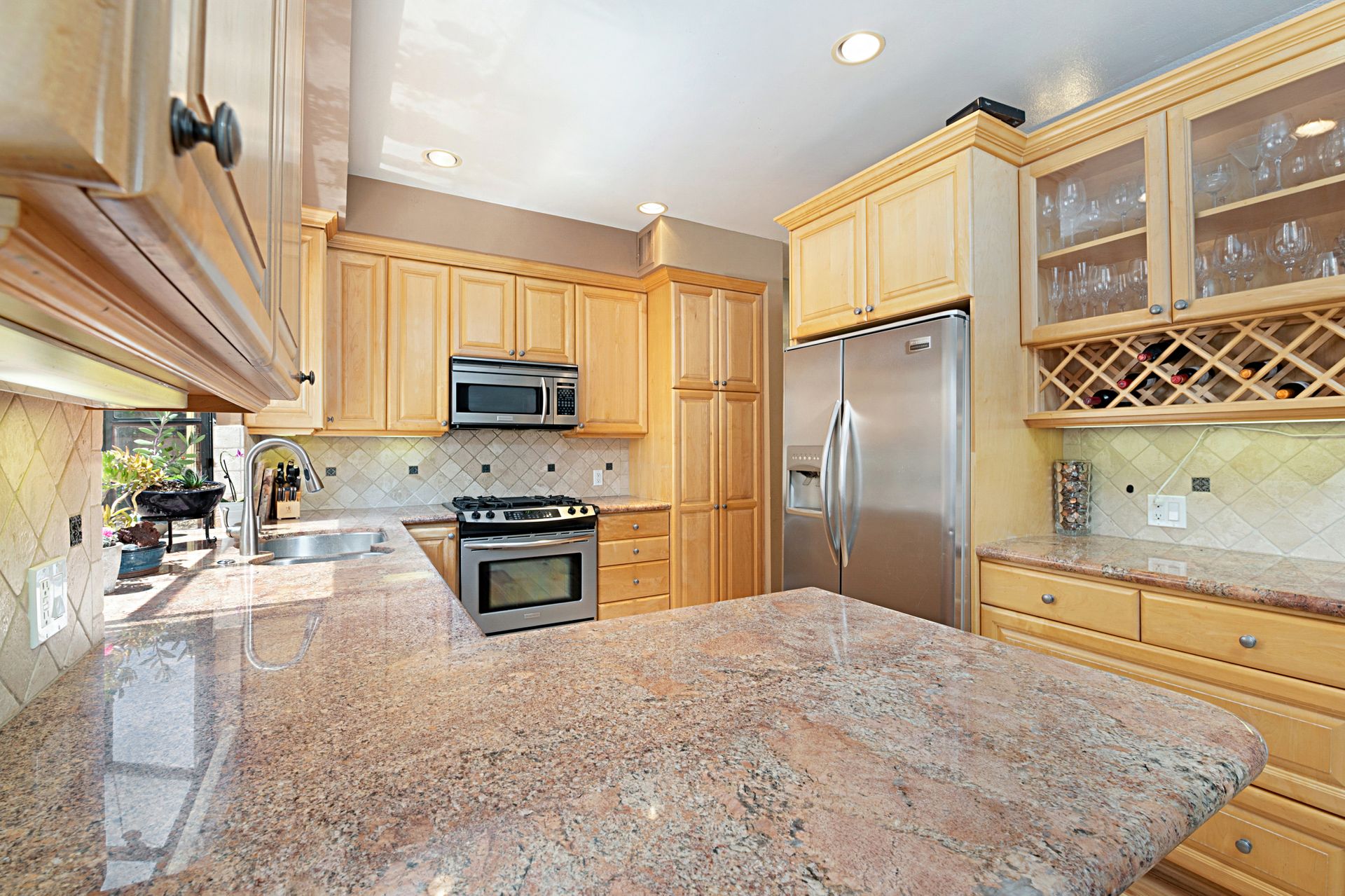 Welcome to this fantastic opportunity to live in beautiful Woodland Hills in this spacious three bedroom and two and one-half bathroom Townhome, with over 2,000 square-feet and an additional huge bonus room! Nestled in a desirable interior location by the sparkling community pool and spa in the heart of Valley Circle Townhomes! The formal entry has travertine flooring, high ceilings with recessed lighting and opens to the airy living room with beautiful hardwood flooring. Floor to ceiling sliders open to the relaxing private outdoor patio with artificial turf! The kitchen has granite countertops, a travertine backsplash with detailed inlay, a built-in wine rack, hardwood floors and stainless steel appliances including a KitchenAid dishwasher! The kitchen also includes a breakfast bar and opens to the family room complete with a fireplace, hardwood floors and plantation shutters. The light and bright dining room is separate and a great space for entertaining! Head upstairs to the oversized primary bedroom suite which boasts a luxurious closet as well as a separate built-in wardrobe and plantation shutters that open to mountaintop valley views. The en suite bathroom has double sinks, a soaking tub, a separate remodeled shower and remodeled tile flooring with decorative inlays. There are two other sizable bedrooms upstairs with vaulted ceilings, ceiling fans and plantation shutters! The hall bathroom upstairs has two sinks, tile floors and a remodeled shower with pebble flooring. A side-by-side laundry closet is conveniently located upstairs by the bedrooms! Head downstairs to the enormous bonus room which is not counted as part of the square-footage! Makes for a wonderful office, gym, playroom or storage area! Enjoy an oversized attached two-car garage, refurbished air conditioning and a newer water heater! Located in the El Camino School District, close to the Village, Warner Center, Calabasas and local parks and restaurants all with easy access to the 101 freeway.