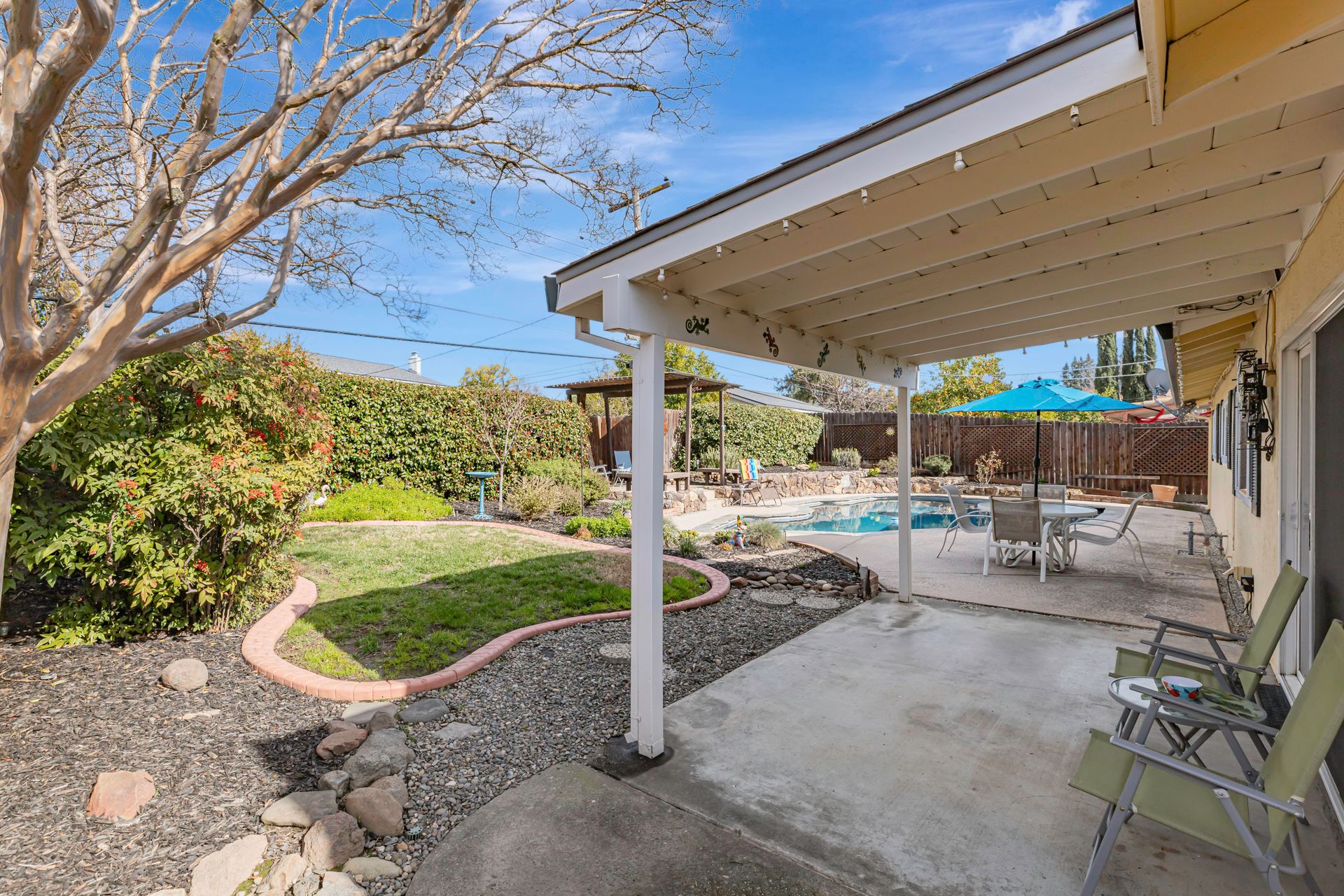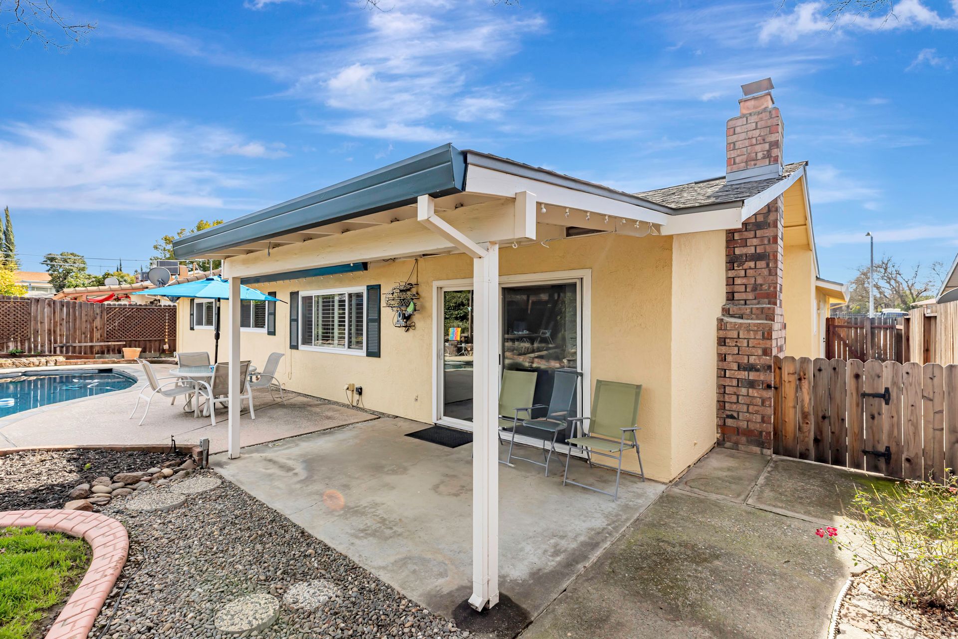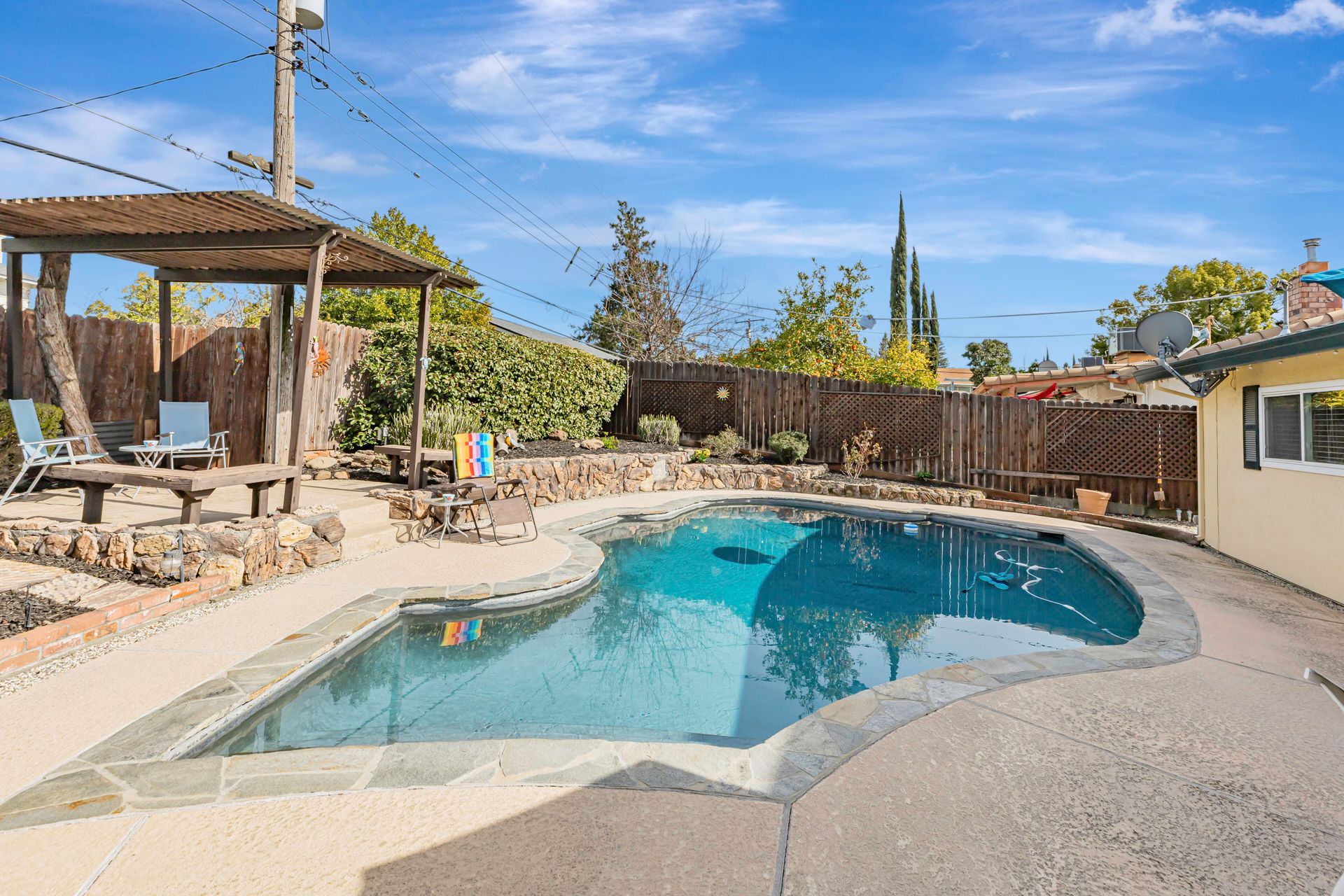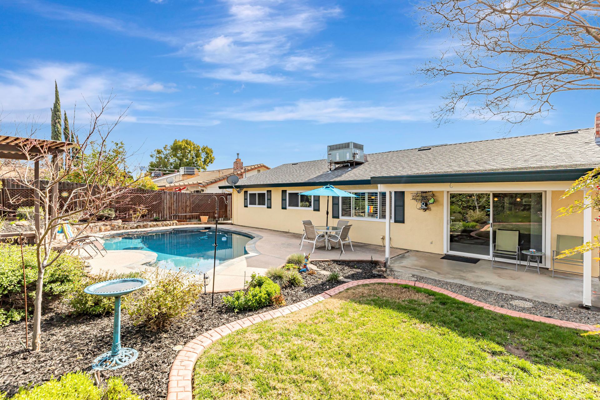 Welcome to this stunning 4 bed, 2.5-bath, 1,839 sq ft home on a spacious lot. This house offers the perfect blend of comfort, elegance, and modern upgrades in a prime location. A peaceful front patio sets the stage for the warmth and charm inside. The formal dining room, kitchen, and living room seamlessly overlook the gorgeous backyard and sparkling pool, creating a perfect indoor-outdoor flow. A skylight enhances the bright, inviting atmosphere. The upgraded kitchen is a chef’s dream, featuring granite countertops, stainless steel appliances, a wine fridge, and an island with a dining bar—ideal for hosting or enjoying casual meals. Stay cozy in winter by the upgraded electric fireplace and keep cool in summer with energy-efficient dual-pane windows, ceiling fans, and a new HVAC system installed in 2019. A new roof and water heater (both installed in 2019) add even more value and peace of mind. The primary suite offers a large walk-in closet and updated ensuite bathroom, while the hall bath was remodeled in 2020 with stylish modern finishes that add a touch of luxury. Additional conveniences include an indoor laundry room, half bath, and ample storage throughout Outside, enjoy a private backyard oasis —a covered patio is perfect for dining al fresco, while the sparkling pool offers a refreshing escape on hot summer days. The landscaped yard and covered deck provide the ideal setting for sunbathing, lounging, or entertaining guests. This home is perfect for year-round enjoyment, whether you're hosting summer gatherings by the pool or curling up with a book by the fireplace in the winter. Located in the highly sought-after San Juan Unified School District, this home is minutes from top-rated schools, parks, shopping, dining, and offers easy freeway access to downtown Sacramento.
