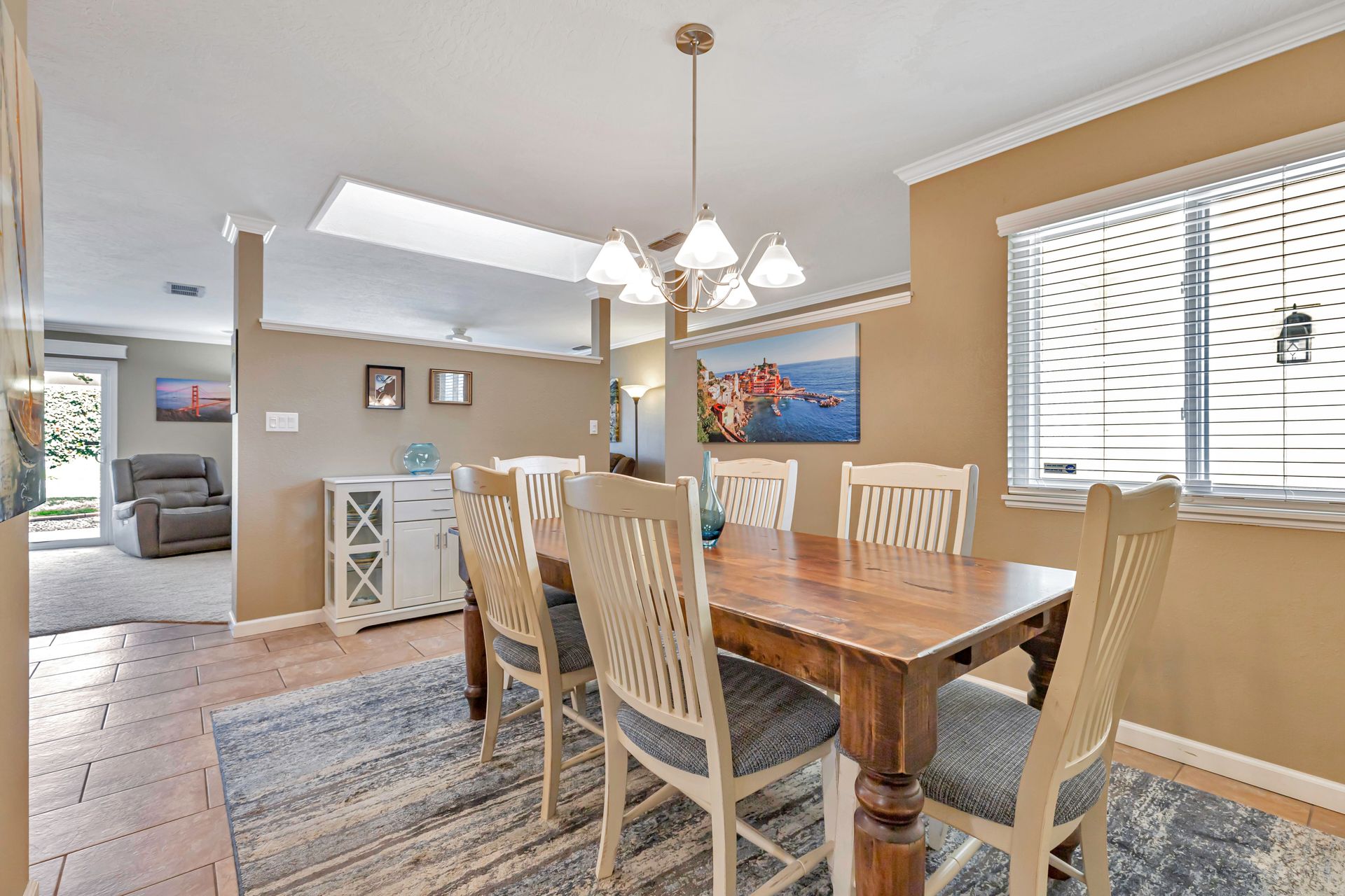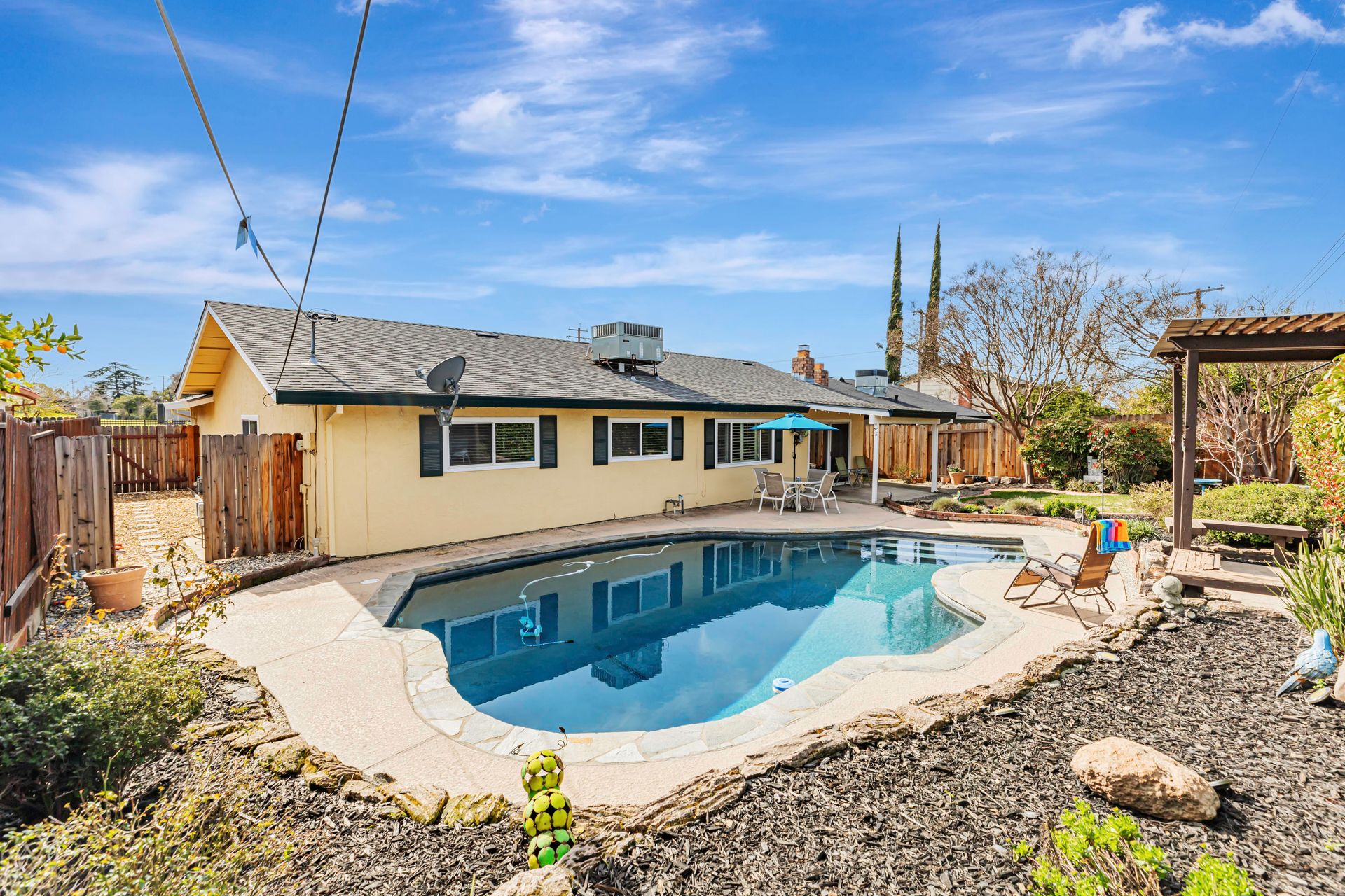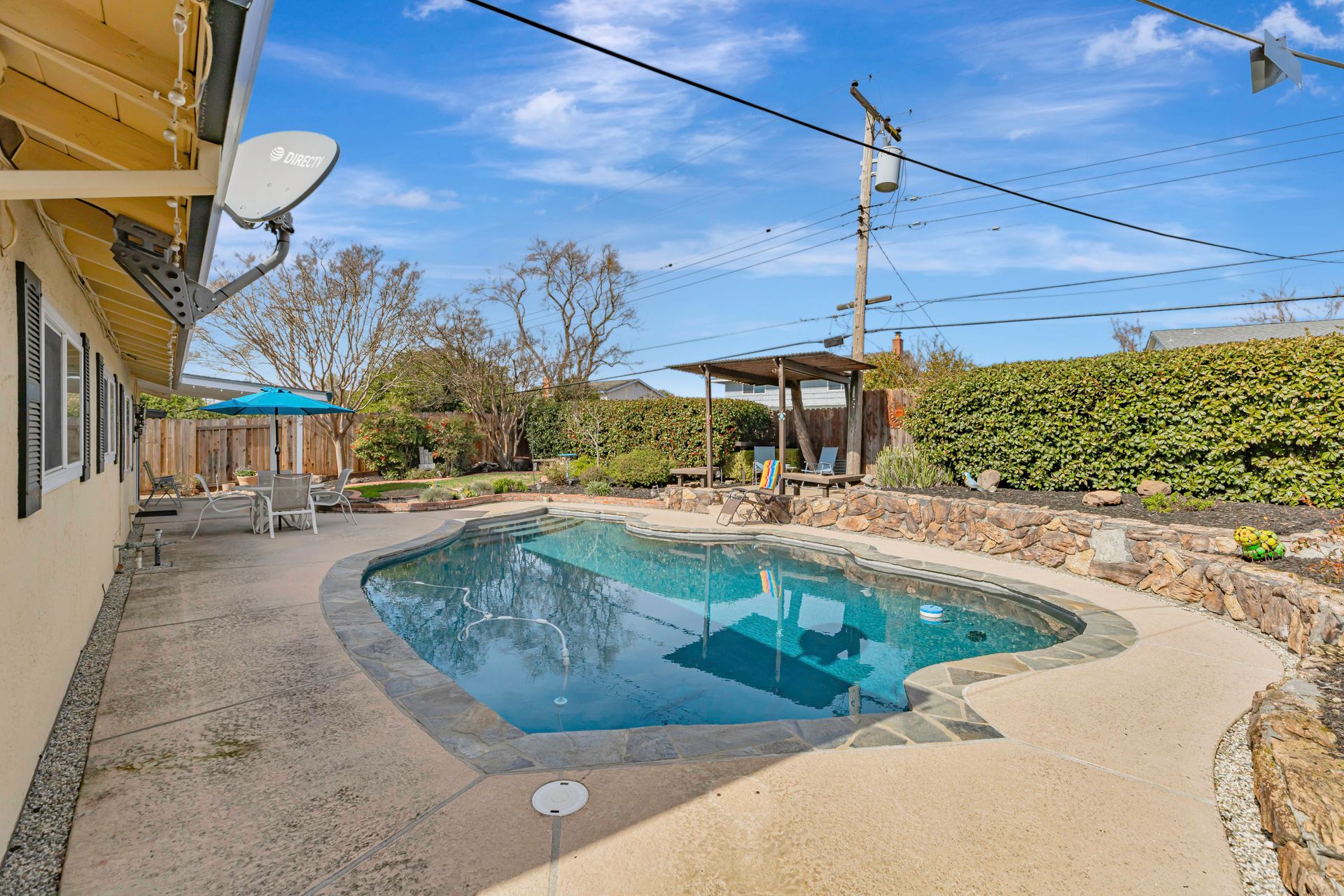 Welcome to this stunning 4 bed, 2.5-bath, 1,839 sq ft home on a spacious lot. This house offers the perfect blend of comfort, elegance, and modern upgrades in a prime location. A peaceful front patio sets the stage for the warmth and charm inside. The formal dining room, kitchen, and living room seamlessly overlook the gorgeous backyard and sparkling pool, creating a perfect indoor-outdoor flow. A skylight enhances the bright, inviting atmosphere. The upgraded kitchen is a chef’s dream, featuring granite countertops, stainless steel appliances, a wine fridge, and an island with a dining bar—ideal for hosting or enjoying casual meals. Stay cozy in winter by the upgraded electric fireplace and keep cool in summer with energy-efficient dual-pane windows, ceiling fans, and a new HVAC system installed in 2019. A new roof and water heater (both installed in 2019) add even more value and peace of mind. The primary suite offers a large walk-in closet and updated ensuite bathroom, while the hall bath was remodeled in 2020 with stylish modern finishes that add a touch of luxury. Additional conveniences include an indoor laundry room, half bath, and ample storage throughout Outside, enjoy a private backyard oasis —a covered patio is perfect for dining al fresco, while the sparkling pool offers a refreshing escape on hot summer days. The landscaped yard and covered deck provide the ideal setting for sunbathing, lounging, or entertaining guests. This home is perfect for year-round enjoyment, whether you're hosting summer gatherings by the pool or curling up with a book by the fireplace in the winter. Located in the highly sought-after San Juan Unified School District, this home is minutes from top-rated schools, parks, shopping, dining, and offers easy freeway access to downtown Sacramento.