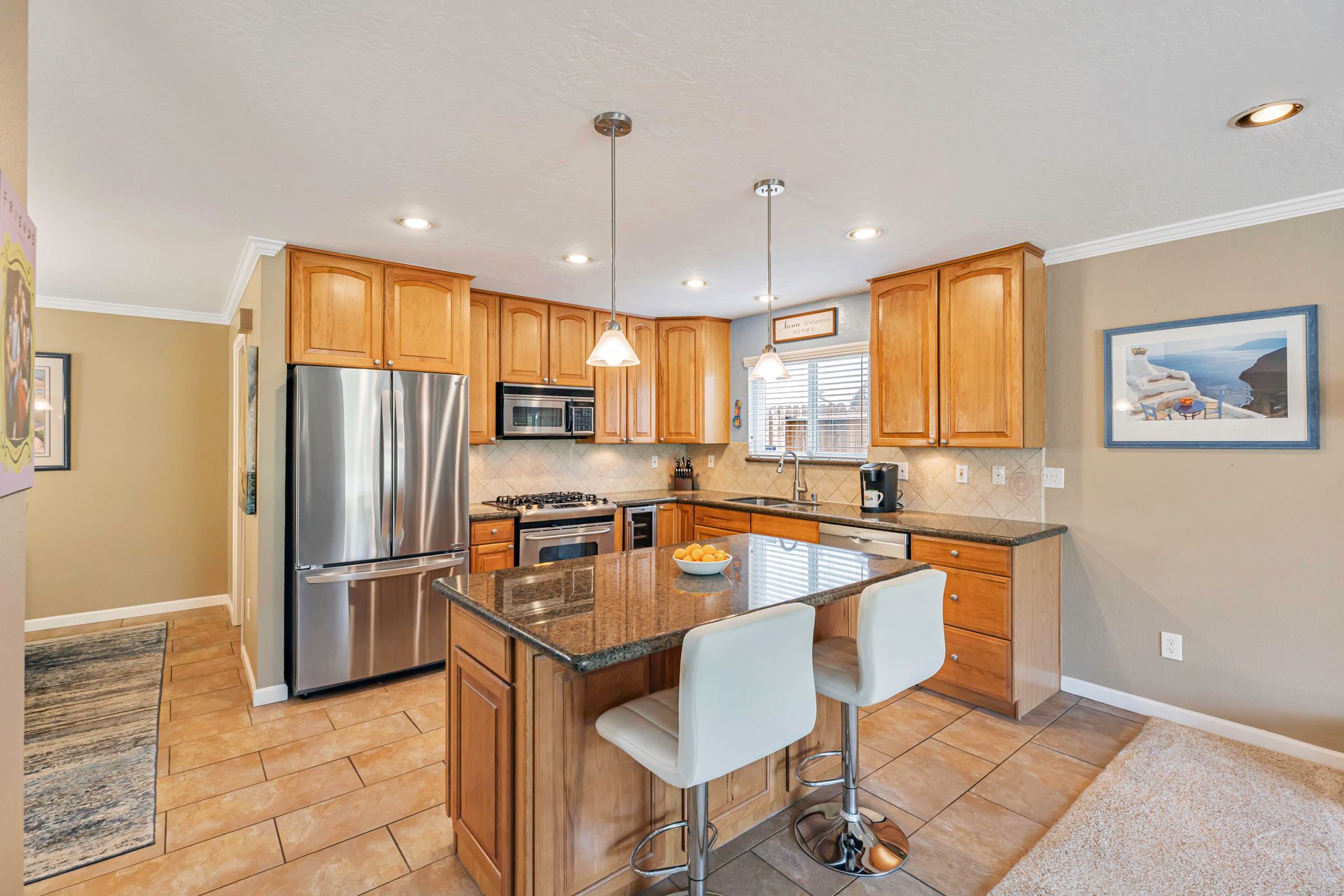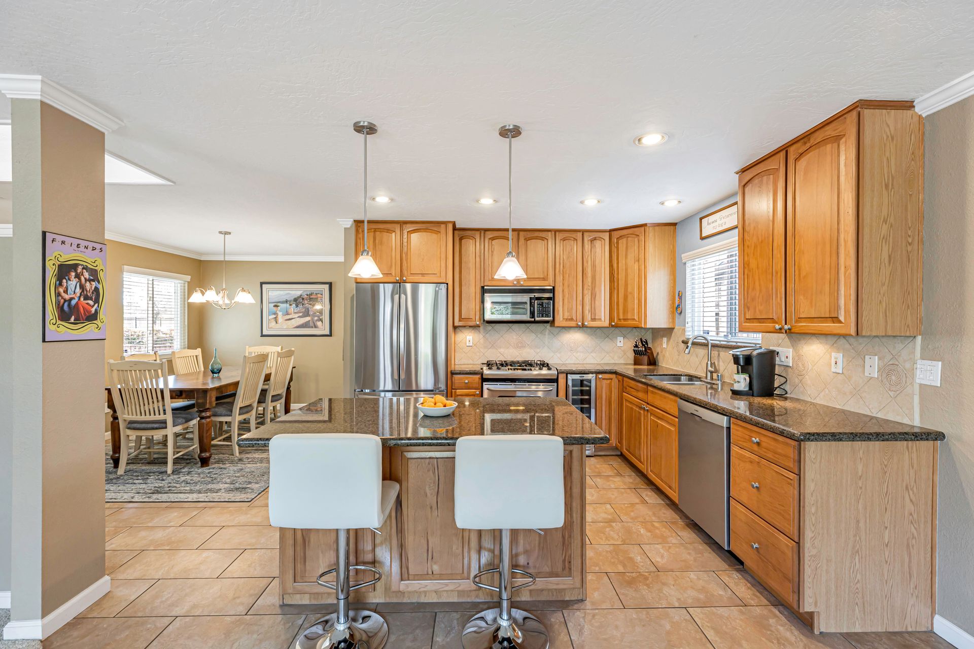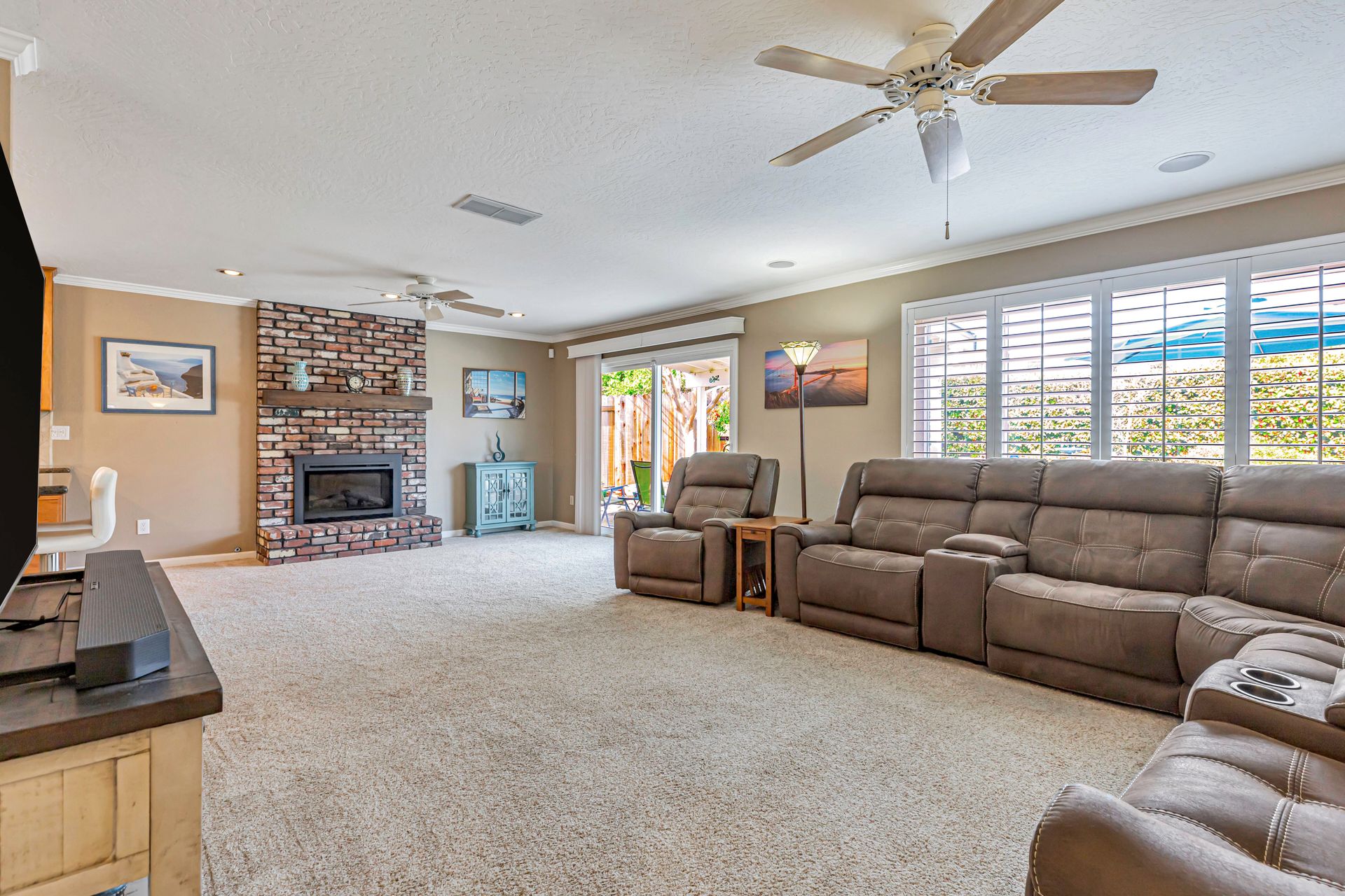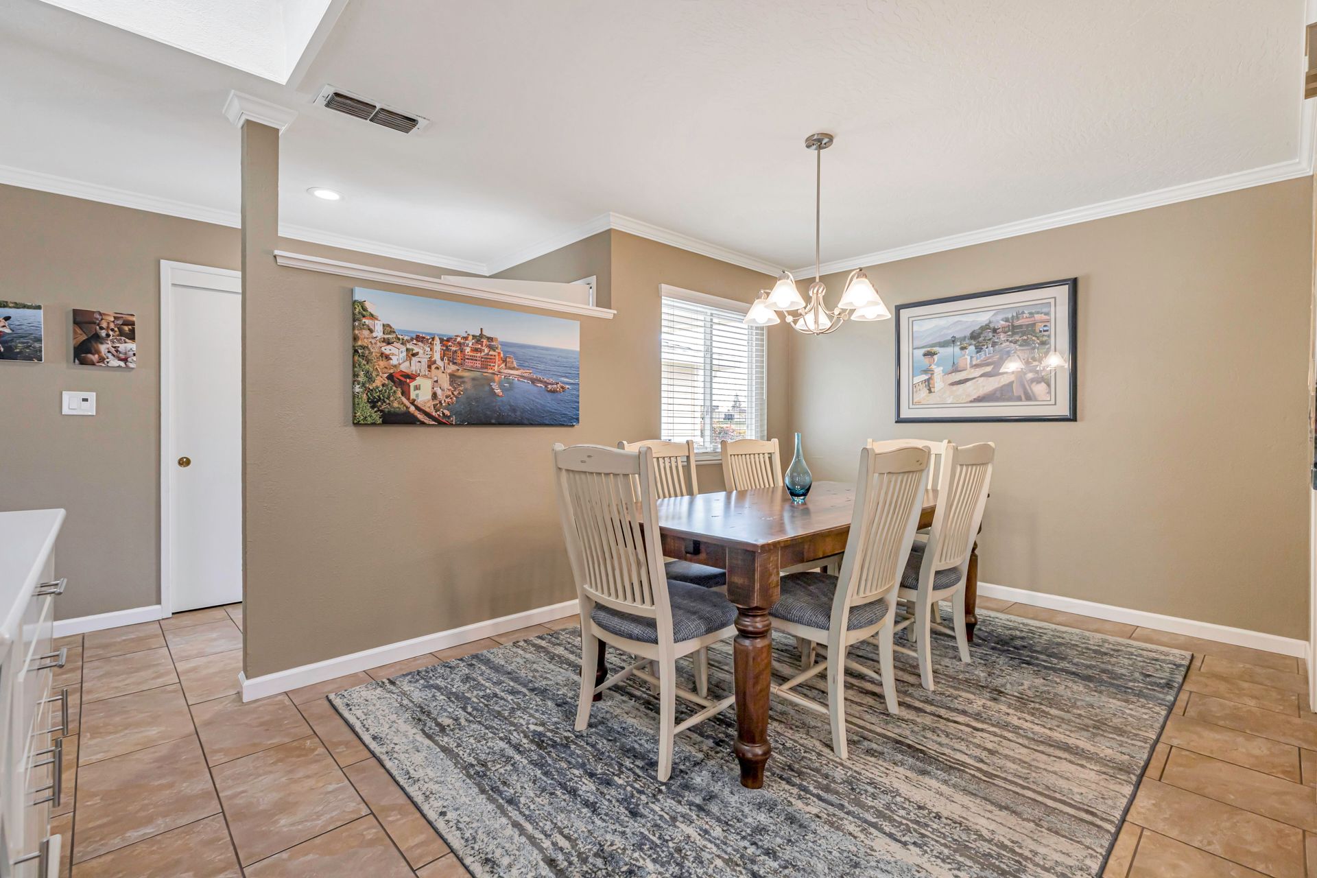 Welcome to this stunning 4 bed, 2.5-bath, 1,839 sq ft home on a spacious lot. This house offers the perfect blend of comfort, elegance, and modern upgrades in a prime location. A peaceful front patio sets the stage for the warmth and charm inside. The formal dining room, kitchen, and living room seamlessly overlook the gorgeous backyard and sparkling pool, creating a perfect indoor-outdoor flow. A skylight enhances the bright, inviting atmosphere. The upgraded kitchen is a chef’s dream, featuring granite countertops, stainless steel appliances, a wine fridge, and an island with a dining bar—ideal for hosting or enjoying casual meals. Stay cozy in winter by the upgraded electric fireplace and keep cool in summer with energy-efficient dual-pane windows, ceiling fans, and a new HVAC system installed in 2019. A new roof and water heater (both installed in 2019) add even more value and peace of mind. The primary suite offers a large walk-in closet and updated ensuite bathroom, while the hall bath was remodeled in 2020 with stylish modern finishes that add a touch of luxury. Additional conveniences include an indoor laundry room, half bath, and ample storage throughout Outside, enjoy a private backyard oasis —a covered patio is perfect for dining al fresco, while the sparkling pool offers a refreshing escape on hot summer days. The landscaped yard and covered deck provide the ideal setting for sunbathing, lounging, or entertaining guests. This home is perfect for year-round enjoyment, whether you're hosting summer gatherings by the pool or curling up with a book by the fireplace in the winter. Located in the highly sought-after San Juan Unified School District, this home is minutes from top-rated schools, parks, shopping, dining, and offers easy freeway access to downtown Sacramento.