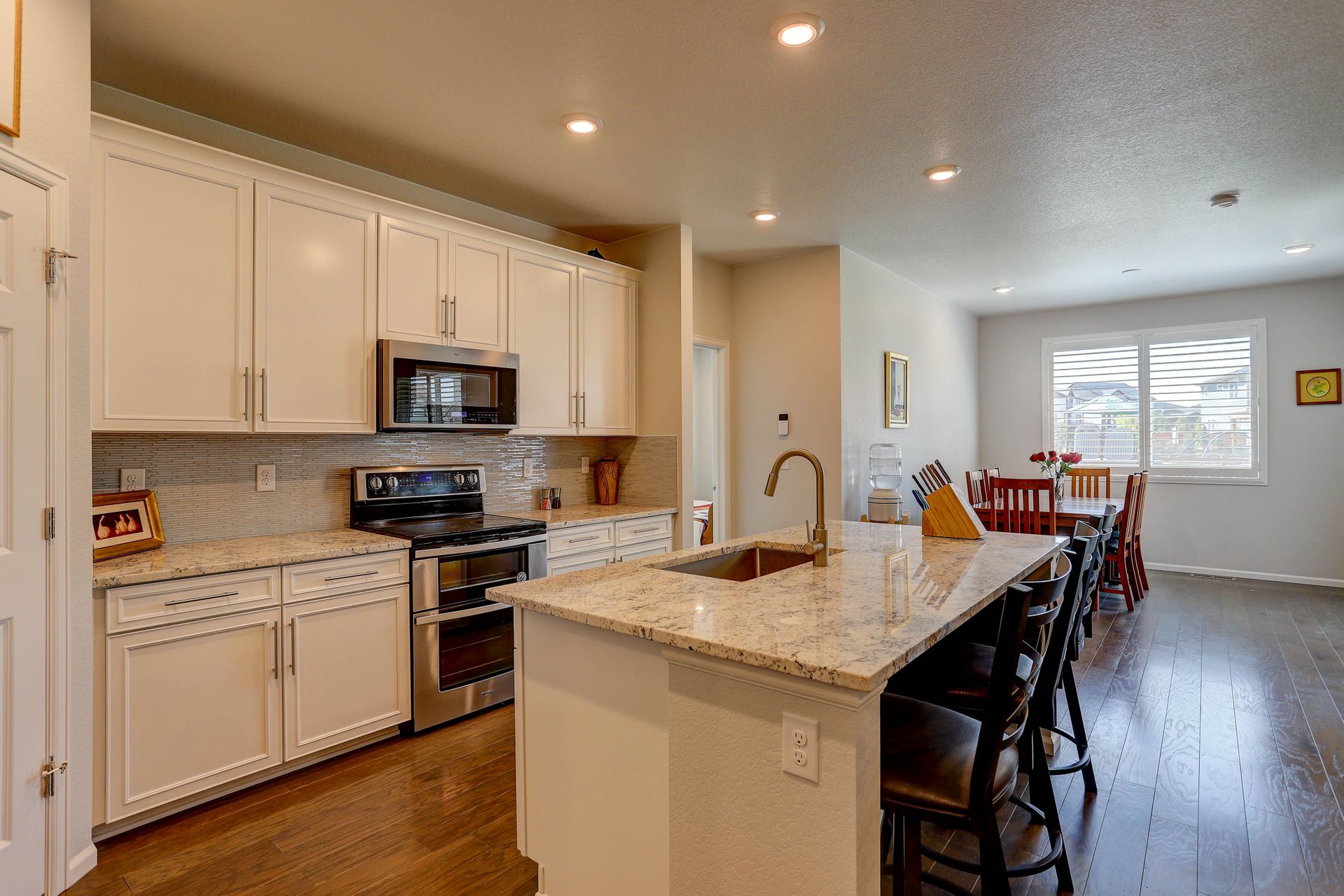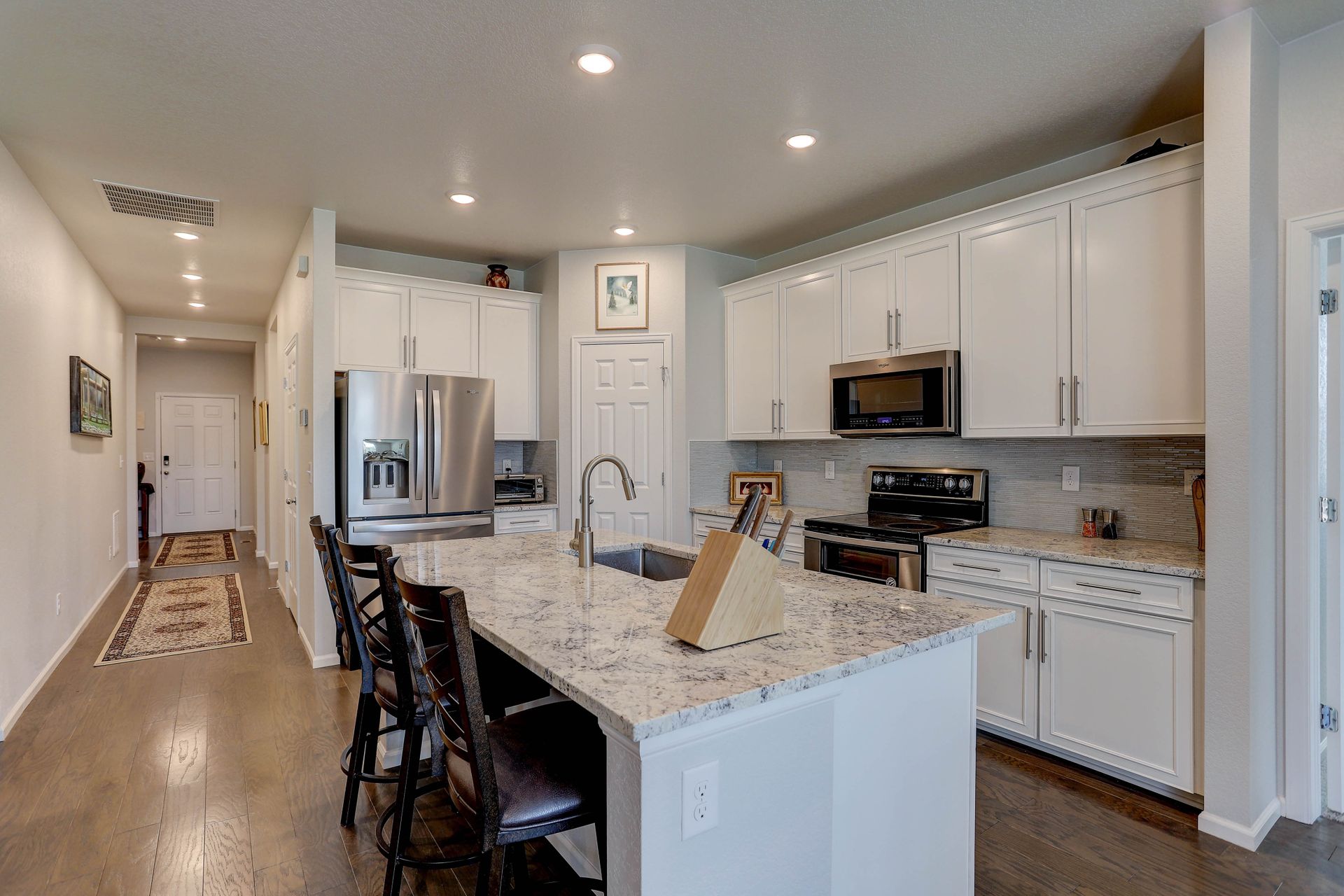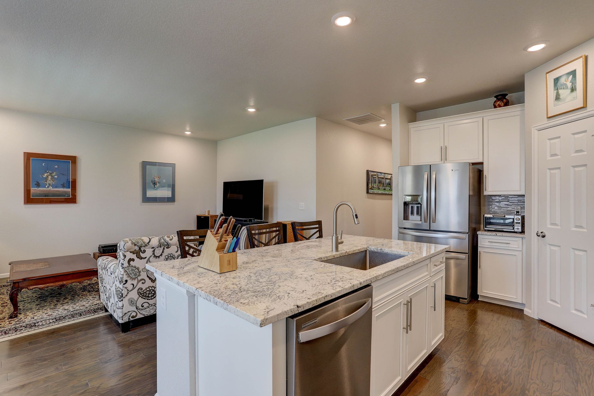 The best in no stairs living with $30,000 in carefully chosen upgrades, from gleaming wood floors to granite counters in Kitchen & Master Bath. Kitchen has 2-oven stove that has gas hookup available, 42 inch cabinets, glass tile backsplash, plus walk-in pantry & great island for food prep and informal gathering place.