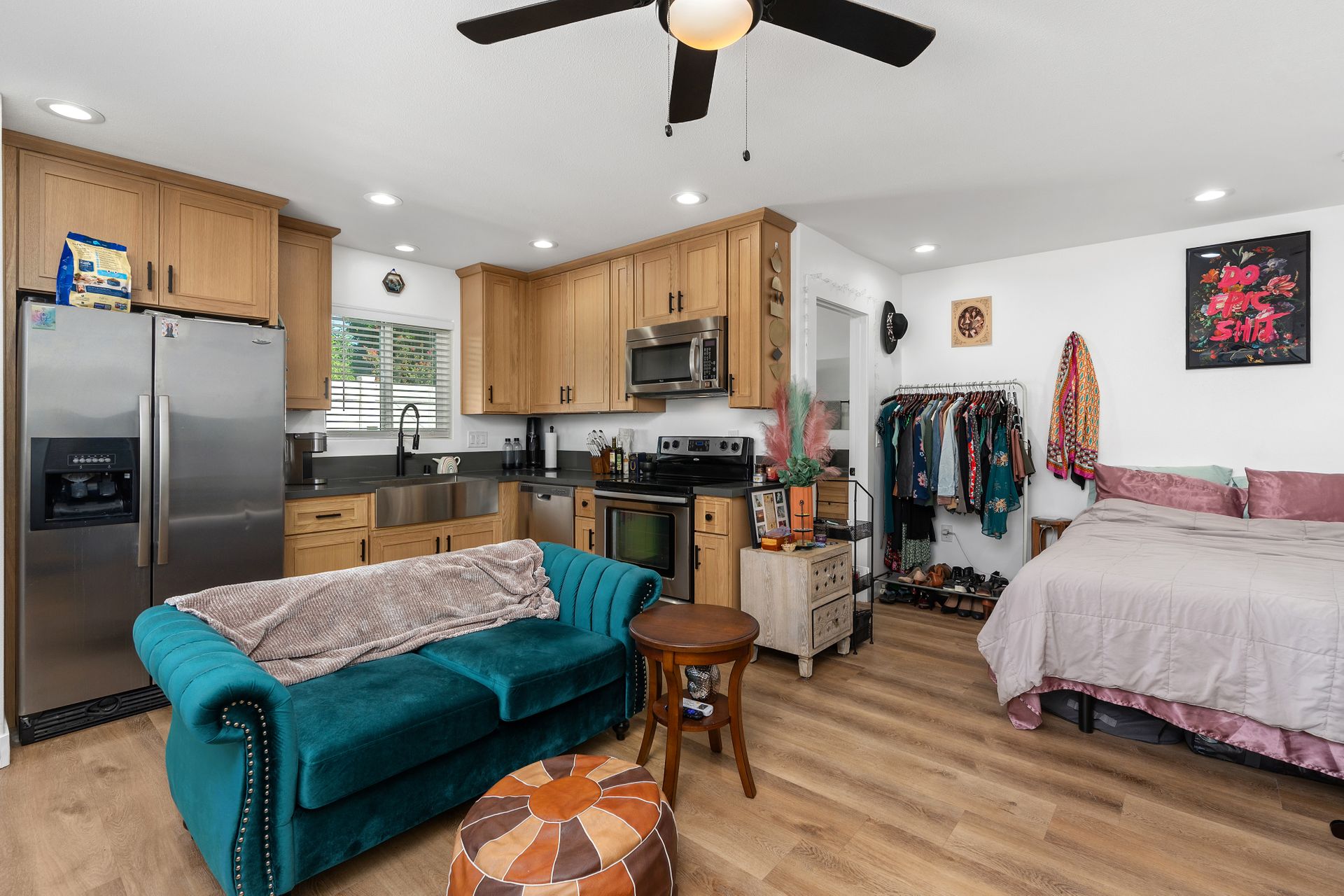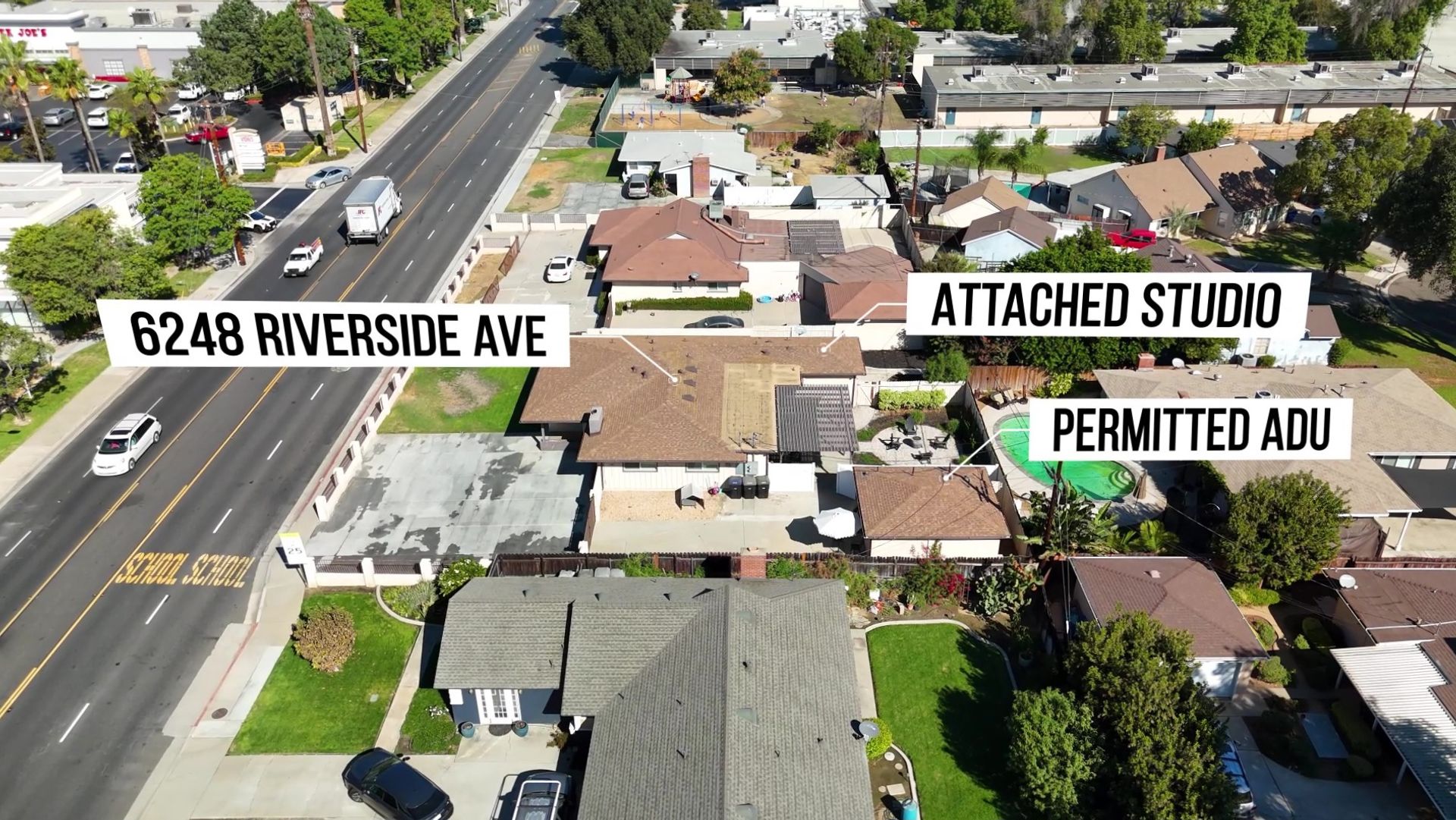 Three dwellings on a lot in the Magnolia Center neighborhood! The spacious main home has three bedrooms and two full bathrooms, and attached to the rear of the house with a private entrance is an independent fourth room that may be used as a mother-in-law suite with a kitchen and bathroom. Additionally, there is a detached permitted studio fully equipped with an individual bathroom, kitchen, and living space. Upon entering the main house, you are welcomed into an updated mid-century home, a comfortable retreat flowing easily between the living area, dining room, and updated kitchen illuminated by an abundance of natural light. Enjoy the ample cabinetry and quartz counters. You will appreciate the dual pane windows throughout, the wood-like tile floors, and ceiling fans in all bedrooms. Reap the benefits of a move-in ready ADU with its own address providing an excellent rental income opportunity, as well as the secondary studio attached to the house. All dwellings are single-level and include their own indoor laundry and backyard spaces. The property is well located across the street from the popular Riverside Plaza, near many amenities, schools, and the 91 freeway. This unique configuration of three residences presents an intriguing possibility for those interested in multi-unit living or investment opportunities. Don't wait! Make your appointment today!