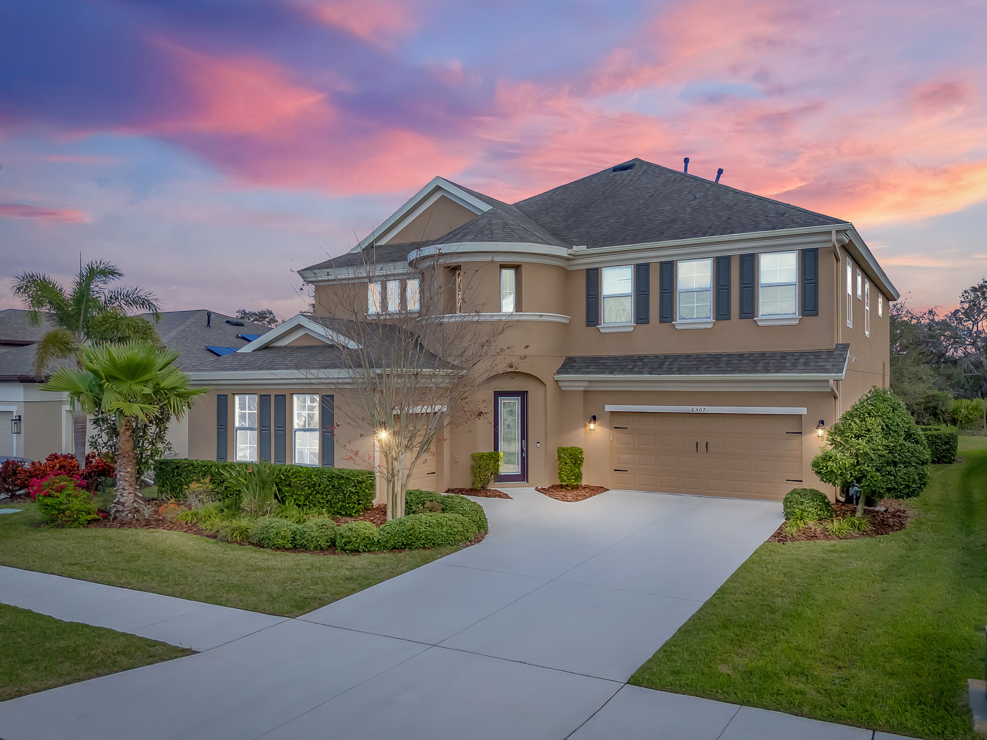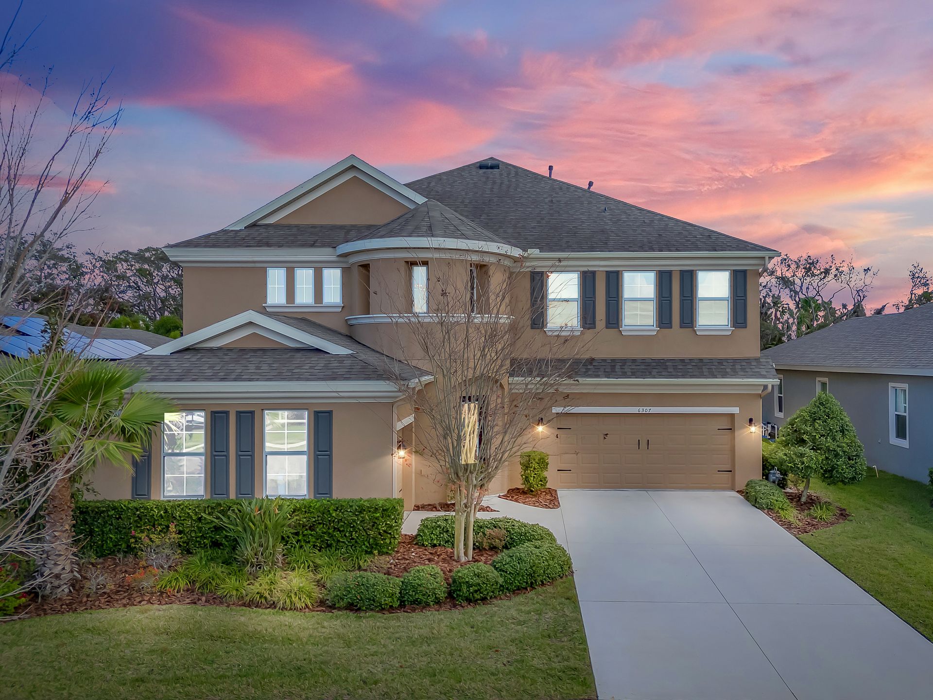 Welcome to this breathtaking 5-bedroom, 4.5-bath home with over 4,200 sqft of luxury living space, perfectly nestled on a serene conservation lot in the highly sought-after Waterset community. From the grand two-story foyer and elegant open staircase to the private office with French doors and formal dining room, this home exudes sophistication and style.