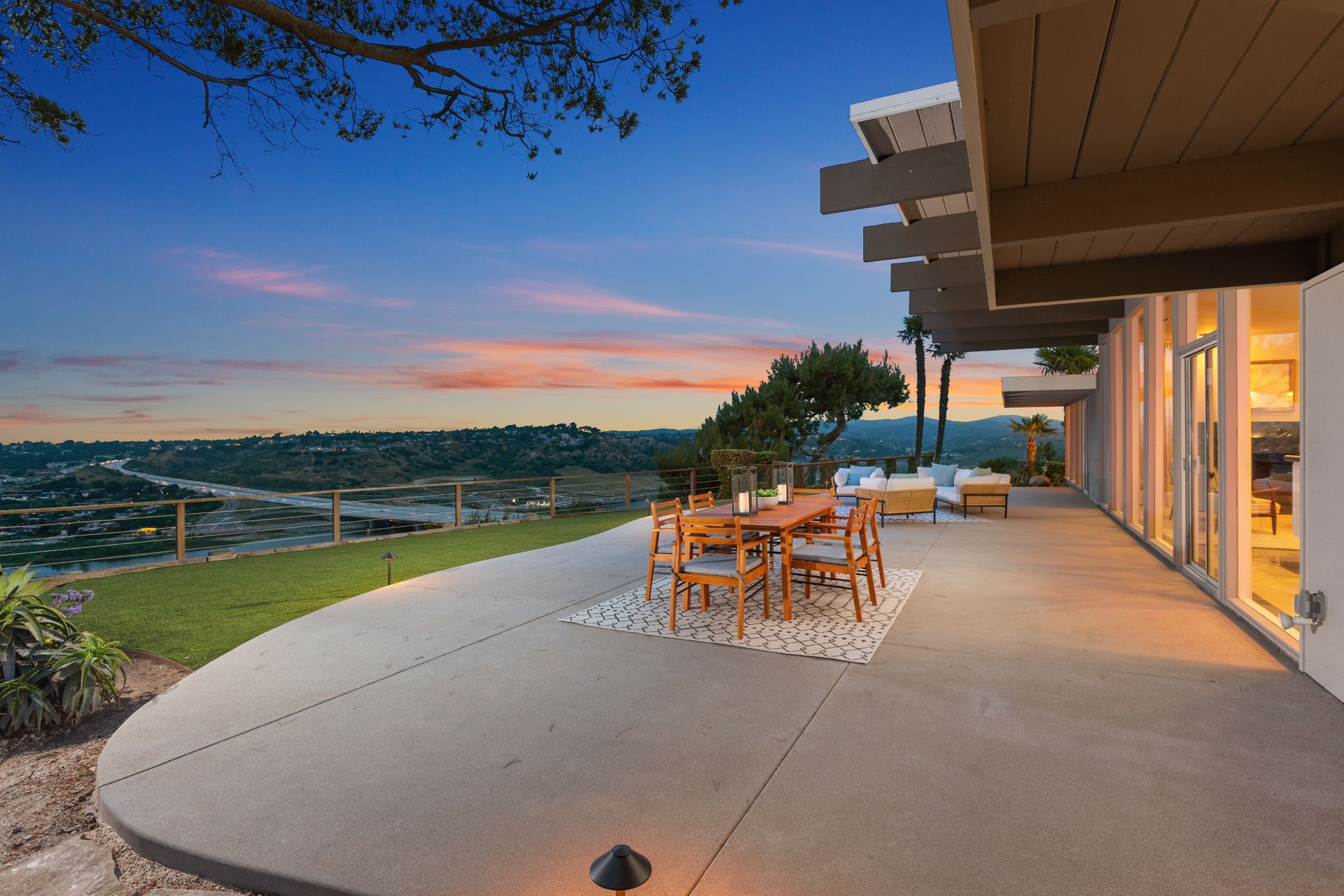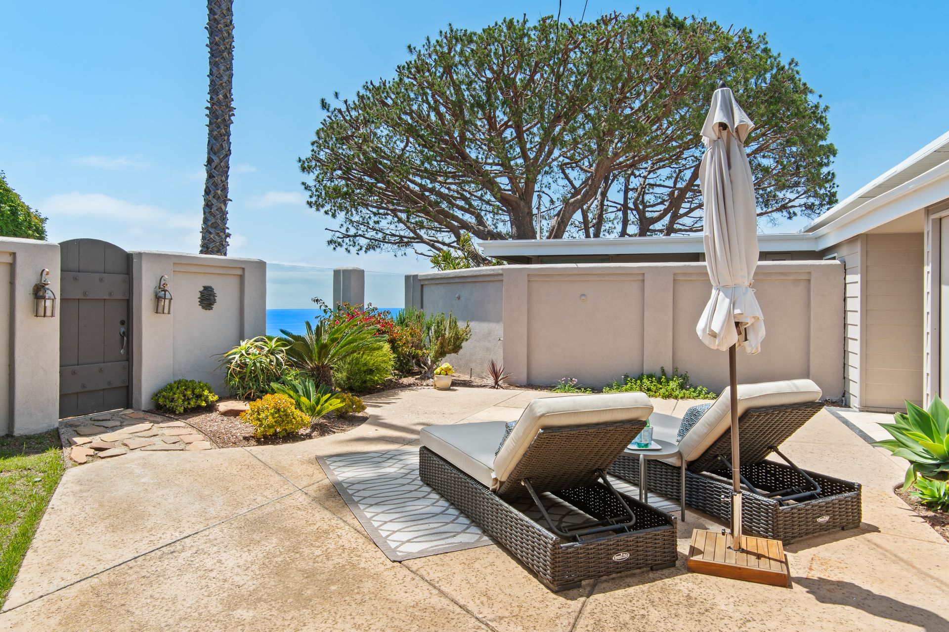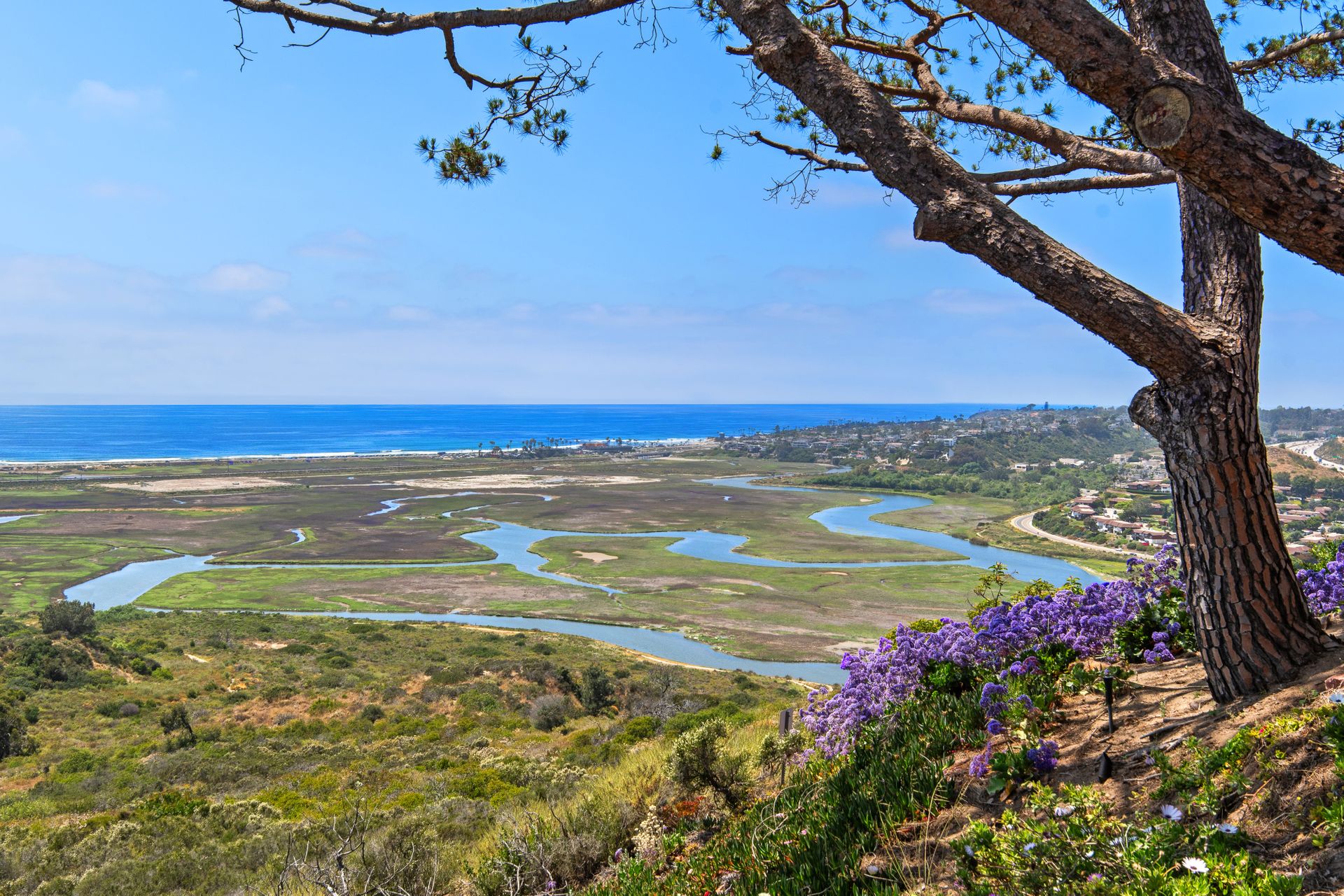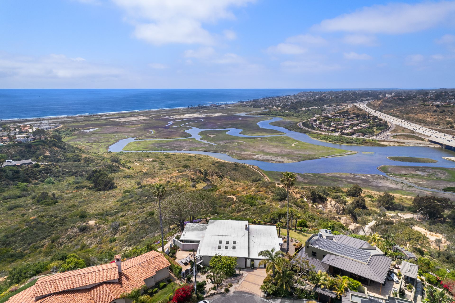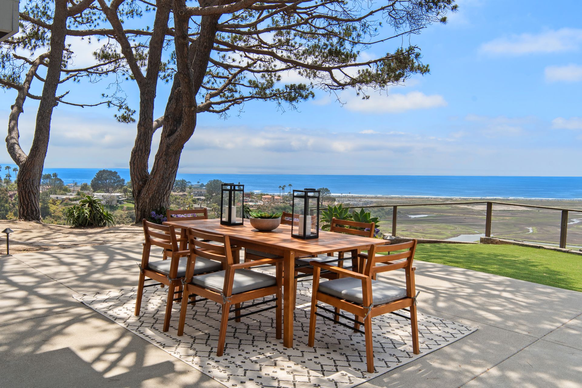 Properties like this are rarely available – combining an exceptional location, expansive land, and breathtaking views. Perched high on a hill west of the 5 freeway in highly sought-after Solana Beach, experience unobstructed whitewater views of Cardiff State Beach and the San Elijo Lagoon from every room in this single level home. The expansive lot is one of the largest along the coast at 1.28 acres, with a slope down toward the canyon and land that border the lagoon. The protected green space down below provides the ultimate in tranquility and FOREVER VIEWS. Enjoy effortless outdoor living with two distinct patios – one off the kitchen with panoramic views from the ocean to the mountains, and one off the living room that offers exceptional privacy and ocean views. Inside, the home is flooded with natural light from the floor-to-ceiling windows and new skylights. The gourmet kitchen comes equipped with new stainless-steel appliances (premium refrigerator, wine fridge, compactor and dishwasher), a double oven, gas cooktop with grill, high quality cabinets, a walk-in pantry, and granite counters. The views continue in the family room with fireplace and built-in cabinetry, and from the great room with dining and living areas. You’ll find two spacious bedrooms, each with their own en-suite bathroom, abundant closet space, and a wall of windows facing the ocean and lagoon. Other valuable improvements on the property include a new roof, beautiful new Luxury Vinyl Plank and carpet, new A/C units and furnaces, LED recessed lighting throughout, new interior and exterior paint, new concrete patio and turf in the backyard, new low-voltage lighting outside, and 2 new 40-gal water heaters. The time is now. Don’t miss your chance to own this stunning property.