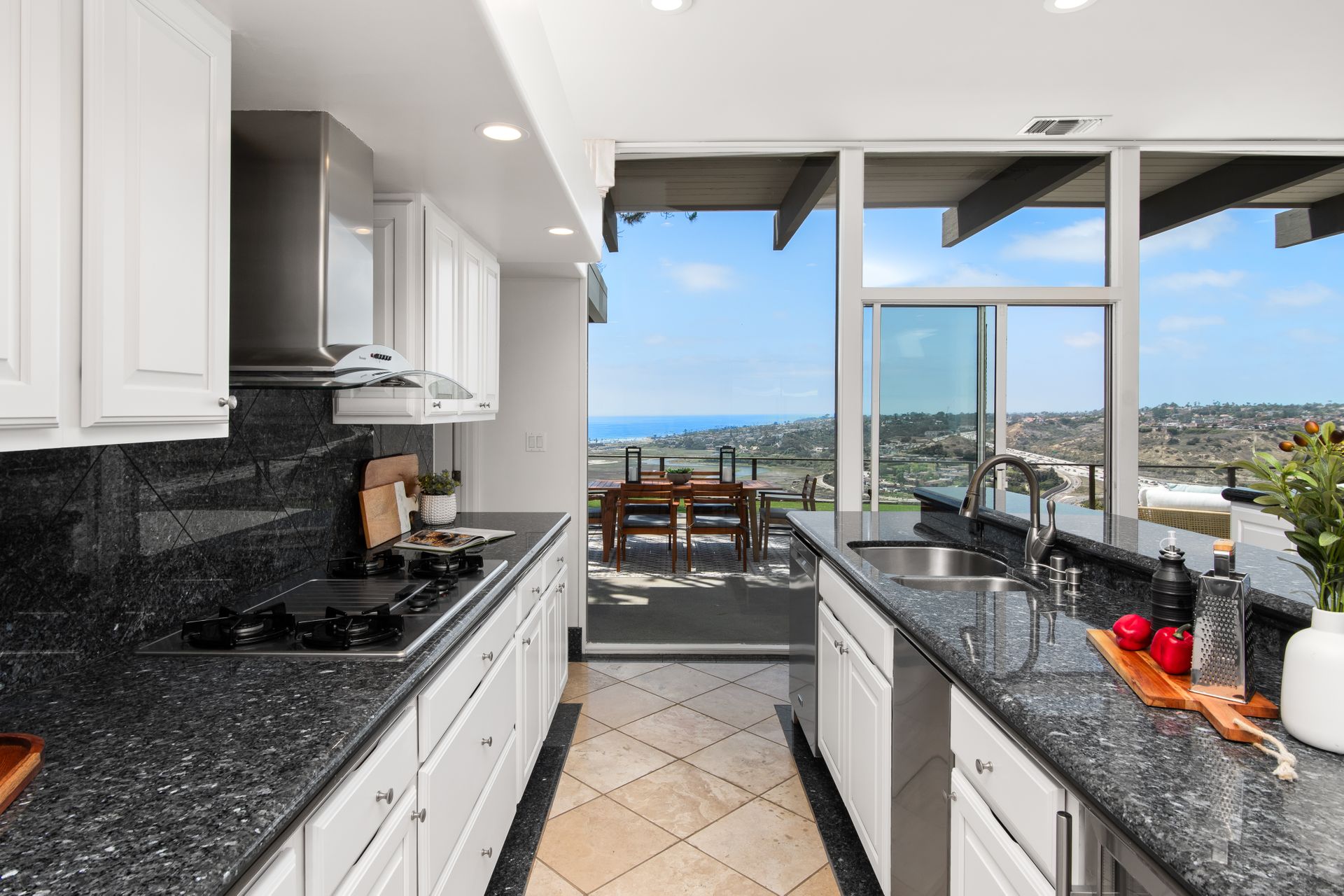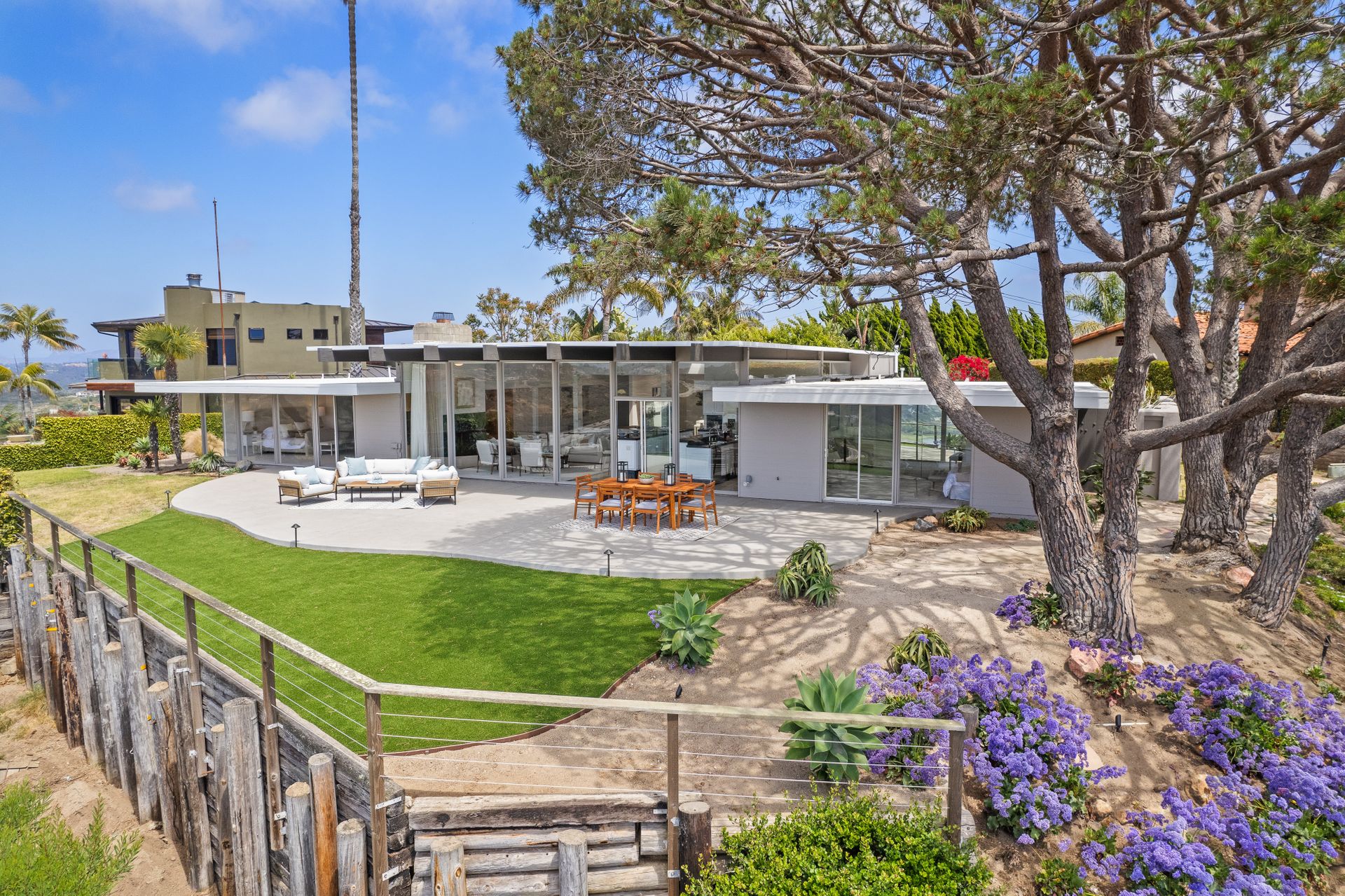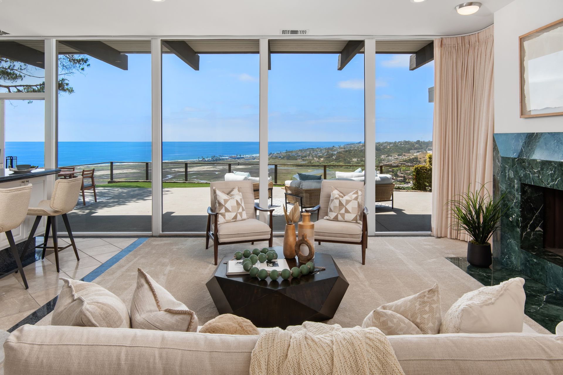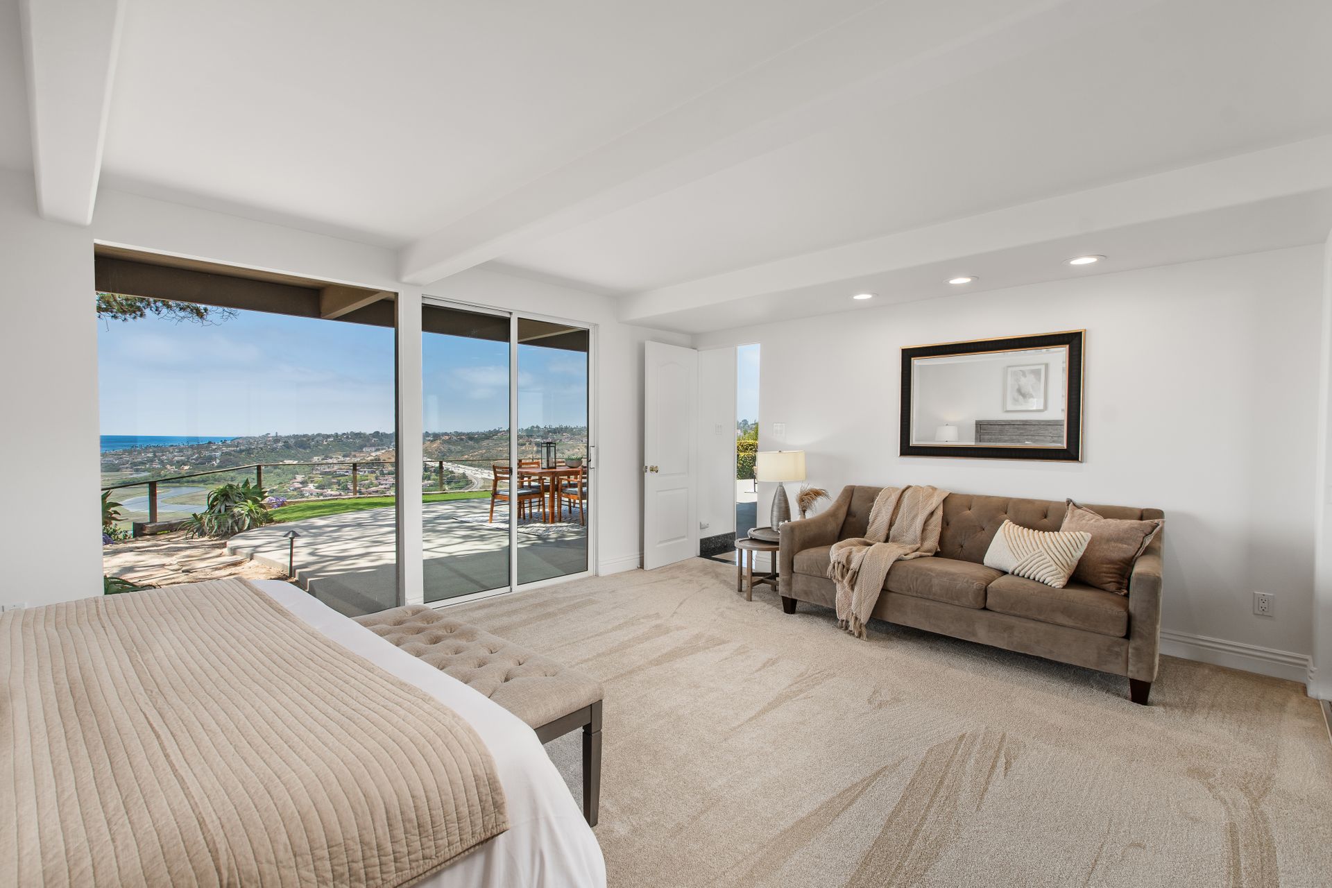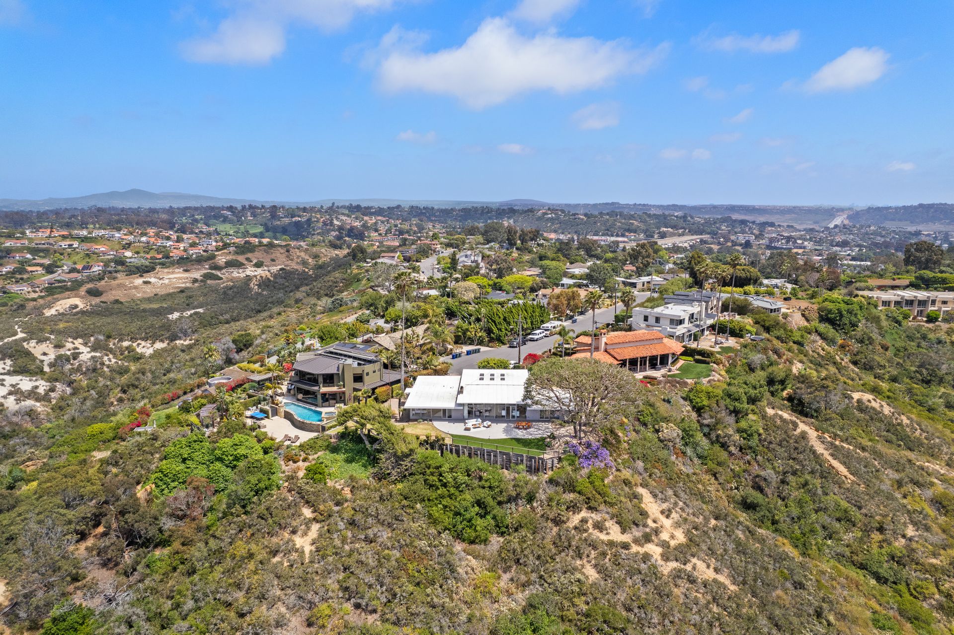 Properties like this are rarely available – combining an exceptional location, expansive land, and breathtaking views. Perched high on a hill west of the 5 freeway in highly sought-after Solana Beach, experience unobstructed whitewater views of Cardiff State Beach and the San Elijo Lagoon from every room in this single level home. The expansive lot is one of the largest along the coast at 1.28 acres, with a slope down toward the canyon and land that border the lagoon. The protected green space down below provides the ultimate in tranquility and FOREVER VIEWS. Enjoy effortless outdoor living with two distinct patios – one off the kitchen with panoramic views from the ocean to the mountains, and one off the living room that offers exceptional privacy and ocean views. Inside, the home is flooded with natural light from the floor-to-ceiling windows and new skylights. The gourmet kitchen comes equipped with new stainless-steel appliances (premium refrigerator, wine fridge, compactor and dishwasher), a double oven, gas cooktop with grill, high quality cabinets, a walk-in pantry, and granite counters. The views continue in the family room with fireplace and built-in cabinetry, and from the great room with dining and living areas. You’ll find two spacious bedrooms, each with their own en-suite bathroom, abundant closet space, and a wall of windows facing the ocean and lagoon. Other valuable improvements on the property include a new roof, beautiful new Luxury Vinyl Plank and carpet, new A/C units and furnaces, LED recessed lighting throughout, new interior and exterior paint, new concrete patio and turf in the backyard, new low-voltage lighting outside, and 2 new 40-gal water heaters. The time is now. Don’t miss your chance to own this stunning property.