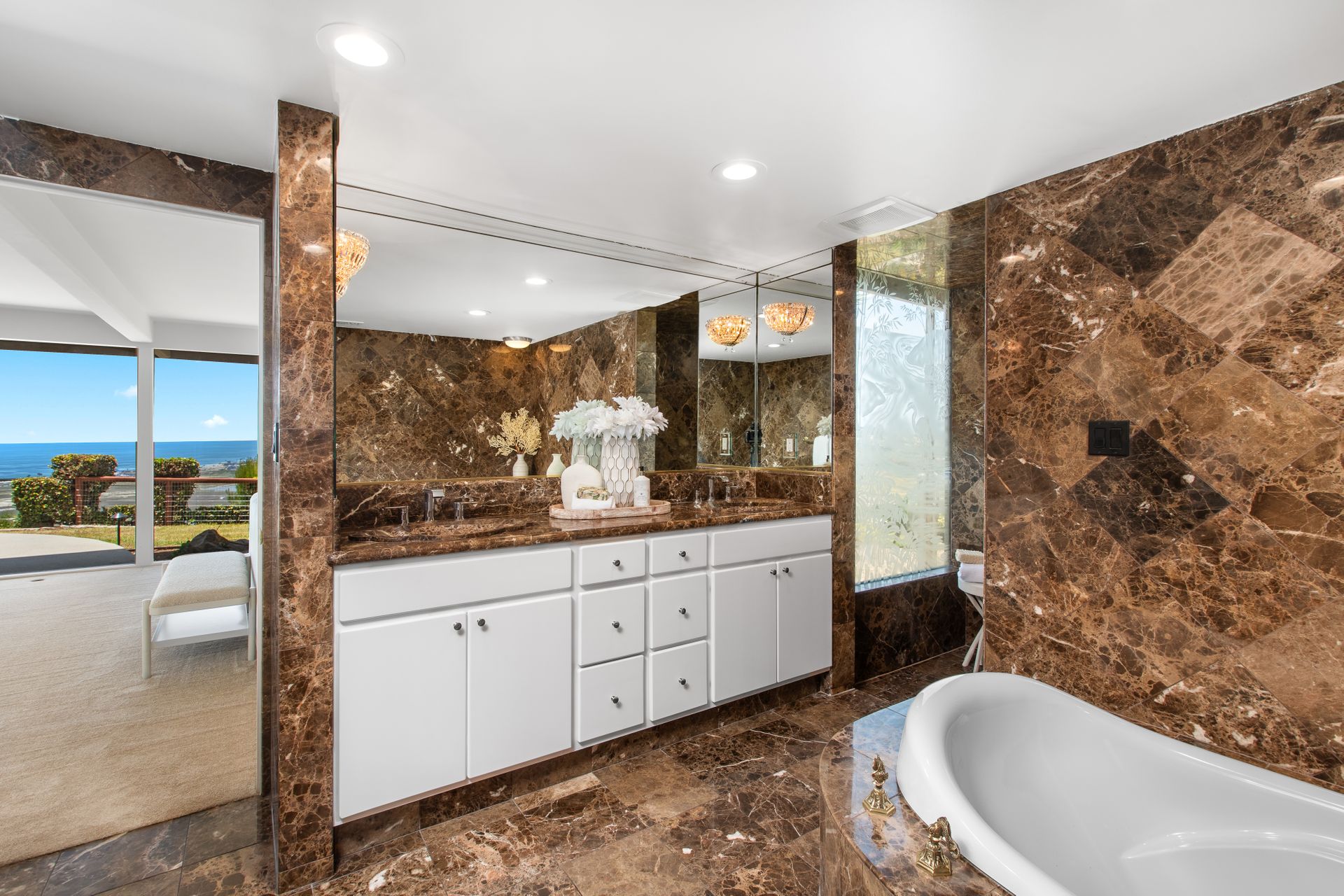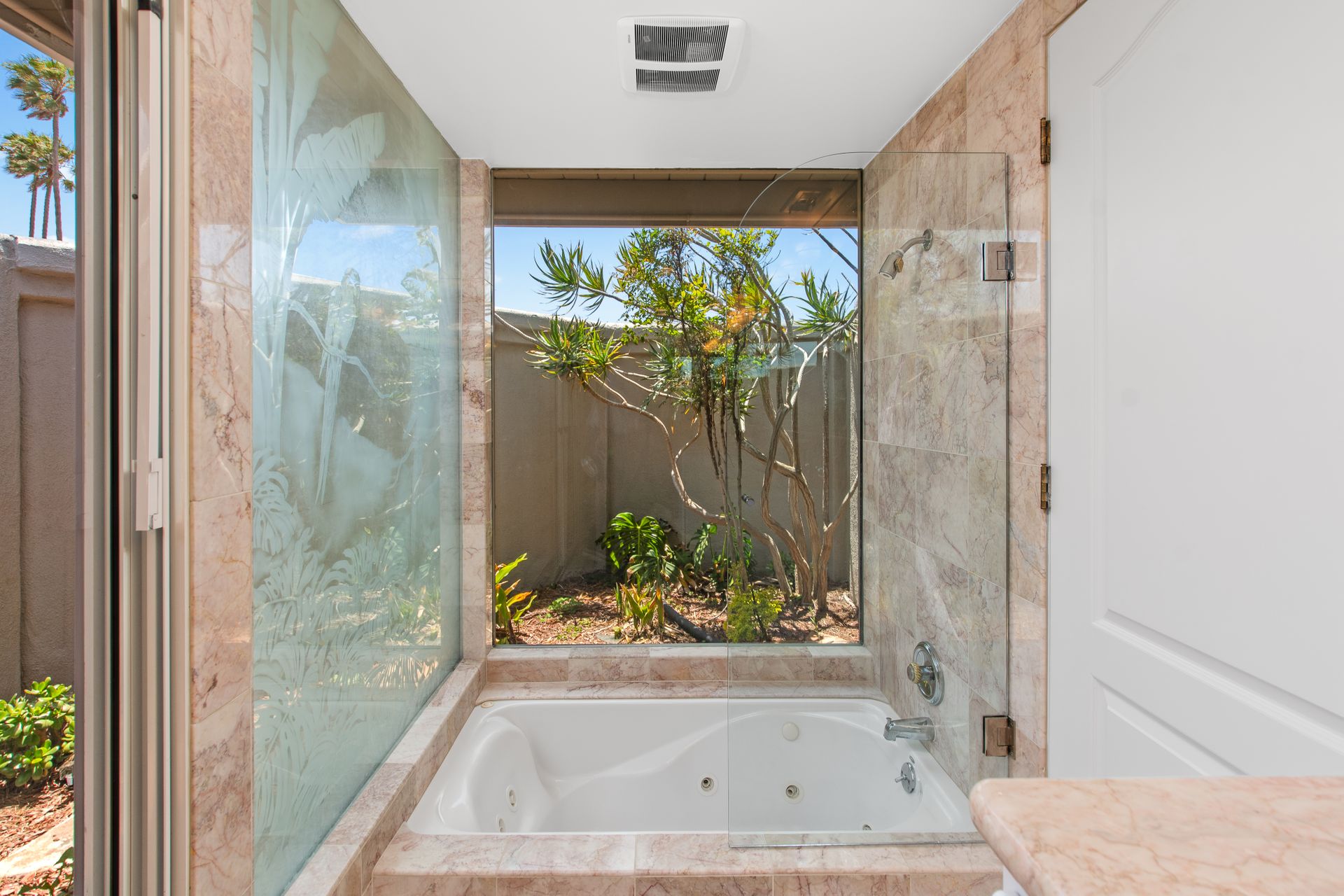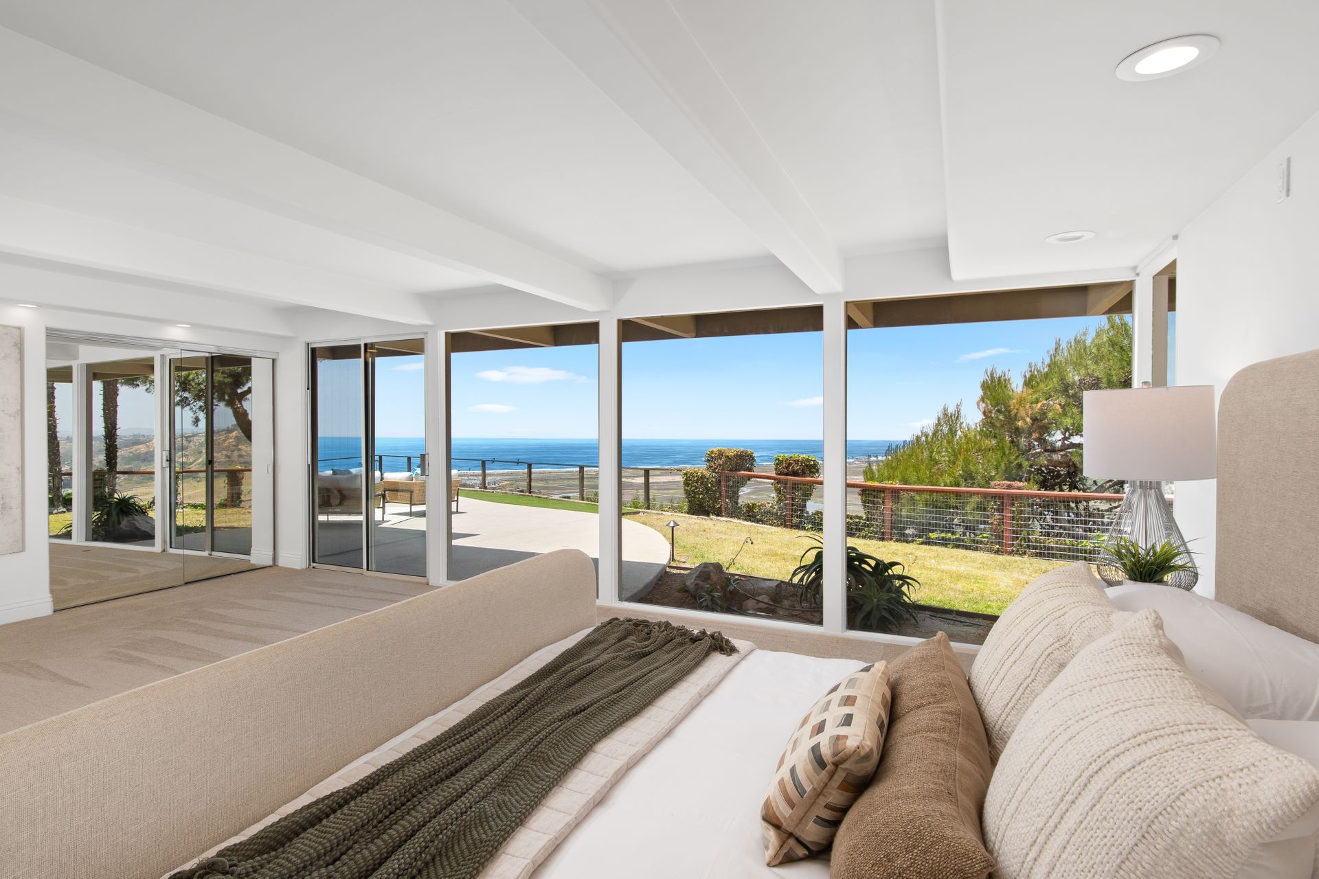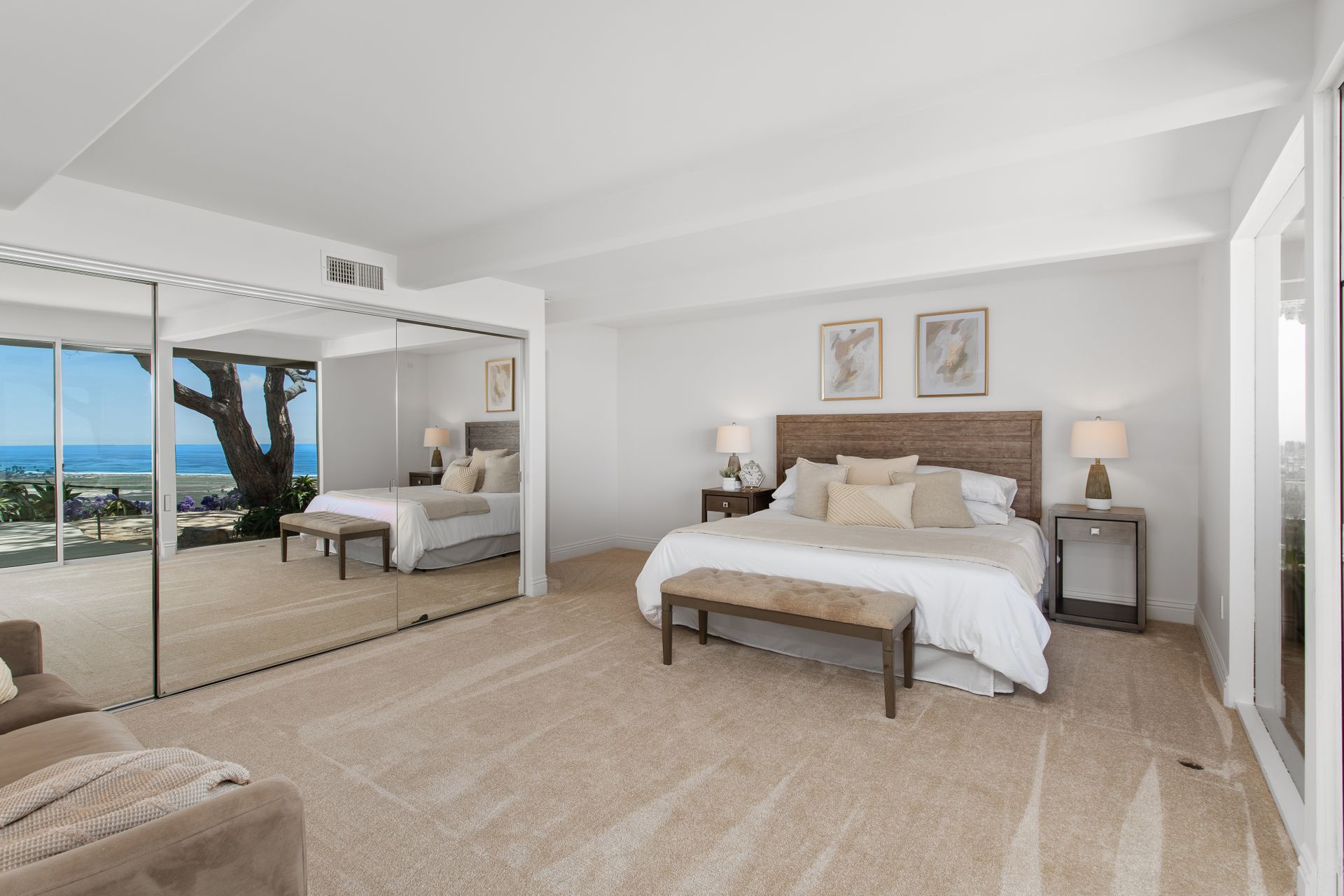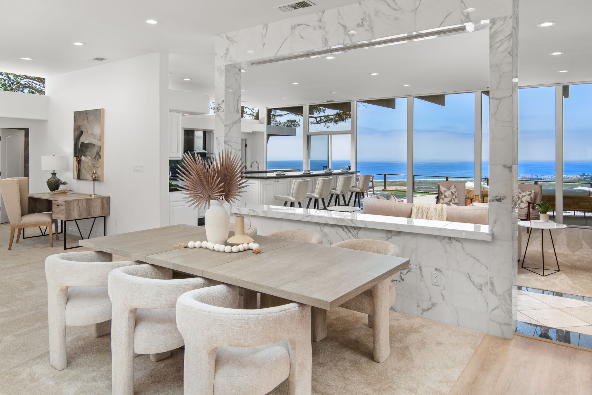 Properties like this are rarely available – combining an exceptional location, expansive land, and breathtaking views. Perched high on a hill west of the 5 freeway in highly sought-after Solana Beach, experience unobstructed whitewater views of Cardiff State Beach and the San Elijo Lagoon from every room in this single level home. The expansive lot is one of the largest along the coast at 1.28 acres, with a slope down toward the canyon and land that border the lagoon. The protected green space down below provides the ultimate in tranquility and FOREVER VIEWS. Enjoy effortless outdoor living with two distinct patios – one off the kitchen with panoramic views from the ocean to the mountains, and one off the living room that offers exceptional privacy and ocean views. Inside, the home is flooded with natural light from the floor-to-ceiling windows and new skylights. The gourmet kitchen comes equipped with new stainless-steel appliances (premium refrigerator, wine fridge, compactor and dishwasher), a double oven, gas cooktop with grill, high quality cabinets, a walk-in pantry, and granite counters. The views continue in the family room with fireplace and built-in cabinetry, and from the great room with dining and living areas. You’ll find two spacious bedrooms, each with their own en-suite bathroom, abundant closet space, and a wall of windows facing the ocean and lagoon. Other valuable improvements on the property include a new roof, beautiful new Luxury Vinyl Plank and carpet, new A/C units and furnaces, LED recessed lighting throughout, new interior and exterior paint, new concrete patio and turf in the backyard, new low-voltage lighting outside, and 2 new 40-gal water heaters. The time is now. Don’t miss your chance to own this stunning property.