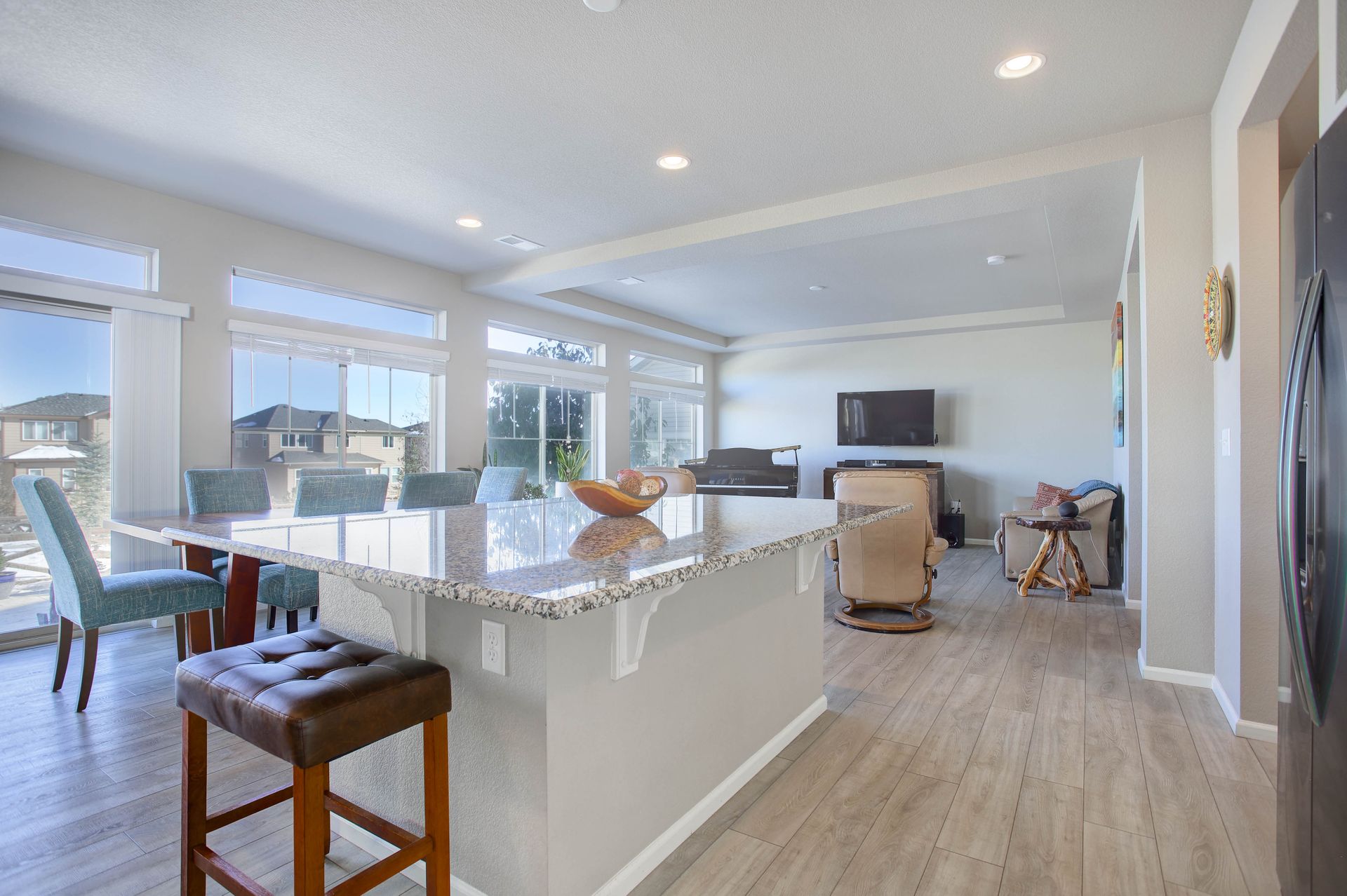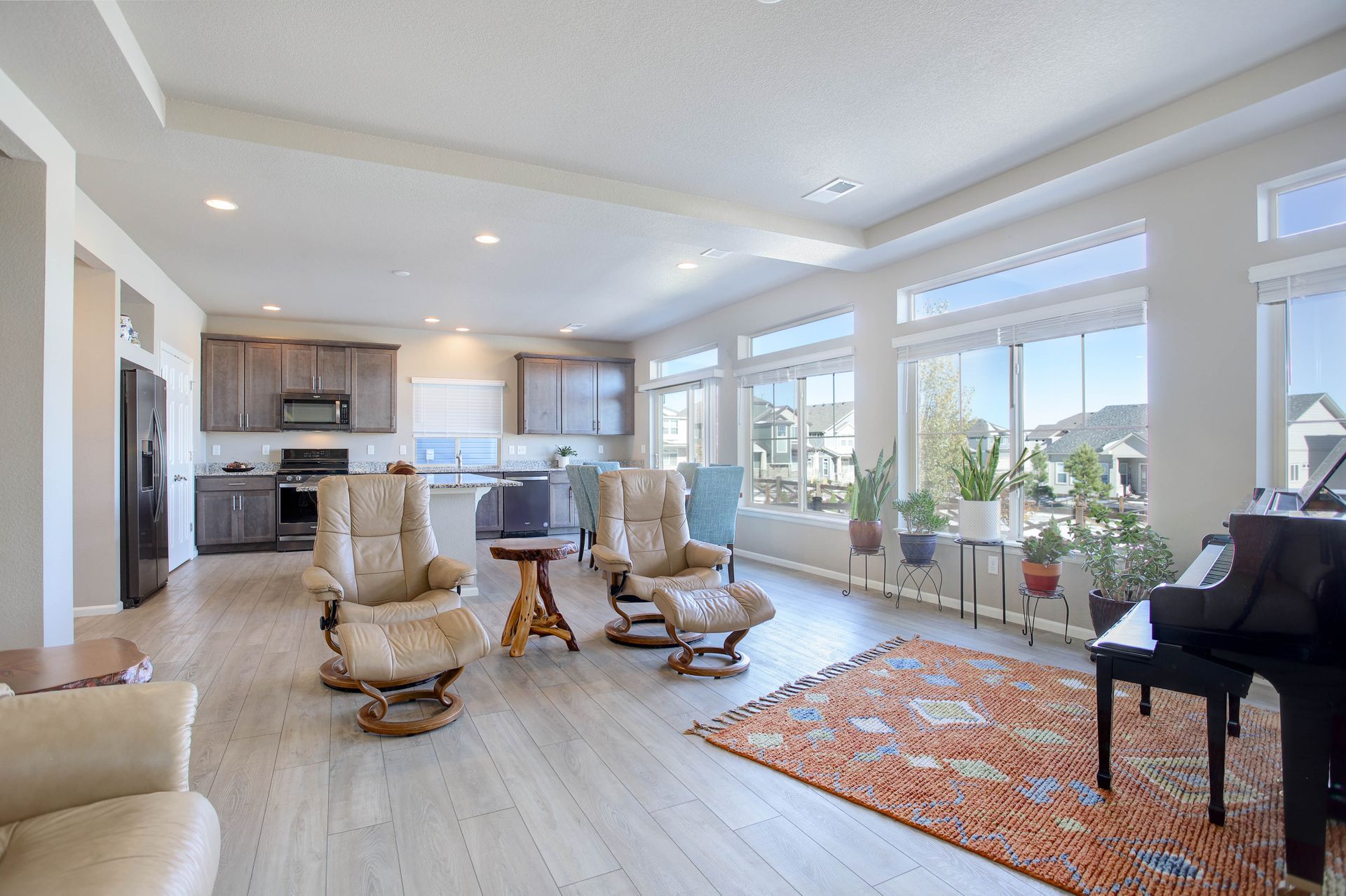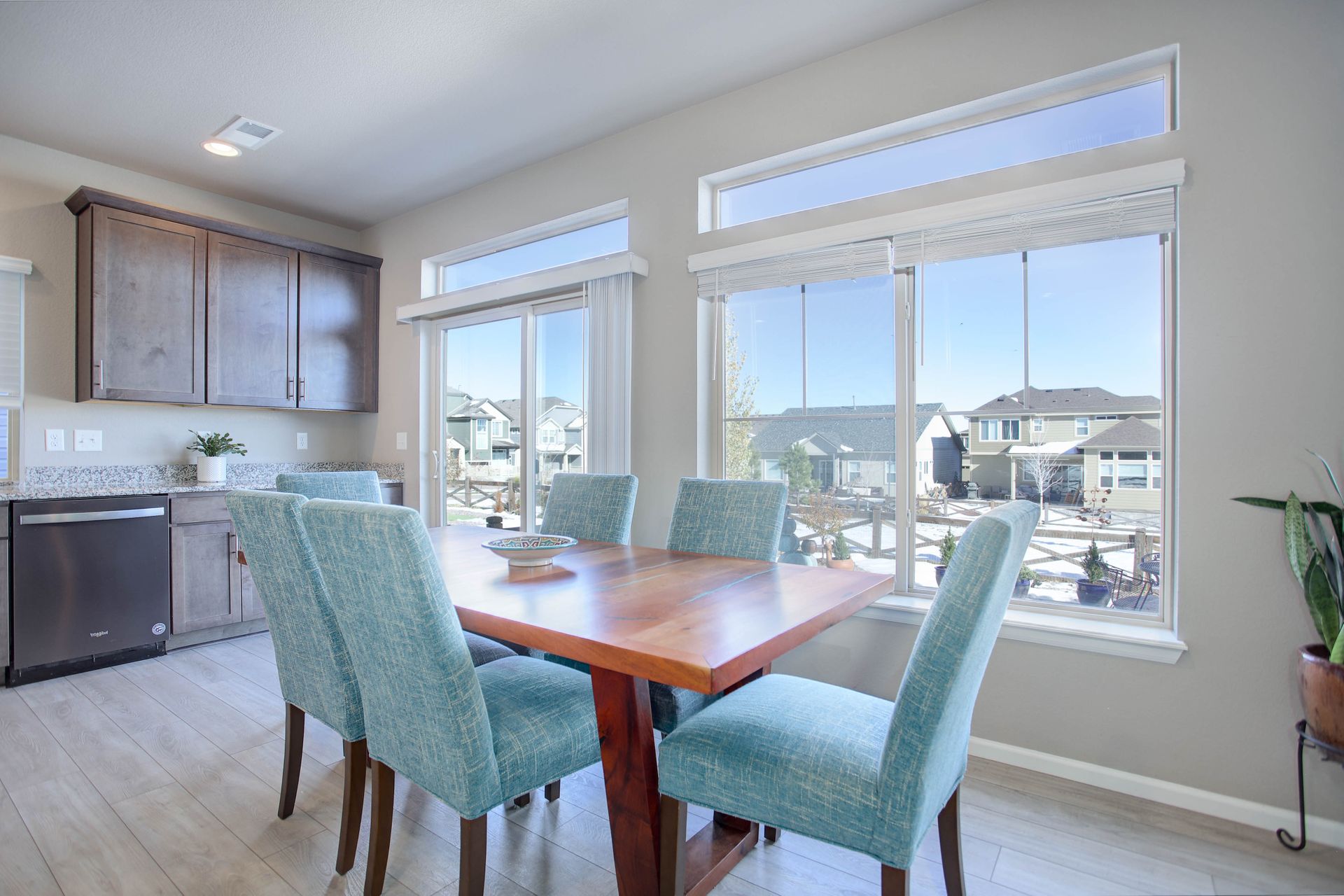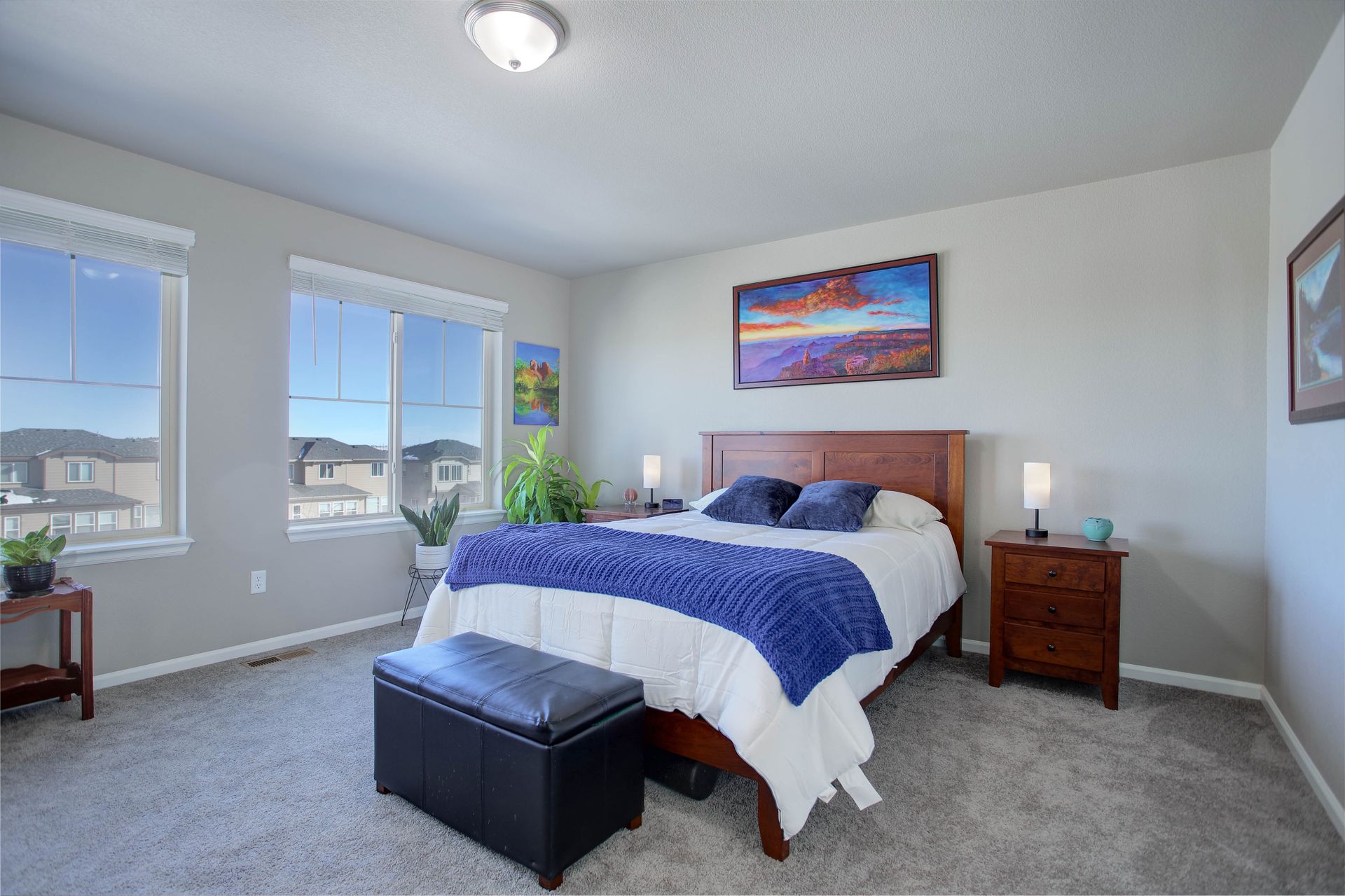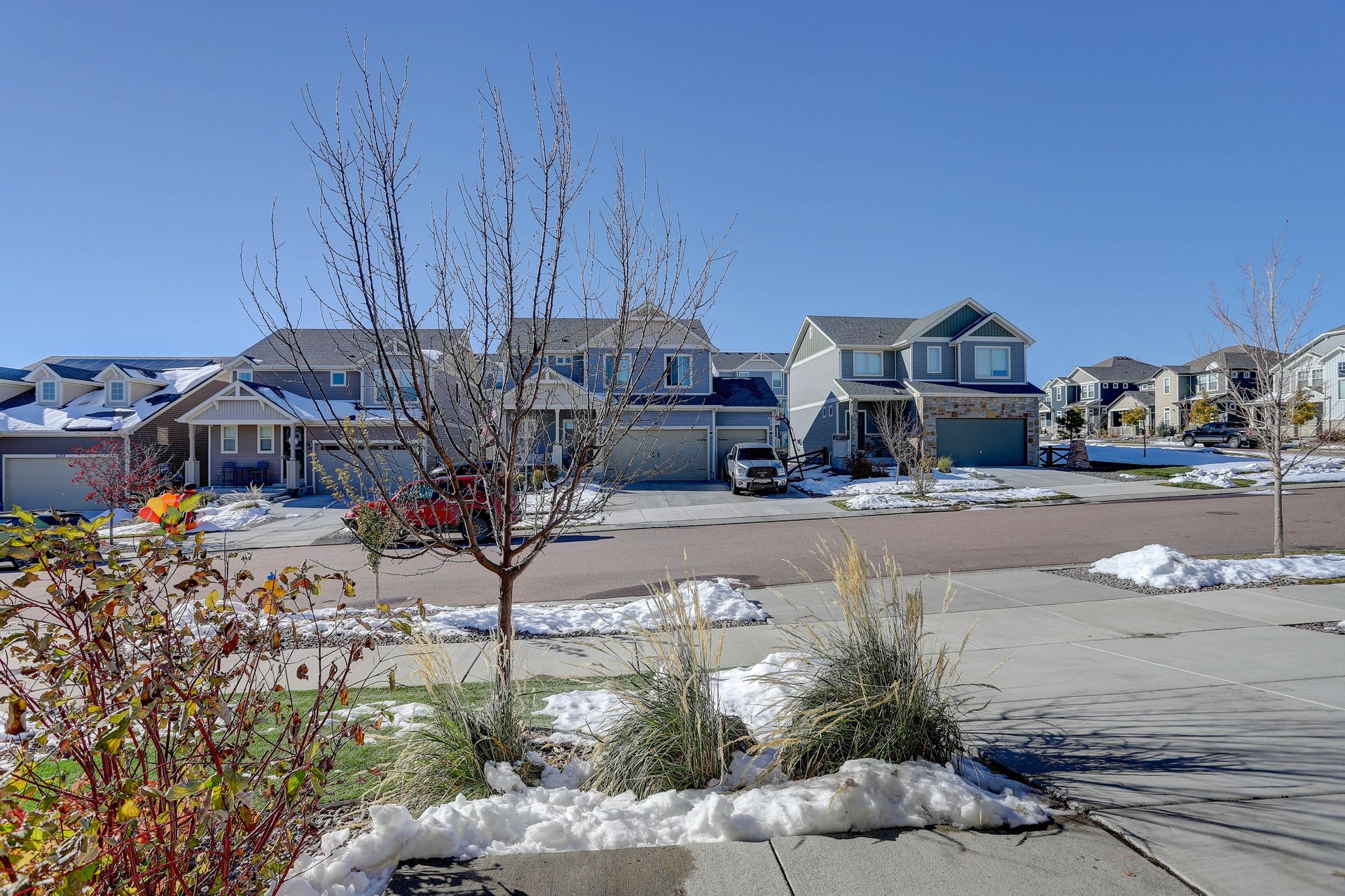 Discover your ideal living space in this stunning three-bedroom, three-bath home, located in the highly desirable Banning Lewis community. Enjoy easy access to parks, trails and vibrant community events. This beautifully designed residence backs onto a large greenbelt with direct access to trails right out your back door, perfect for outdoor enthusiasts. Inside, the inviting open floor plan seamlessly connects the living, dining and kitchen areas, ideal for entertaining. The gourmet kitchen feartures a 5 burner gas stove, generous counter space, a stylish island and large pantry. Upstairs, retreat to the spacious primary bedroom, complete with large en-suite bath and walk-in closet. You'll also appreciate the convenience of a bonus loft area and an upstairs laundry room. This home is more than just a place to live; it's a lifestyle waiting for you.