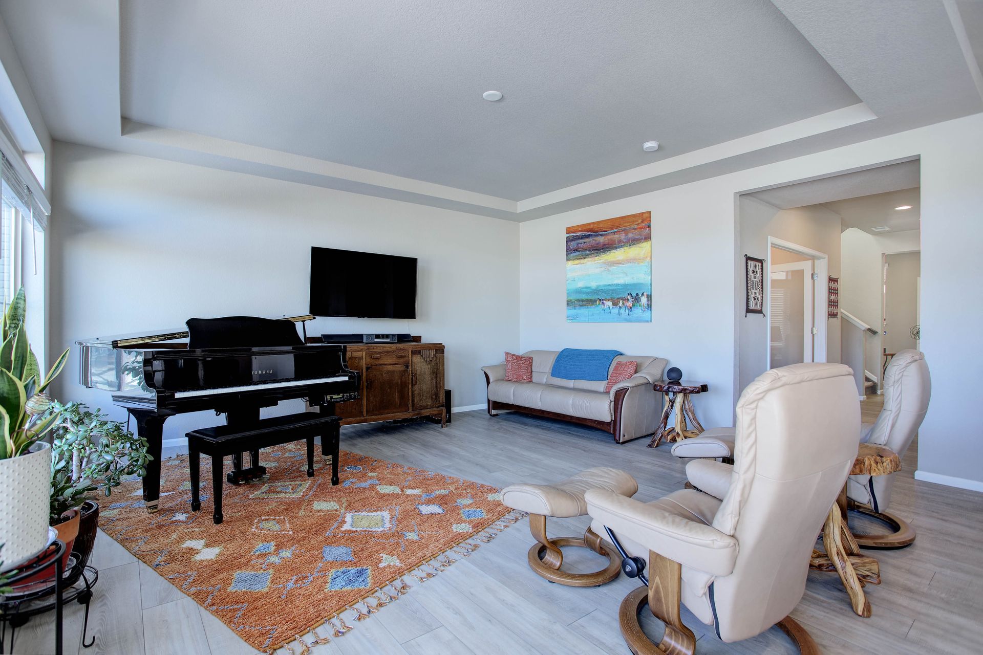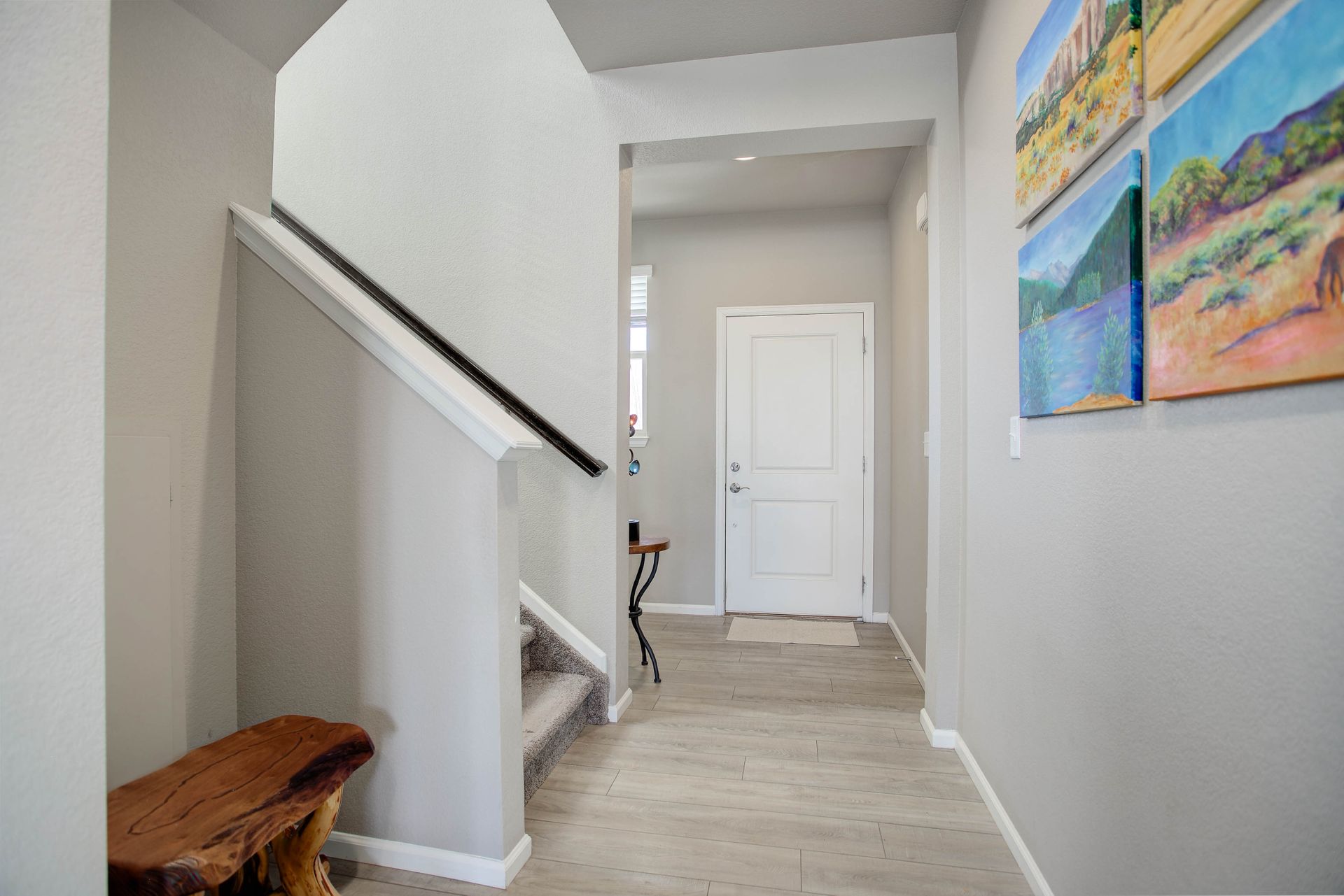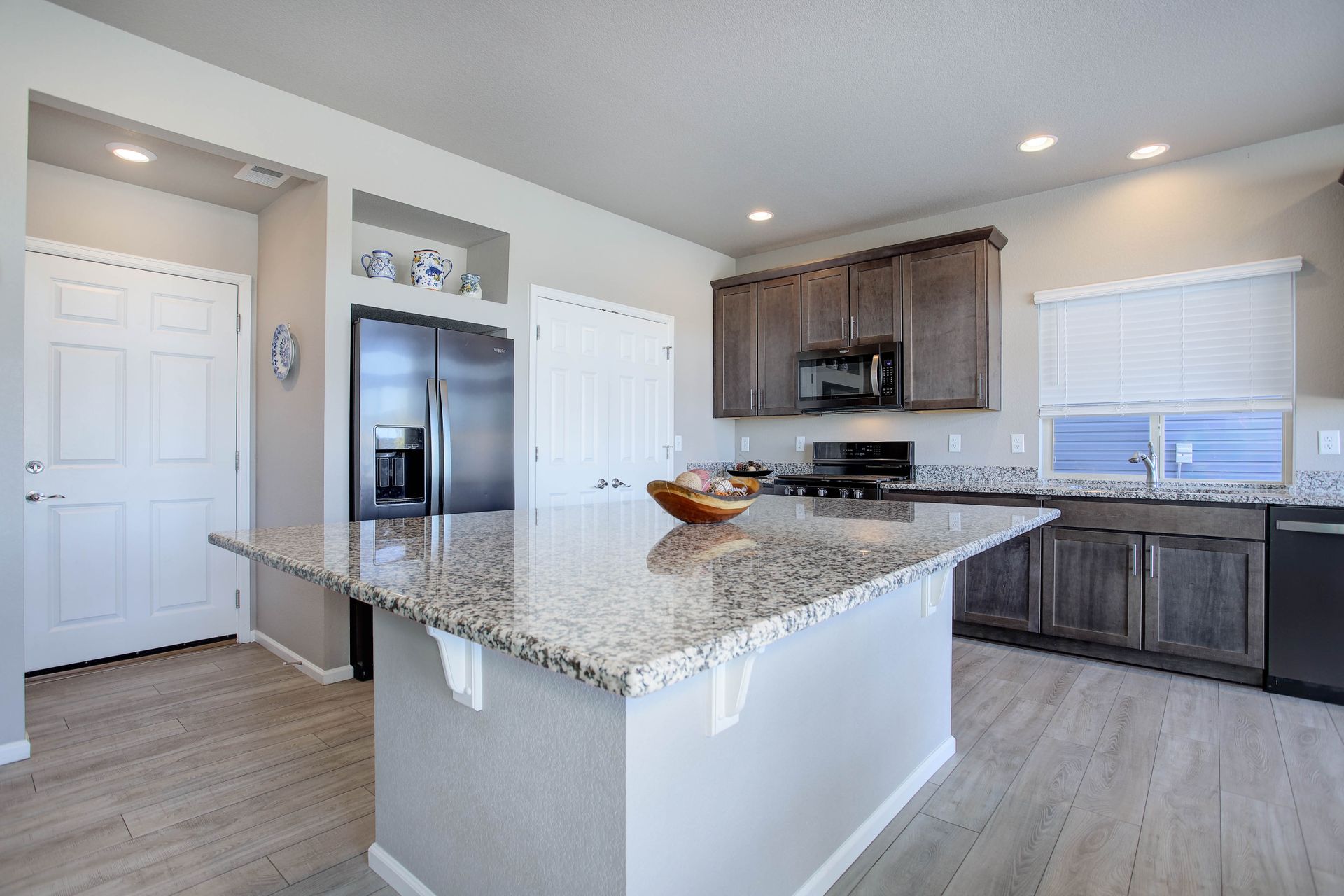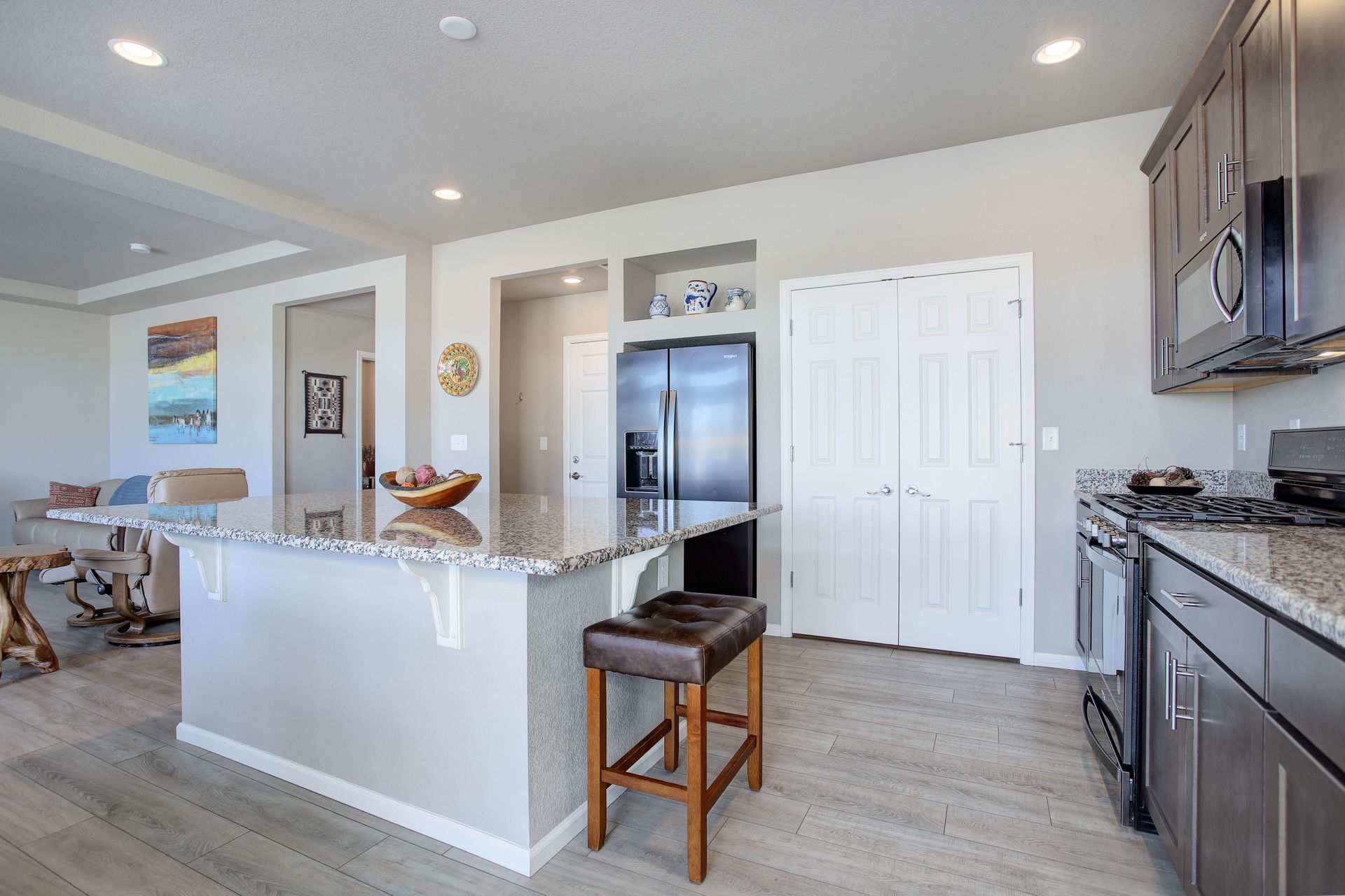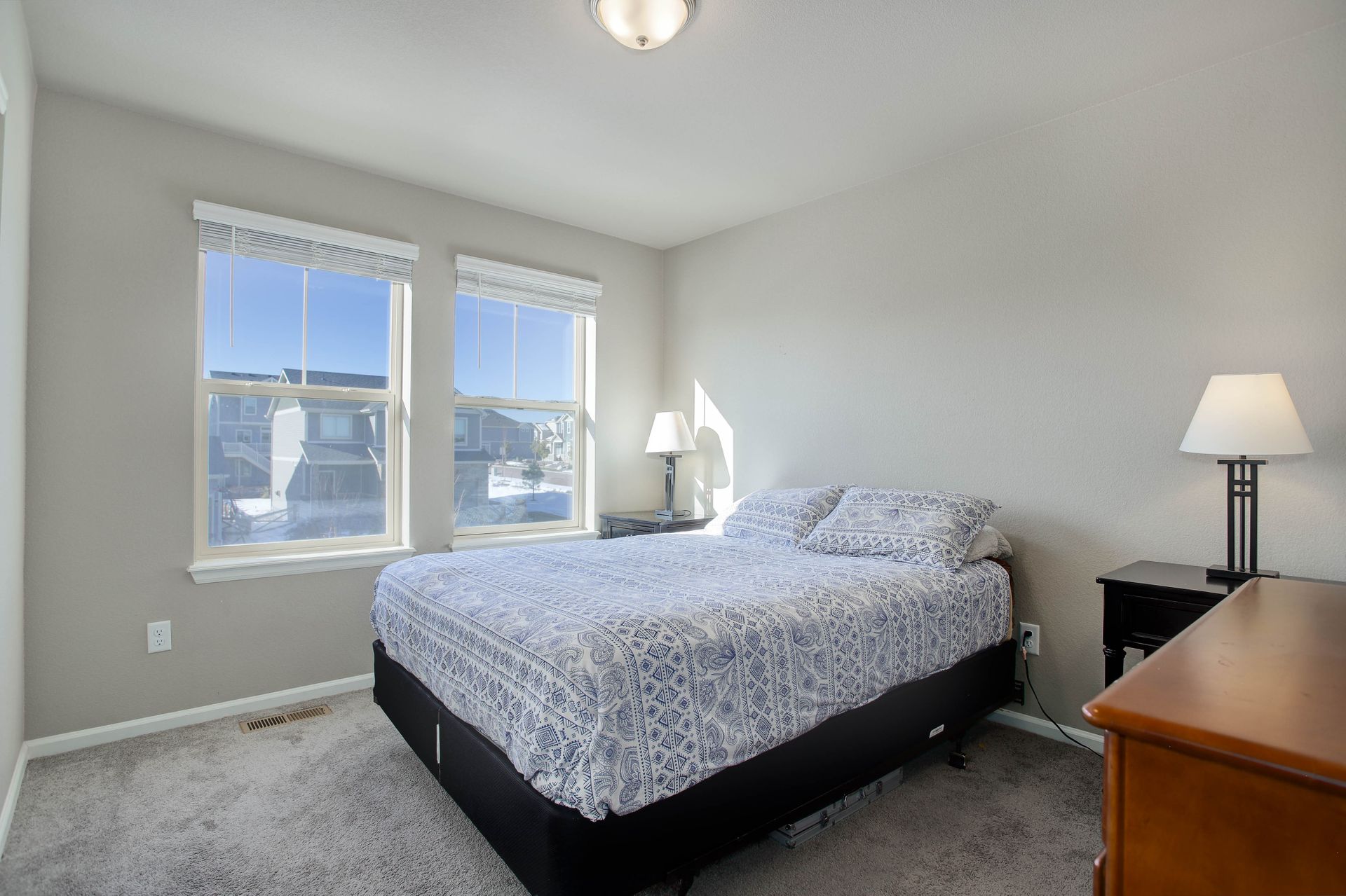 Discover your ideal living space in this stunning three-bedroom, three-bath home, located in the highly desirable Banning Lewis community. Enjoy easy access to parks, trails and vibrant community events. This beautifully designed residence backs onto a large greenbelt with direct access to trails right out your back door, perfect for outdoor enthusiasts. Inside, the inviting open floor plan seamlessly connects the living, dining and kitchen areas, ideal for entertaining. The gourmet kitchen feartures a 5 burner gas stove, generous counter space, a stylish island and large pantry. Upstairs, retreat to the spacious primary bedroom, complete with large en-suite bath and walk-in closet. You'll also appreciate the convenience of a bonus loft area and an upstairs laundry room. This home is more than just a place to live; it's a lifestyle waiting for you.