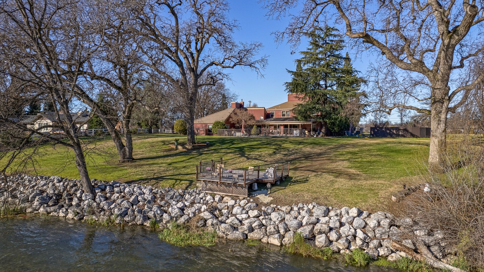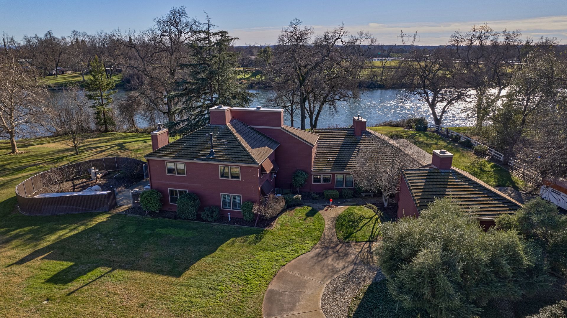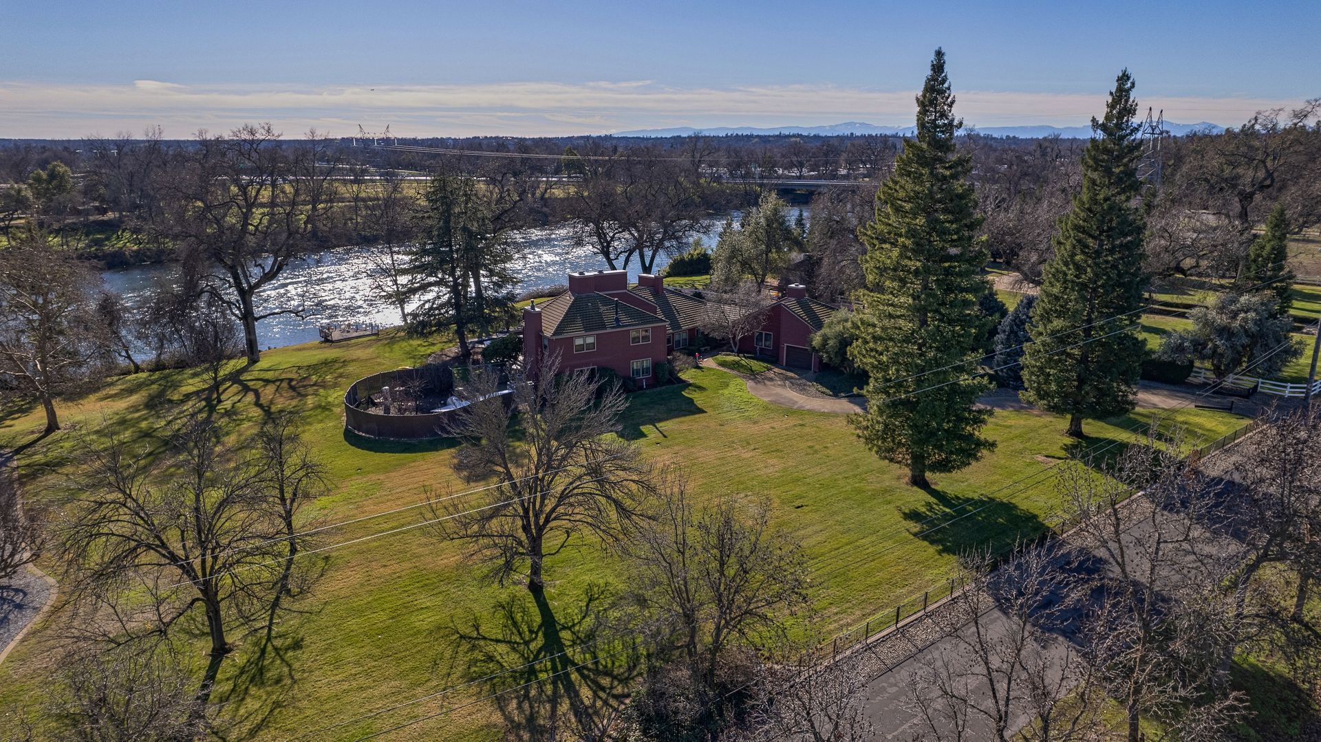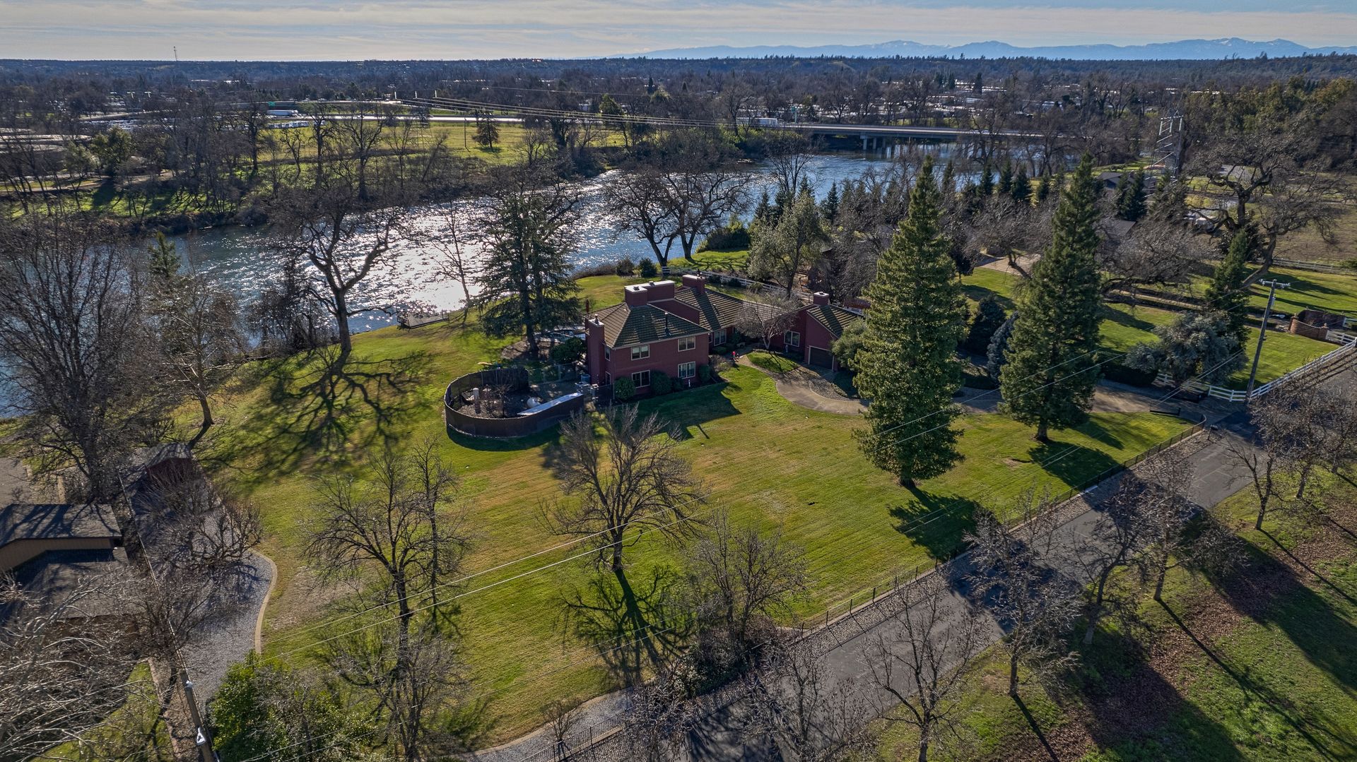 Nestled along the Sacramento River, this rare riverfront estate boasts an impressive 267 feet of river frontage, enveloped by a sprawling greenbelt that cascades gently into the river. The property's grandeur is exemplified by a luxurious 4,074 square feet dwelling, featuring five bedrooms, an office and five bathrooms, each meticulously updated to offer modern comfort in a serene setting. The heart of the home is the gourmet kitchen with Corian countertops, dual ovens, and an inviting breakfast nook.