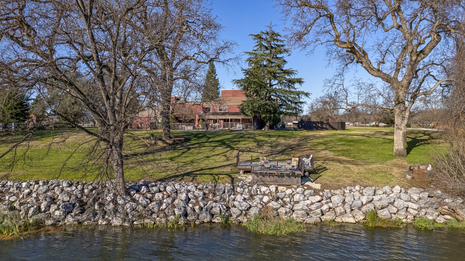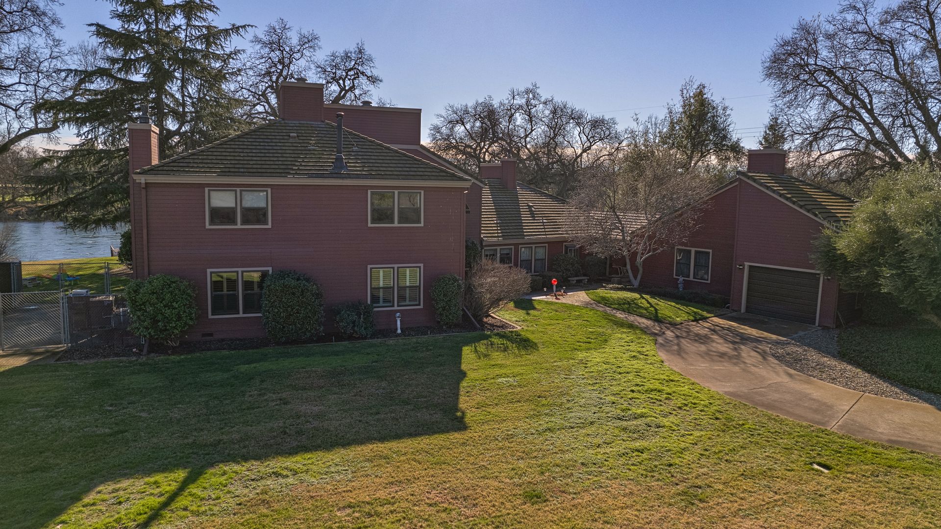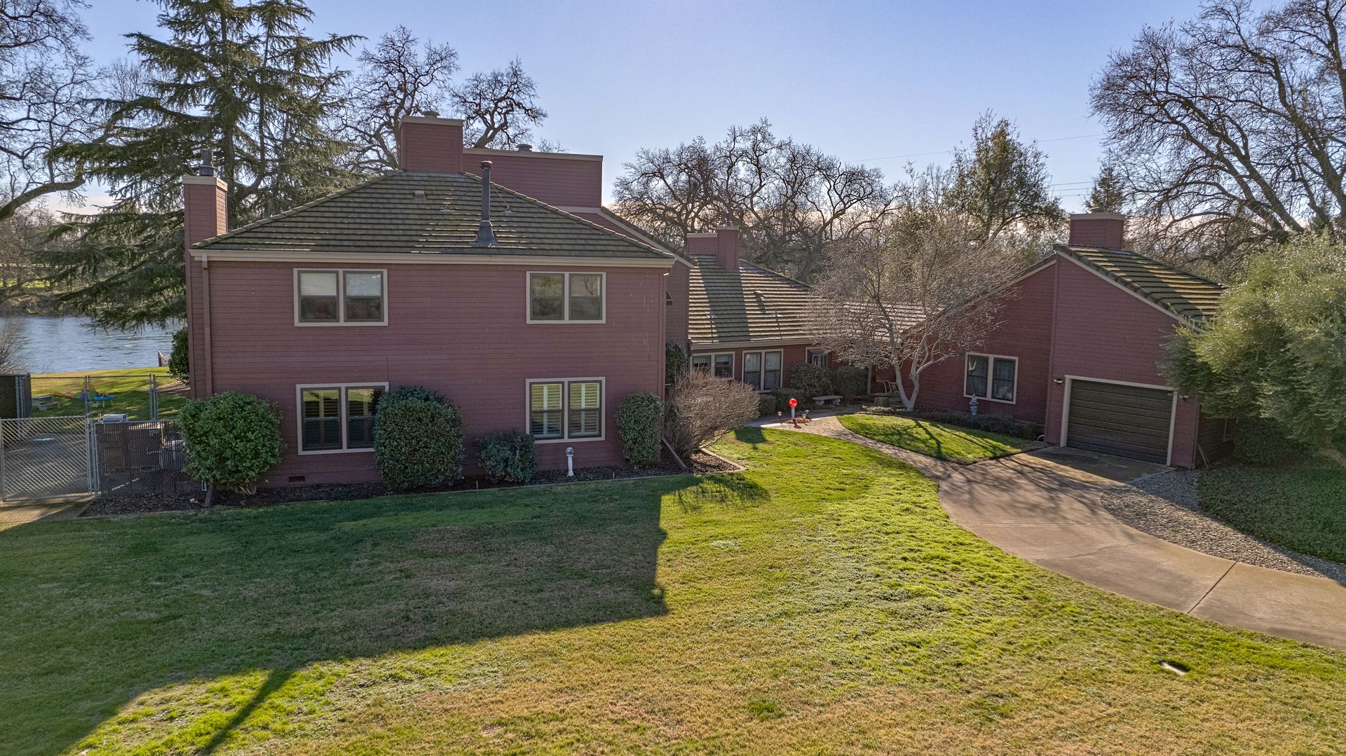 Nestled along the Sacramento River, this rare riverfront estate boasts an impressive 267 feet of river frontage, enveloped by a sprawling greenbelt that cascades gently into the river. The property's grandeur is exemplified by a luxurious 4,074 square feet dwelling, featuring five bedrooms, an office and five bathrooms, each meticulously updated to offer modern comfort in a serene setting. The heart of the home is the gourmet kitchen with Corian countertops, dual ovens, and an inviting breakfast nook.