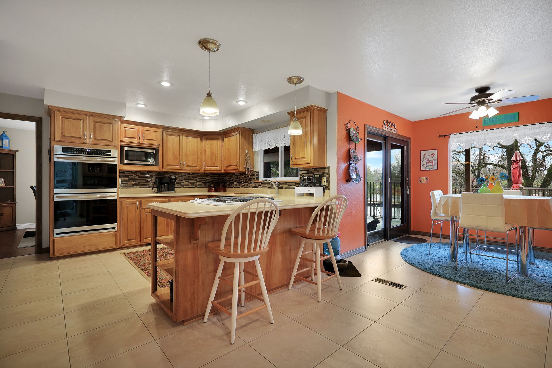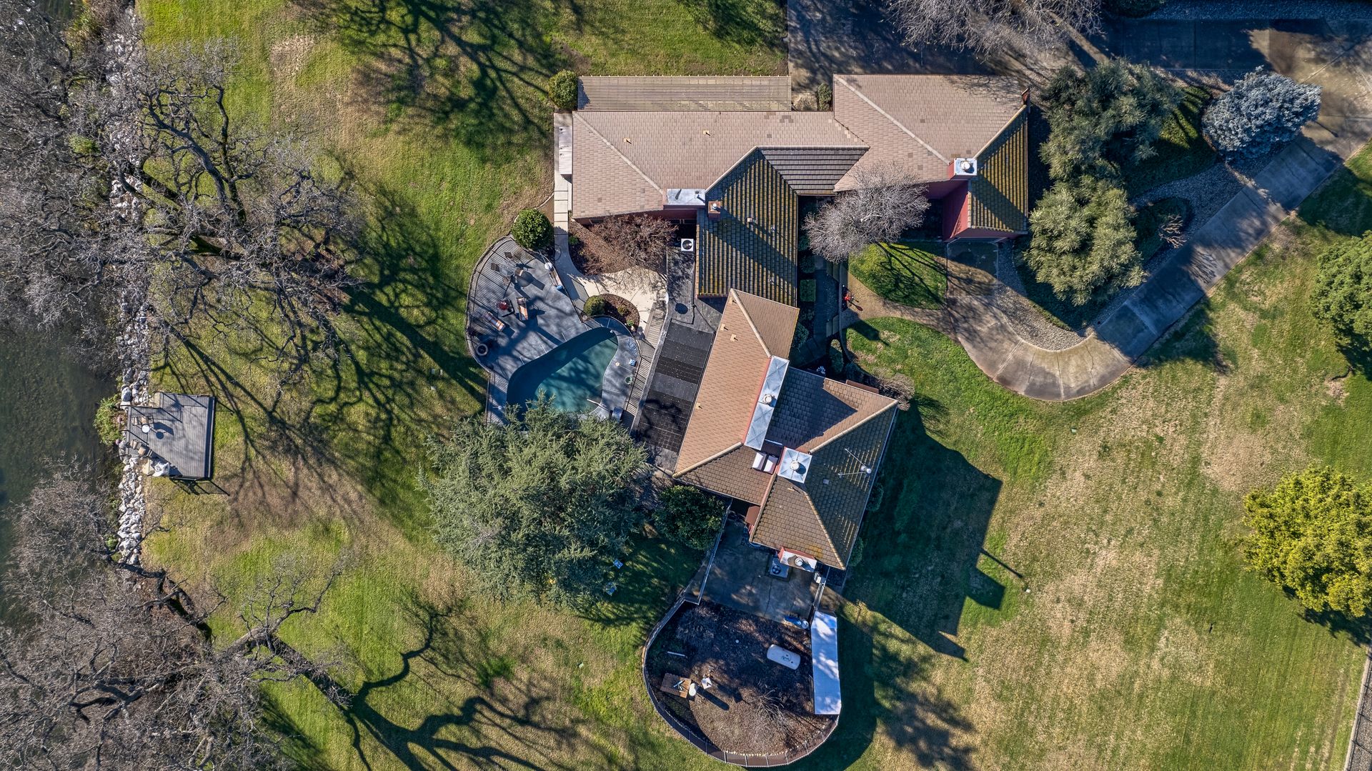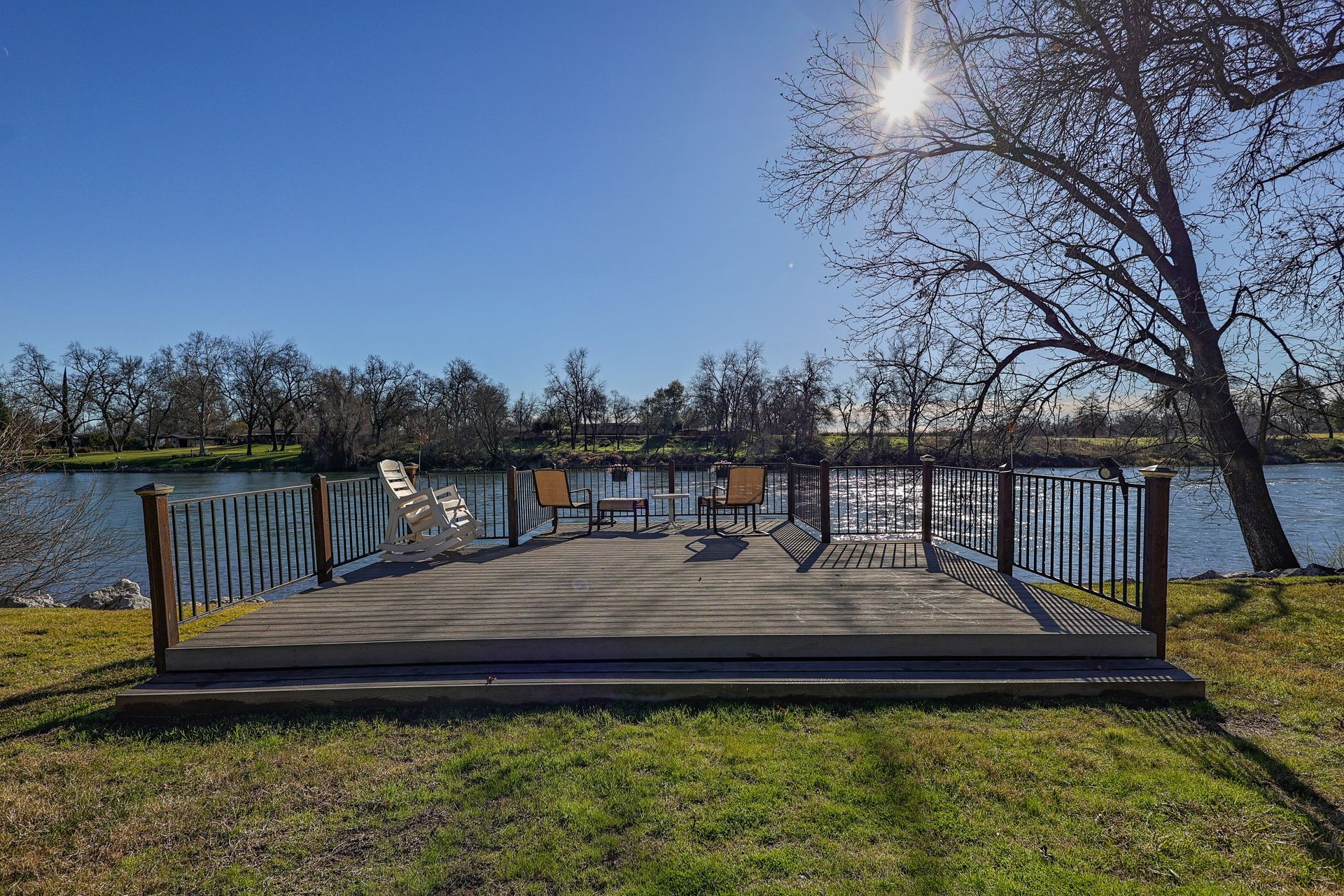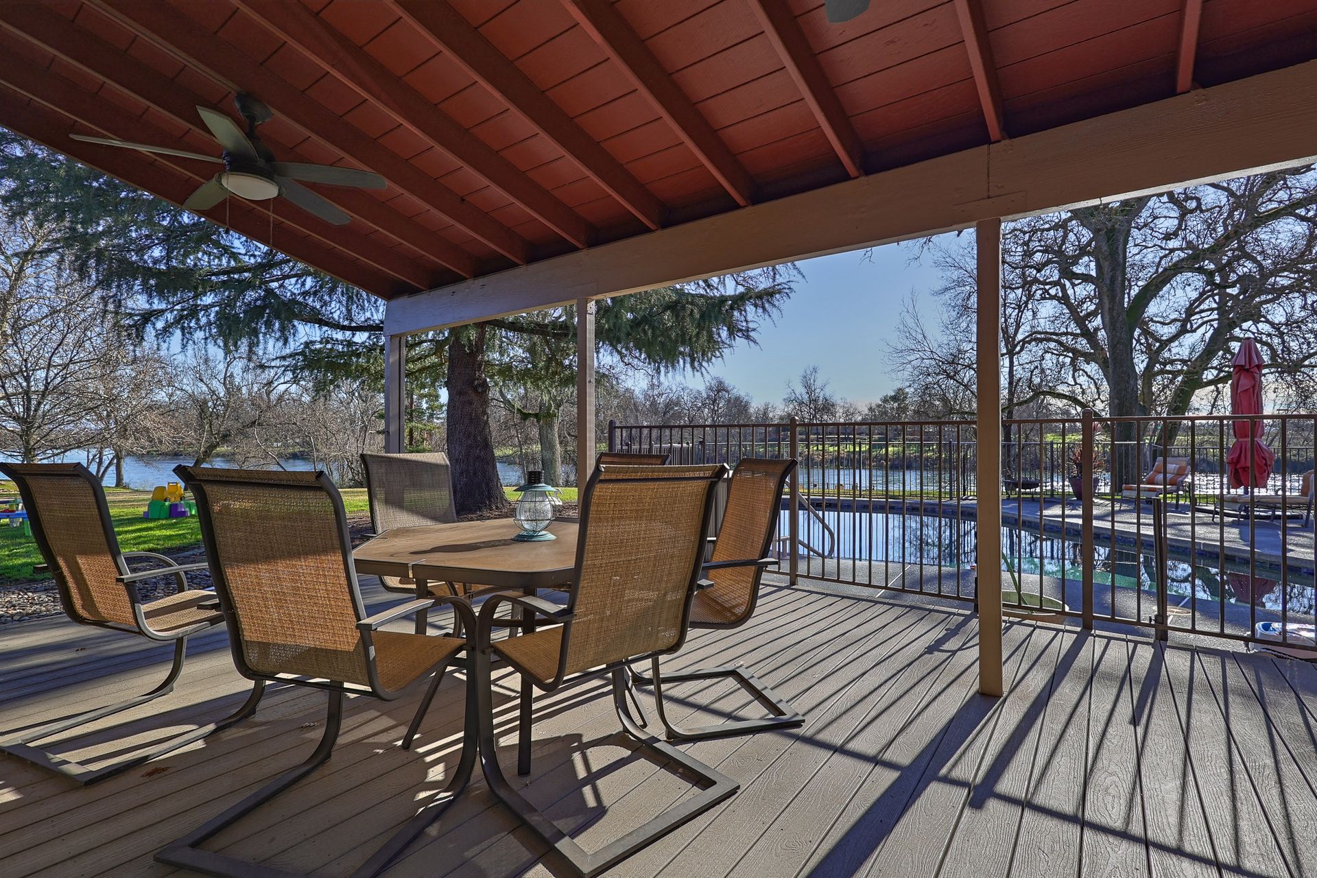 Nestled along the Sacramento River, this rare riverfront estate boasts an impressive 267 feet of river frontage, enveloped by a sprawling greenbelt that cascades gently into the river. The property's grandeur is exemplified by a luxurious 4,074 square feet dwelling, featuring five bedrooms, an office and five bathrooms, each meticulously updated to offer modern comfort in a serene setting. The heart of the home is the gourmet kitchen with Corian countertops, dual ovens, and an inviting breakfast nook.