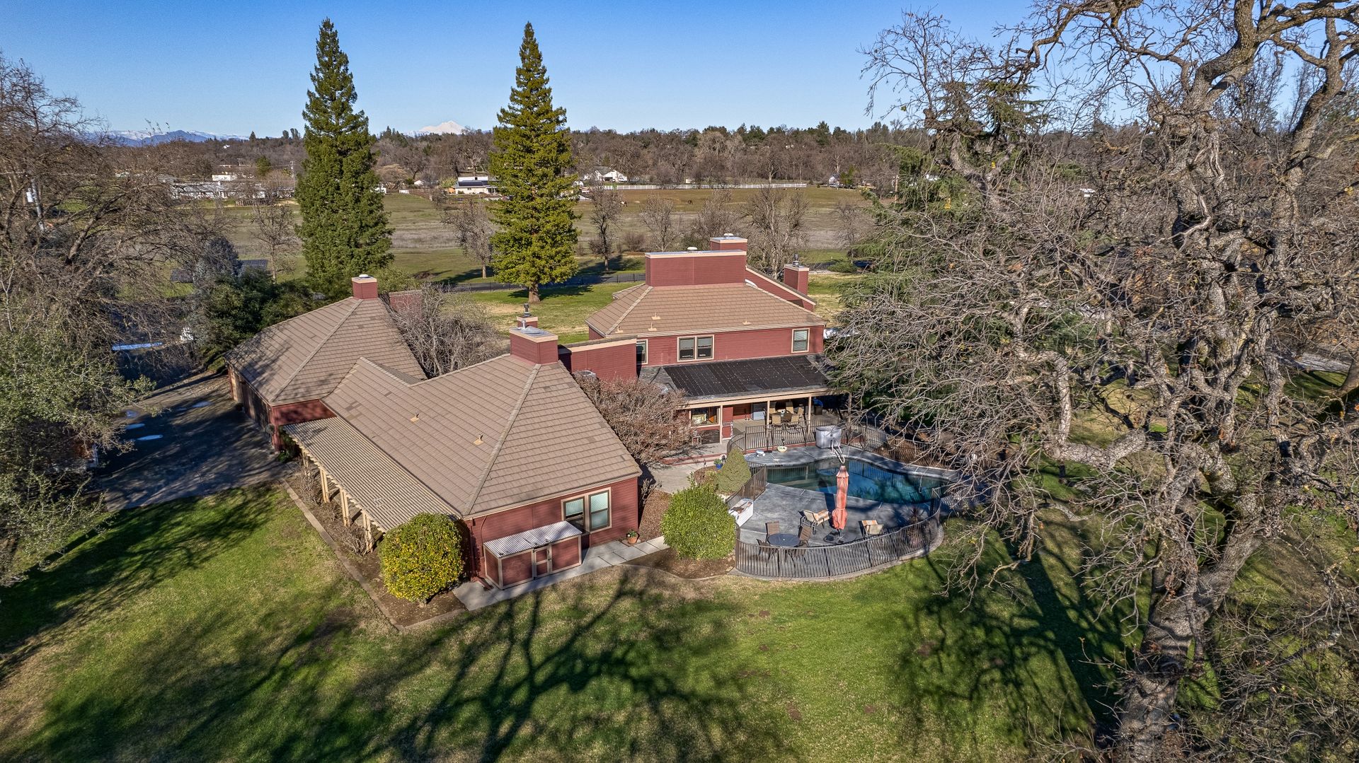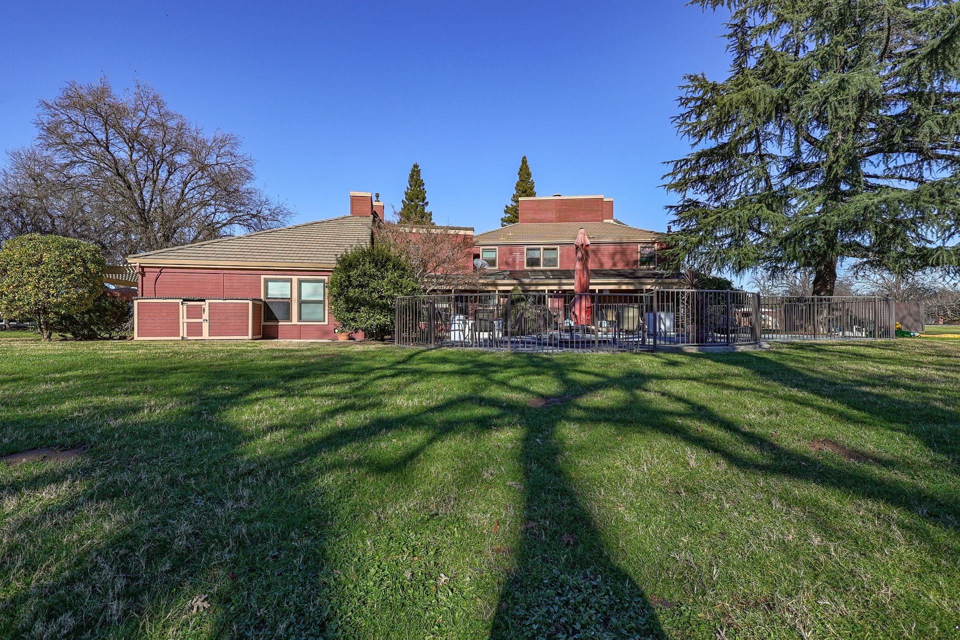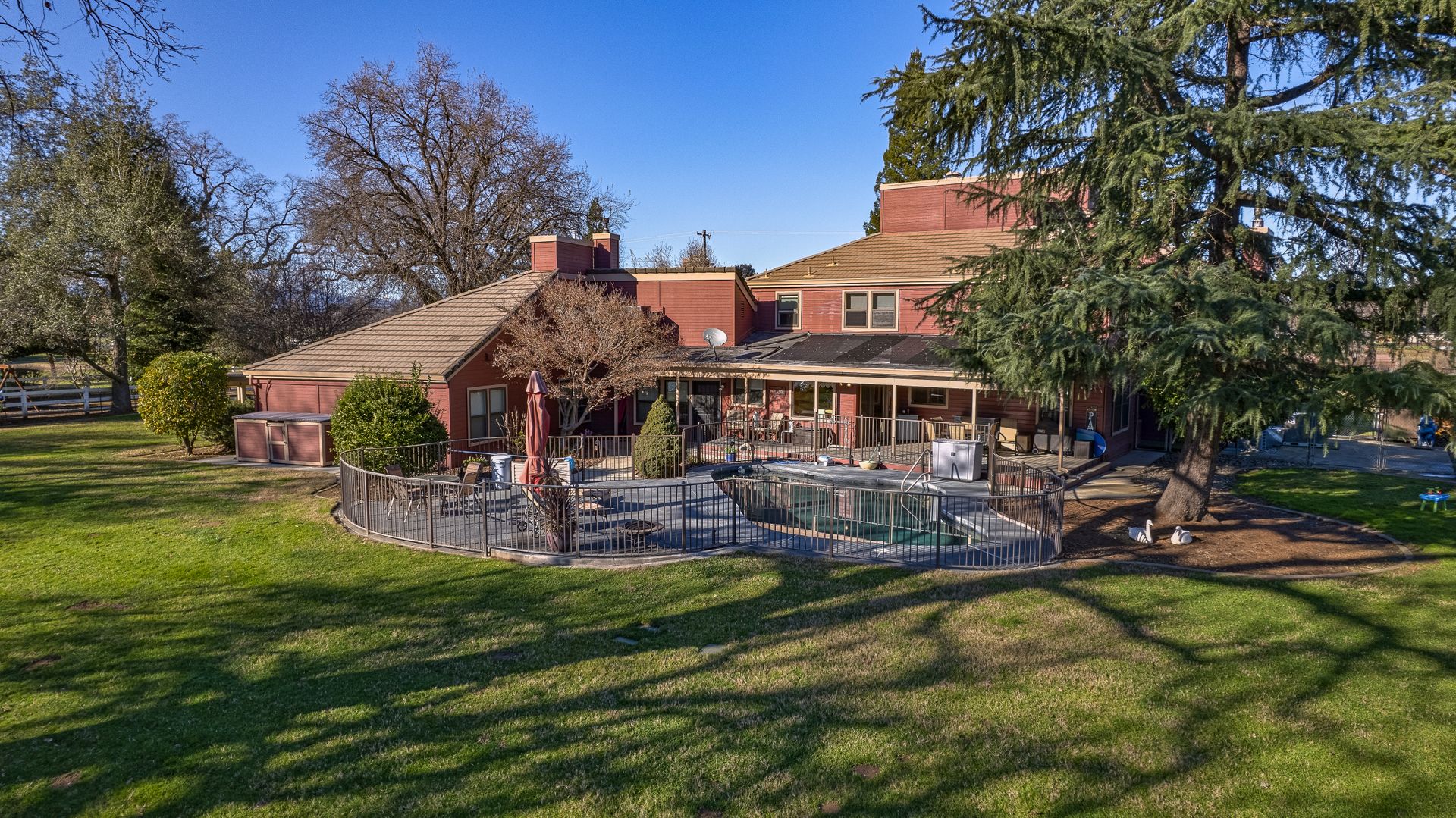 Additional features that elevate this property include a spacious four-car garage with an integrated workshop, multi-zone HVAC systems for tailored climate control in the main house and in-law unit plus an owned solar system for enhanced energy efficiency. The fully fenced estate with a gated entrance ensures privacy and security, while the beautifully manicured grounds, adorned with various fruit trees and large shade trees, offer a tranquil oasis. RV and boat parking spaces cater to lifestyle enthusiasts, and a dedicated dog kennel adds convenience for pet owners.