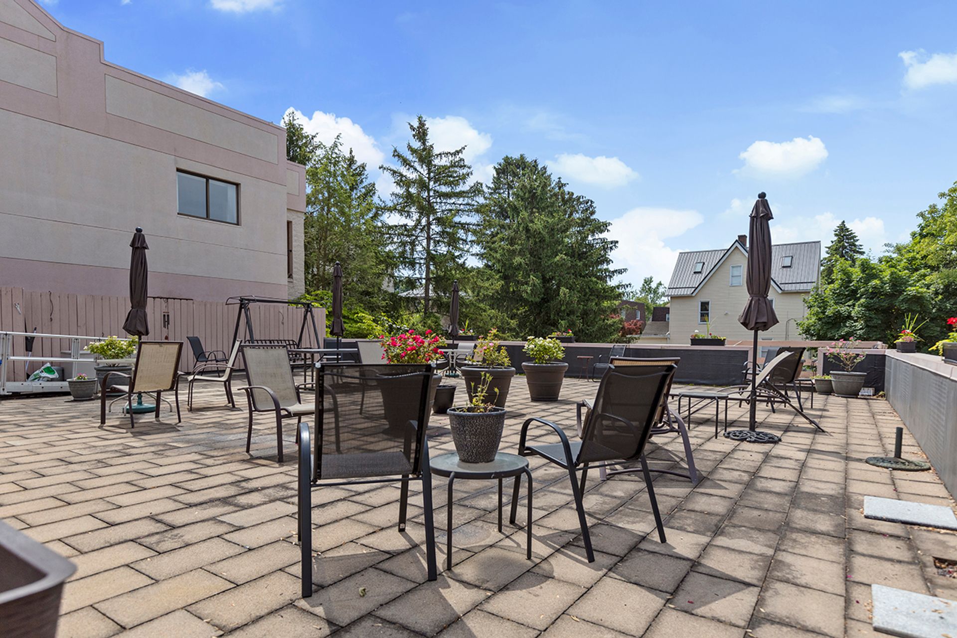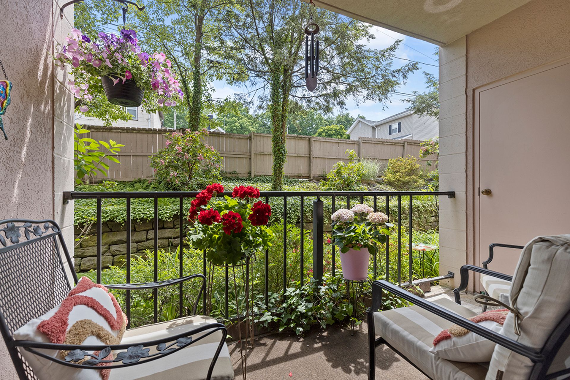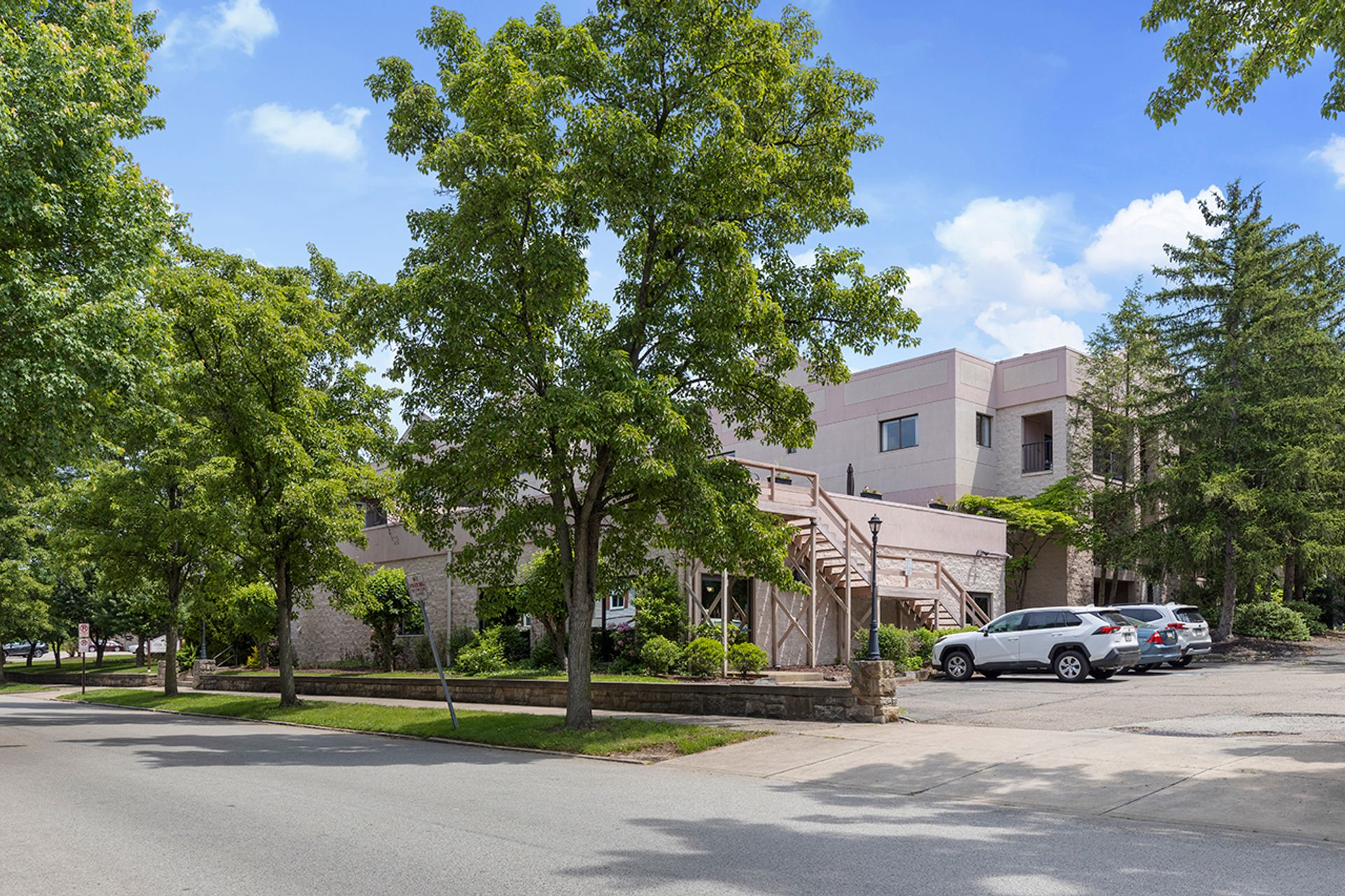 Rare opportunity to own a first floor garden unit in the sought after condo development of Oak Ridge. Located in the heart of Oakmont, walk to everything the quaint but happening village offers. This 2bd 2ba condo is conveniently located in the central portion of the first floor with easy access to garage, off street parking, and building amenities. Impeccably maintained over the years, this unit has had numerous updates including opening up the layout on the first floor by removing a wall separating the kitchen from living space. In unit laundry, updated bathrooms, new carpeting, and stainless steel appliances. Big walk in closet in primary bedroom with ensuite bath. Incredibly cozy covered back porch offers privacy and a beautiful backdrop of the garden and common grounds. Amenities include indoor, in-ground swimming pool w/fitness classes available, updated gym, lounge/common area, & beautiful rooftop terrace. Don't miss this opportunity to own this first floor garden unit!