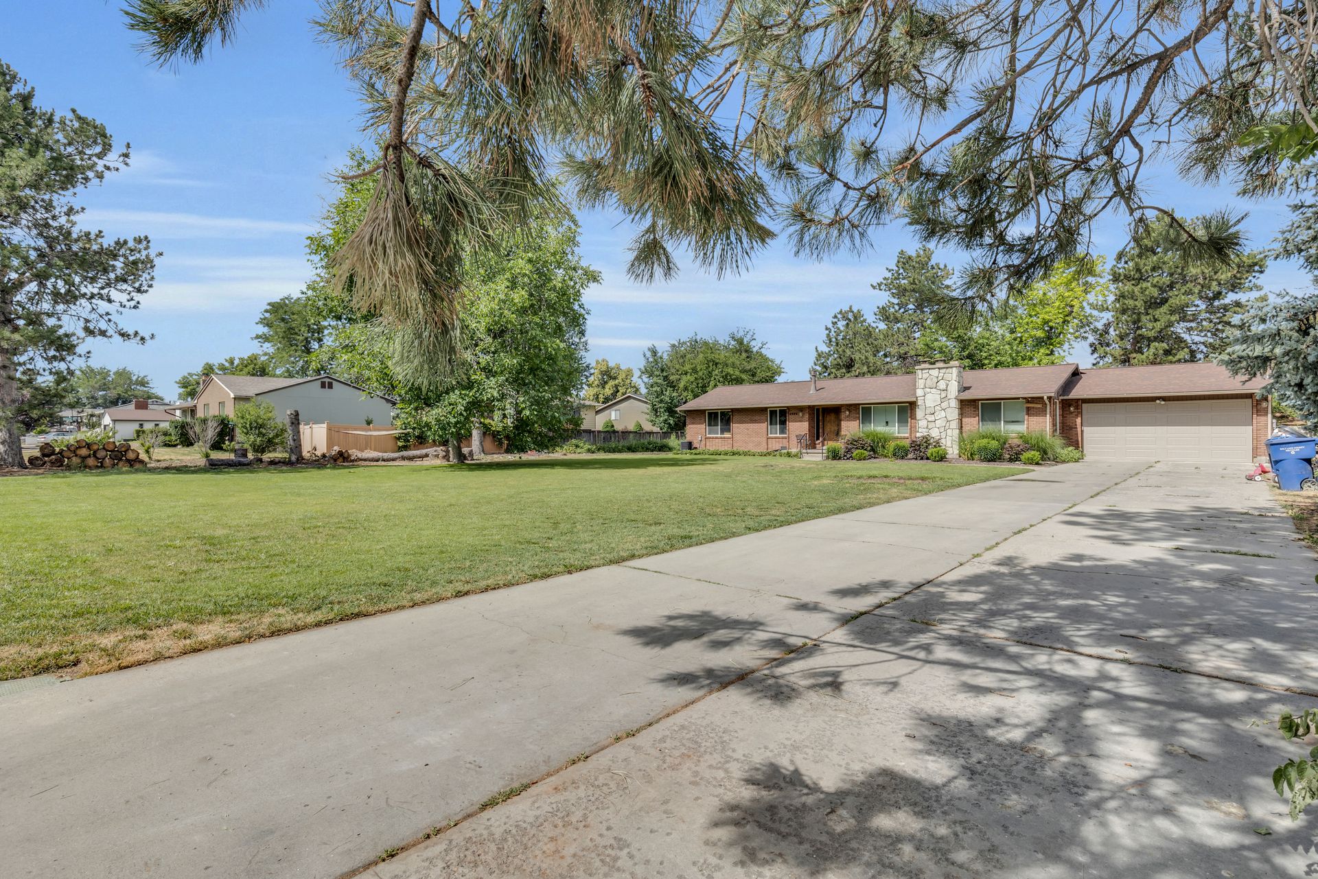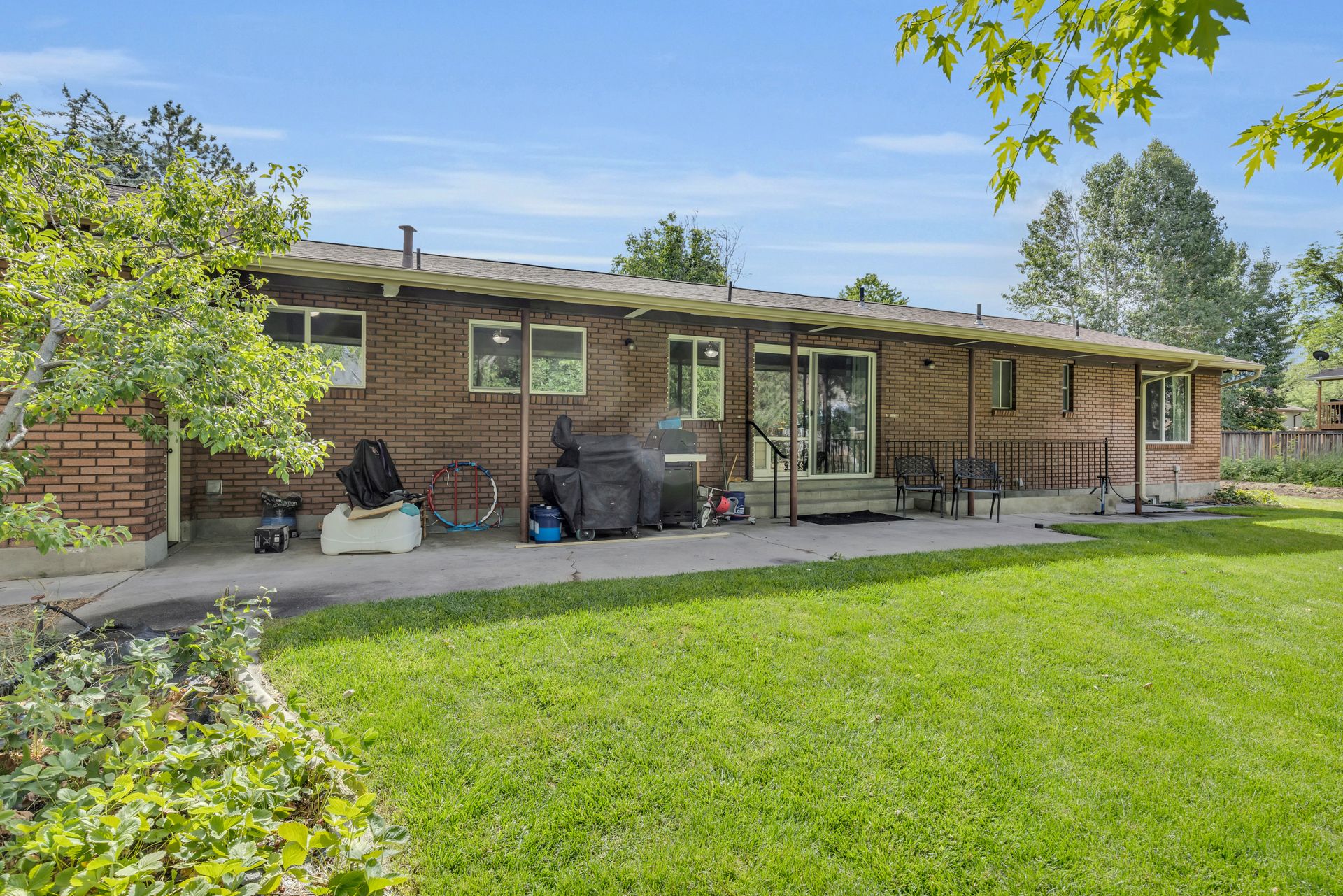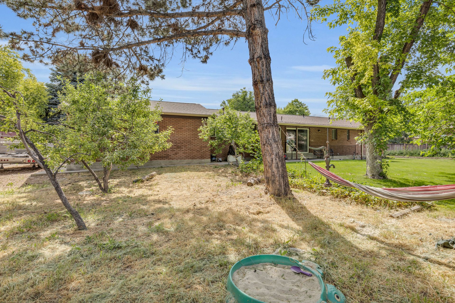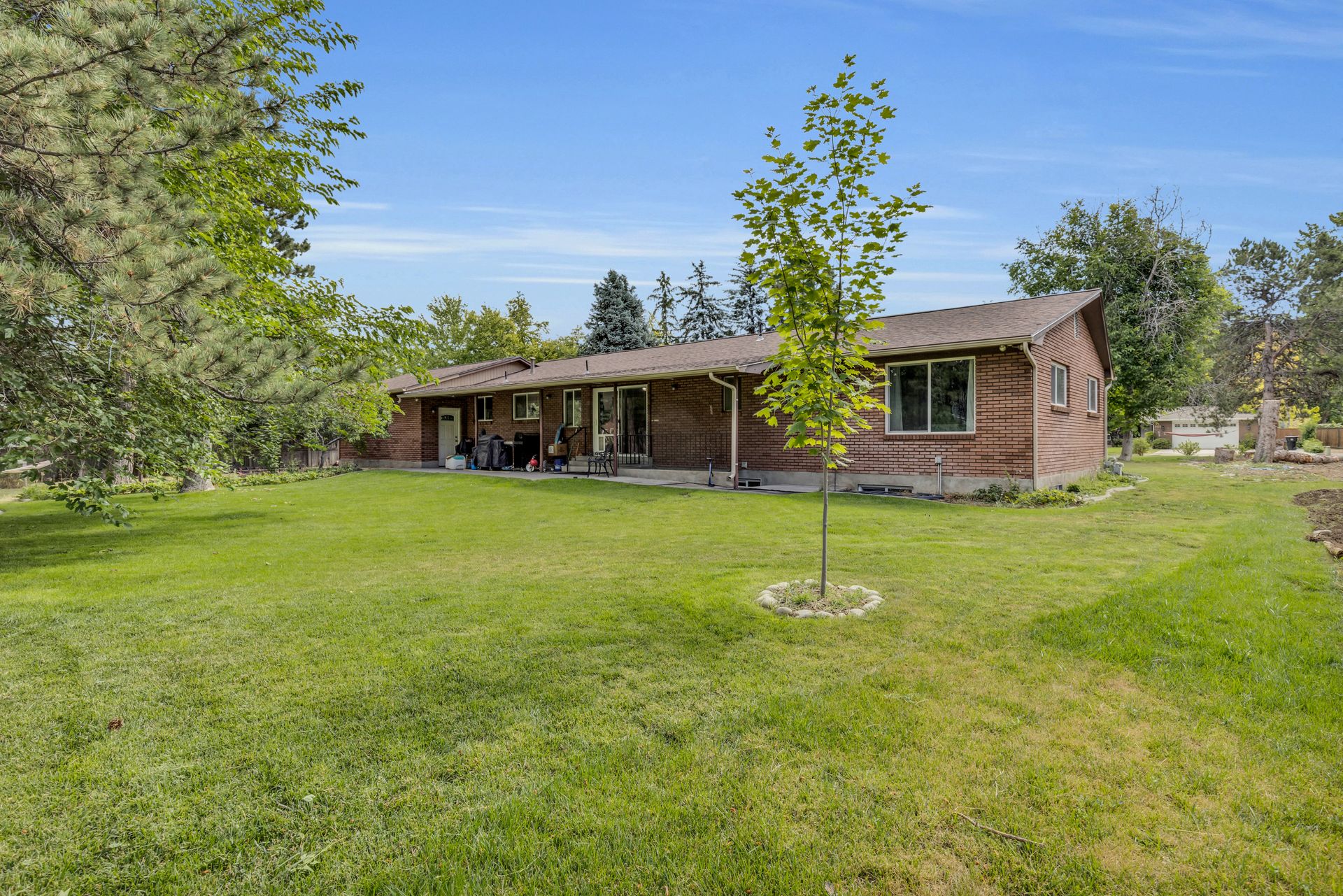 Don't miss out on this rare find in the heart of Murray. This all-brick rambler is located on .66 of an acre, with well water, one share of Tanner Ditch Water, newer windows and roof. The home features 2 separate living spaces if desired with a walk-out basement three bedrooms, a bathroom, family room, full kitchen with ample cabinets and storage space, two separate furnaces, two water heaters and two washer and dryer hookups. The main level features two larger bedrooms and one small bedroom that could be used as an office or could be made into a larger bedroom. The yard has a large garden area with numerous fruit trees, walnut tree, strawberries, raspberries, chicken coop, storage shed and so much more.