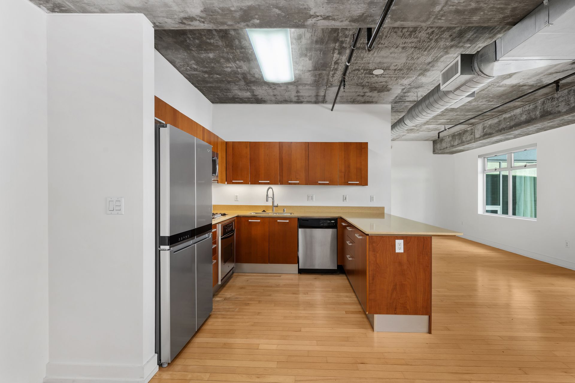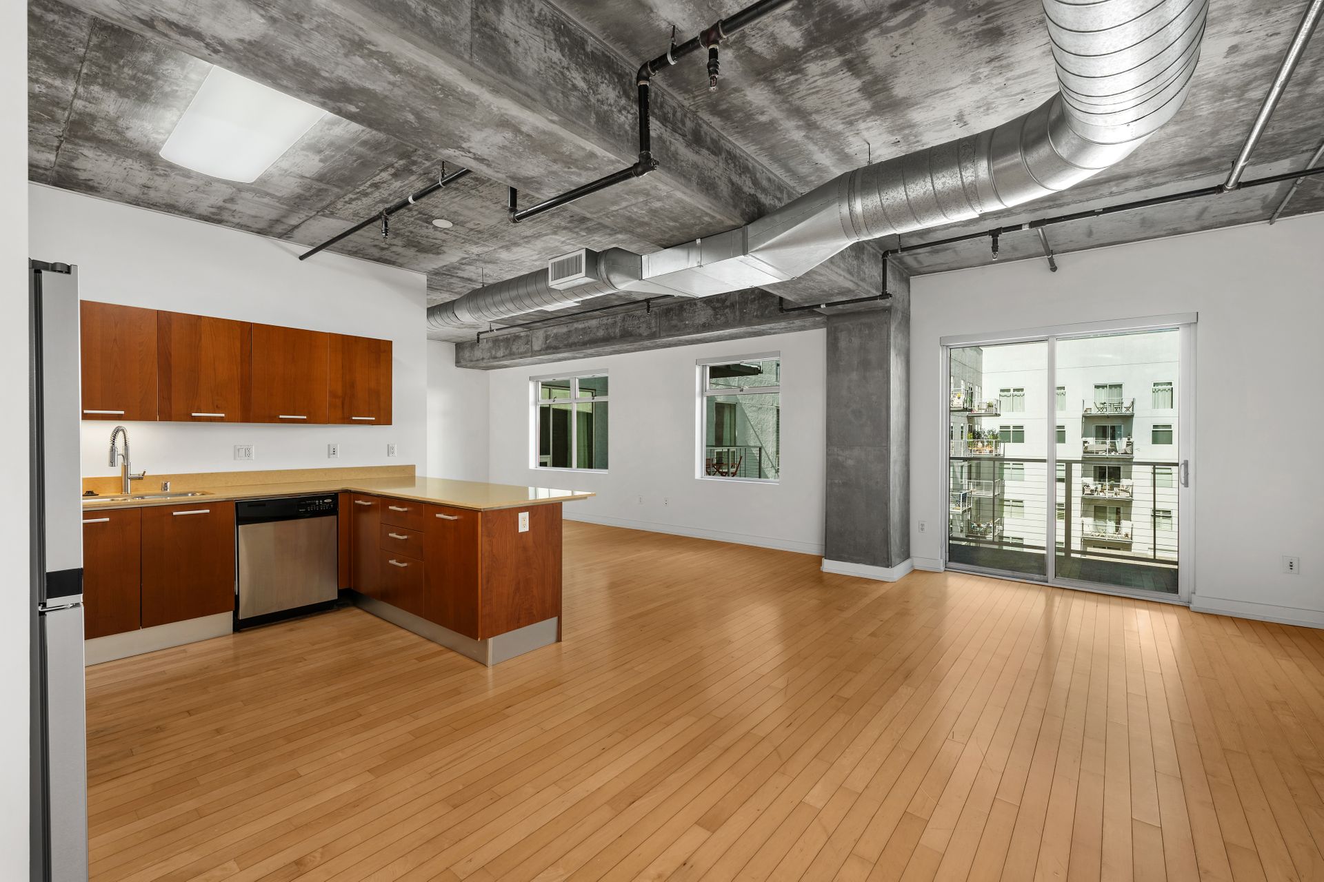 The unit's open floor plan comes with no bedroom walls or dividers. Also listed for lease at $3,000/month. Lease includes water, gas, trash and one assigned parking spot.
