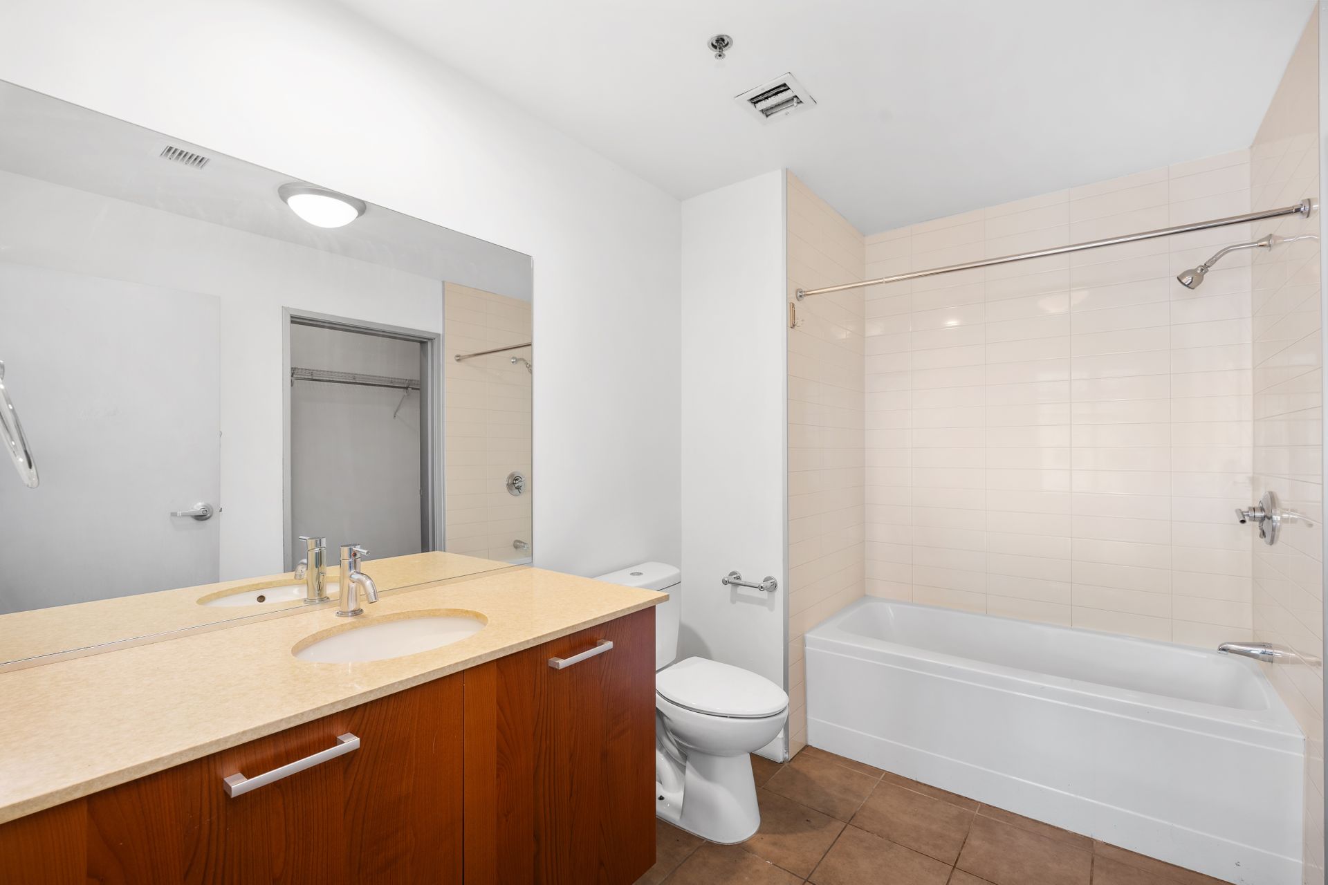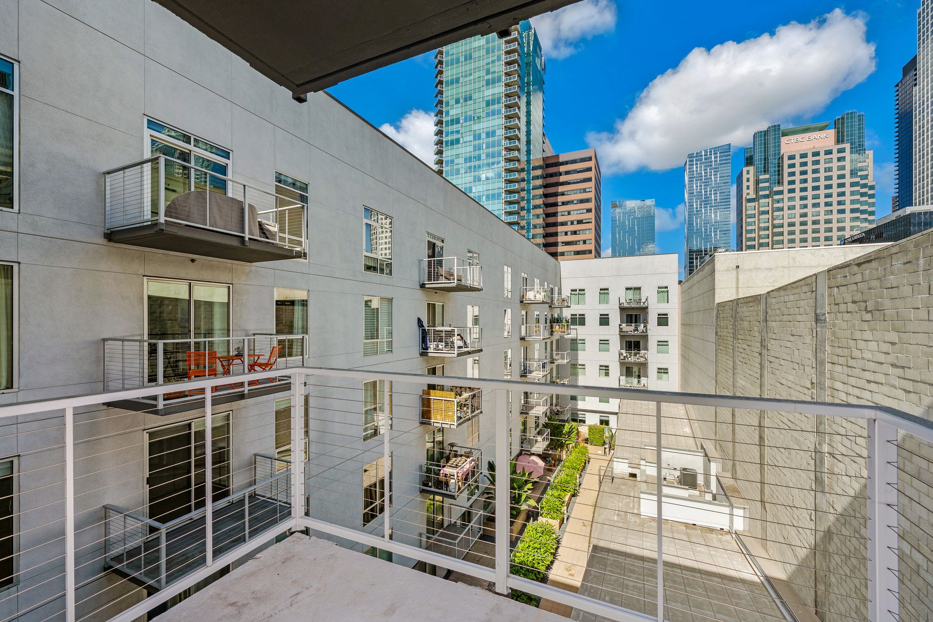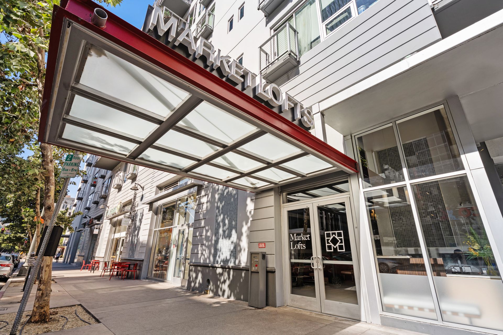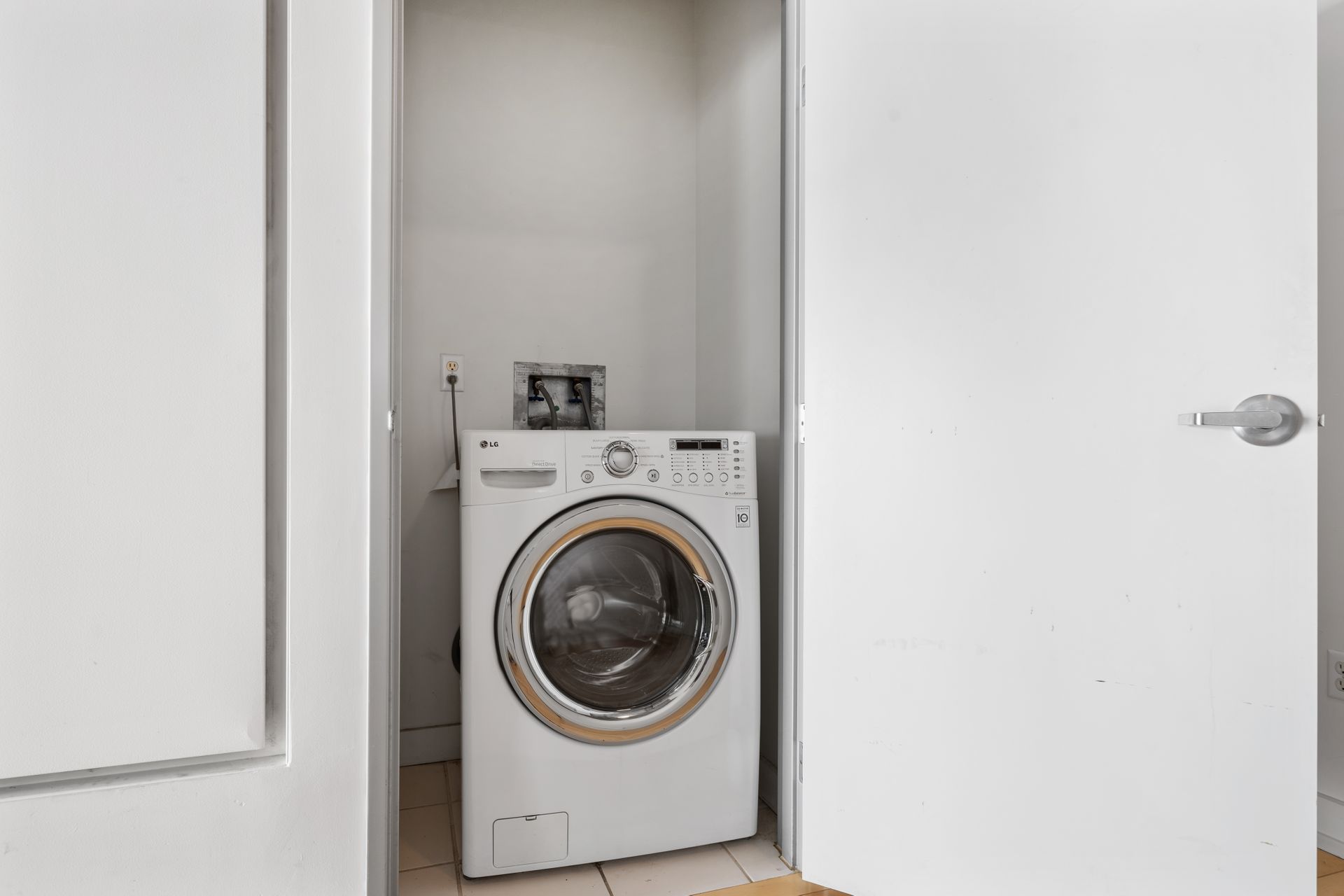 Welcome to the Market Lofts in DTLA! This contemporary-style condominium offers an open floor plan that creates an inviting atmosphere, allowing for natural light to flow throughout the living areas. It's an end unit with no shared walls and offers tons of privacy. The unit comes with hardwood floors, in-unit combo washer/dryer, two bedrooms areas with designated bathrooms, two spacious closets, and a private balcony. The kitchen is equipped with stainless steel appliances and a breakfast bar, providing a modern and functional cooking environment. The private balcony offers views of DTLA, offering a unique and visually appealing perspective. The overall design of the condominium prioritizes functionality and livability, making it an ideal living space for those seeking a comfortable and well-appointed home.
