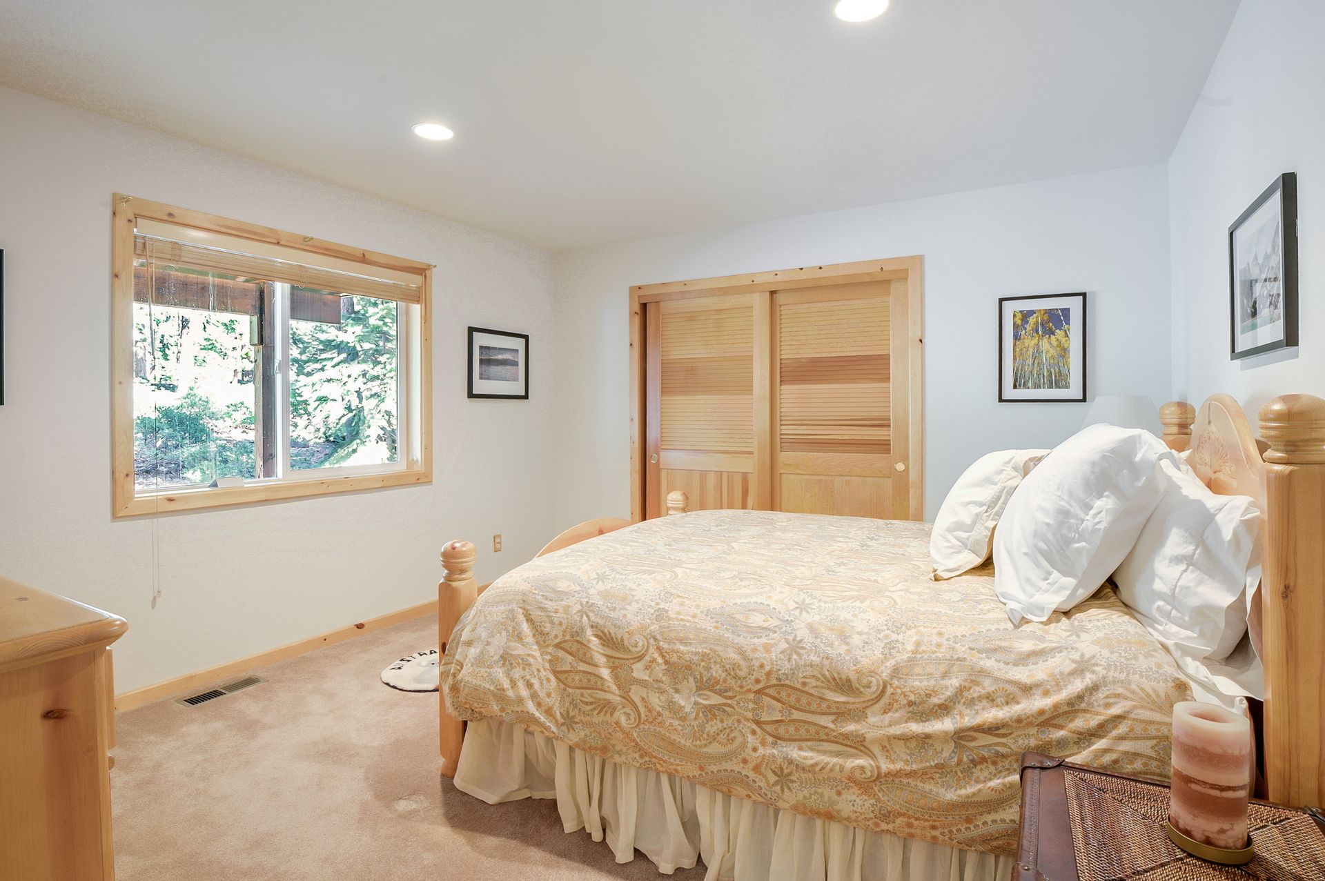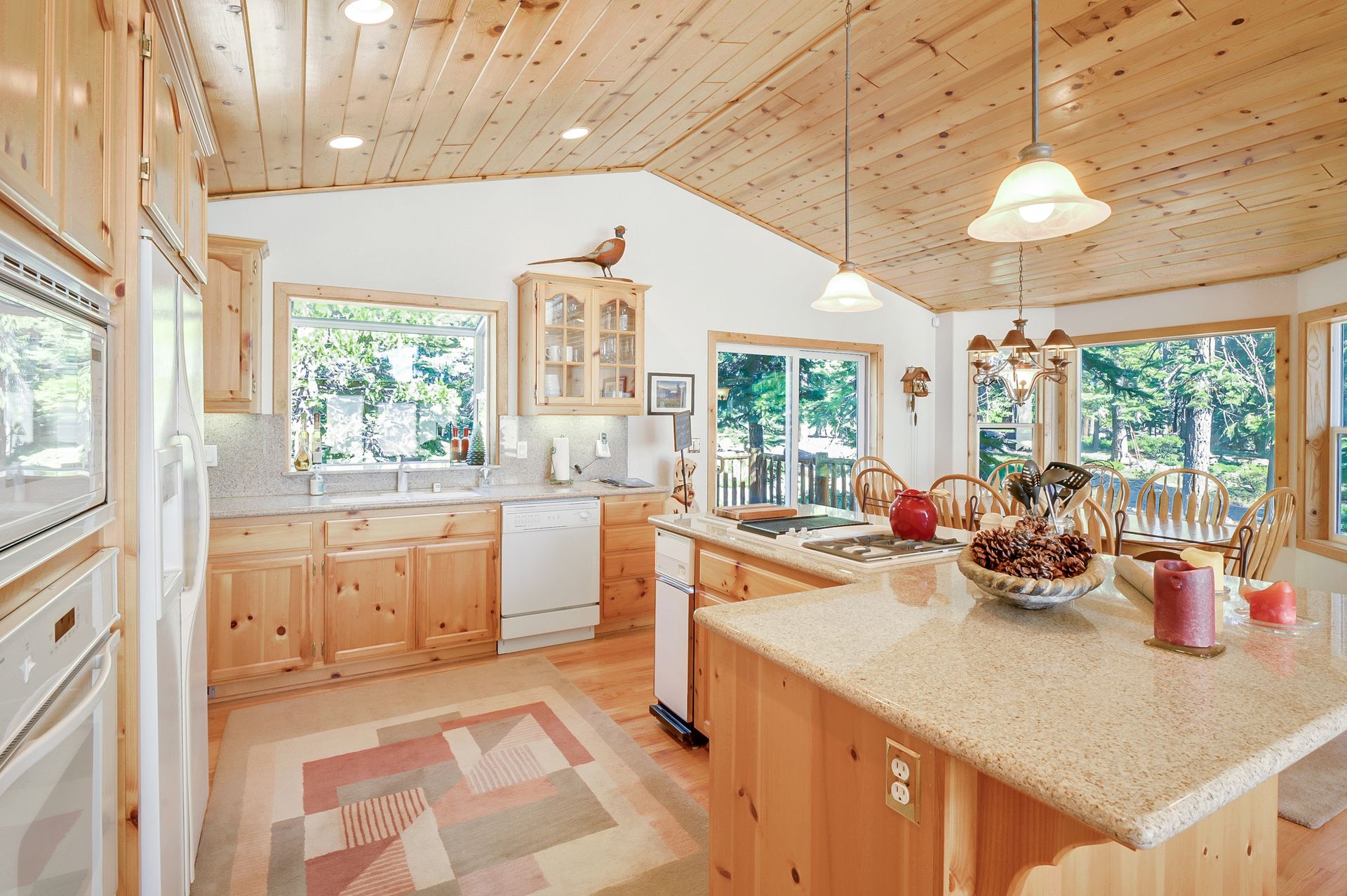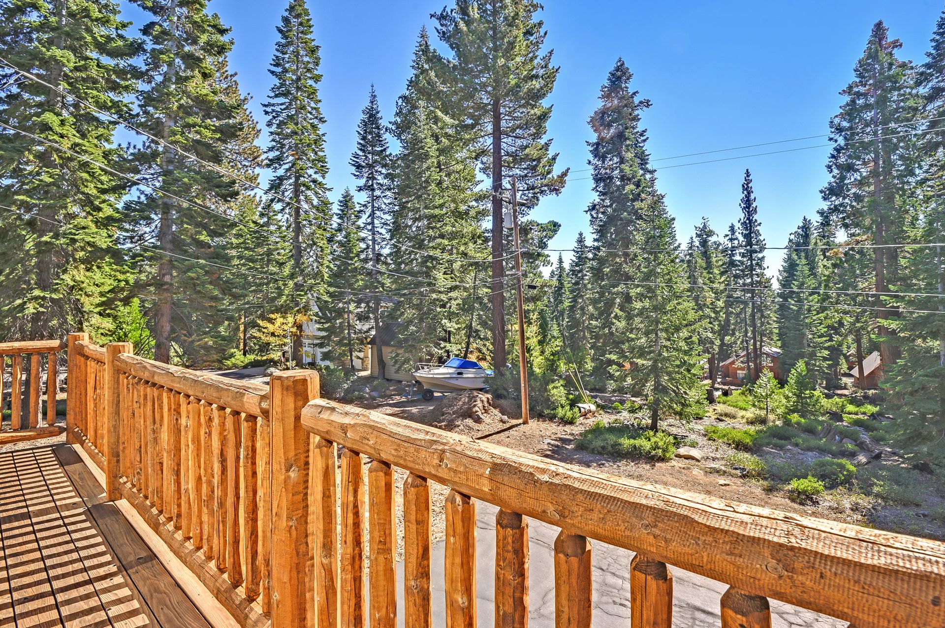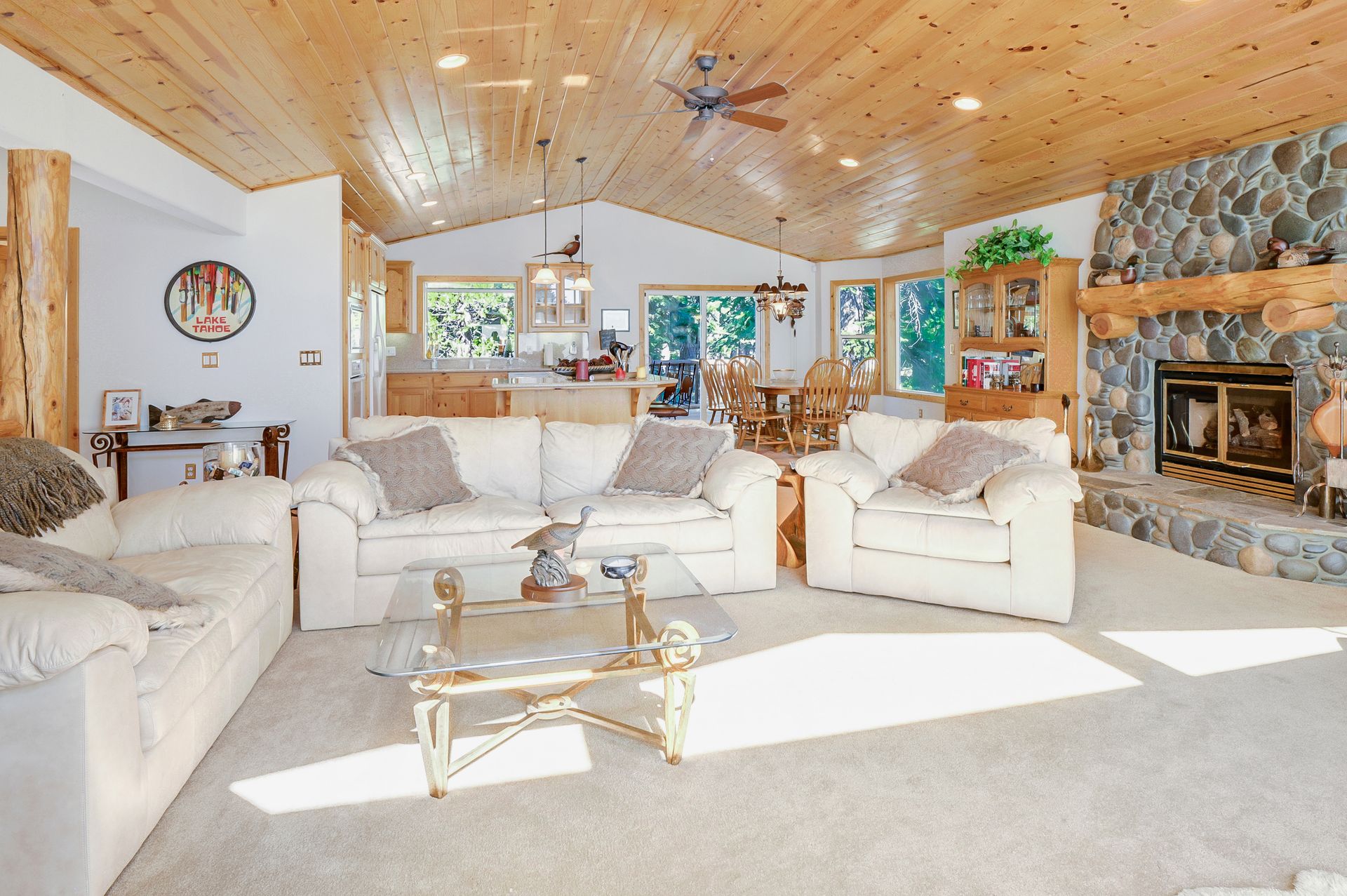 A very special mountain retreat lovingly maintained by the original owner. Exceptionally private location bordered by park land on the north and Conservancy land to the east. Interior features four spacious bedrooms and 2.5 bathrooms, an open living/dining and kitchen area that is ideal for entertaining, a spectacular river-rock gas-burning fireplace, vaulted pine ceilings, peeled-log railings, granite-slab counters, solid-core raised panel doors and a separate family room. There are plenty of windows to bathe the interior in natural light and bring the outdoors inside. A private trail meanders from the back of the parcel to a spectacular grove of cedar trees and the North Tahoe Regional park featuring a children's play area, cross country skiing and snowshoeing, fitness par course, dog park, sledding and snowmobiling, tennis and pickleball courts, tree top adventure course, hiking and biking trails, disc golf course, all weather soccer and lacrosse field, and more. Sold mostly (and tastefully) furnished...just bring your toothbrush. A short drive to Tahoe's sandy shores and Northstar Ski Resort. Truly a mountain home for all seasons.