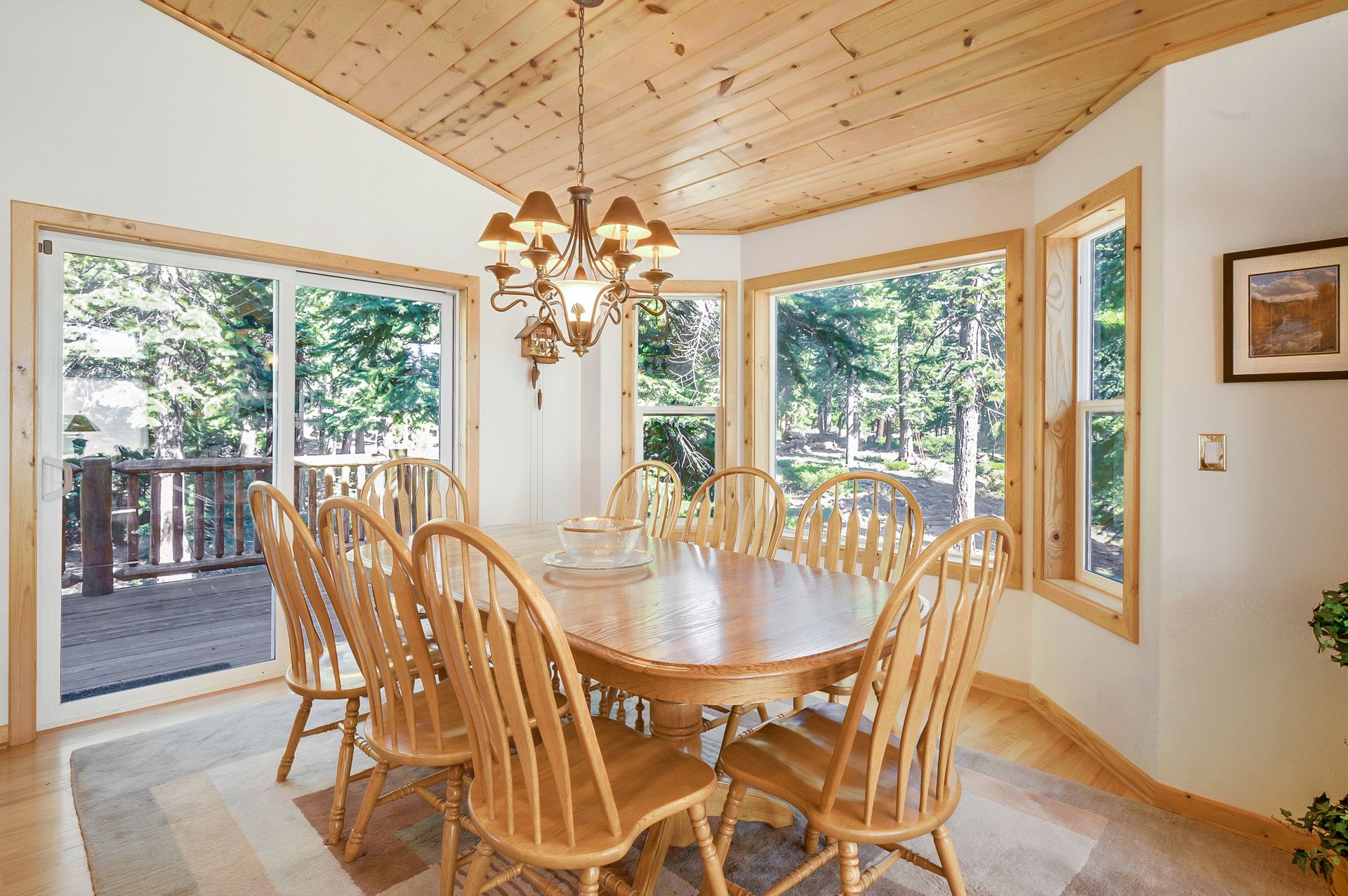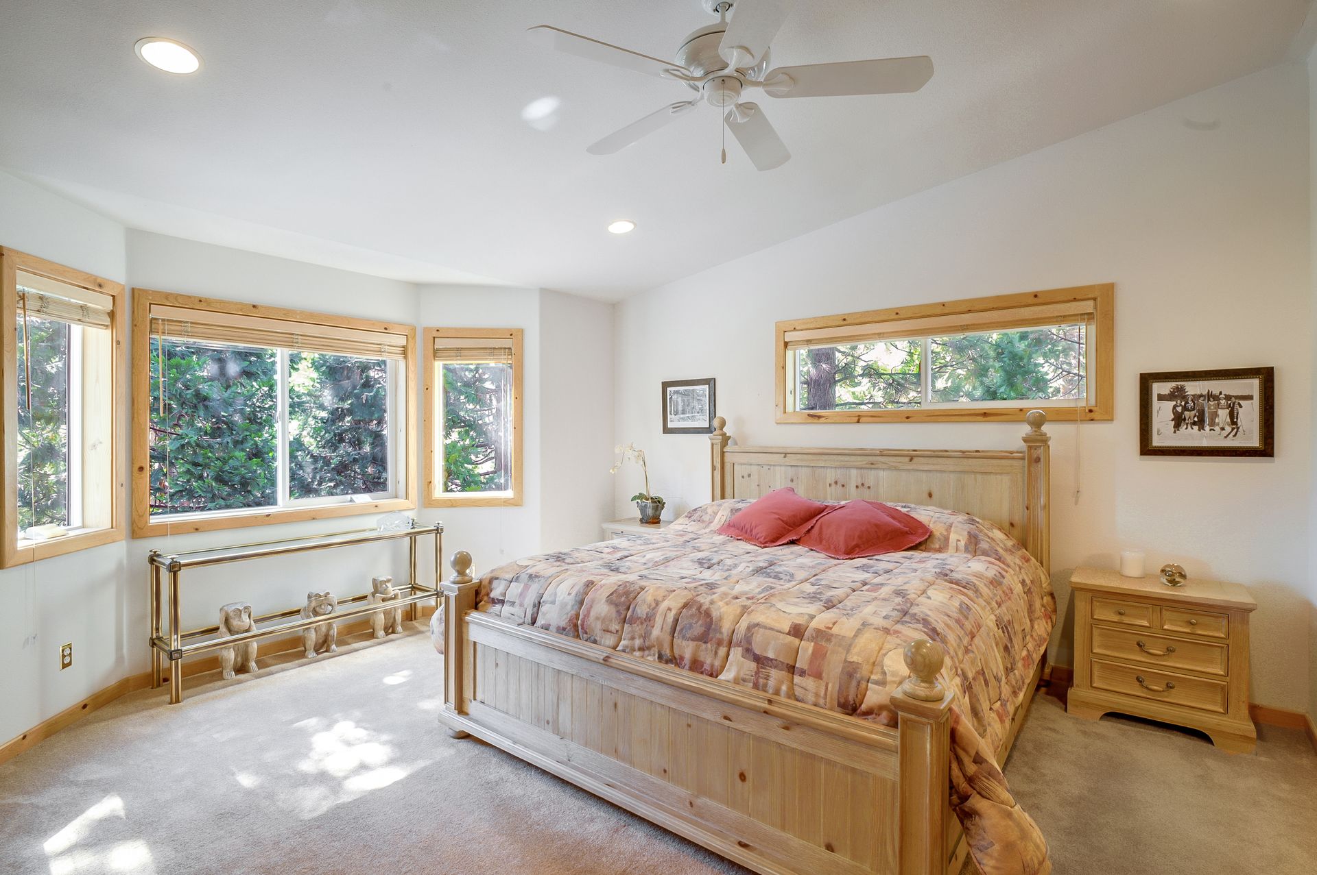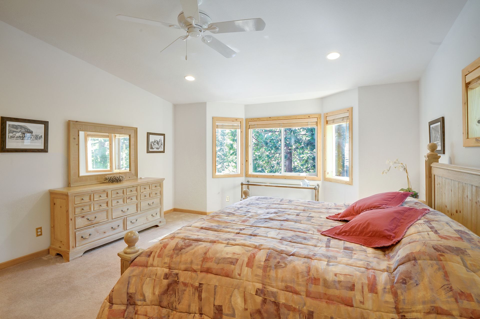 A very special mountain retreat lovingly maintained by the original owner. Exceptionally private location bordered by park land on the north and Conservancy land to the east. Interior features four spacious bedrooms and 2.5 bathrooms, an open living/dining and kitchen area that is ideal for entertaining, a spectacular river-rock gas-burning fireplace, vaulted pine ceilings, peeled-log railings, granite-slab counters, solid-core raised panel doors and a separate family room. There are plenty of windows to bathe the interior in natural light and bring the outdoors inside. A private trail meanders from the back of the parcel to a spectacular grove of cedar trees and the North Tahoe Regional park featuring a children's play area, cross country skiing and snowshoeing, fitness par course, dog park, sledding and snowmobiling, tennis and pickleball courts, tree top adventure course, hiking and biking trails, disc golf course, all weather soccer and lacrosse field, and more. Sold mostly (and tastefully) furnished...just bring your toothbrush. A short drive to Tahoe's sandy shores and Northstar Ski Resort. Truly a mountain home for all seasons.
