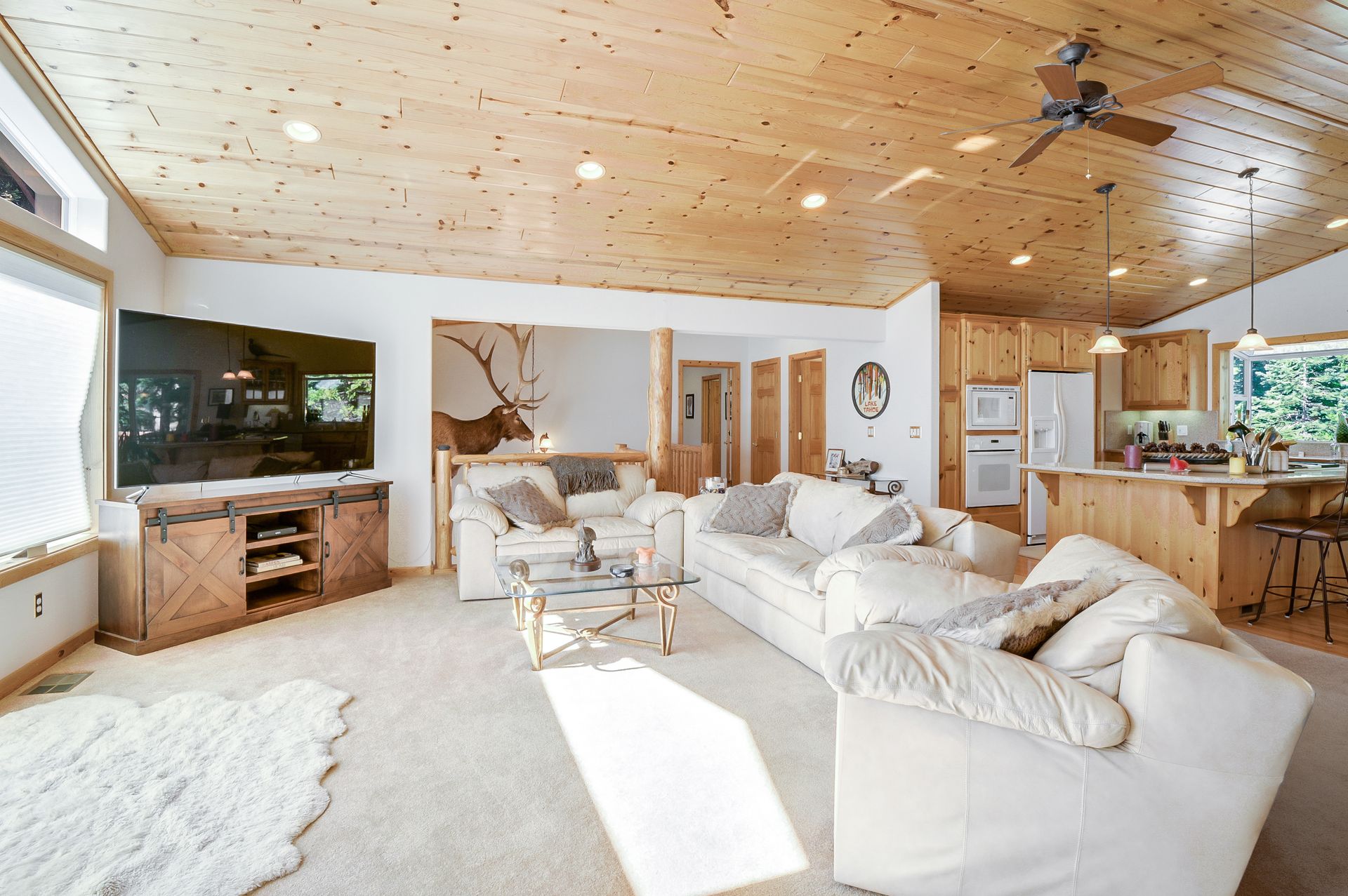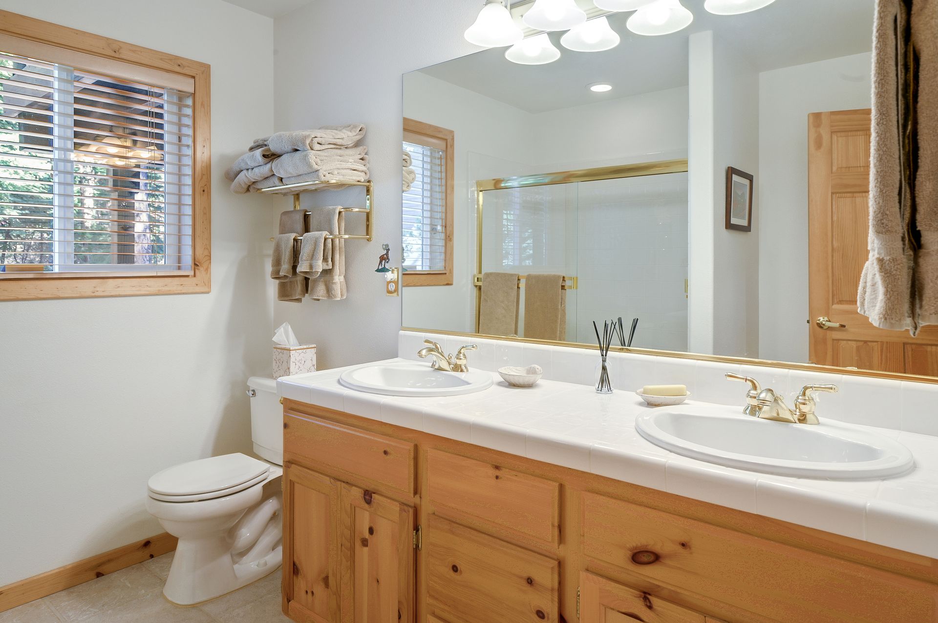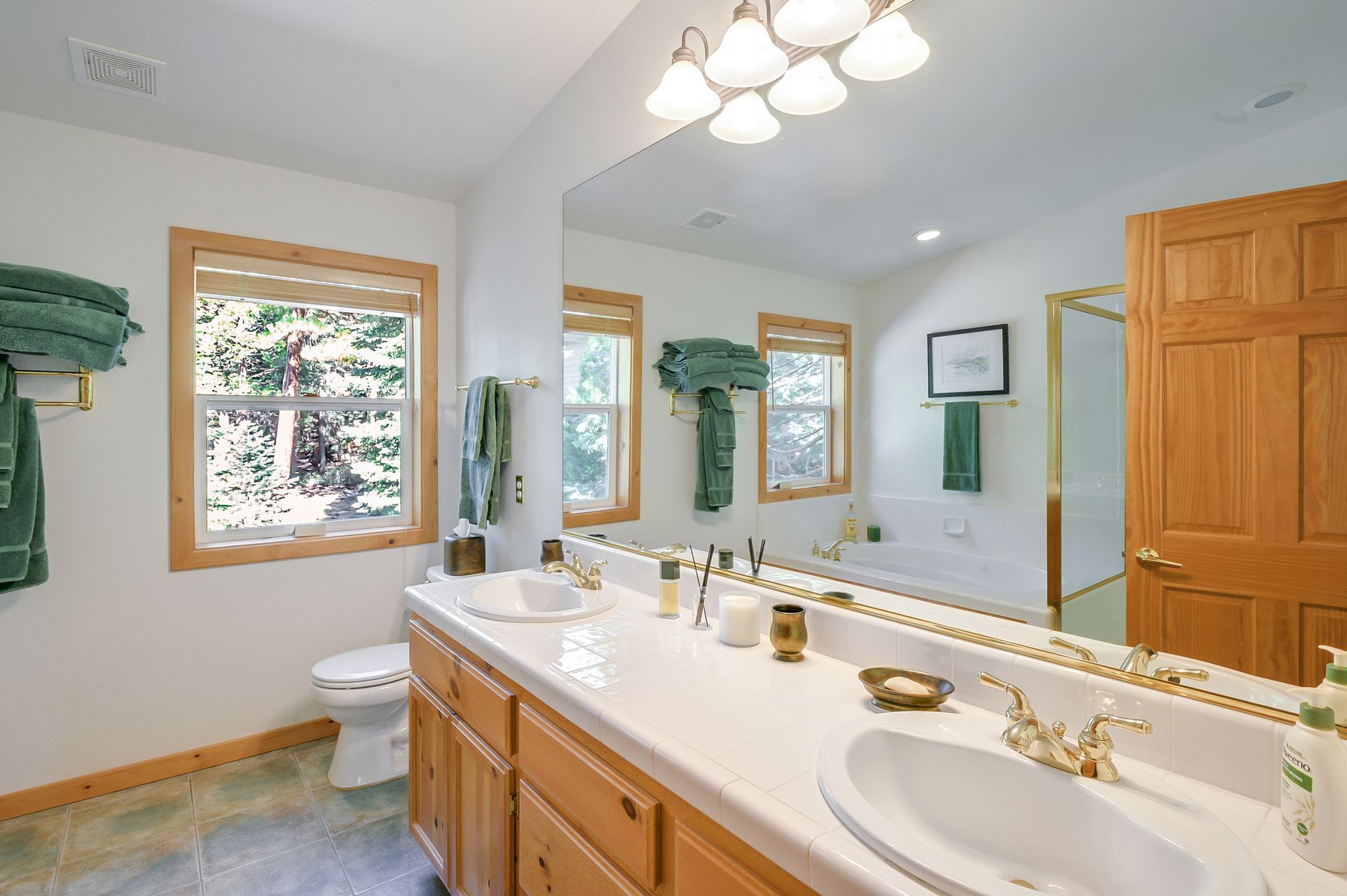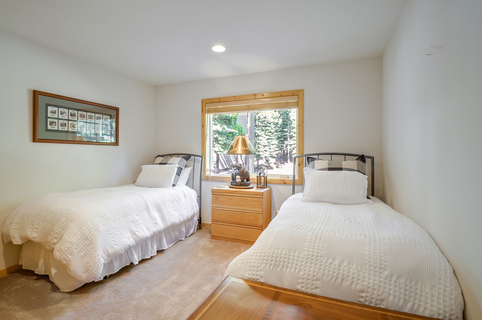 A very special mountain retreat lovingly maintained by the original owner. Exceptionally private location bordered by park land on the north and Conservancy land to the east. Interior features four spacious bedrooms and 2.5 bathrooms, an open living/dining and kitchen area that is ideal for entertaining, a spectacular river-rock gas-burning fireplace, vaulted pine ceilings, peeled-log railings, granite-slab counters, solid-core raised panel doors and a separate family room. There are plenty of windows to bathe the interior in natural light and bring the outdoors inside. A private trail meanders from the back of the parcel to a spectacular grove of cedar trees and the North Tahoe Regional park featuring a children's play area, cross country skiing and snowshoeing, fitness par course, dog park, sledding and snowmobiling, tennis and pickleball courts, tree top adventure course, hiking and biking trails, disc golf course, all weather soccer and lacrosse field, and more. Sold mostly (and tastefully) furnished...just bring your toothbrush. A short drive to Tahoe's sandy shores and Northstar Ski Resort. Truly a mountain home for all seasons.