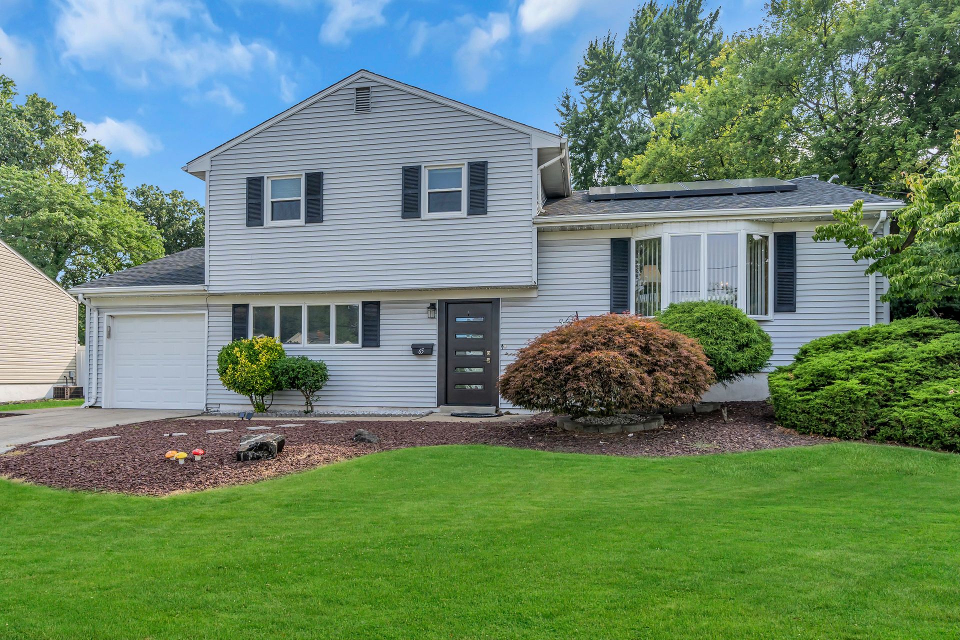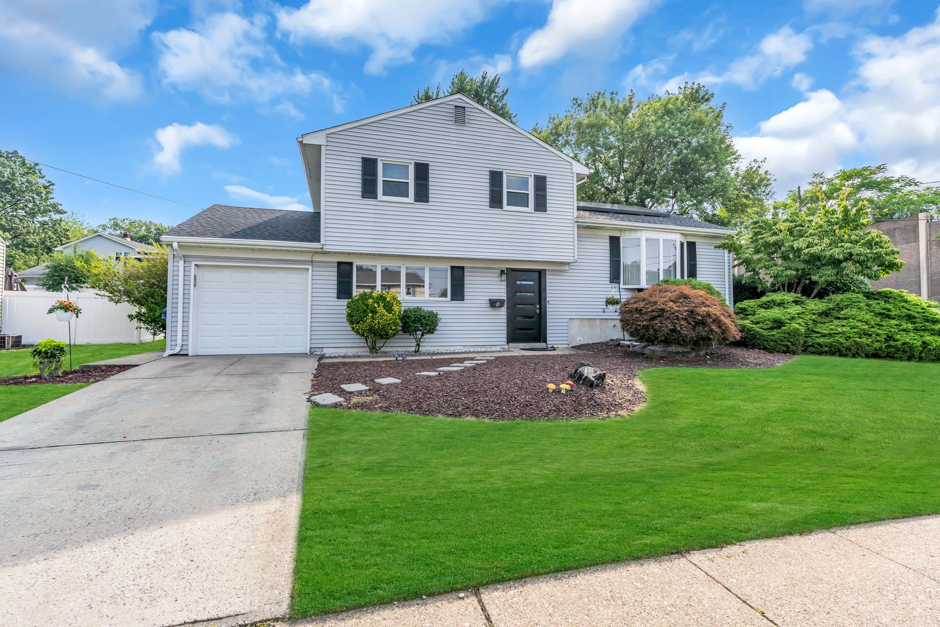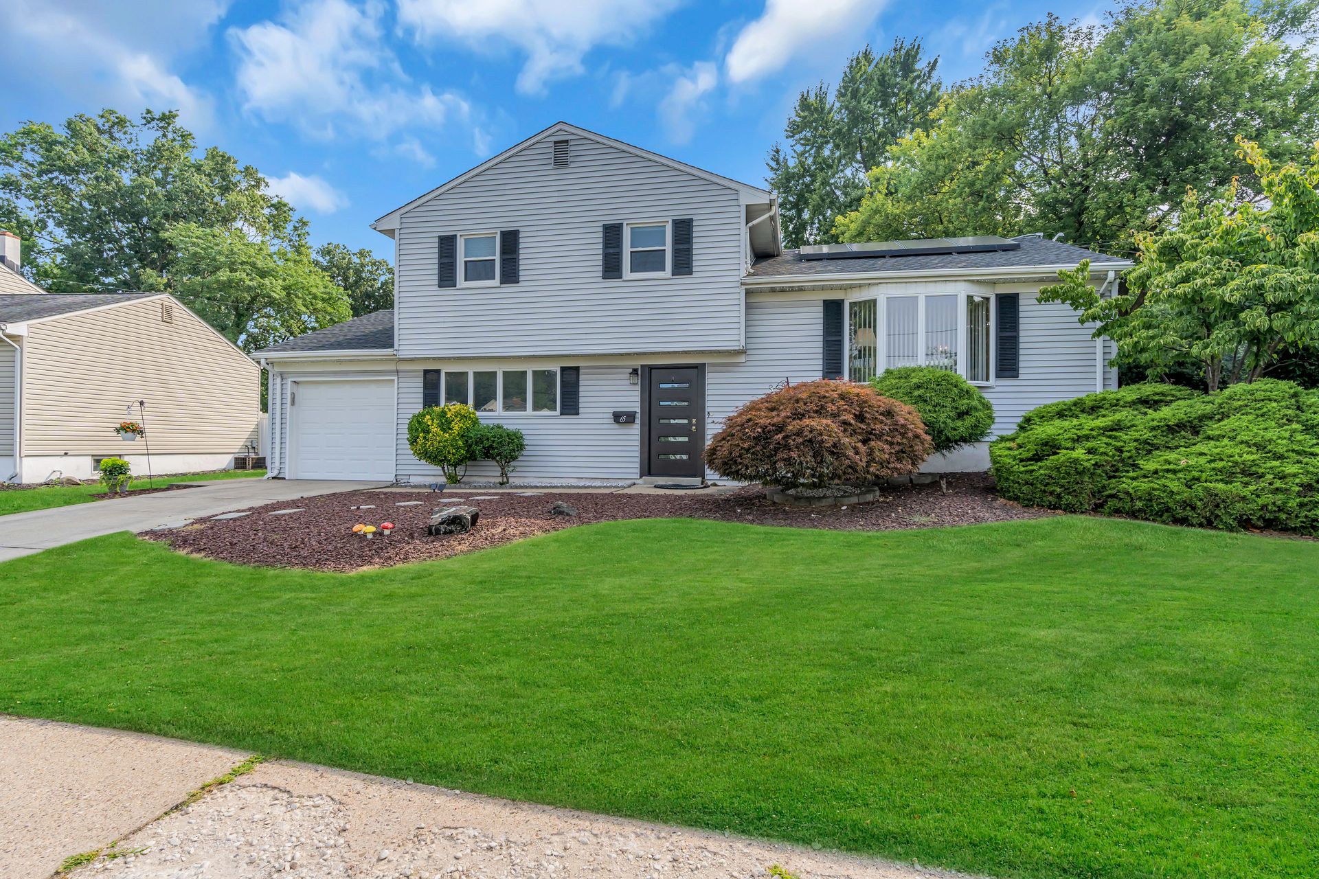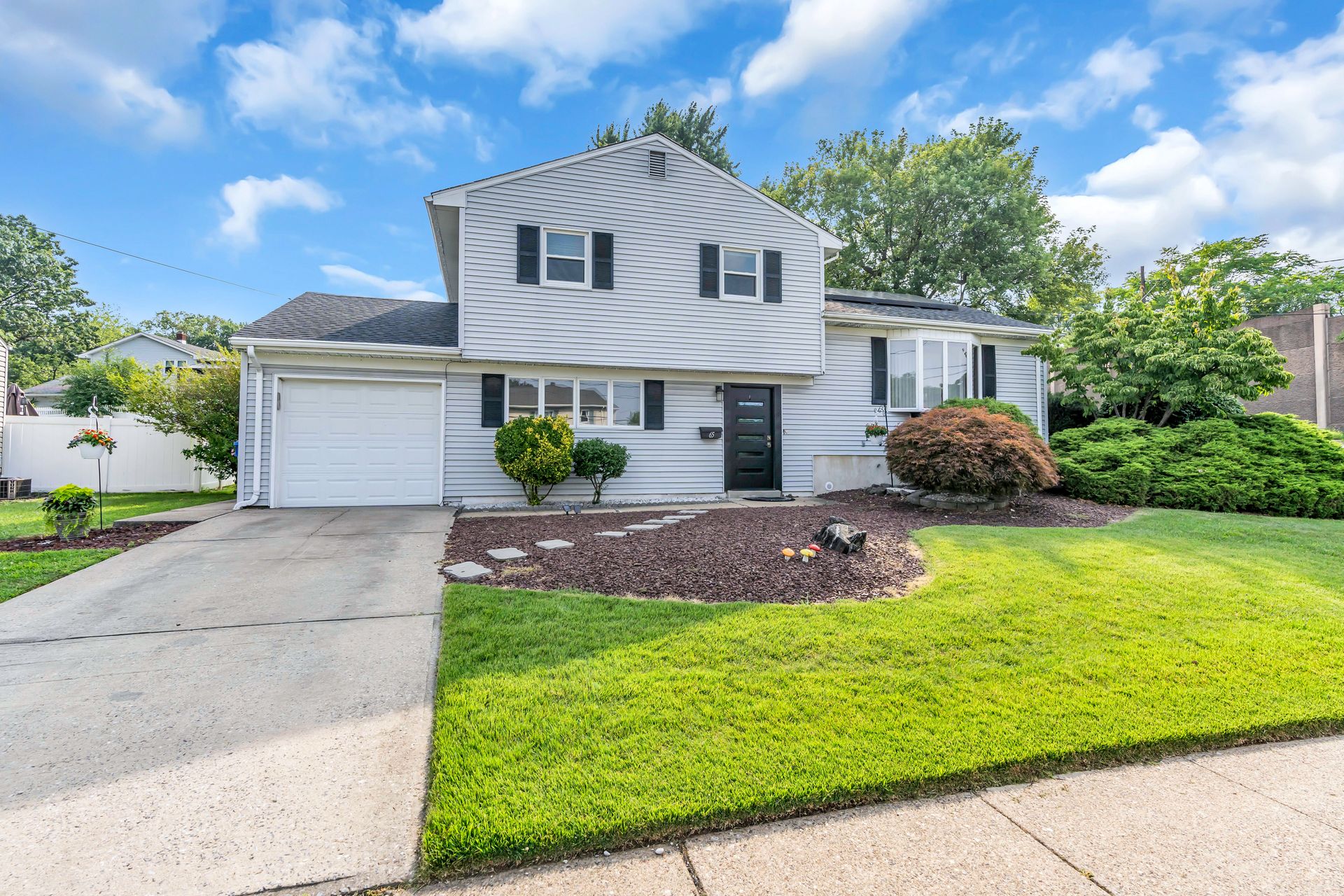 Welcome to this lovely, move-in-ready split-level located within minutes of two malls, shopping centers, five major highways and train stations. Whether heading to work or exploring the city, transportation from this strategically located home is effortless. This home offers three bedrooms, one and a half baths, a formal living room and dining room, a family room and an office/guest room. A renovated full bathroom and kitchen with new stainless steel appliances and under-cabinet lights. Exterior highlights include a spacious yard, an outdoor fire pit and a deck, offering outdoor relaxation and entertainment opportunities. The attached garage and ample parking ensure convenient access and storage. Additional features include hardwood floors, vaulted ceilings, a full basement with high ceilings and heating and cooling, a newer Provia high-efficiency front door, an automatic/programable entrance light, a newer water heater, newer windows and a newer roof. This charming split-level residence is ready for its next lucky owner to move in and make it their own. Don't miss out on this opportunity to experience suburban tranquility with urban accessibility.