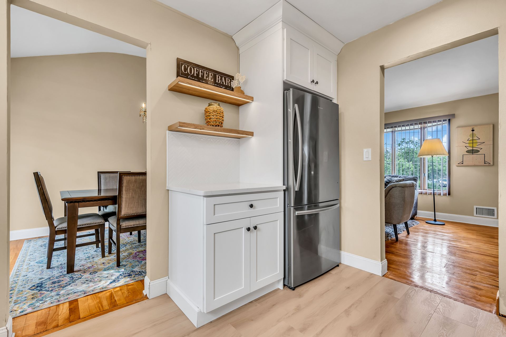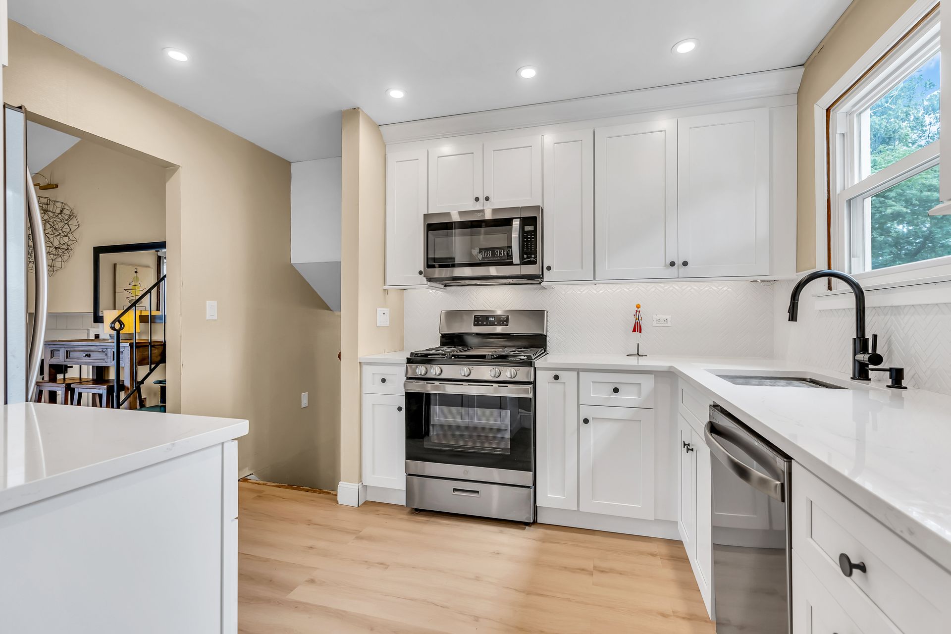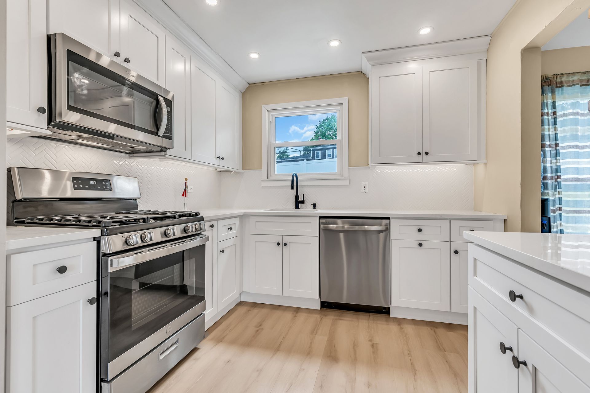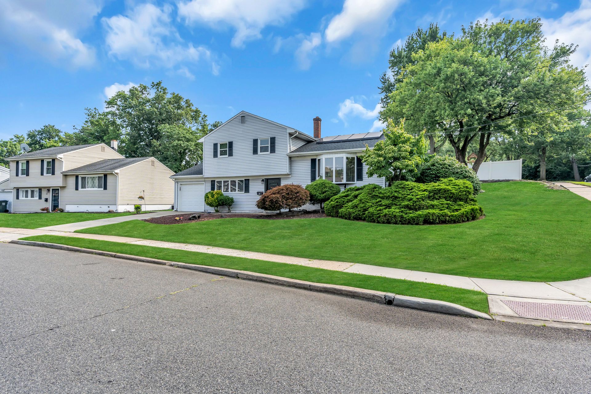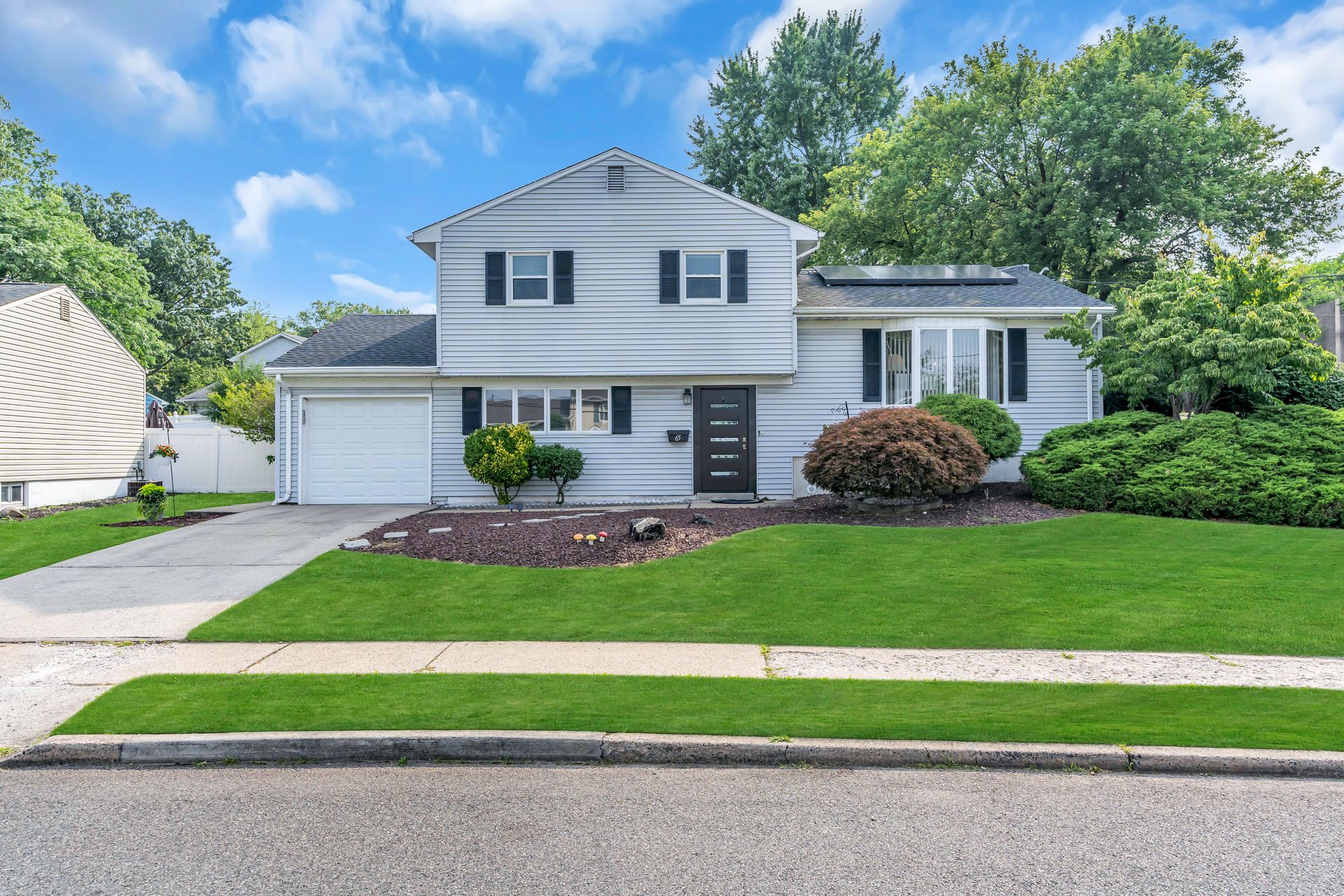 Welcome to this lovely, move-in-ready split-level located within minutes of two malls, shopping centers, five major highways and train stations. Whether heading to work or exploring the city, transportation from this strategically located home is effortless. This home offers three bedrooms, one and a half baths, a formal living room and dining room, a family room and an office/guest room. A renovated full bathroom and kitchen with new stainless steel appliances and under-cabinet lights. Exterior highlights include a spacious yard, an outdoor fire pit and a deck, offering outdoor relaxation and entertainment opportunities. The attached garage and ample parking ensure convenient access and storage. Additional features include hardwood floors, vaulted ceilings, a full basement with high ceilings and heating and cooling, a newer Provia high-efficiency front door, an automatic/programable entrance light, a newer water heater, newer windows and a newer roof. This charming split-level residence is ready for its next lucky owner to move in and make it their own. Don't miss out on this opportunity to experience suburban tranquility with urban accessibility.