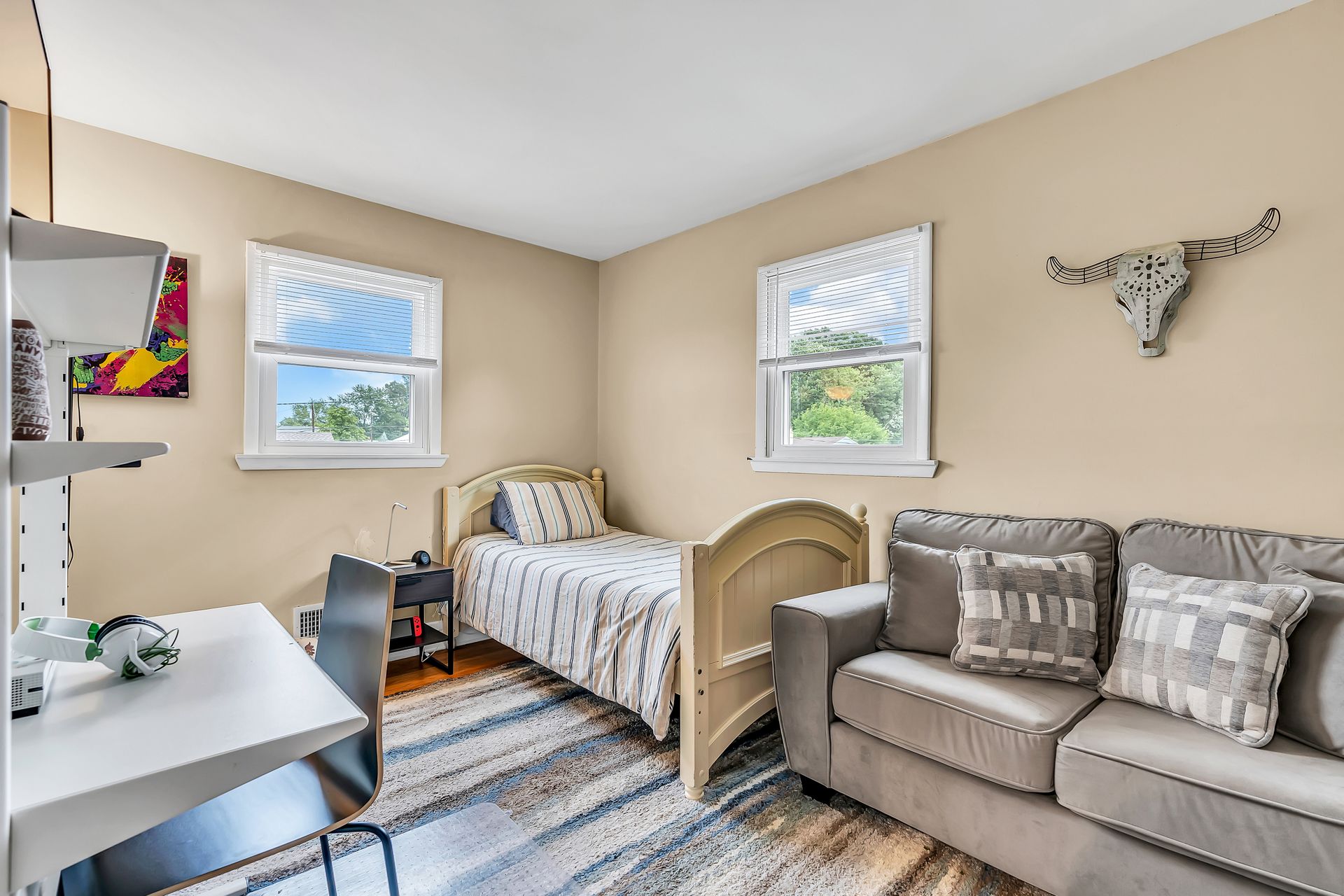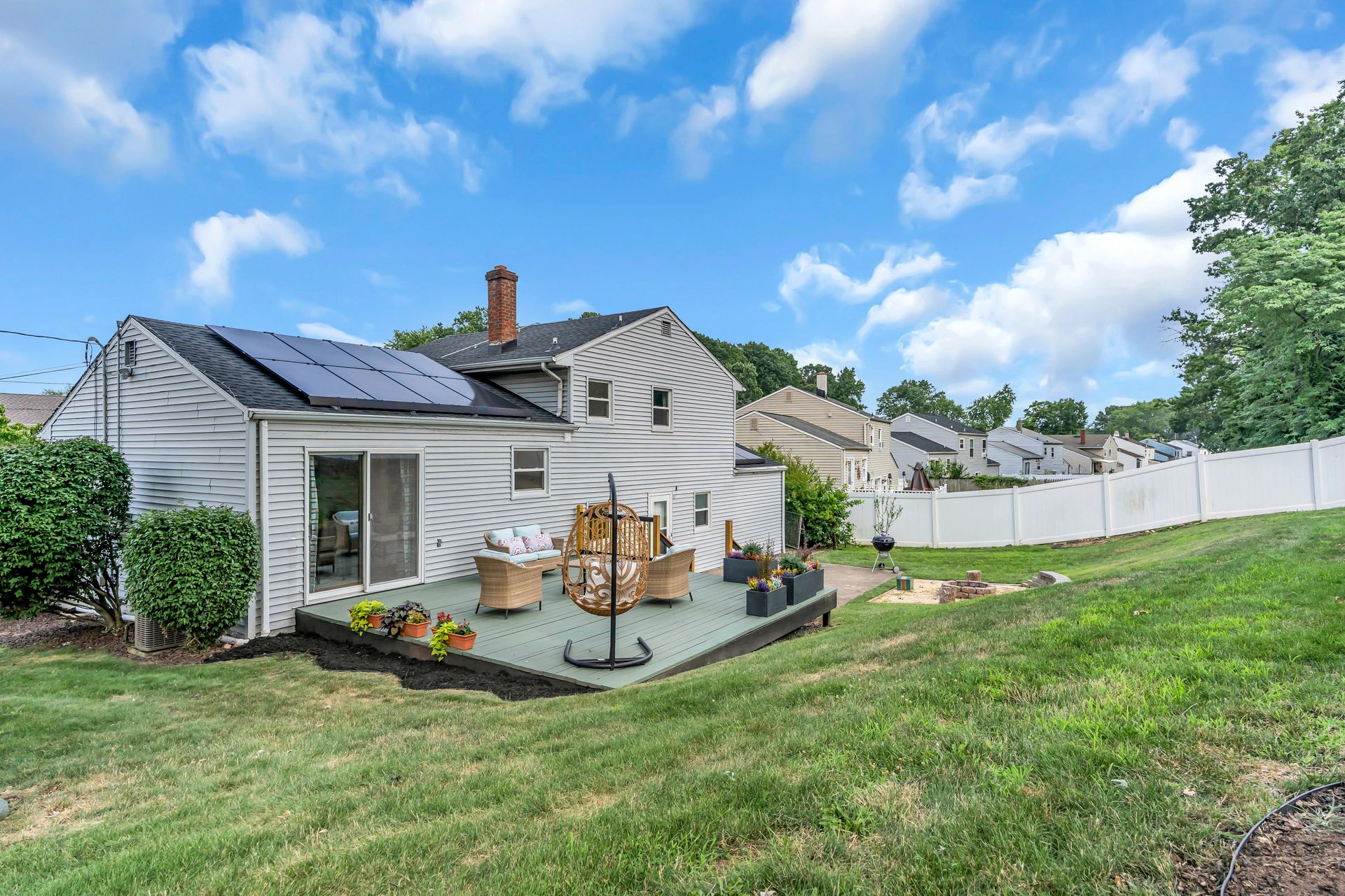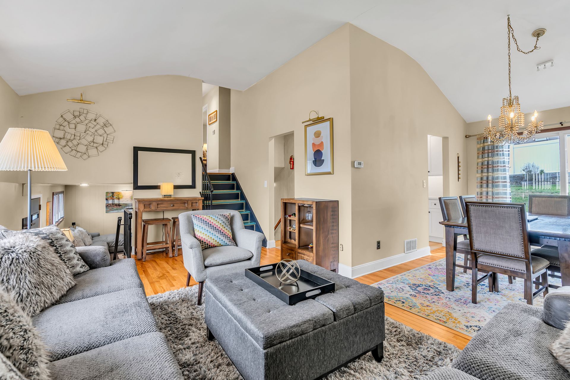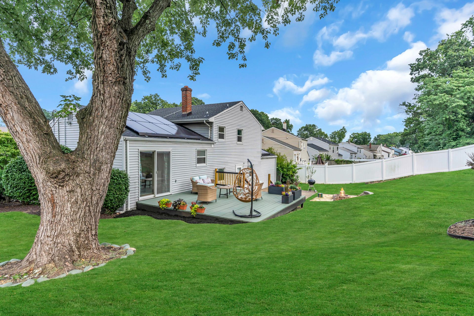 Welcome to this lovely, move-in-ready split-level located within minutes of two malls, shopping centers, five major highways and train stations. Whether heading to work or exploring the city, transportation from this strategically located home is effortless. This home offers three bedrooms, one and a half baths, a formal living room and dining room, a family room and an office/guest room. A renovated full bathroom and kitchen with new stainless steel appliances and under-cabinet lights. Exterior highlights include a spacious yard, an outdoor fire pit and a deck, offering outdoor relaxation and entertainment opportunities. The attached garage and ample parking ensure convenient access and storage. Additional features include hardwood floors, vaulted ceilings, a full basement with high ceilings and heating and cooling, a newer Provia high-efficiency front door, an automatic/programable entrance light, a newer water heater, newer windows and a newer roof. This charming split-level residence is ready for its next lucky owner to move in and make it their own. Don't miss out on this opportunity to experience suburban tranquility with urban accessibility.
