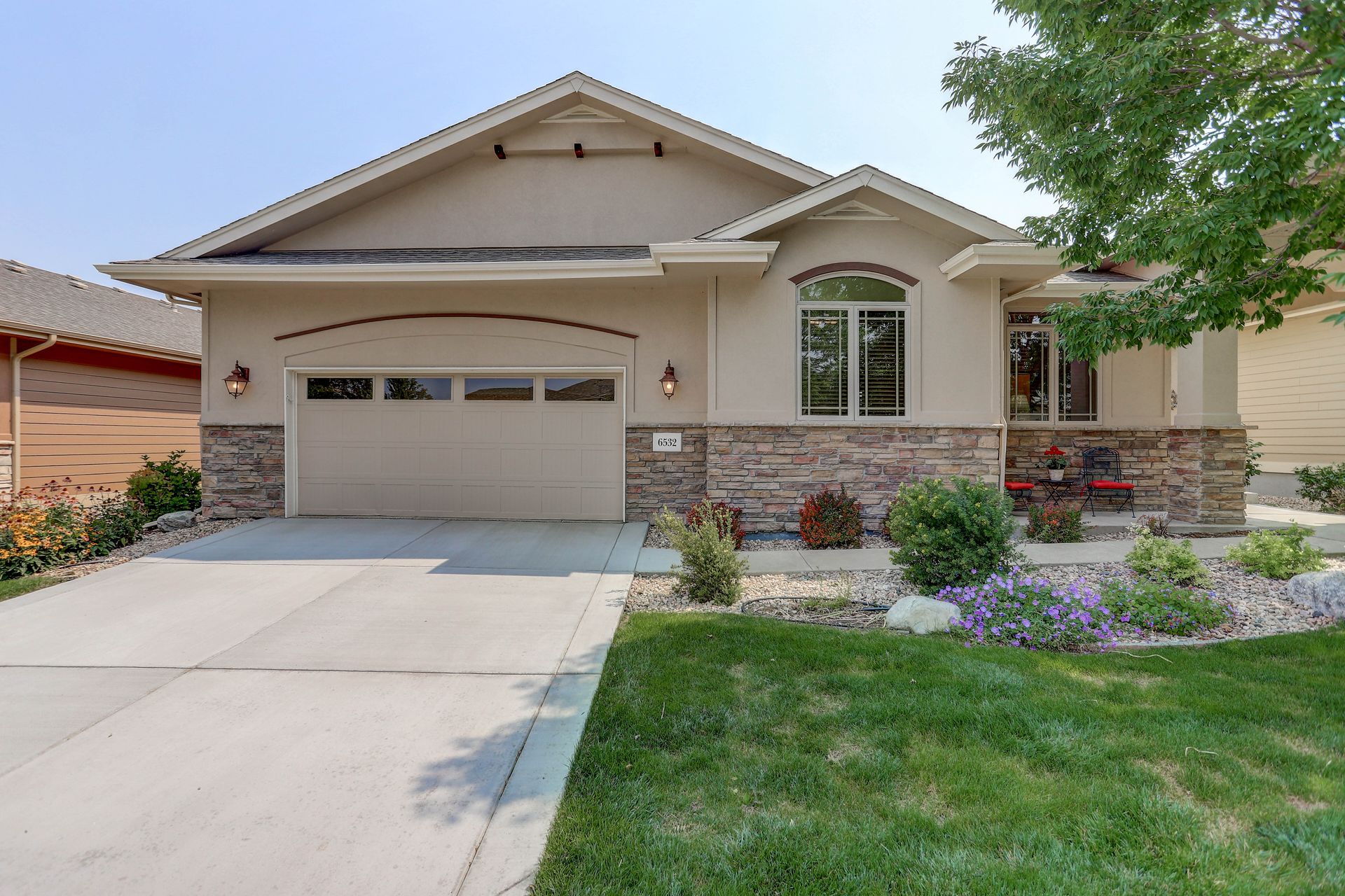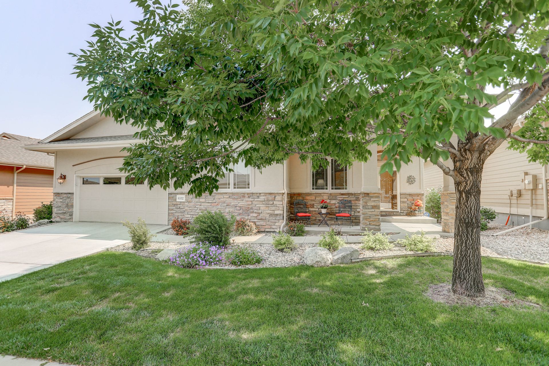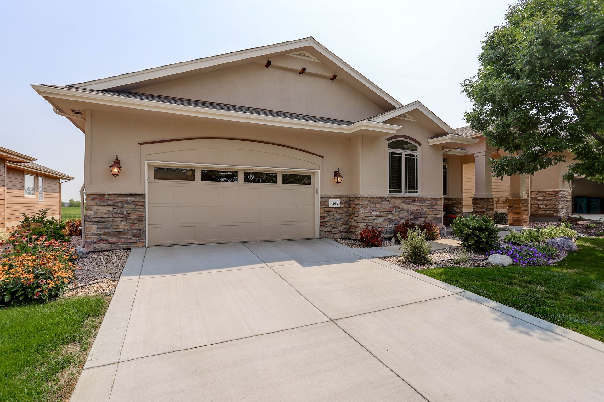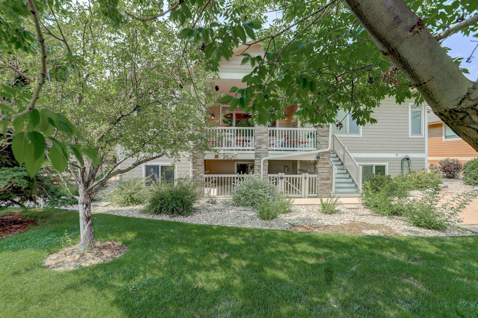Welcoming ranch offers an open and flowing floor plan, abundant light, and peaceful views. Entertaining is easy in the updated kitchen with hickory cabinets and thoughtful storage. You'll find granite counters, SS appliances, an island, and a pleasant nook. Wood floors flow throughout most of the main level including the dining room, guest suite and office. Owner’s suite offers a spacious 5-piece bath, raised vanities, jetted tub, and walk-in closet. Notice the solar tubes that add an abundance of light! Main level guest suite includes a private full bath. The laundry room has a sink, cabinets, and large pantry/closet. Enjoy the finished daylight basement offers a family room with fireplace, bright rec room, two additional bedrooms, and bath. Still, there is plenty of storage space too! Relax and enjoy the covered 16’ x 17’ deck that leads to the 16’ x 14’ patio with a privacy wall and fireplace. It’s a peaceful setting overlooking private green belt and the golf course.