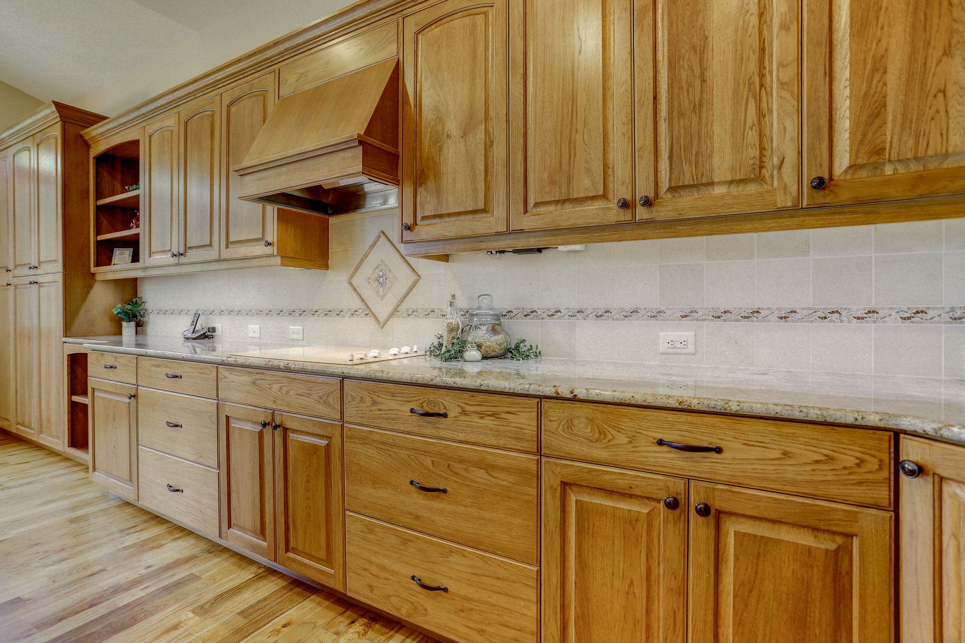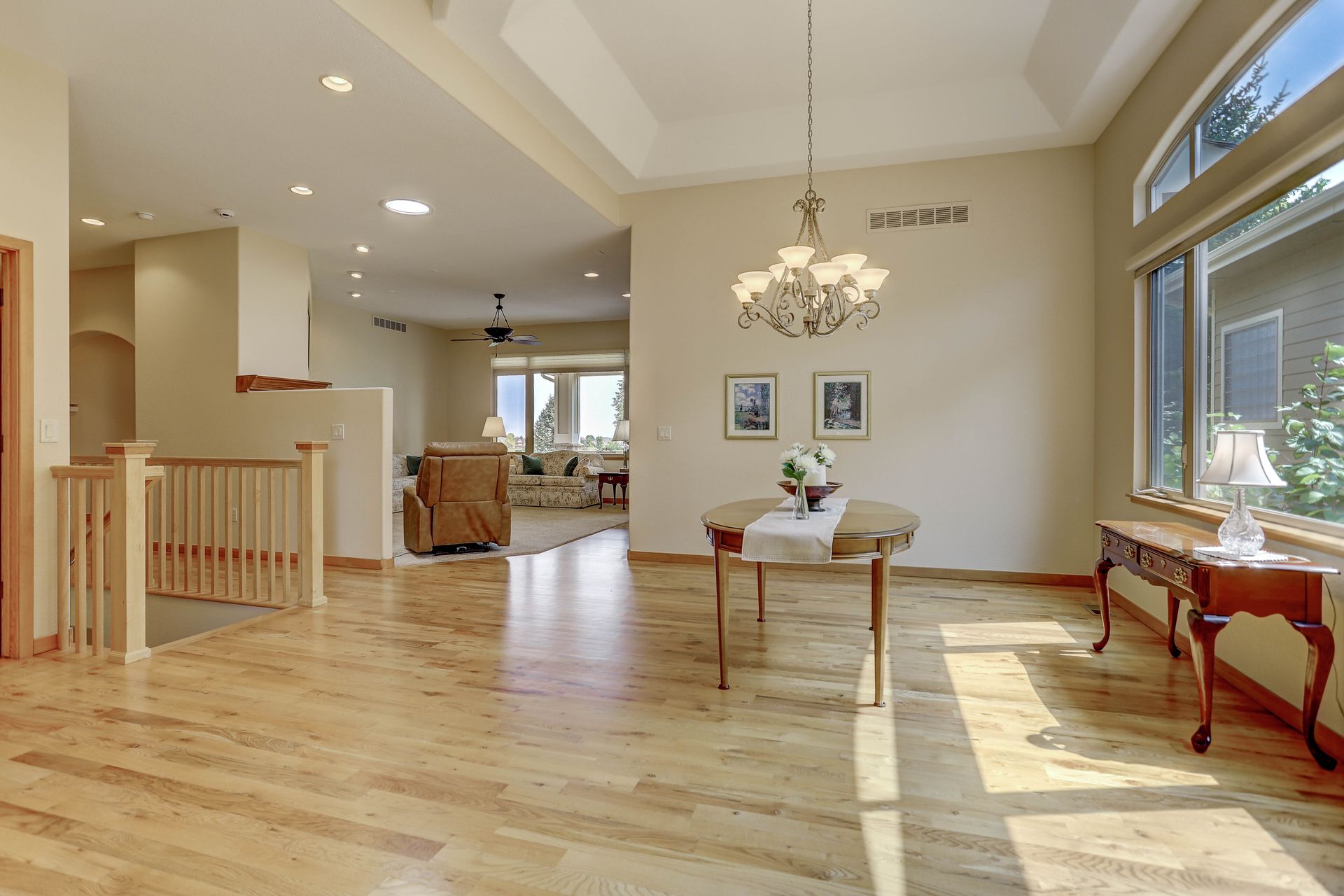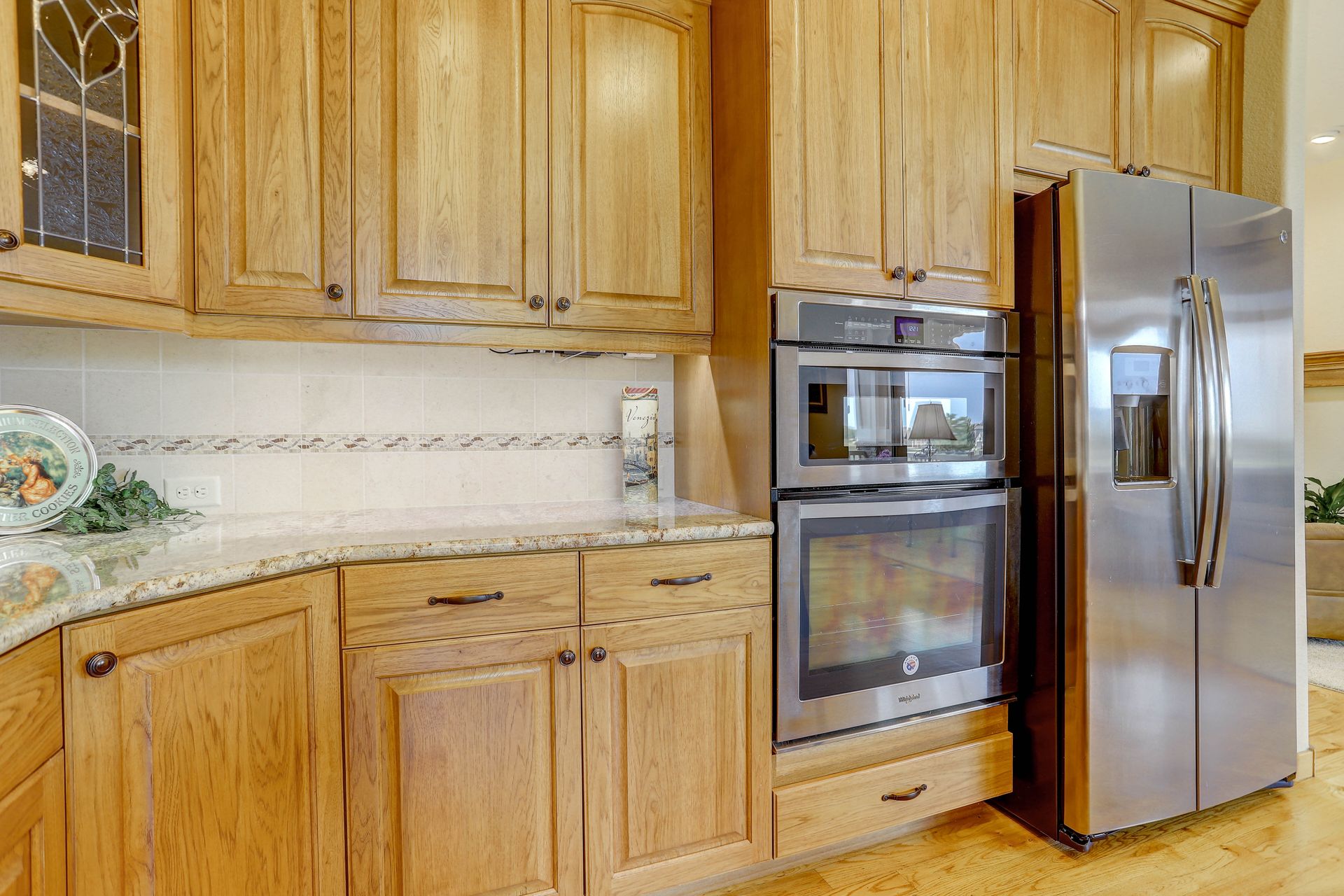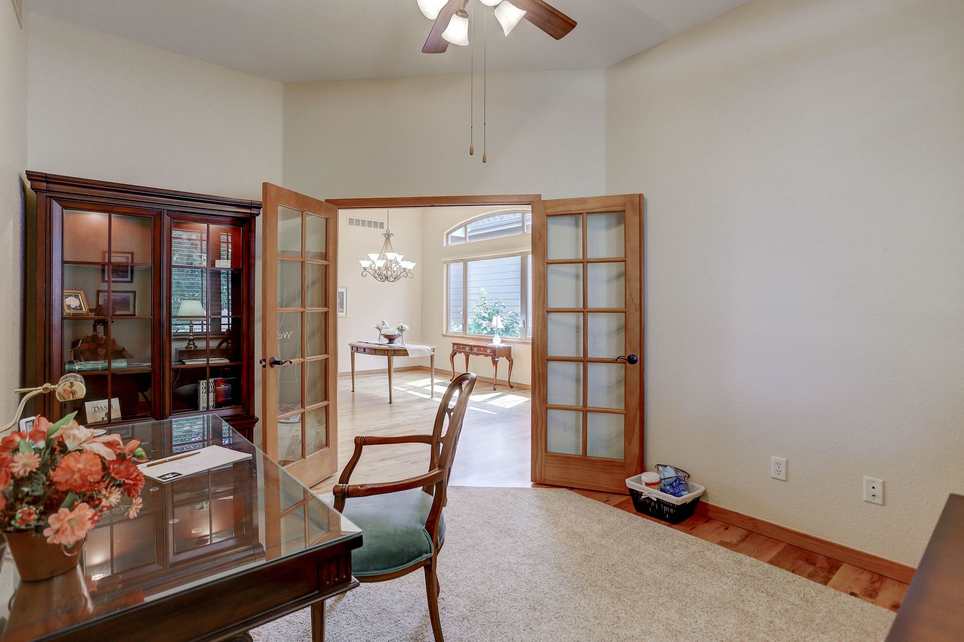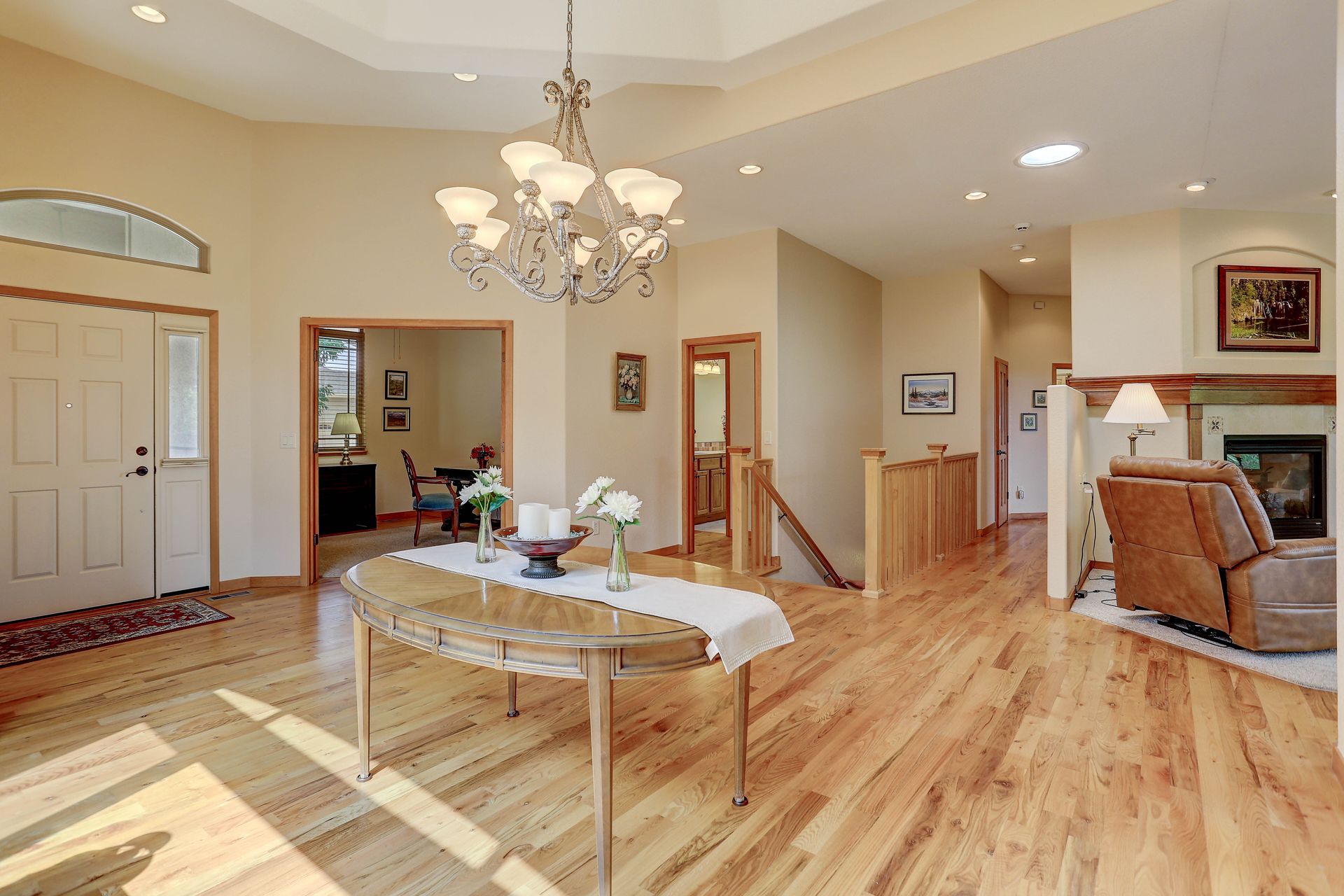 Welcoming ranch offers an open and flowing floor plan, abundant light, and peaceful views. Entertaining is easy in the updated kitchen with hickory cabinets and thoughtful storage. You'll find granite counters, SS appliances, an island, and a pleasant nook. Wood floors flow throughout most of the main level including the dining room, guest suite and office. Owner’s suite offers a spacious 5-piece bath, raised vanities, jetted tub, and walk-in closet. Notice the solar tubes that add an abundance of light! Main level guest suite includes a private full bath. The laundry room has a sink, cabinets, and large pantry/closet. Enjoy the finished daylight basement offers a family room with fireplace, bright rec room, two additional bedrooms, and bath. Still, there is plenty of storage space too! Relax and enjoy the covered 16’ x 17’ deck that leads to the 16’ x 14’ patio with a privacy wall and fireplace. It’s a peaceful setting overlooking private green belt and the golf course.