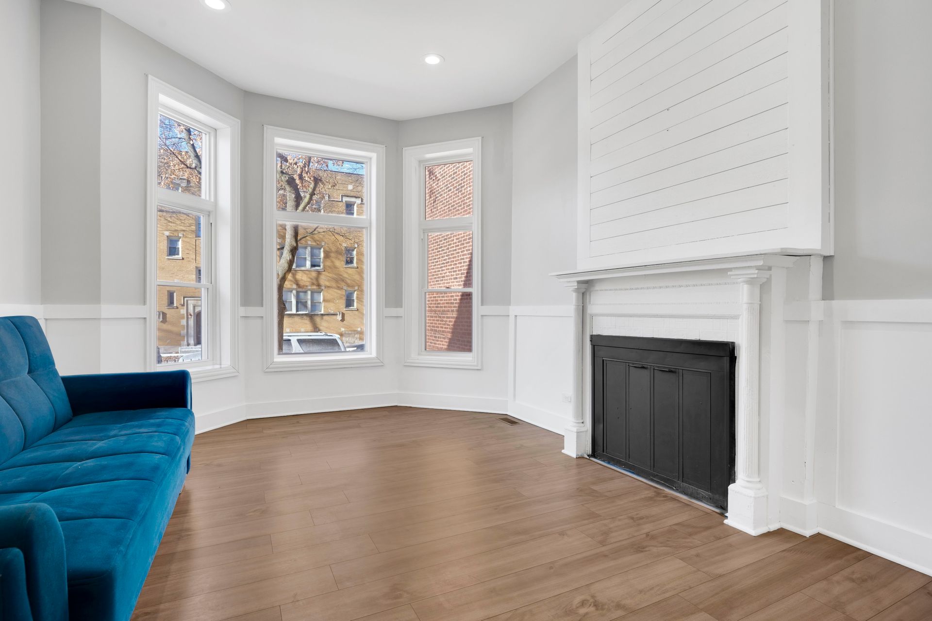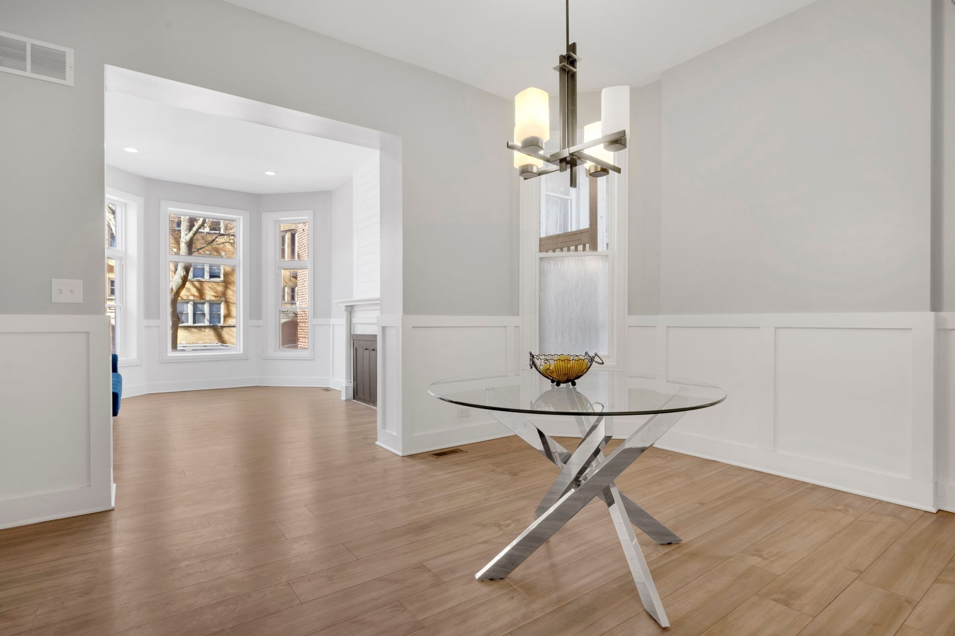 This approximately 3,150 square foot 2-Flat features seven bedrooms and two bathrooms. The 2 flat multi-unit showcases historic architecture with a brick exterior and an ornate entryway, creating a striking first impression. Inside, the spacious kitchen is equipped with modern appliances and ample cabinetry, providing an abundance of storage and preparation space. The primary bedroom offers an abundance of natural light and hardwood flooring, while the additional bedrooms feature a neutral color palette and an open, airy layout.