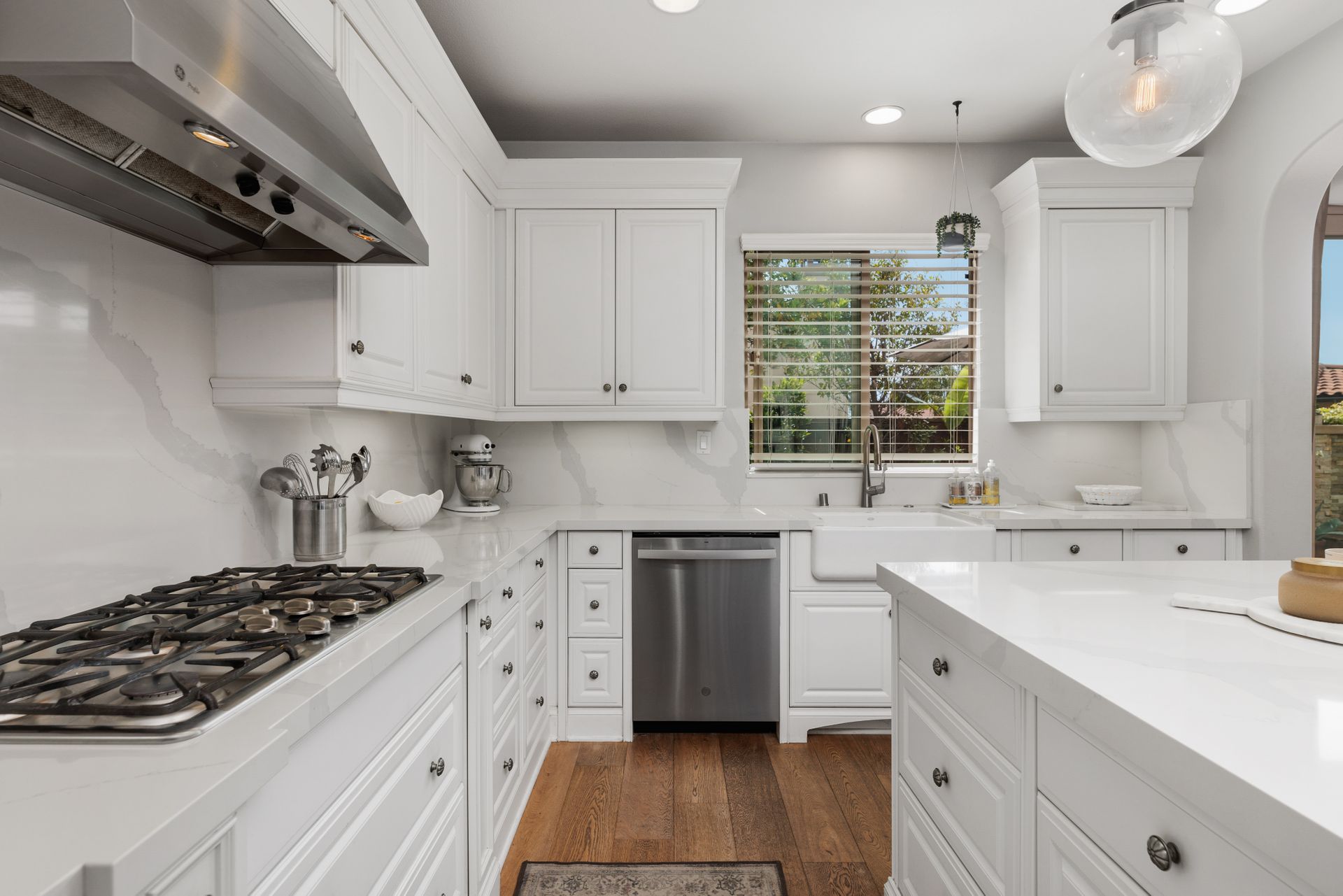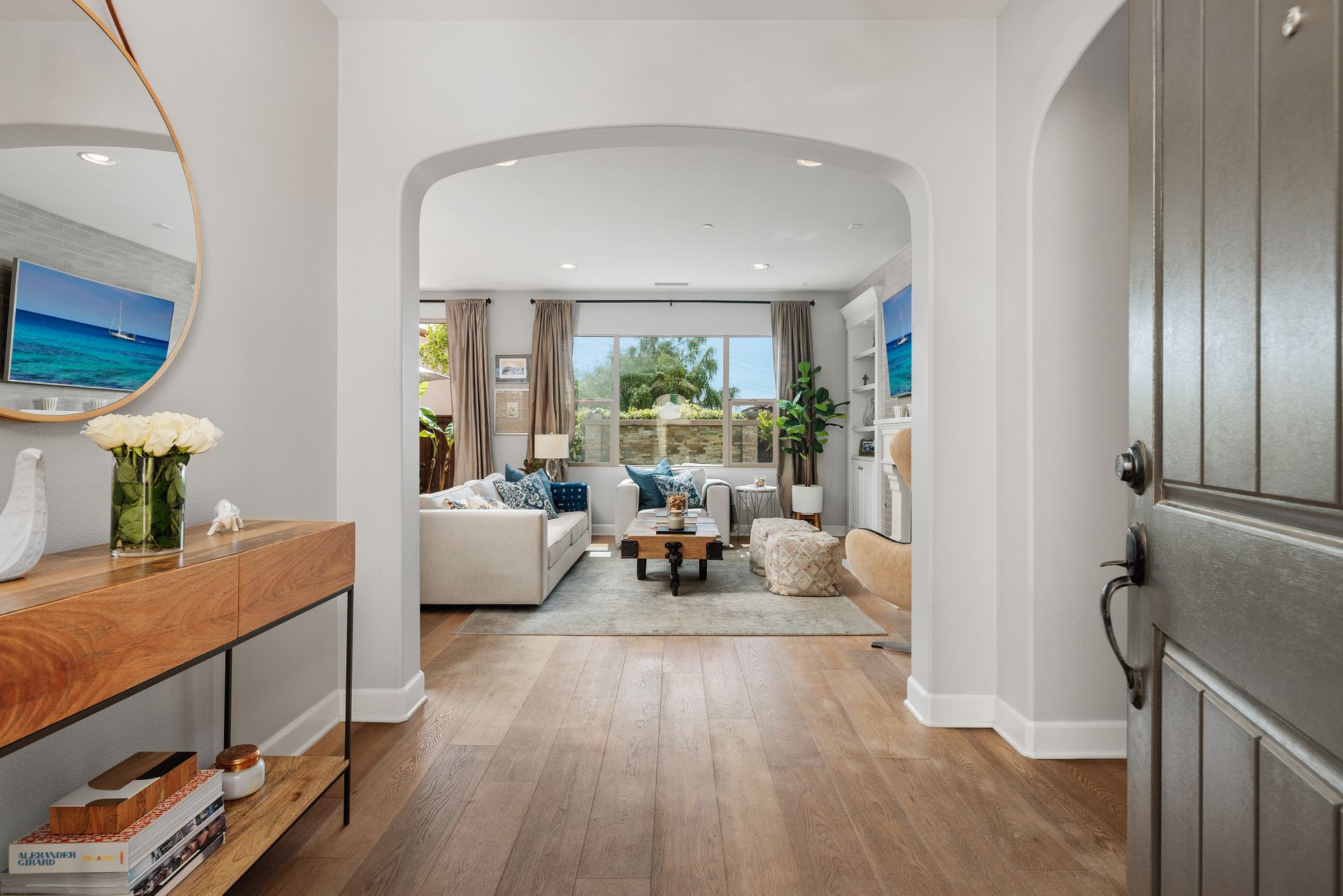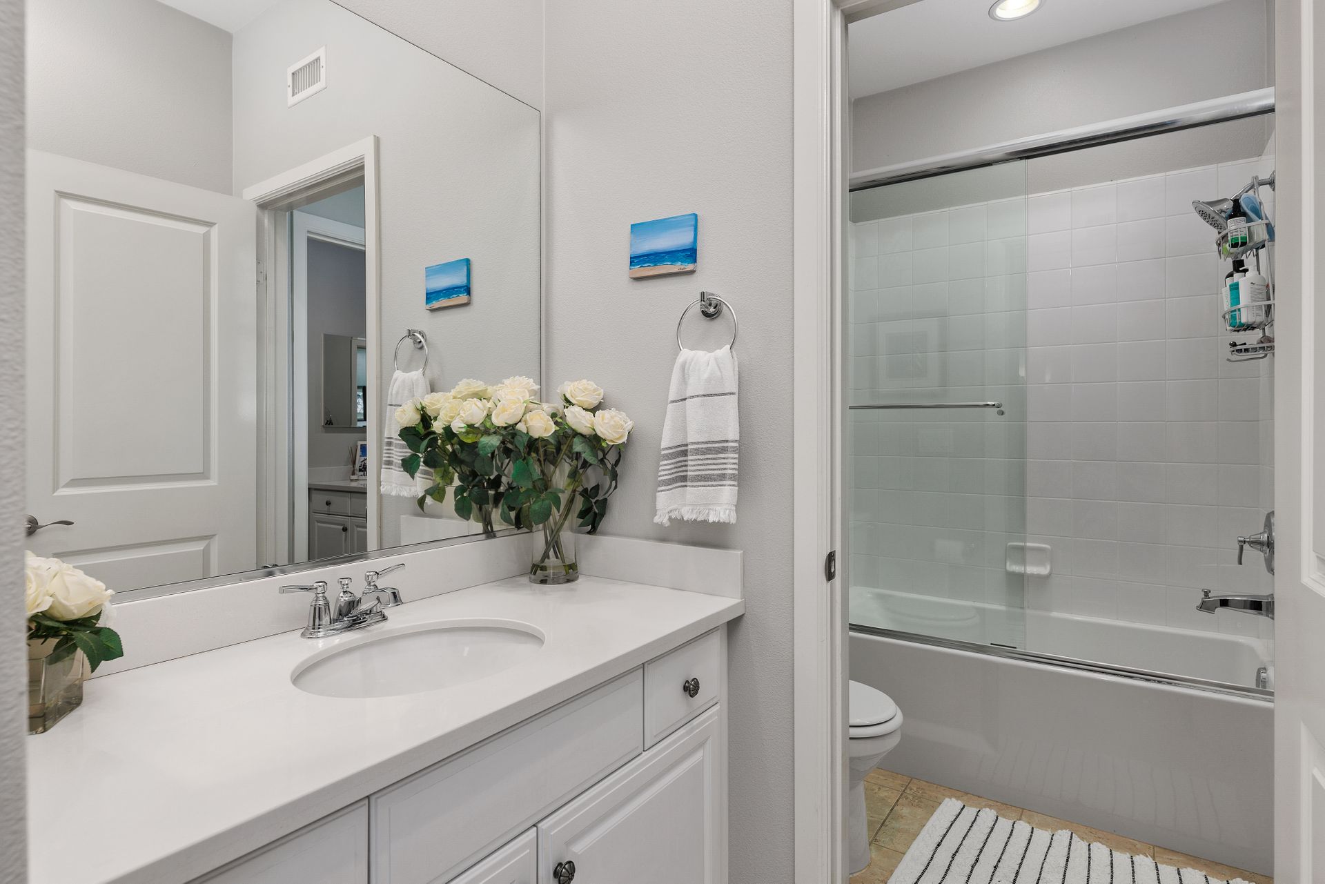 Gorgeous three bedrooms and two full and one-half baths featuring real hardwood flooring throughout. Stunning large covered entry leads to a sun-soaked living room. Chef’s kitchen with stainless, newer quartz and island that rolls out to the family room. Large primary suite with soaking tub and marble floors plus huge walk-in closet. West-facing rear yard with water/fire feature perfect for entertaining and barbecues. Home has numerous designer touches that make this home warm and ready to move in. Vista Del Mar built by Taylor Morrison in 2012 features a private park with panoramic ocean views. Almost two years since the last sale in the community, this is an opportunity. Come live the Carlsbad life with world-class golf nearby and just two and one-half miles to the beach and ocean waves.