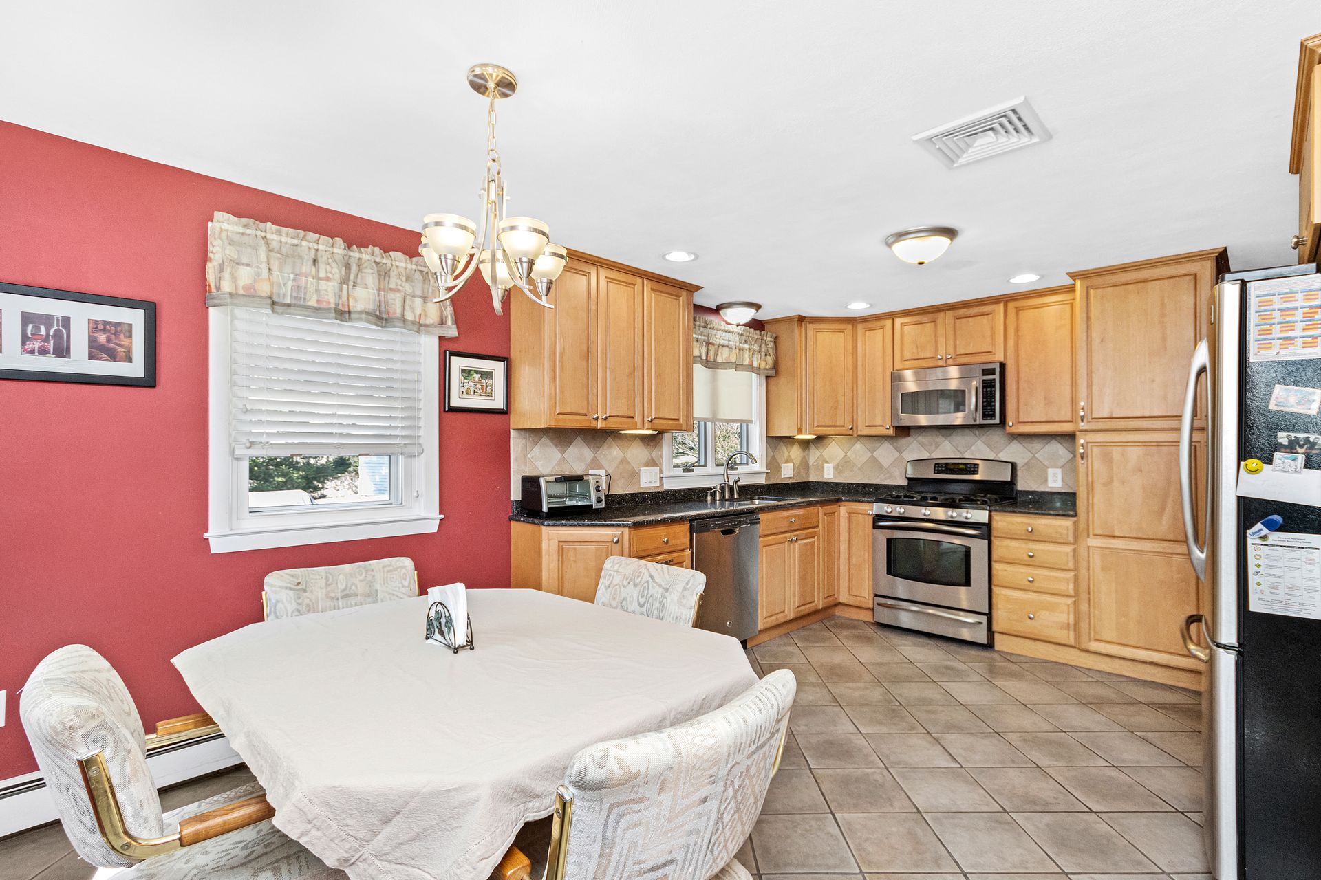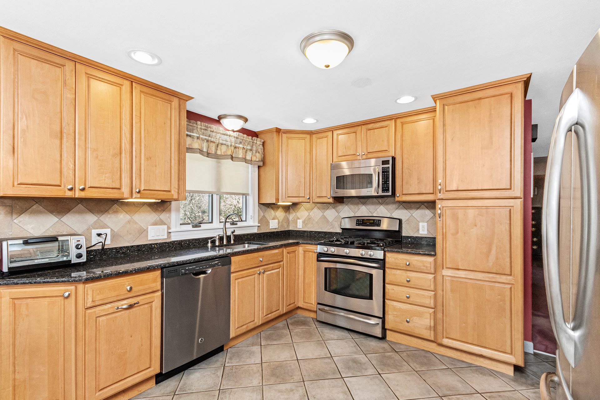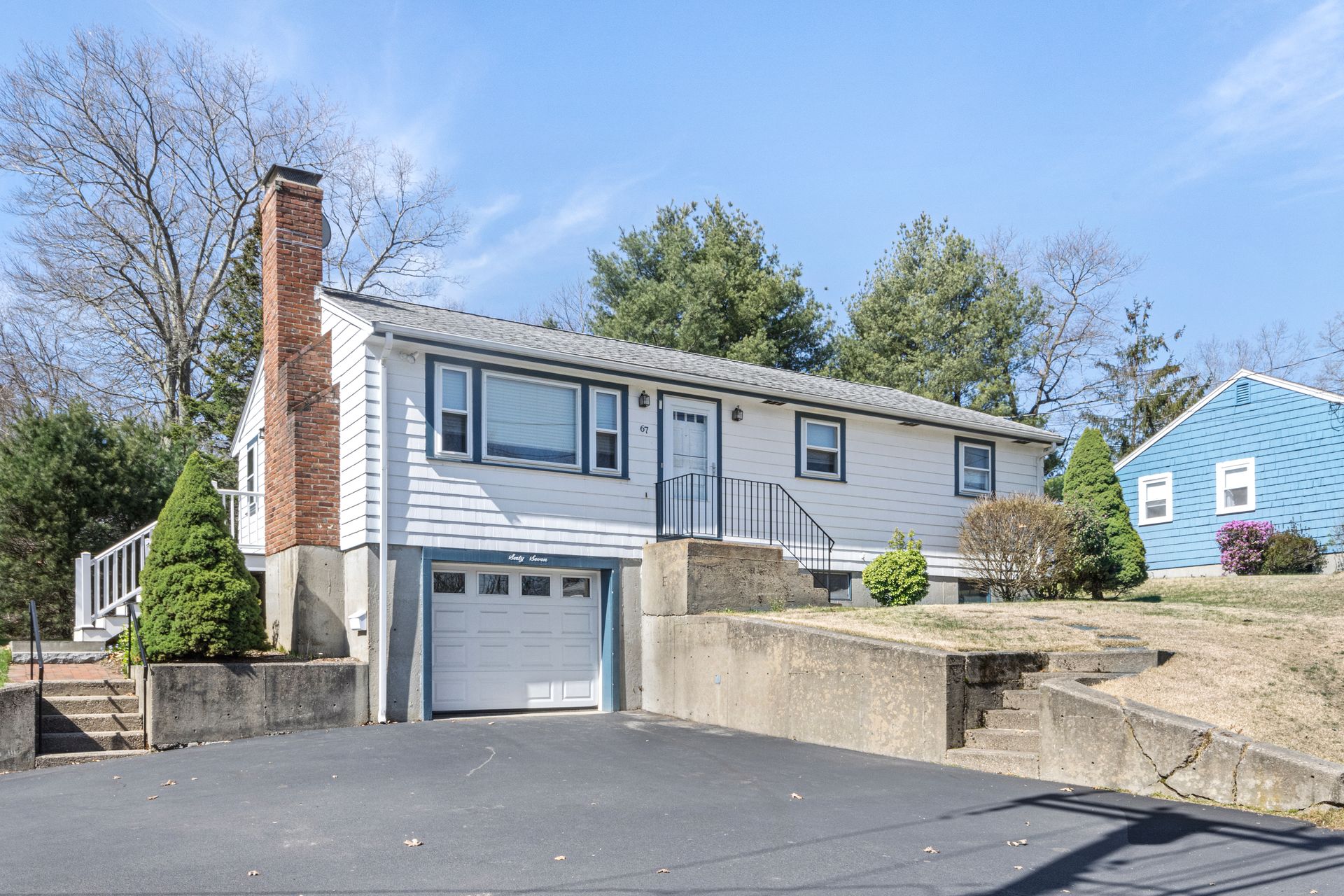 MOVE-IN CONDITION!! Stunning ranch built in 1968 and beautifully maintained and upgraded. This lovely ranch has a gorgeous updated kitchen with gleaming quartz counters with roll-out shelves, oak floors, upgraded central air conditioning, 200 Amp electric service with breakers, gas appliances and water heater. Upgraded windows, beautiful bathroom (with an extra commode in the cellar), one car garage and huge composite deck perfect for summer entertaining and modern color scheme. This ranch is a terrific starter or down-sizer home, one-floor living perfectly laid-out for ease of maintenance and simple living. One car garage with door opener seals the deal on this home! If you're looking for a "turn-key" ranch, look no further. Close to Route 1, I-95, stones throw to Supermarket, Walpole Mall, Patriot Place, Legacy Place and all the conveniences this area has to offer.