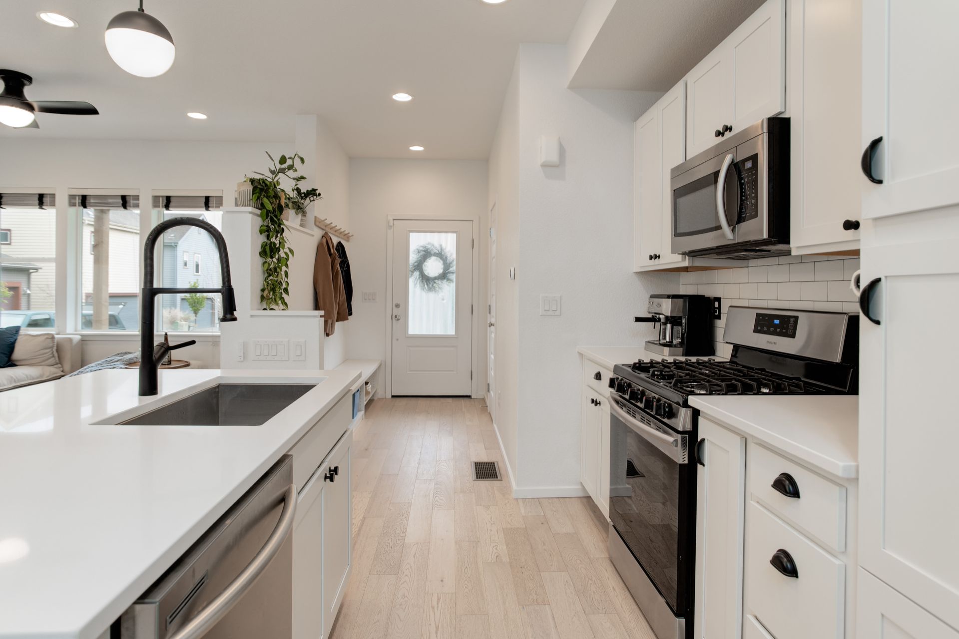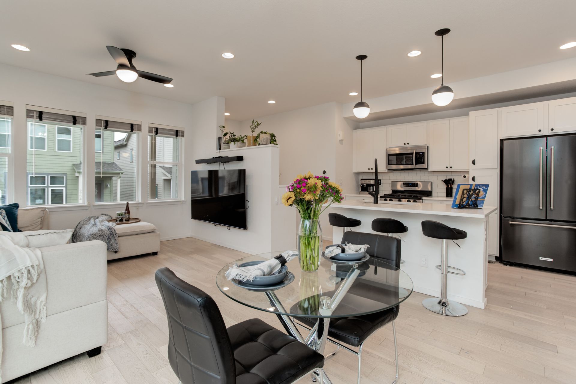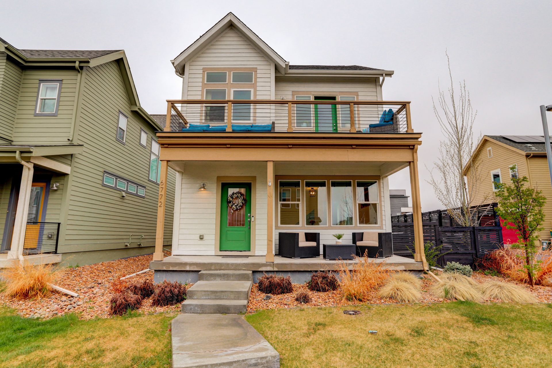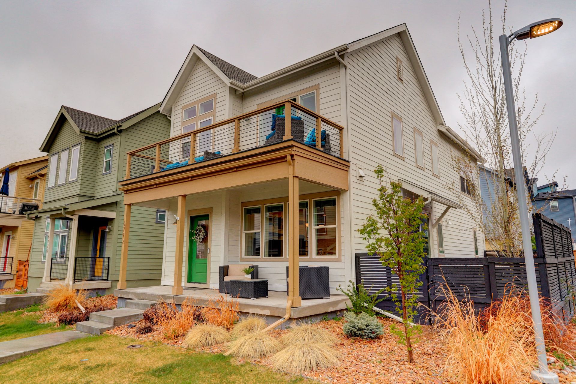 SELLERS JOB CHANGE IS YOUR GAIN! You will fall in love with the views from this south facing, completely upgraded home on a private corner lot in Midtown. Built in 2018, this home has a bright open floor plan featuring vaulted ceilings, large windows, an upgraded balcony, and attached 2 car garage. The thoughtful, well appointed, design features include hardwood floors throughout, matching quartz counters in kitchen and baths, stainless appliances including a gas range, large farm style sink, and electric blinds. You will love the convenience of a high efficiency tankless water heater, upgraded washer and dryer, and lawn sprinkler system. Enjoy upcoming summer evenings and weekend entertaining on your choice of outdoor spaces that include a fantastic front porch perfect for your morning coffee, an evening cocktail on the balcony off the upper level loft with amazing views of the mountains and downtown, or a weekend get together with family and friends in your private, fenced yard with a convenient concrete patio. Neighborhood amenities include impressive green space maintained by a very low HOA, dog parks within the community, and a local favorite brewery directly across Pecos. Located within a 10-minute walk to the train station or a 3 minute drive to I76 you have both direct access to downtown and are a quick drive to head to the mountains. You don’t want to miss such an amazing property in this highly desirable location!