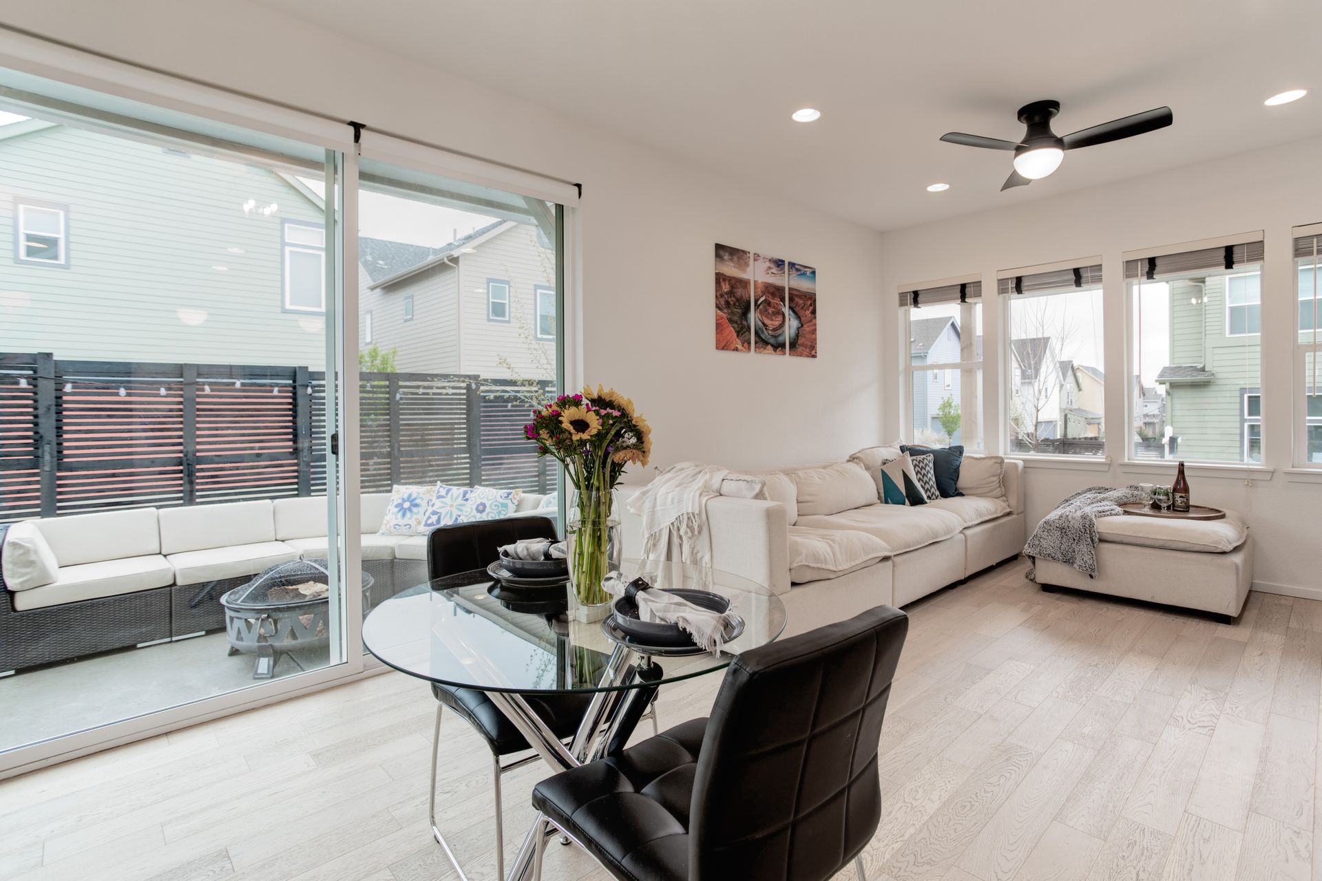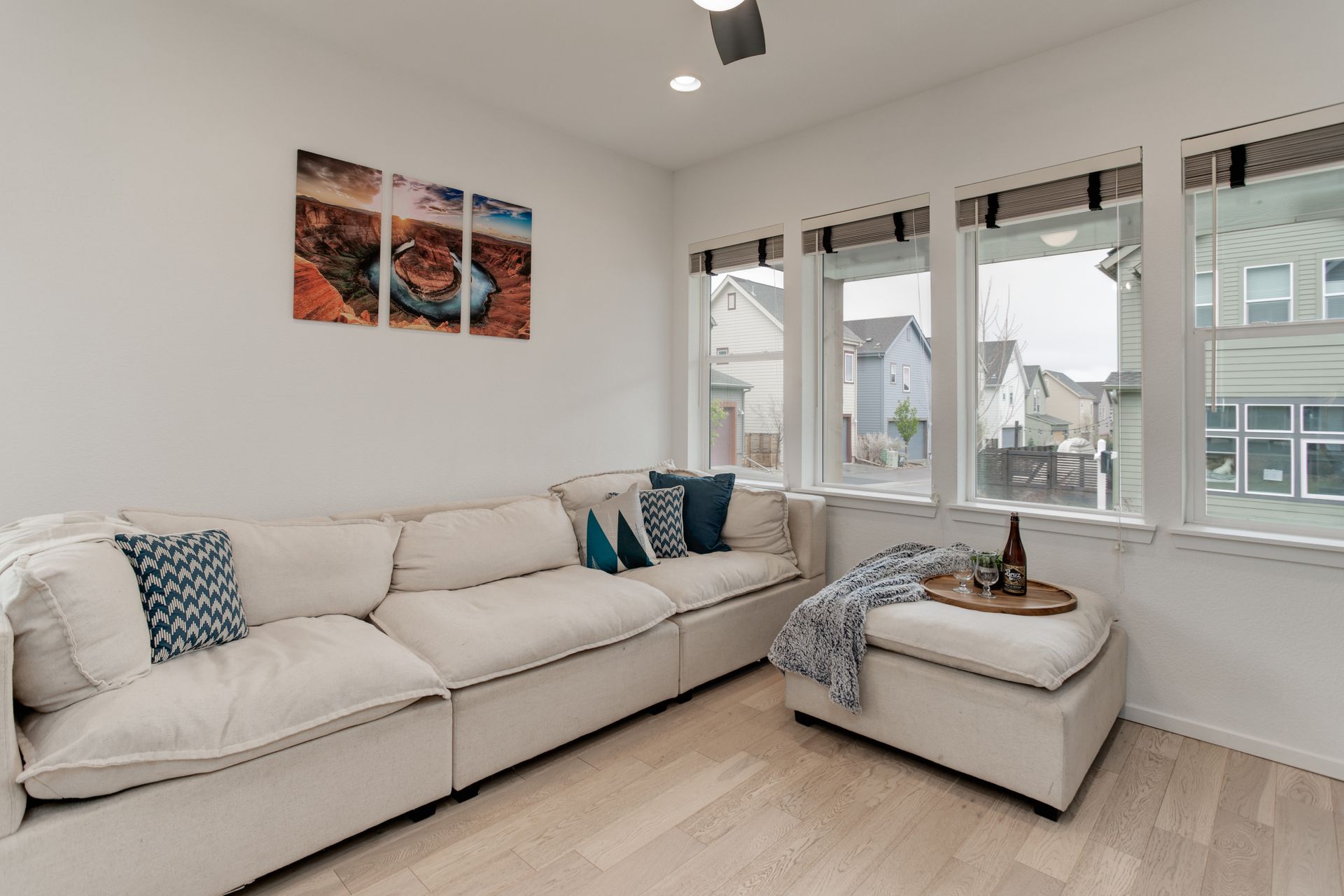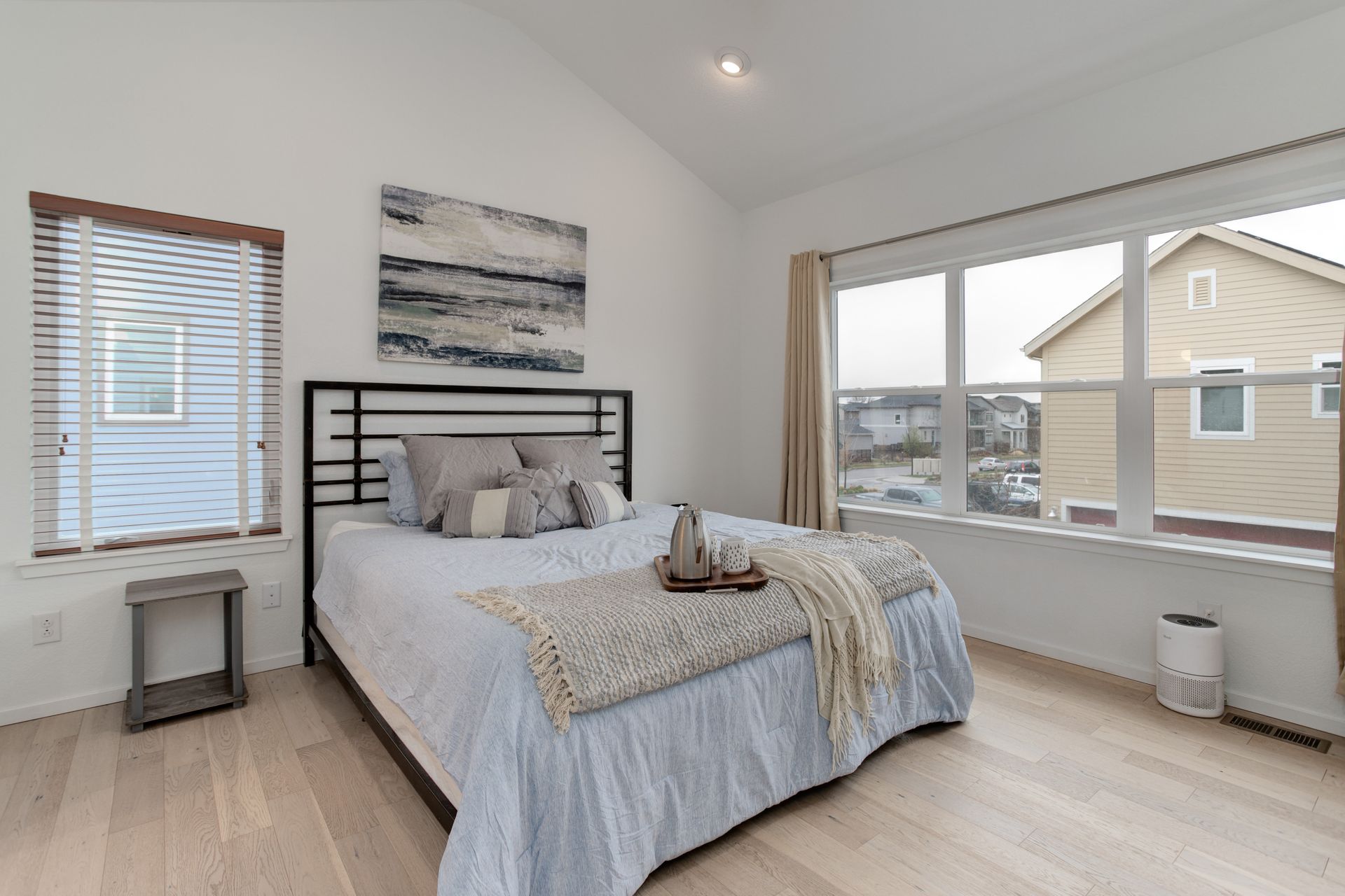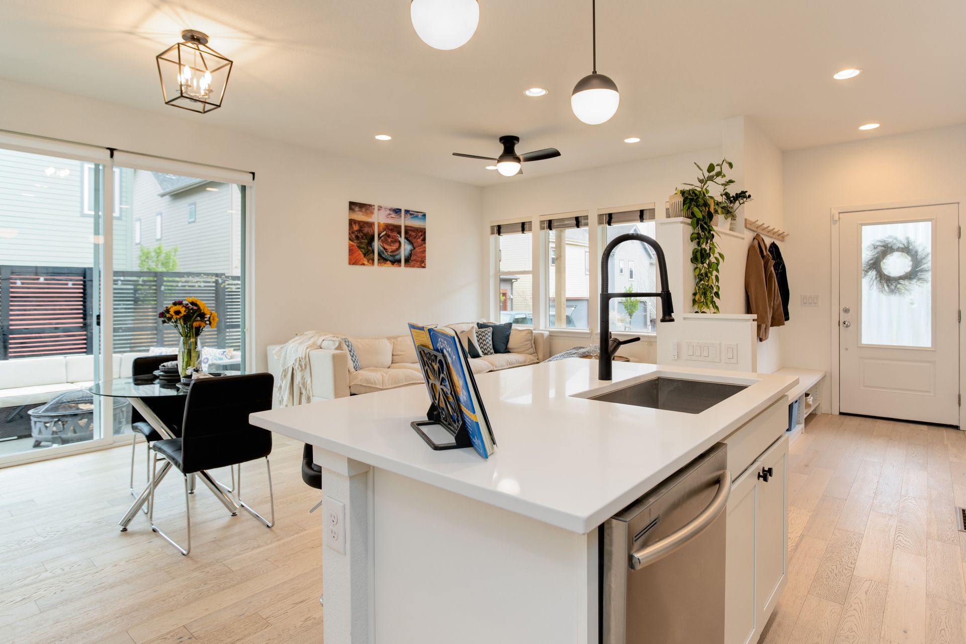 SELLERS JOB CHANGE IS YOUR GAIN! You will fall in love with the views from this south facing, completely upgraded home on a private corner lot in Midtown. Built in 2018, this home has a bright open floor plan featuring vaulted ceilings, large windows, an upgraded balcony, and attached 2 car garage. The thoughtful, well appointed, design features include hardwood floors throughout, matching quartz counters in kitchen and baths, stainless appliances including a gas range, large farm style sink, and electric blinds. You will love the convenience of a high efficiency tankless water heater, upgraded washer and dryer, and lawn sprinkler system. Enjoy upcoming summer evenings and weekend entertaining on your choice of outdoor spaces that include a fantastic front porch perfect for your morning coffee, an evening cocktail on the balcony off the upper level loft with amazing views of the mountains and downtown, or a weekend get together with family and friends in your private, fenced yard with a convenient concrete patio. Neighborhood amenities include impressive green space maintained by a very low HOA, dog parks within the community, and a local favorite brewery directly across Pecos. Located within a 10-minute walk to the train station or a 3 minute drive to I76 you have both direct access to downtown and are a quick drive to head to the mountains. You don’t want to miss such an amazing property in this highly desirable location!