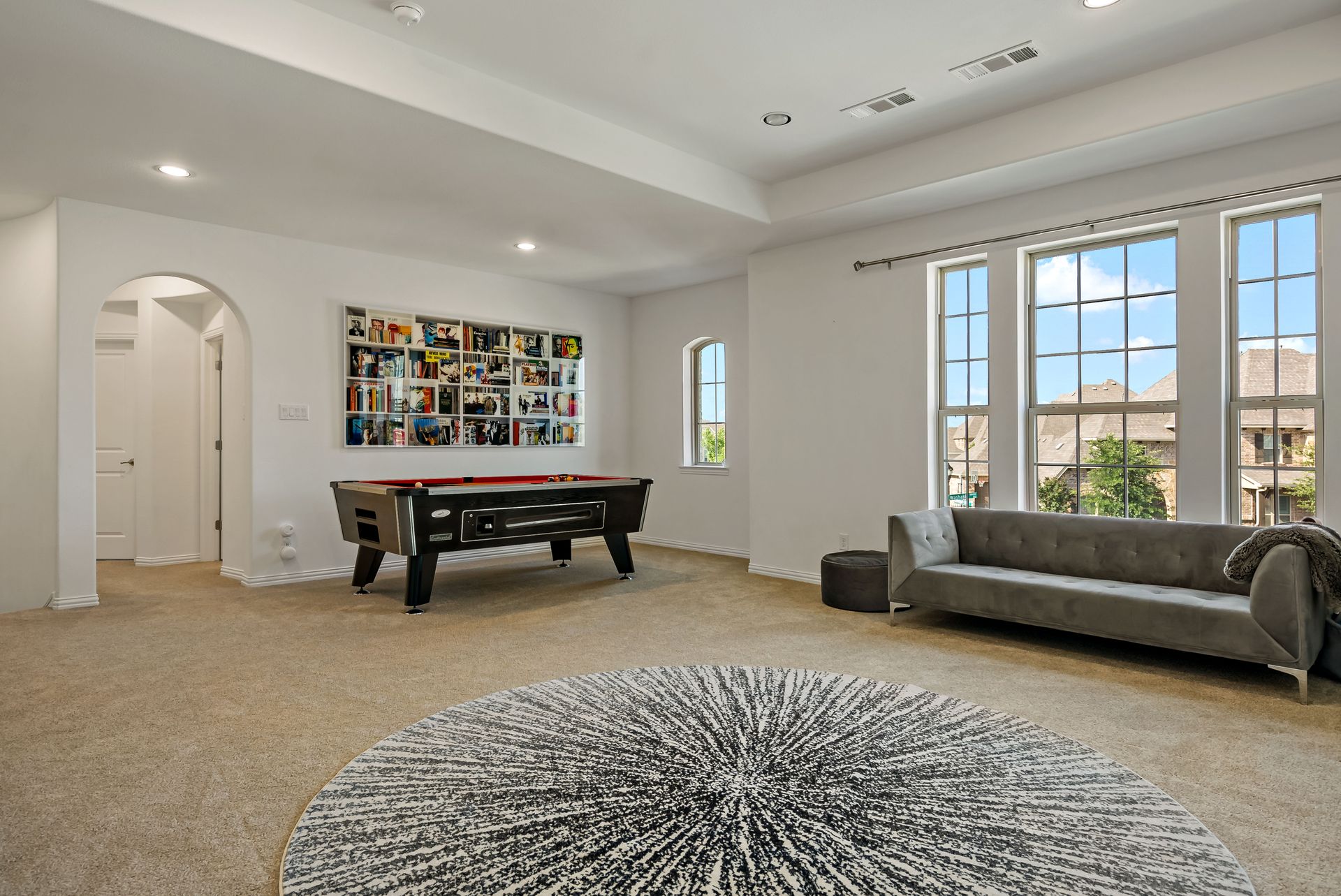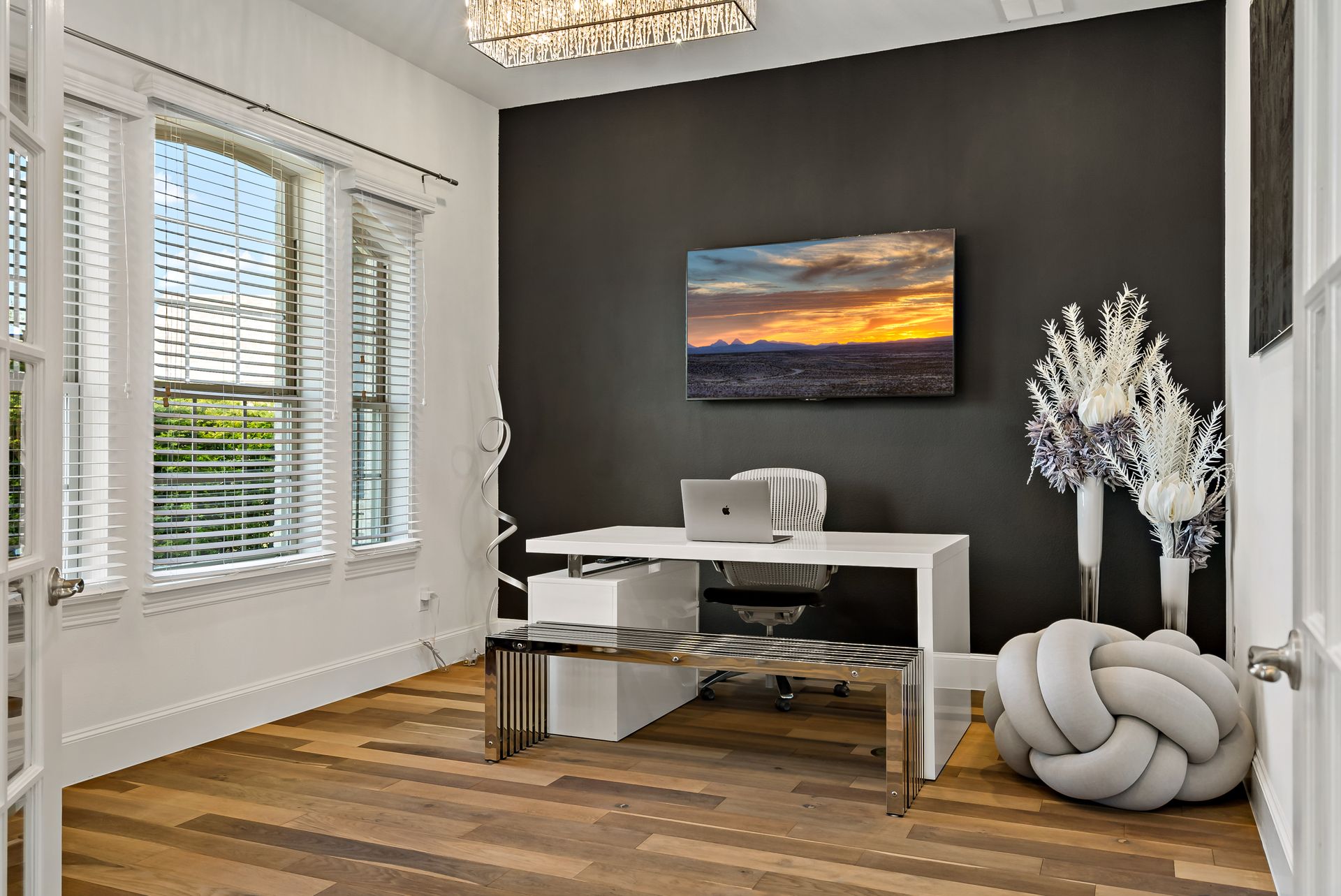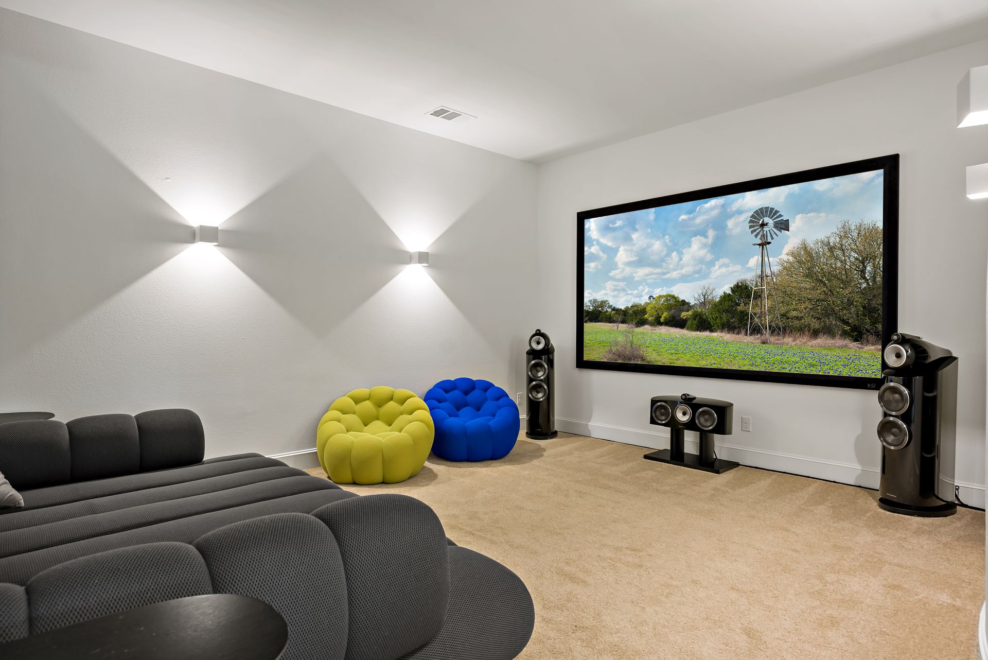 A few of the most impressive features include updated wood flooring throughout, electronic window shades, upgraded modern kitchen complete with a large center island, a built in Thermador refrigerator, gas cooktop, and elegant lighting and fixtures throughout. On the first floor level of the home you will enjoy the primary suite located in the rear of the home, a guest suite towards the front of the home as well as a home office, formal dining room and best of all a secluded media room to enjoy those movies or Netflix binges. Upstairs you will find a large game room and three bedrooms each with their own full bathroom.