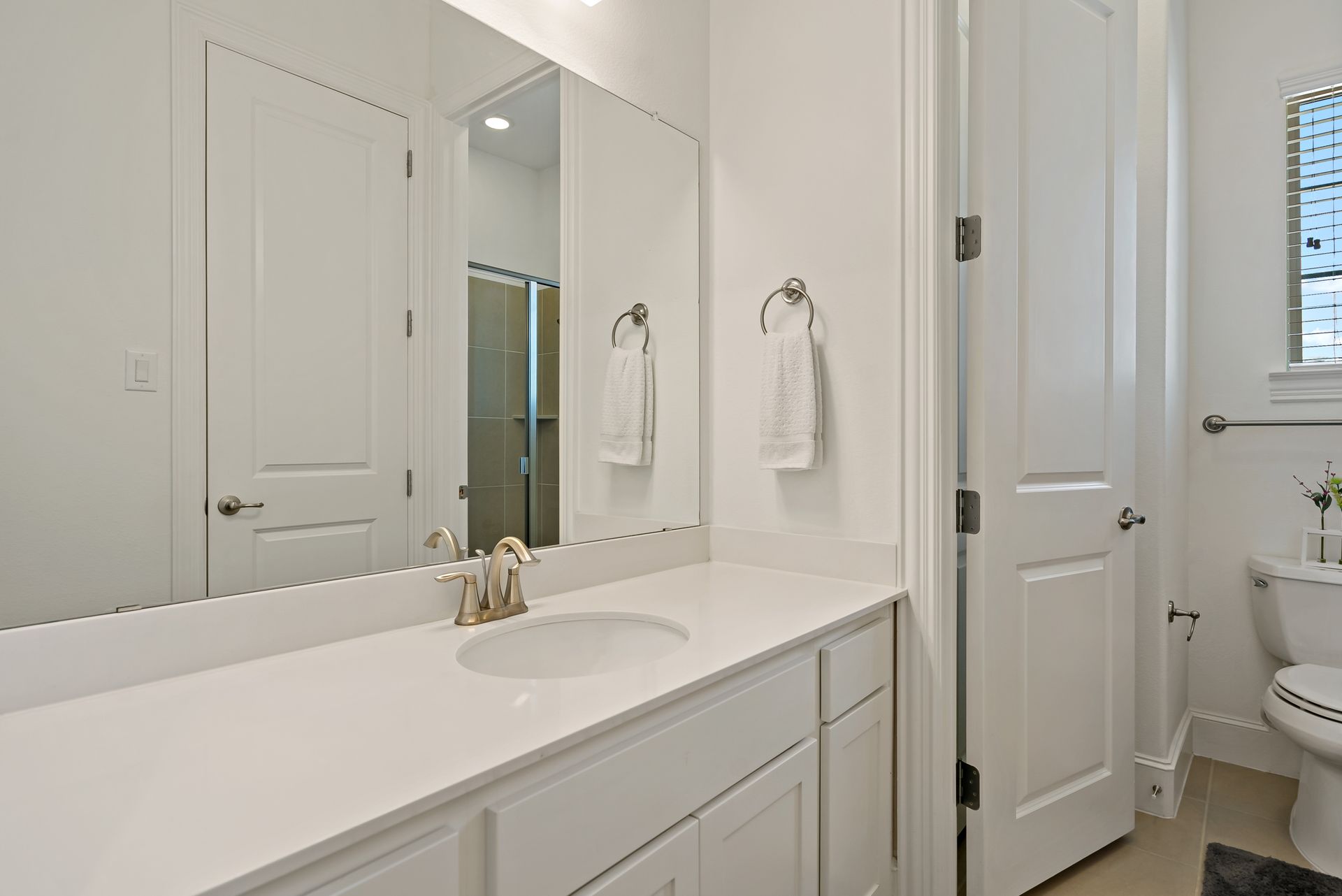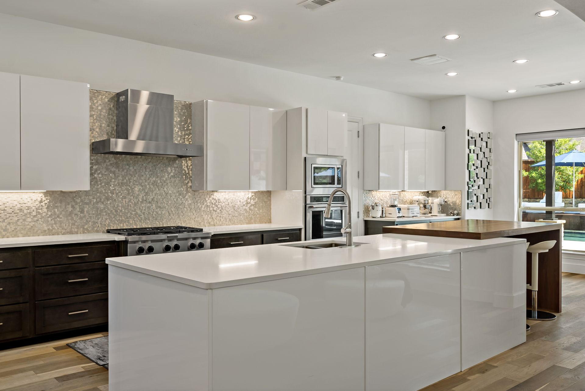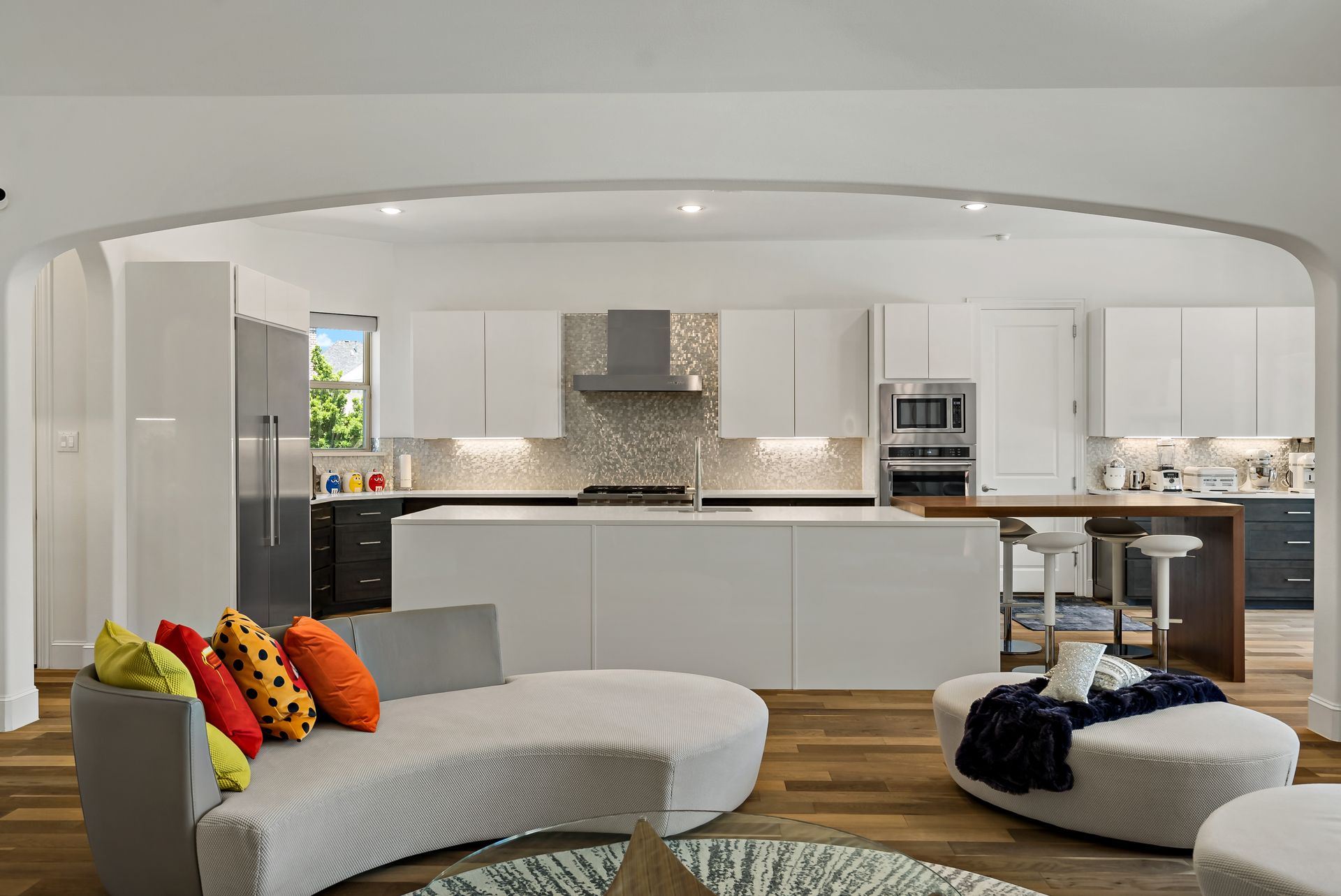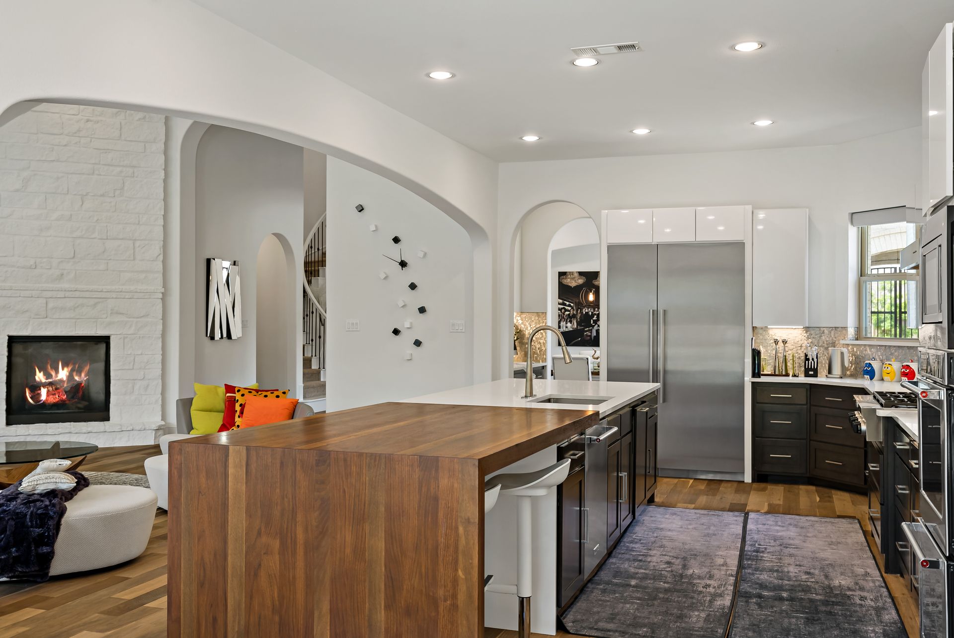 A few of the most impressive features include updated wood flooring throughout, electronic window shades, upgraded modern kitchen complete with a large center island, a built in Thermador refrigerator, gas cooktop, and elegant lighting and fixtures throughout. On the first floor level of the home you will enjoy the primary suite located in the rear of the home, a guest suite towards the front of the home as well as a home office, formal dining room and best of all a secluded media room to enjoy those movies or Netflix binges. Upstairs you will find a large game room and three bedrooms each with their own full bathroom.