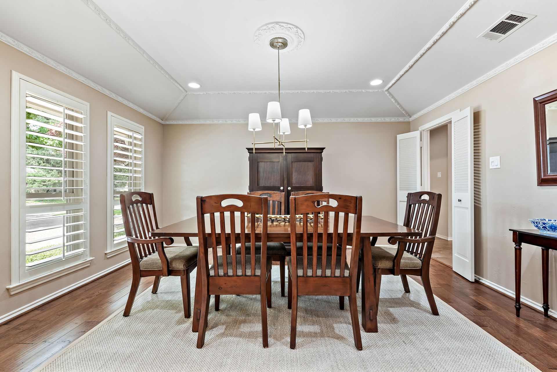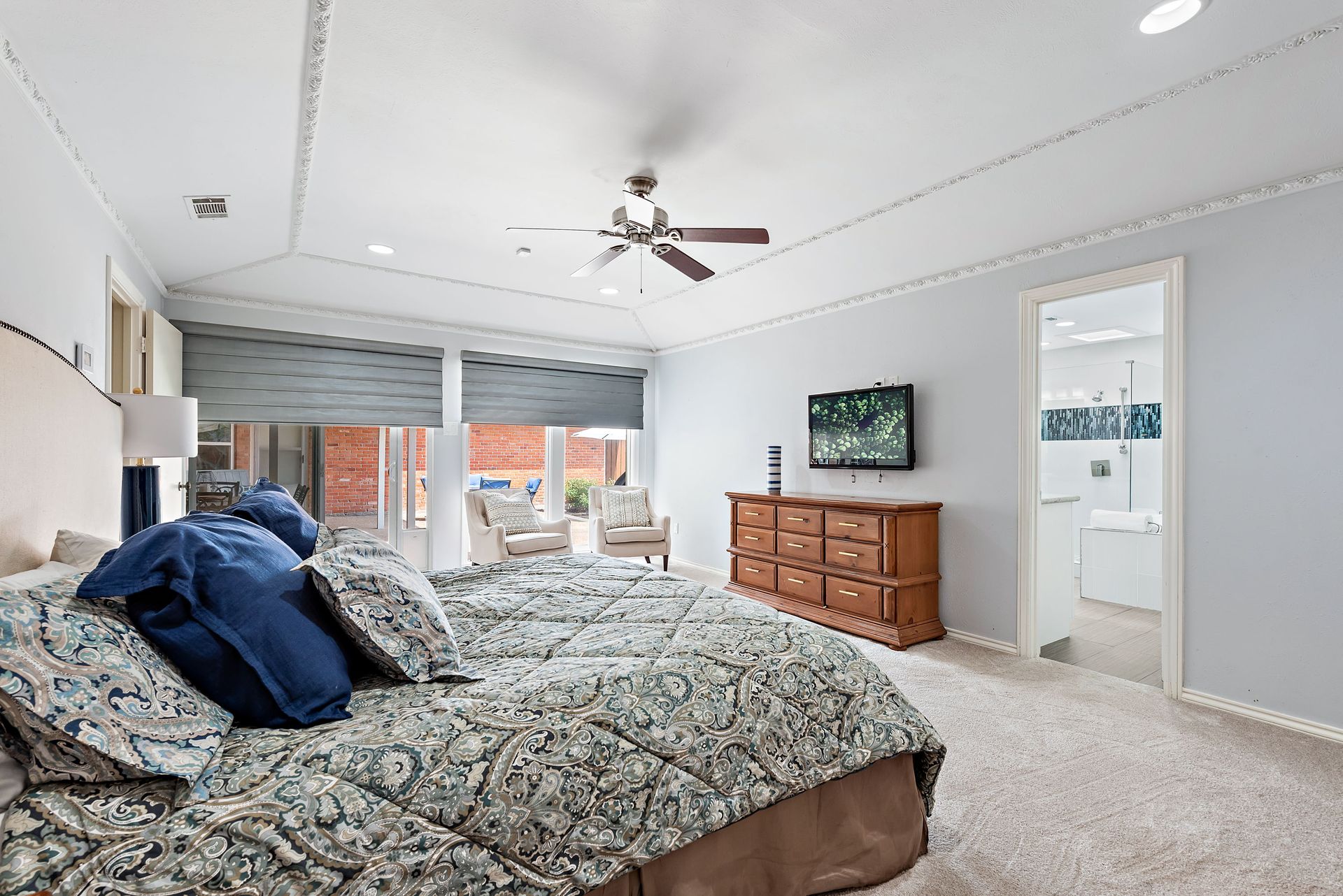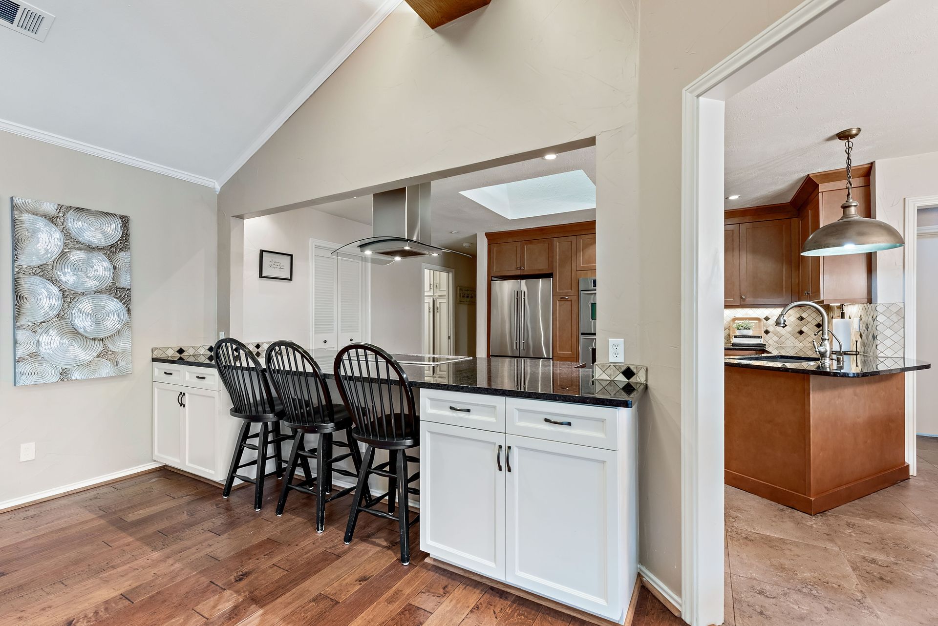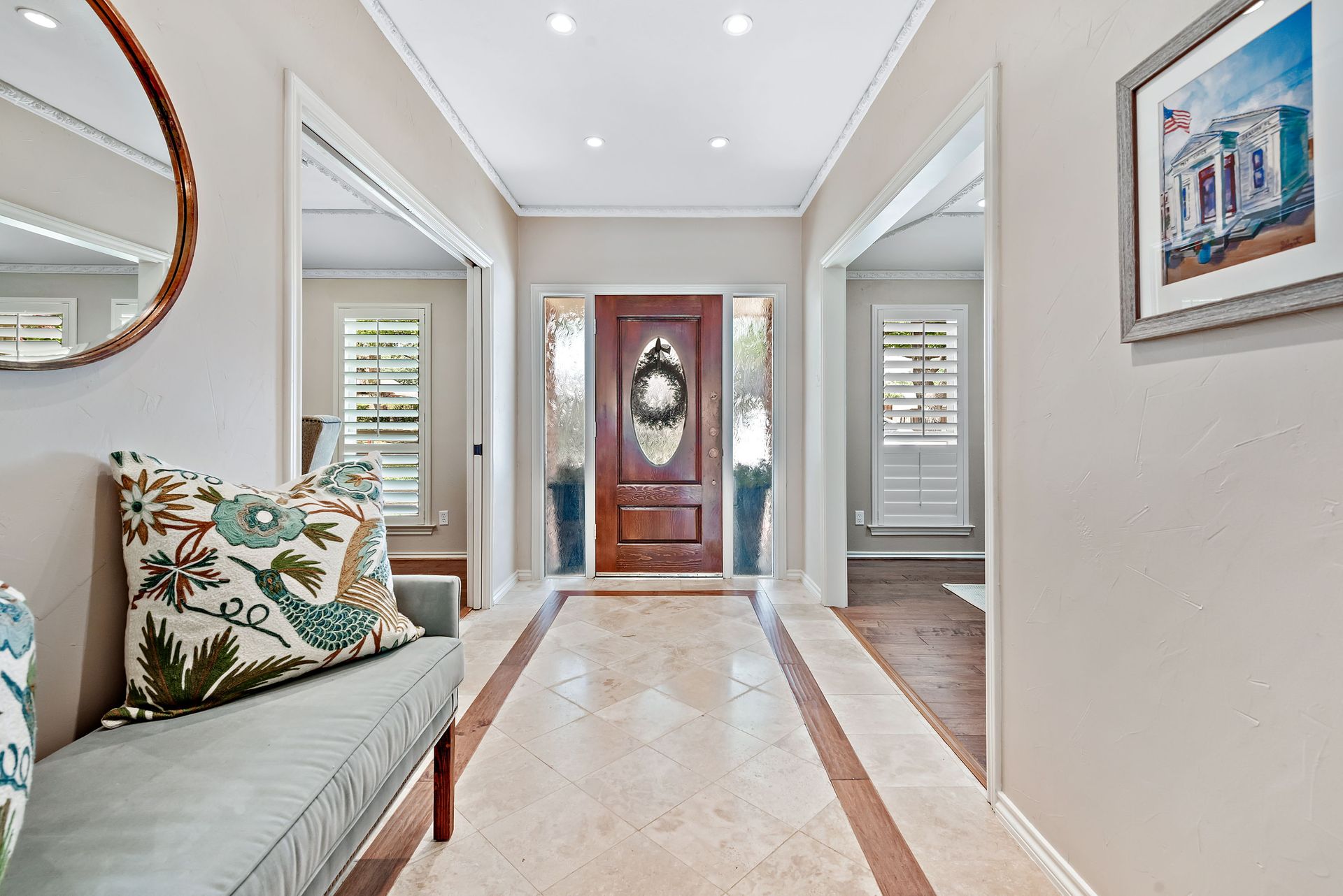 Gorgeous four bedroom, three and one half bath Ranch style home on shaded interior lot with beautiful established trees and lush landscaping in prime north Dallas location. Semi-circle drive with additional three car garage in back. Home features an open and bright living room with high pitched ceiling, wood flooring, and wet-bar great for entertaining. Large second living area that can be used as game area or workout room. Upgraded modern kitchen with eat in breakfast area, featuring stainless steel appliances, double oven, Induction range and second dishwasher in utility room off kitchen. Primary bedroom boast beautiful views of the oversized covered patio and sparkling blue pool. Includes updated ensuite with large glass seamless shower, jetted tub and double vanity with medicine cabinet. Do not miss out on the opportunity to live in sought after Prestonwood neighborhood and enjoy the convenient location of the neighborhood with easy access to LBJ, DNT, top Dallas private and public schools. Faces North!