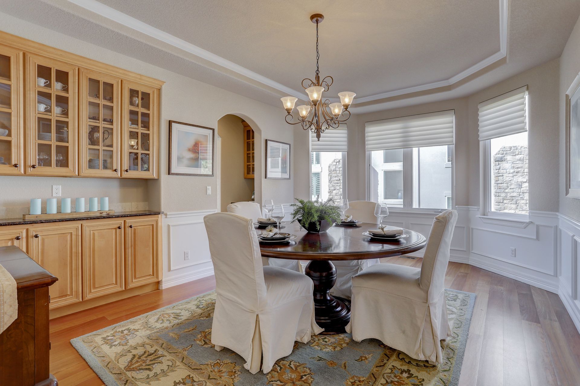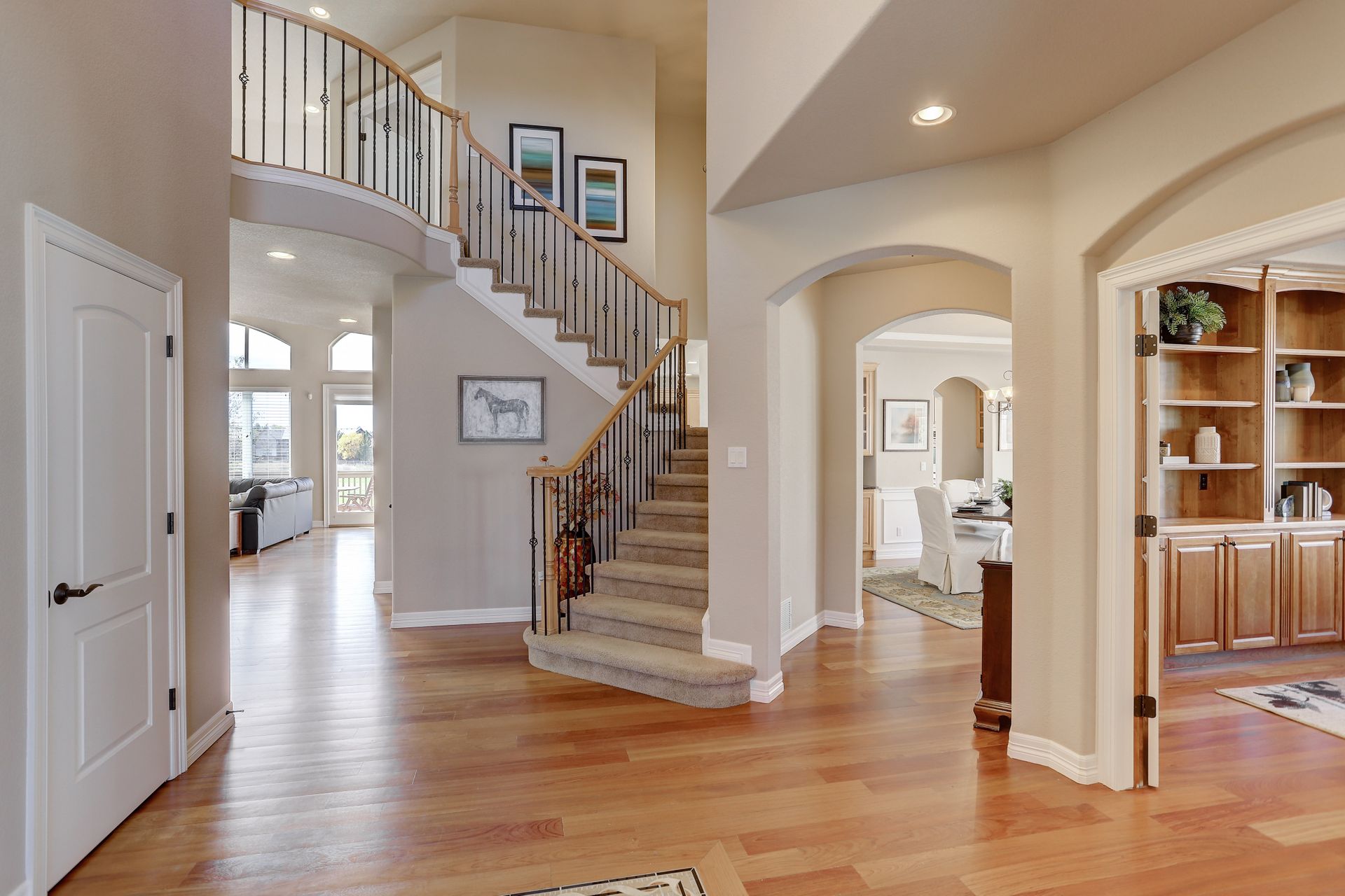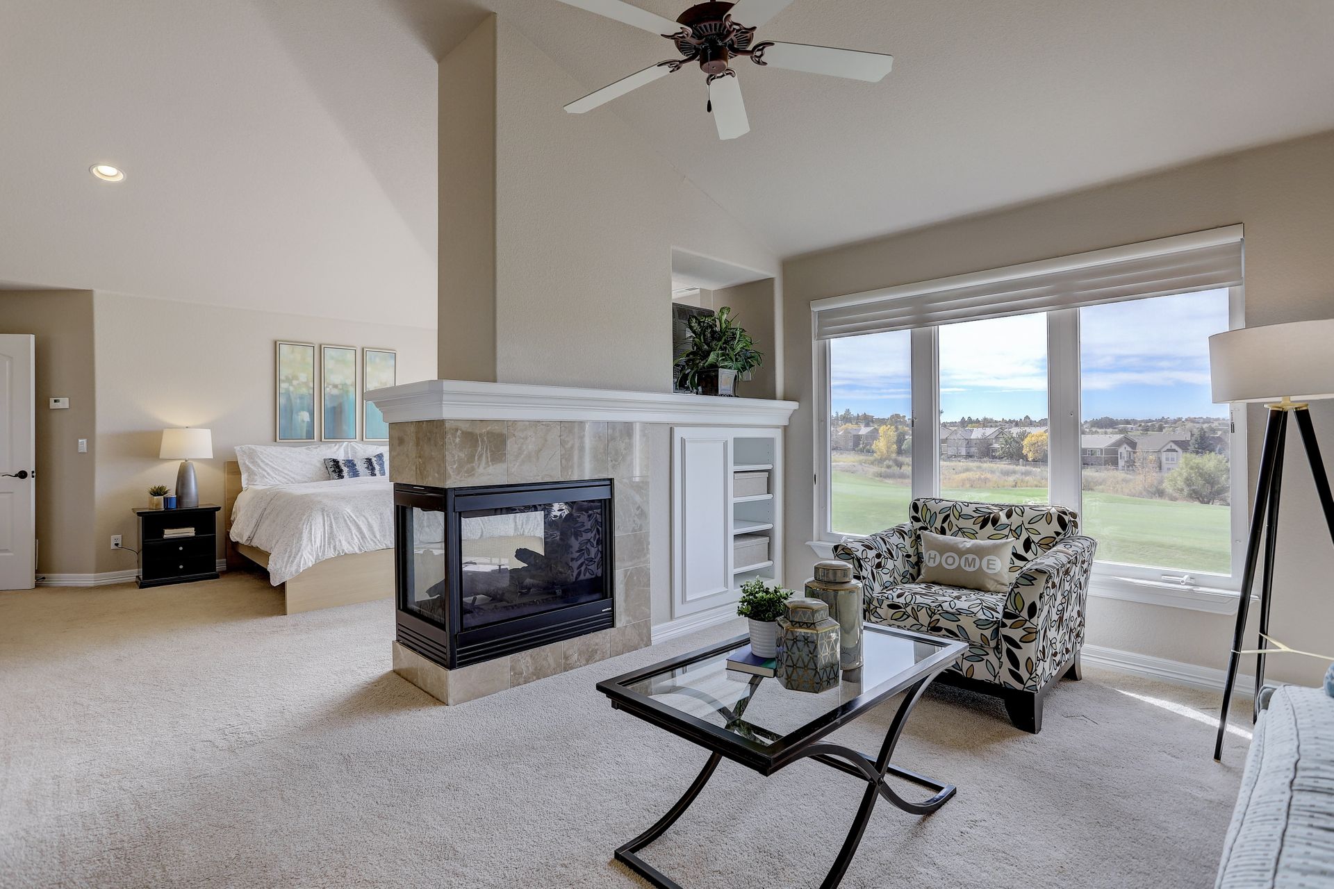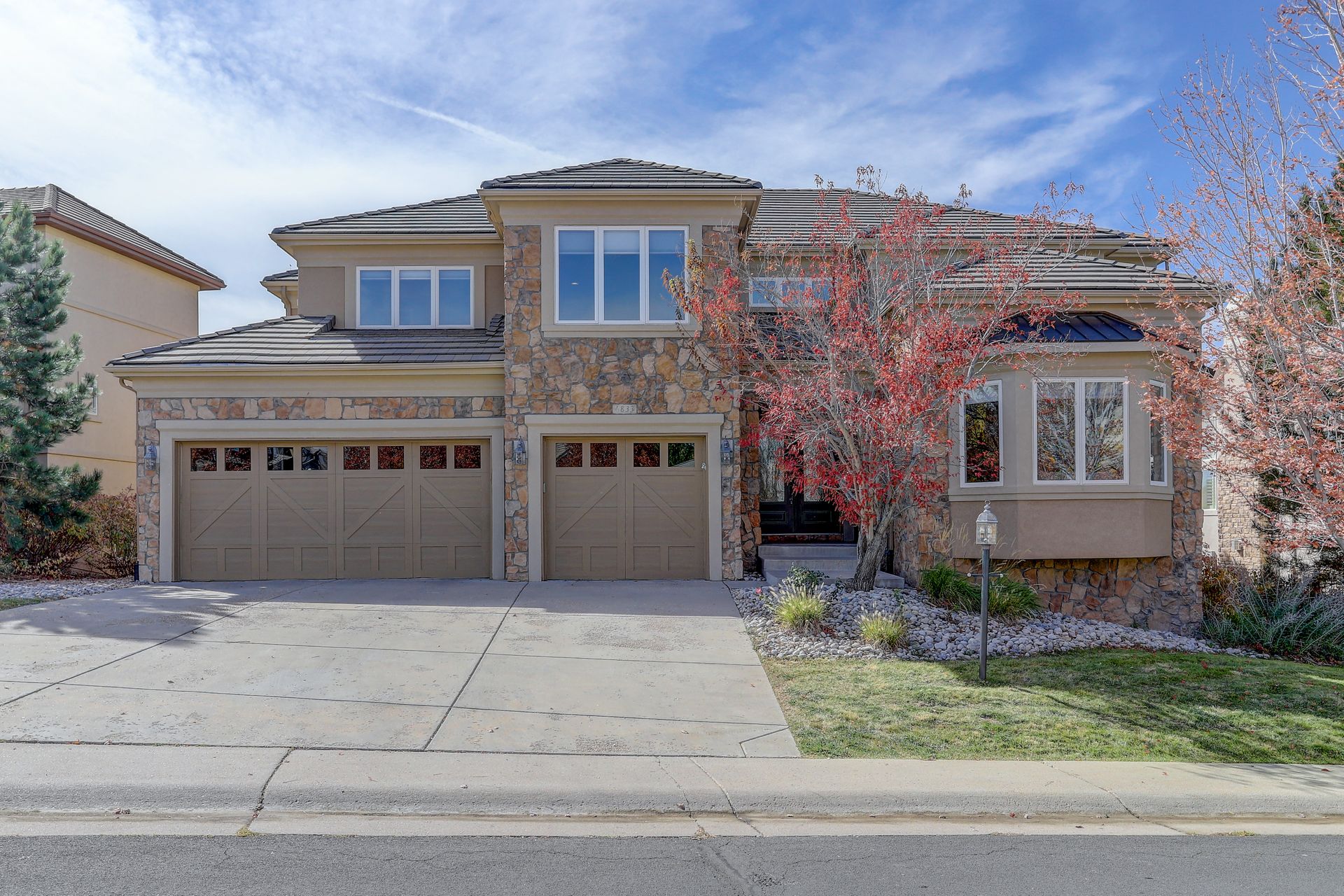 Backing to the 17th fairway of Saddle Rock Golf Course, this beautiful 6 bedroom/ 7 bath home offers privacy and spectacular mountain and golf course views. Your guests are greeted by a soaring foyer with tile, marble and art niches. Total WOW from the moment you enter this gracious home! The living room with fireplace, custom millwork and bay window is an elegant way to entertain formally or just relax for a few minutes. Holiday entertaining will be a dream come true in this beautiful dining room with custom cabinetry for china and crystal, tray ceiling, beautiful millwork and a butler’s pantry. The kitchen offers slab granite, natural cherry cabinets, stainless appliances, pantry, oversized island, command center, dining area and gorgeous wide plank natural cherry hardwood floors. The two story family room with a wall of windows allows fabulous golf course and mountain views. Main floor study with custom cabinetry and French doors is the perfect “work from home” office for today’s lifestyle. Completing the main floor is a guest suite with full bath for mutigenerational living or a second home office, laundry and powder room with custom tile wainscoting.
