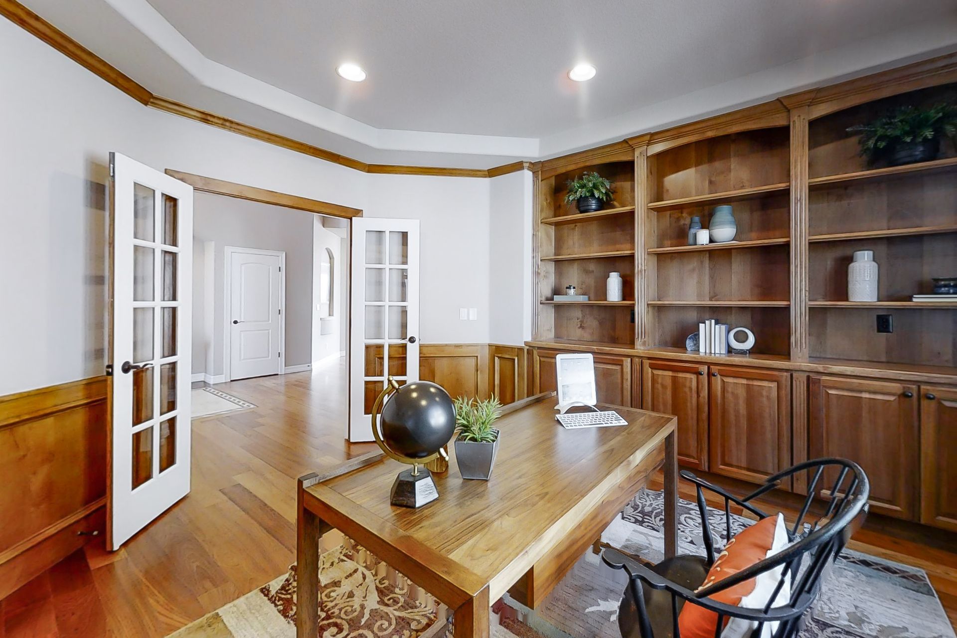A dual staircase takes you to the upper level featuring four bedrooms and a large landing with built-in bookcases overlooking the main floor. The stunning master suite with French doors is an oasis at the end of your day boasting a retreat with fireplace, beverage bar nook, master bath with jetted tub, separate vanities, Euro shower and two large custom designed closets. The three generous sized secondary bedrooms all offer en suite baths and walk-in closets.