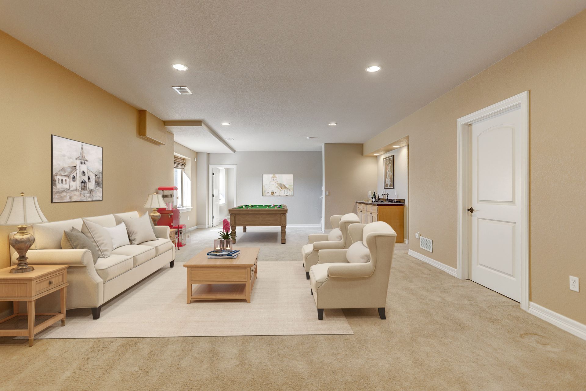 Escape to the finished basement featuring a 6th bedroom, wet bar, media area for watching your favorite movie and a games area….perfect or a pool table, foosball or ping pong. Don’t forget the popcorn machine and candy dispensers!