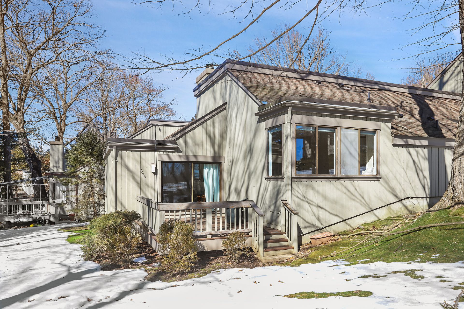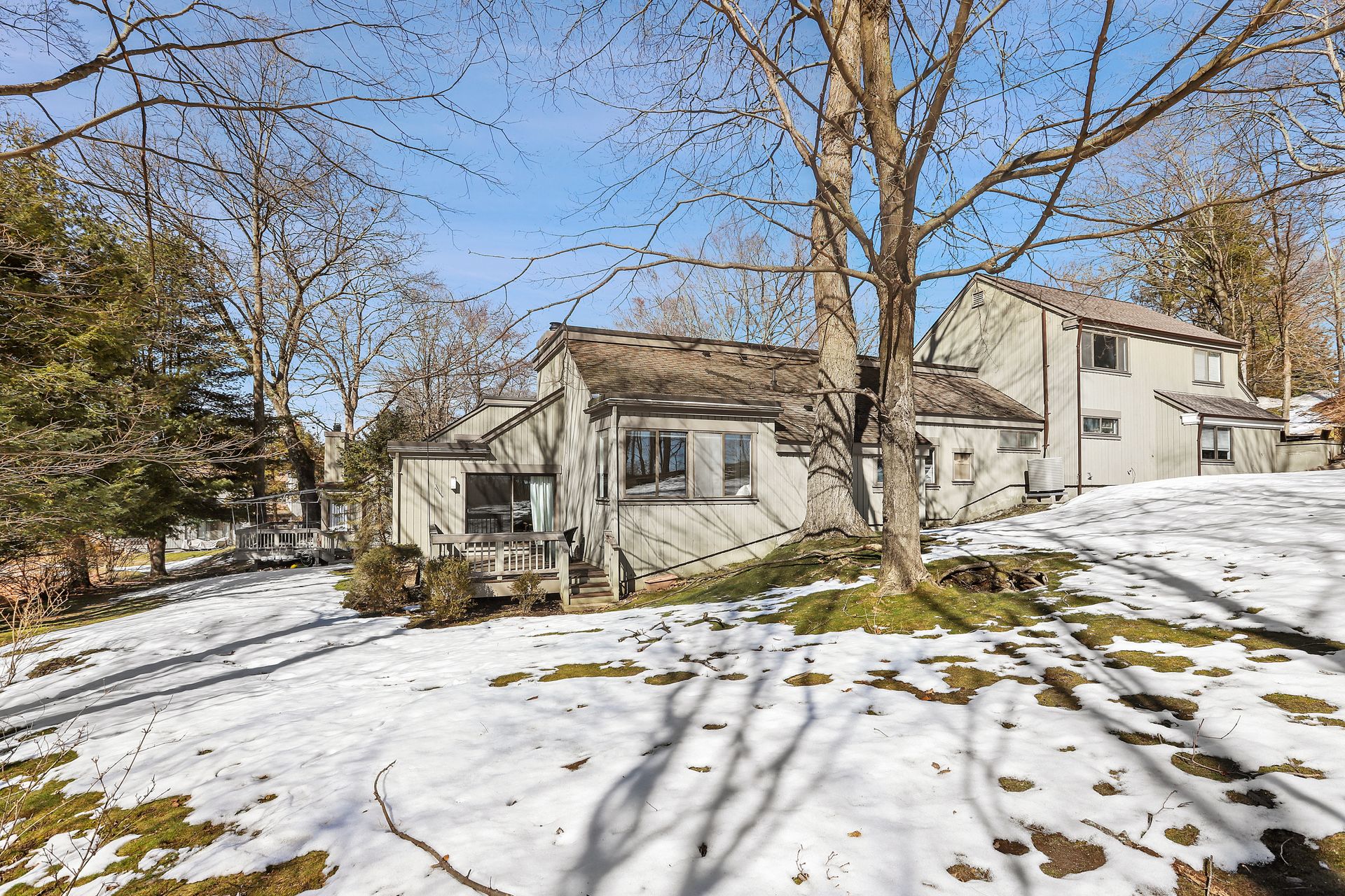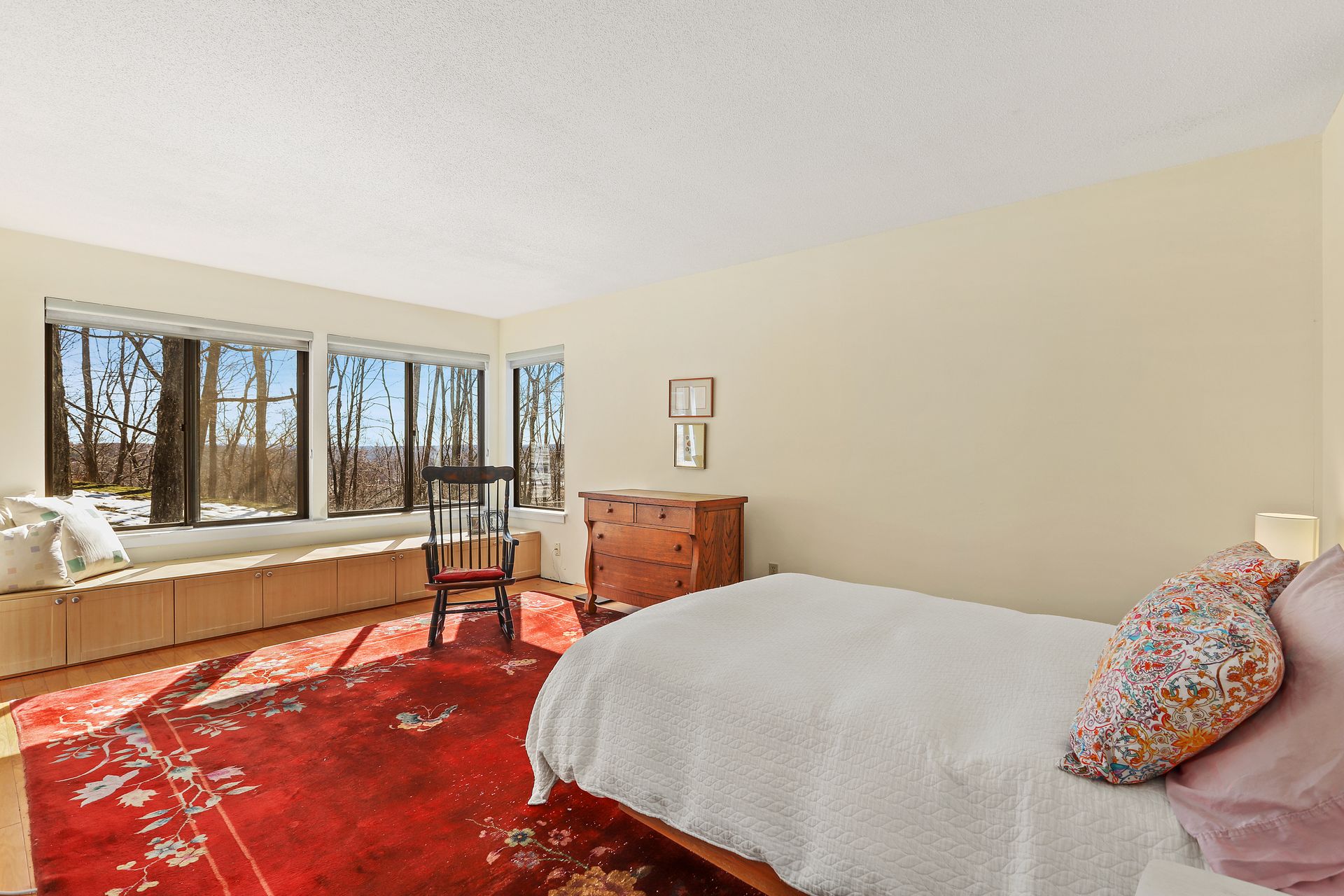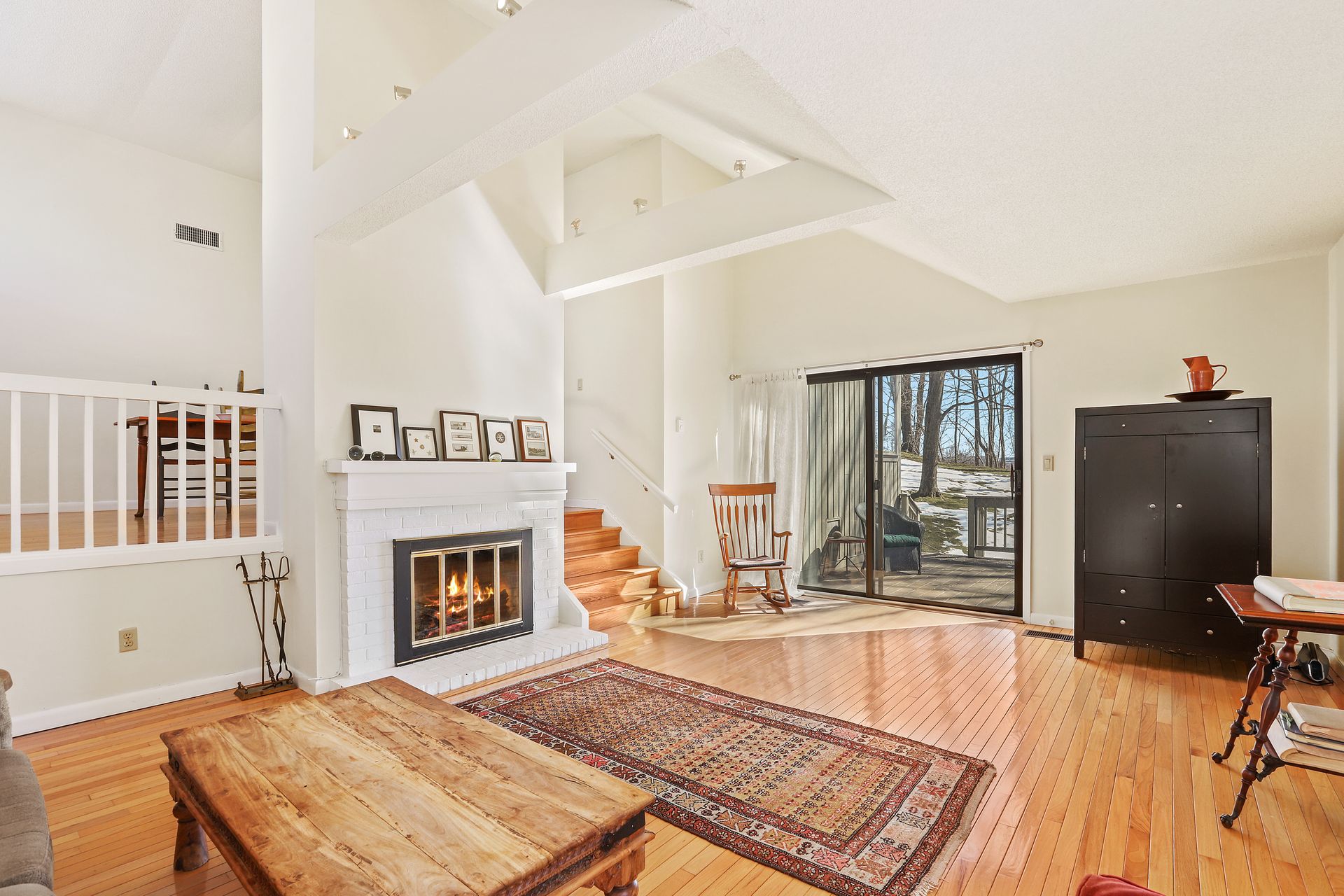 This lovely END UNIT is at the end of a cobblestone cul-de-sac / courtyard with EXTREME PRIVACY, birds singing, flowering and specimen plantings. Views of nature abound through walls of windows in the Master Suite, Living Room and deck. The Master also boasts a long window seat with storage and a master bath. The split levels add to the architectural detail that makes this feel more like a house than a condo. Ceramic floor is in the foyer and kitchen. Double sink and Corian counter tops. Extremely light and bright.