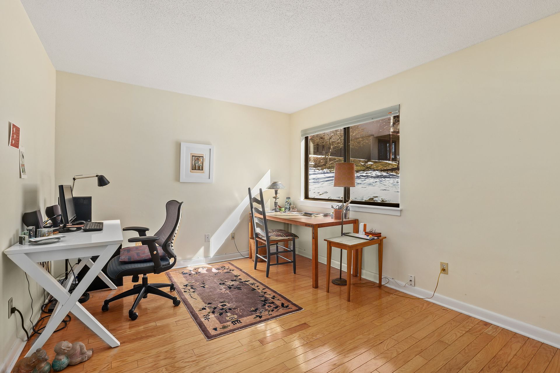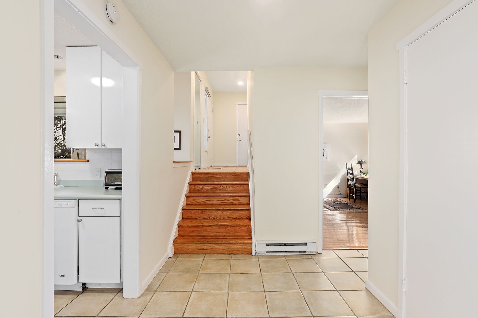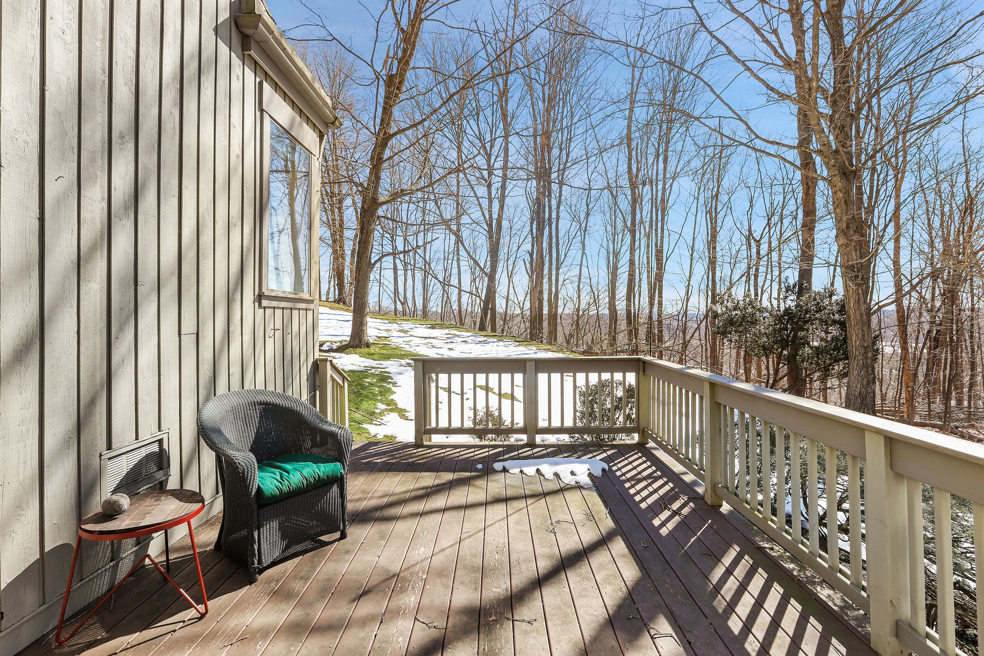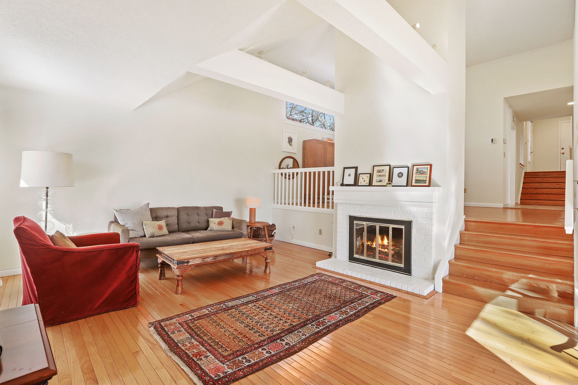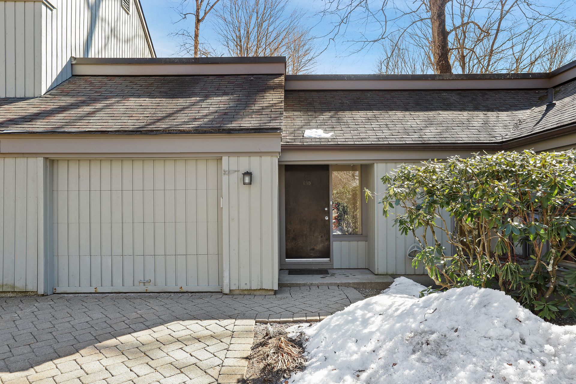 This lovely END UNIT is at the end of a cobblestone cul-de-sac / courtyard with EXTREME PRIVACY, birds singing, flowering and specimen plantings. Views of nature abound through walls of windows in the Master Suite, Living Room and deck. The Master also boasts a long window seat with storage and a master bath. The split levels add to the architectural detail that makes this feel more like a house than a condo. Ceramic floor is in the foyer and kitchen. Double sink and Corian counter tops. Extremely light and bright.