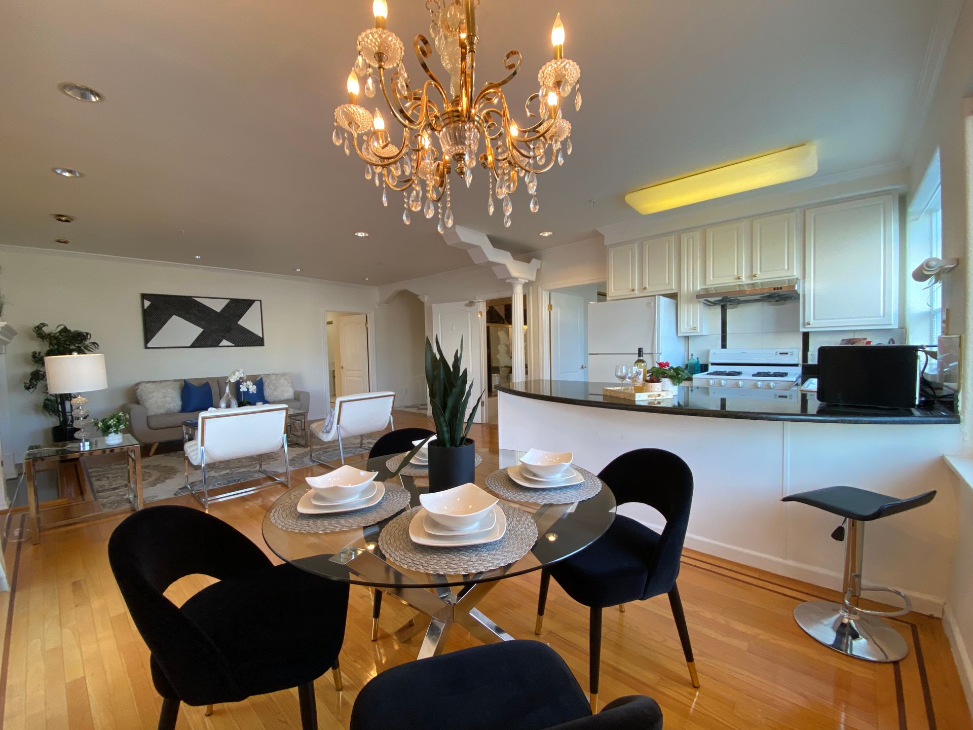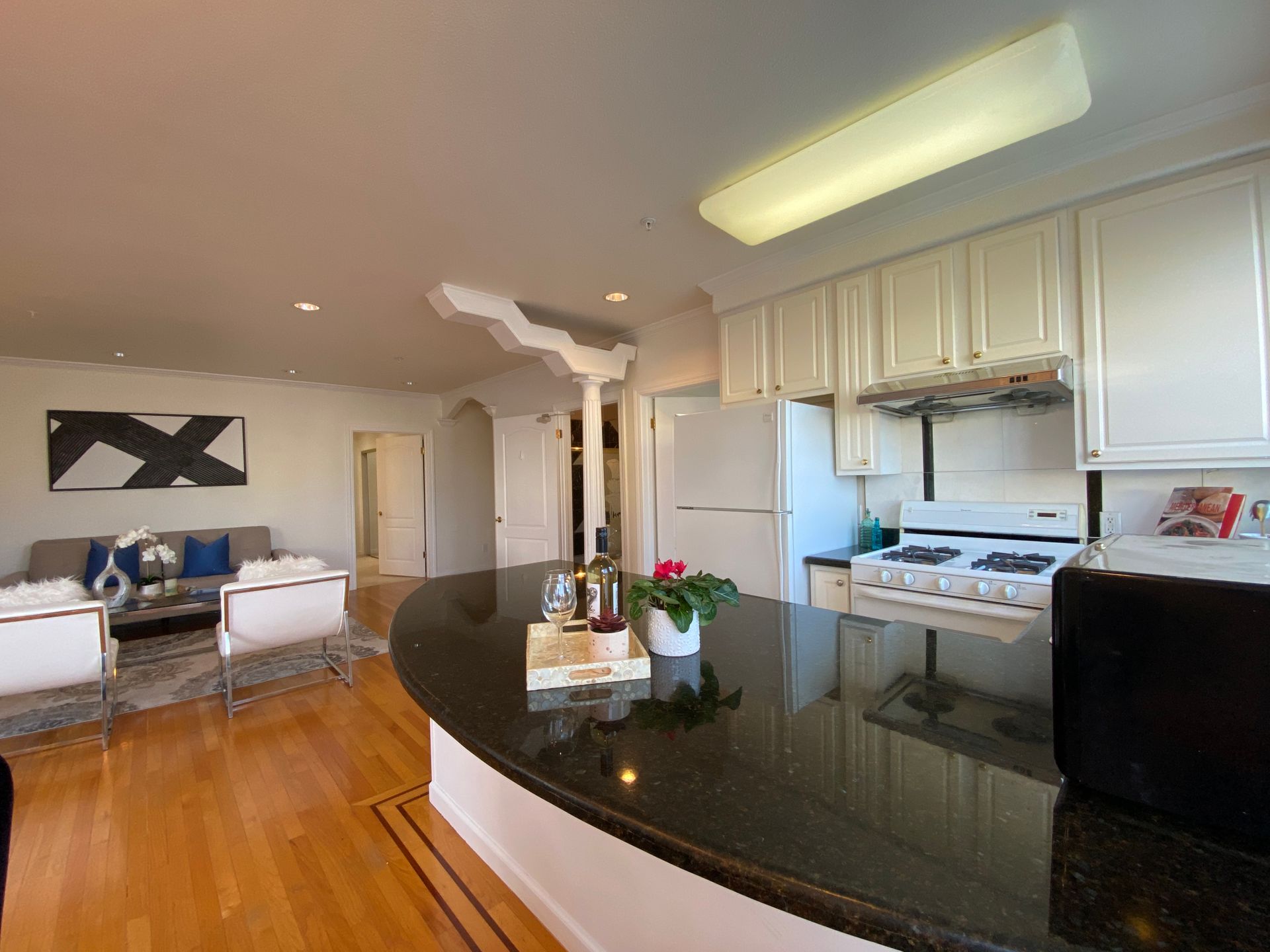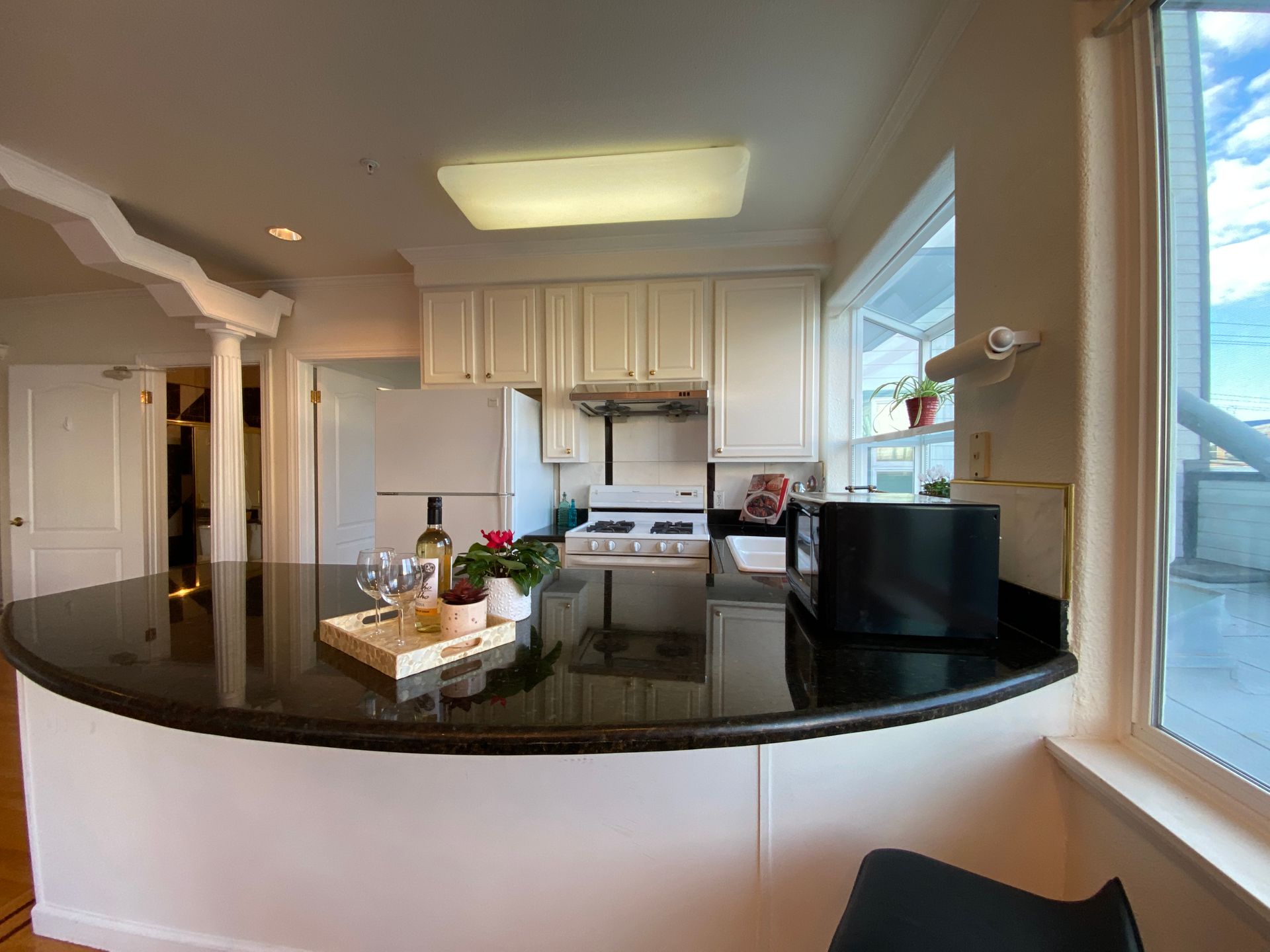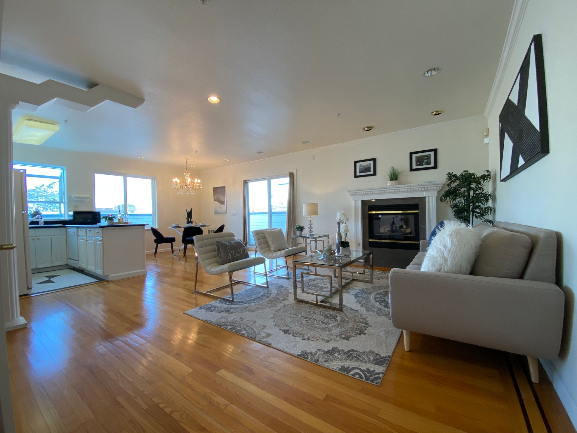 Luxury bright and airy gorgeous second floor corner two bedrooms two baths condo. A welcoming and elegant entrance hall with a wonderful chandelier, marble floors and an elevator leading you into this beautiful unit. Features an open floor plan of a spacious living room with fireplace, dining room with chandelier, a granite kitchen with ample cabinetry and a large counter space, a built in stove, kitchen fan, dishwasher and refrigerator. The master suite boasts two spacious closets, double sinks and a jet tub. The 2nd bath has new light, vanity and tile floors which also provides access to the 2nd bedroom. There are spacious exclusive private deck for this unit, beautiful hardwood floor in the living and dining room and an in unit washer and dryer. This wonderful condo is just steps to shopping, transportation, Golden Gate Park and Ocean beach. Vacant for immediate occupancy.