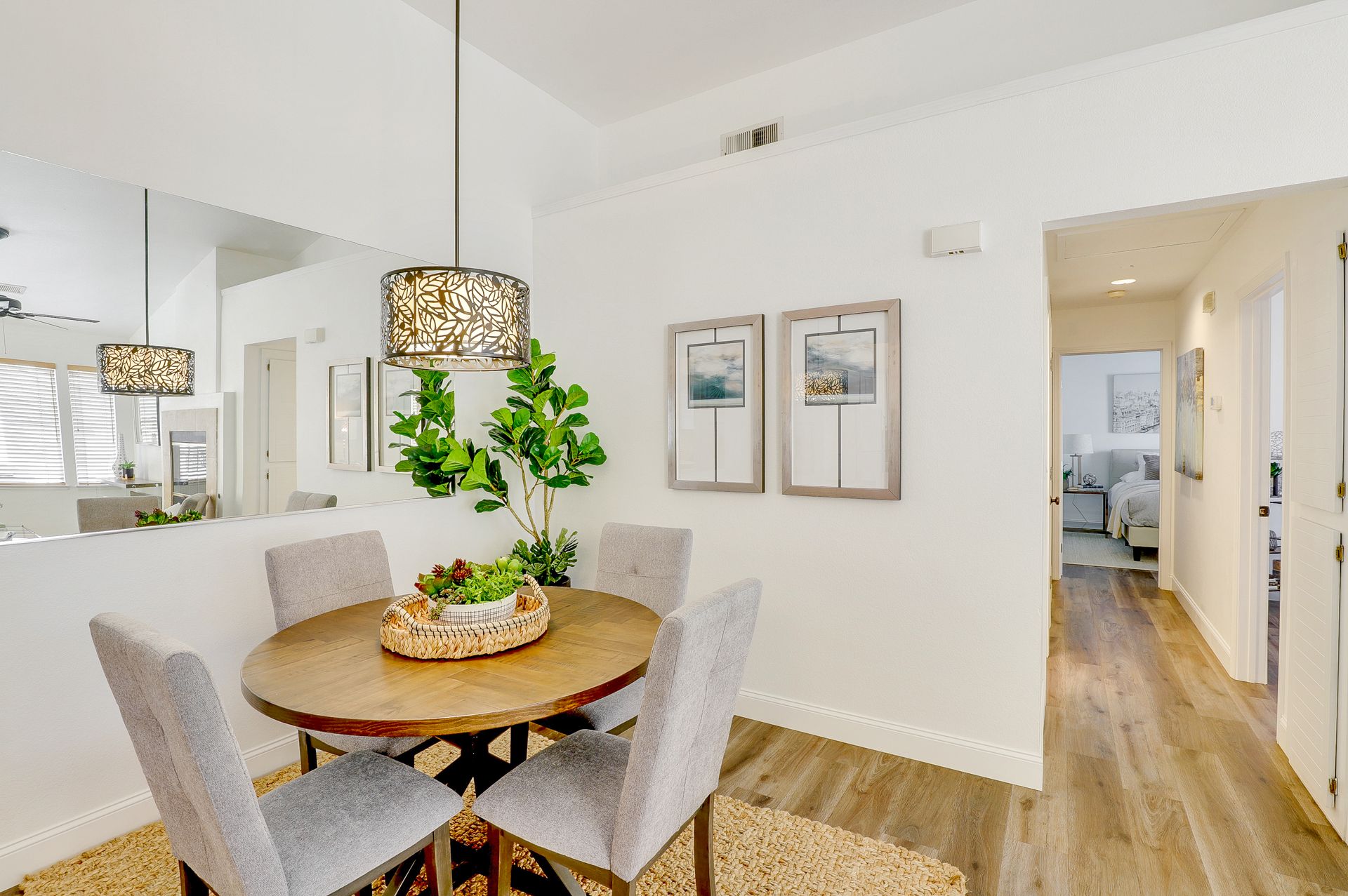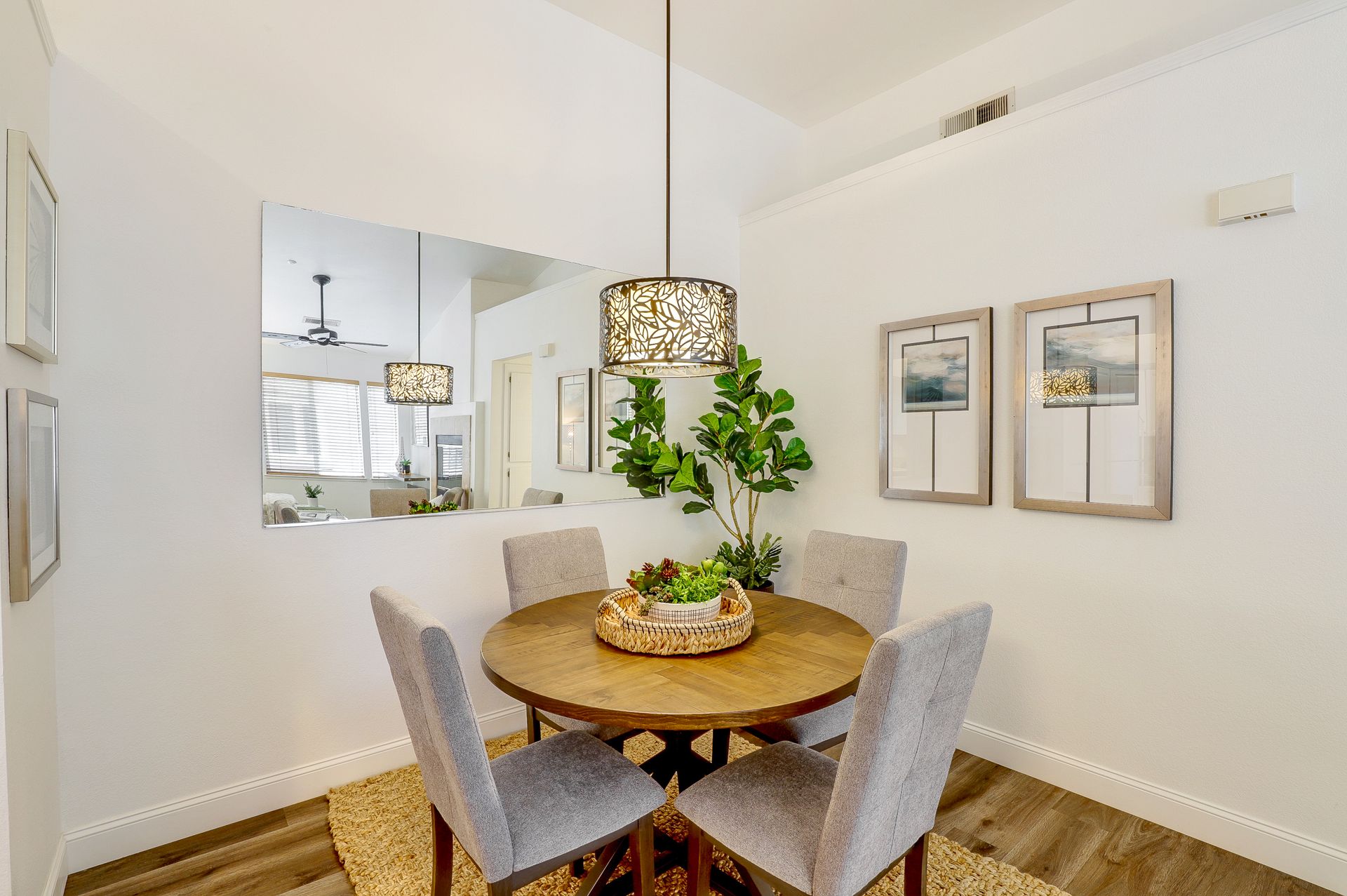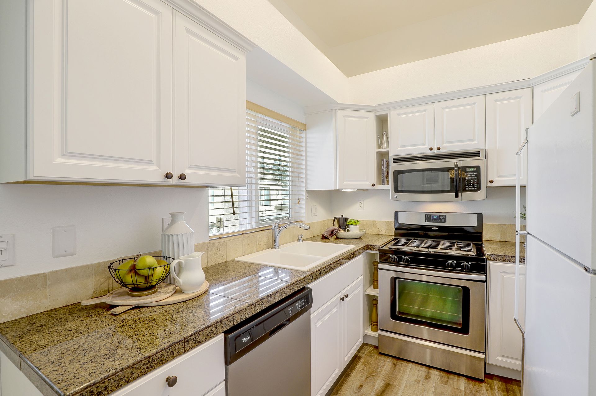 This Lovely condo is Ready for YOU! One level-situated upstairs! 1 Car Garage includes exterior door! Light and Bright! Granite Kitchen includes the refrigerator, Beautiful Newer Flooring, High Ceilings, Newer Washer/Dryer! Nice fireplace in the Family room! Super Location for Commuting, Shopping, hiking & biking trails, etc. Nice patio at the entry. Located in California Maison Development which includes many amenities.