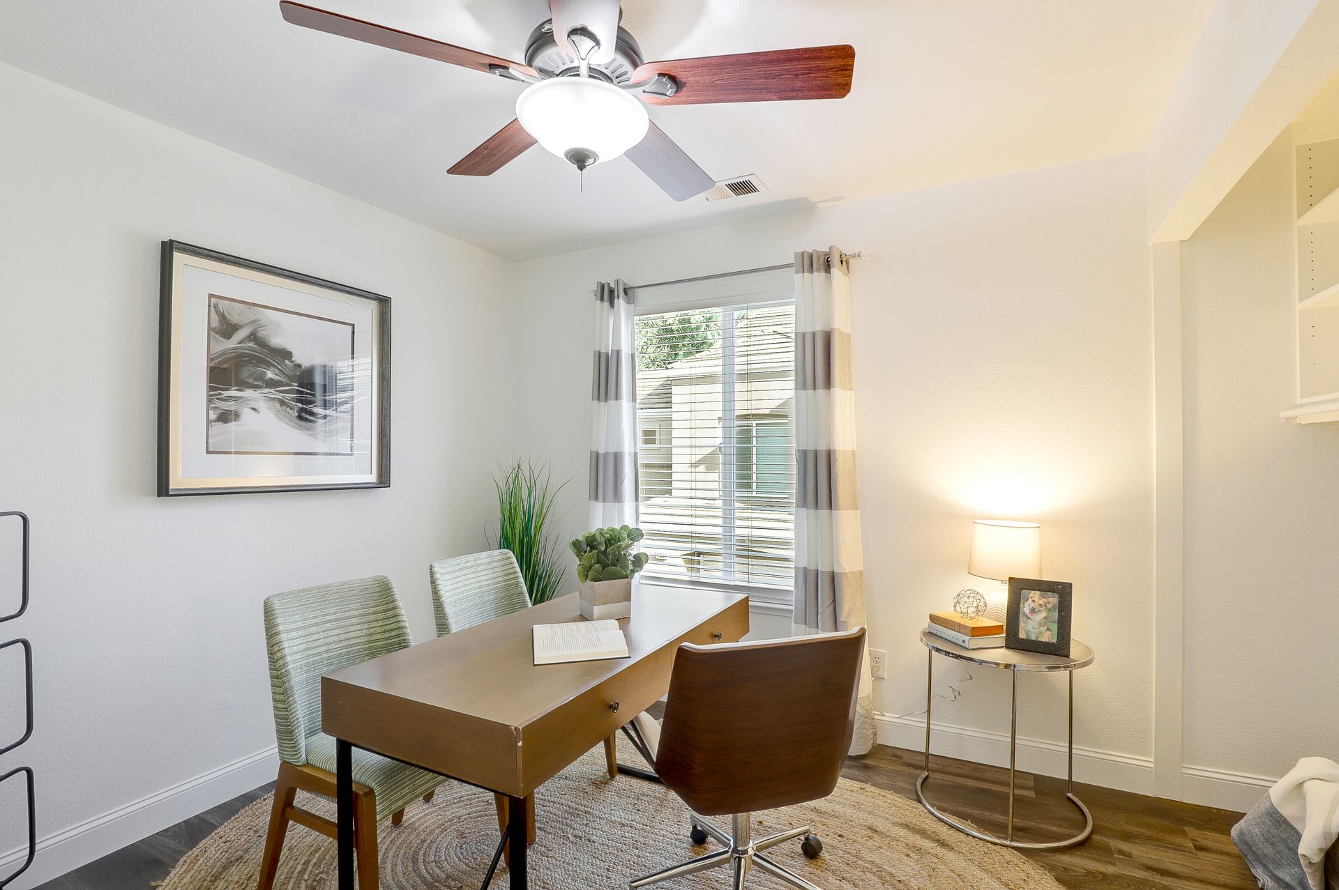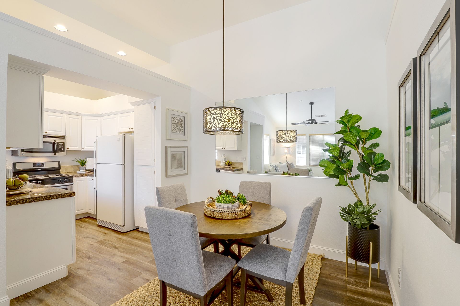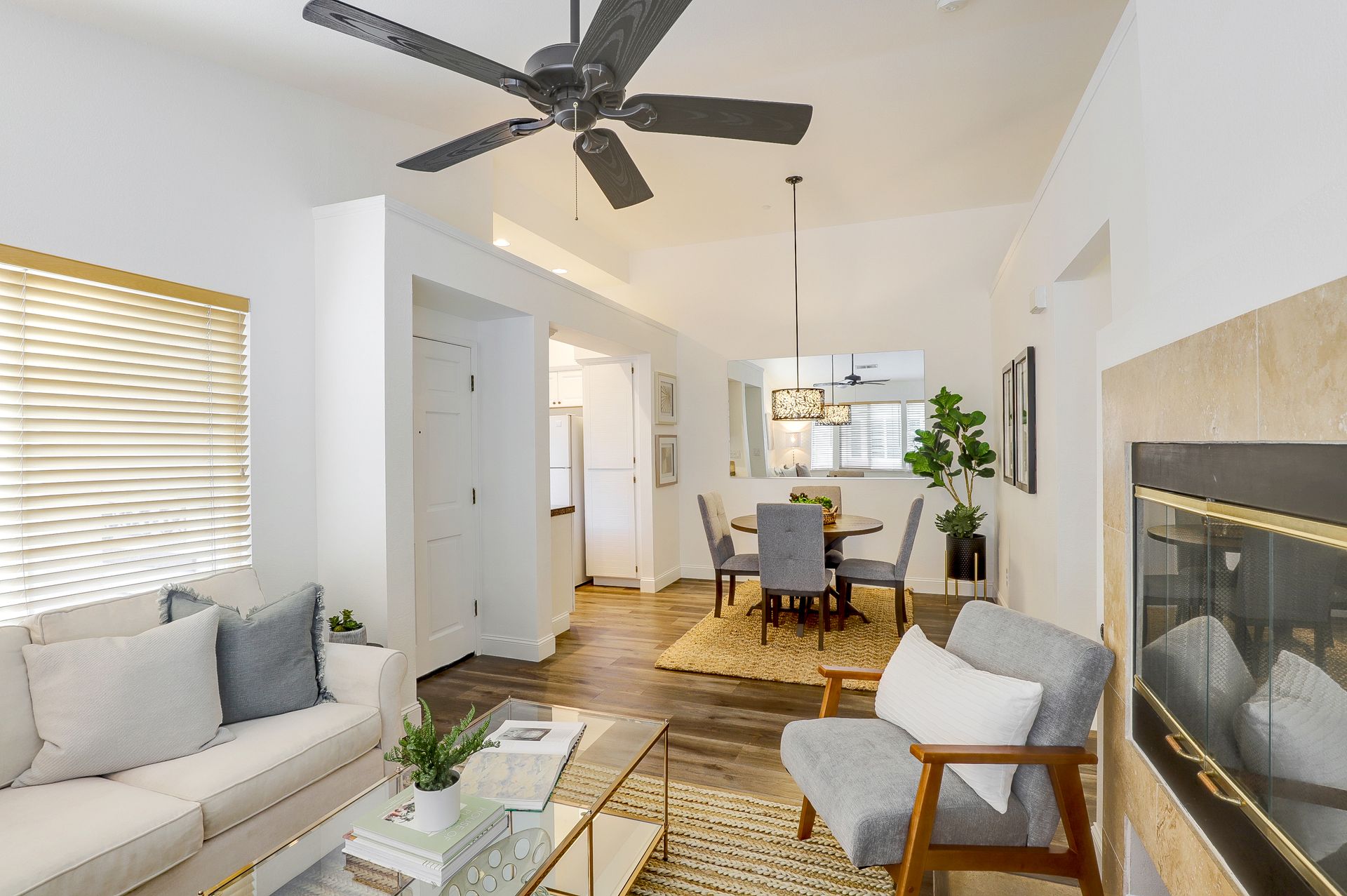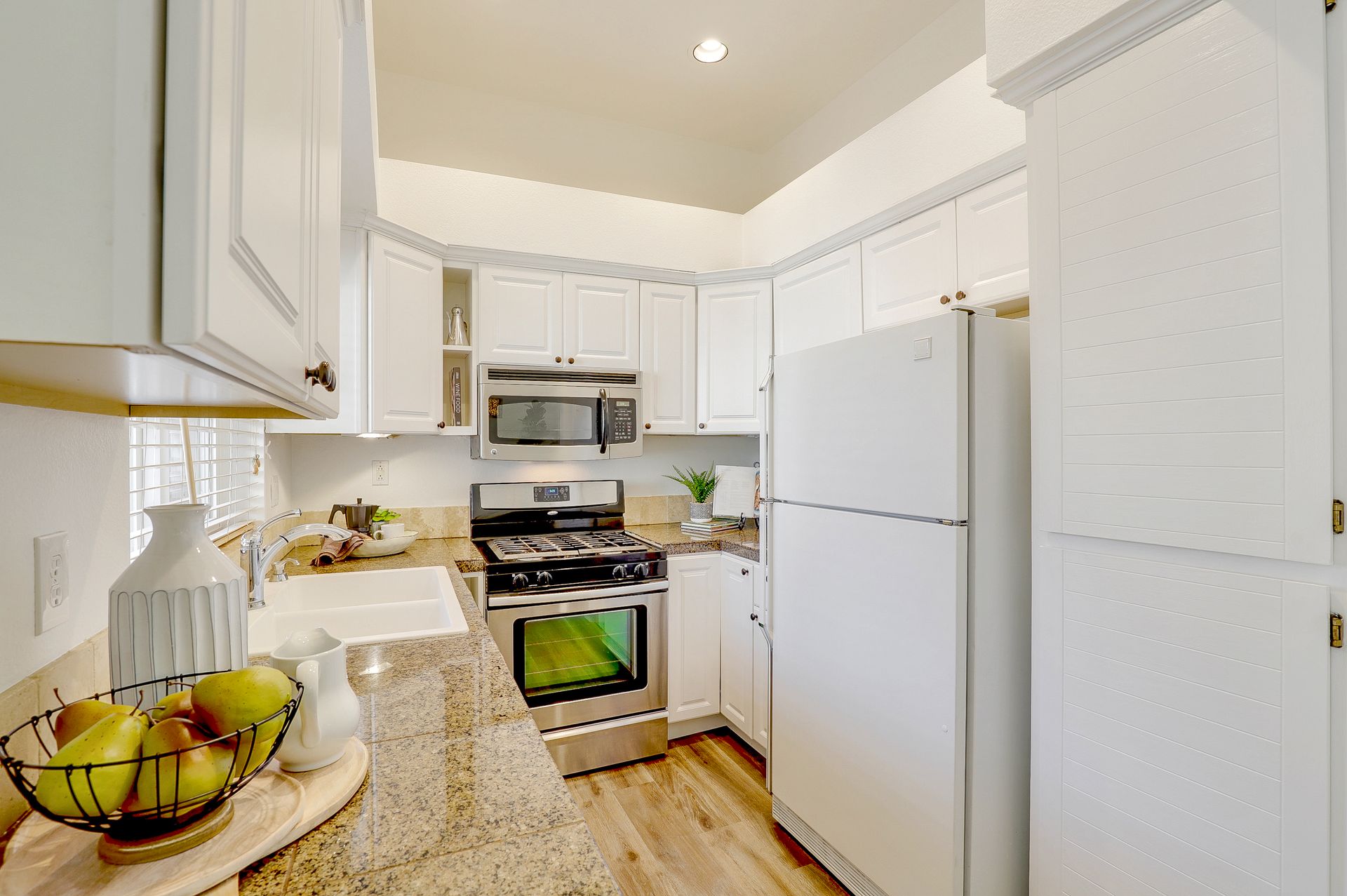 This Lovely condo is Ready for YOU! One level-situated upstairs! 1 Car Garage includes exterior door! Light and Bright! Granite Kitchen includes the refrigerator, Beautiful Newer Flooring, High Ceilings, Newer Washer/Dryer! Nice fireplace in the Family room! Super Location for Commuting, Shopping, hiking & biking trails, etc. Nice patio at the entry. Located in California Maison Development which includes many amenities.