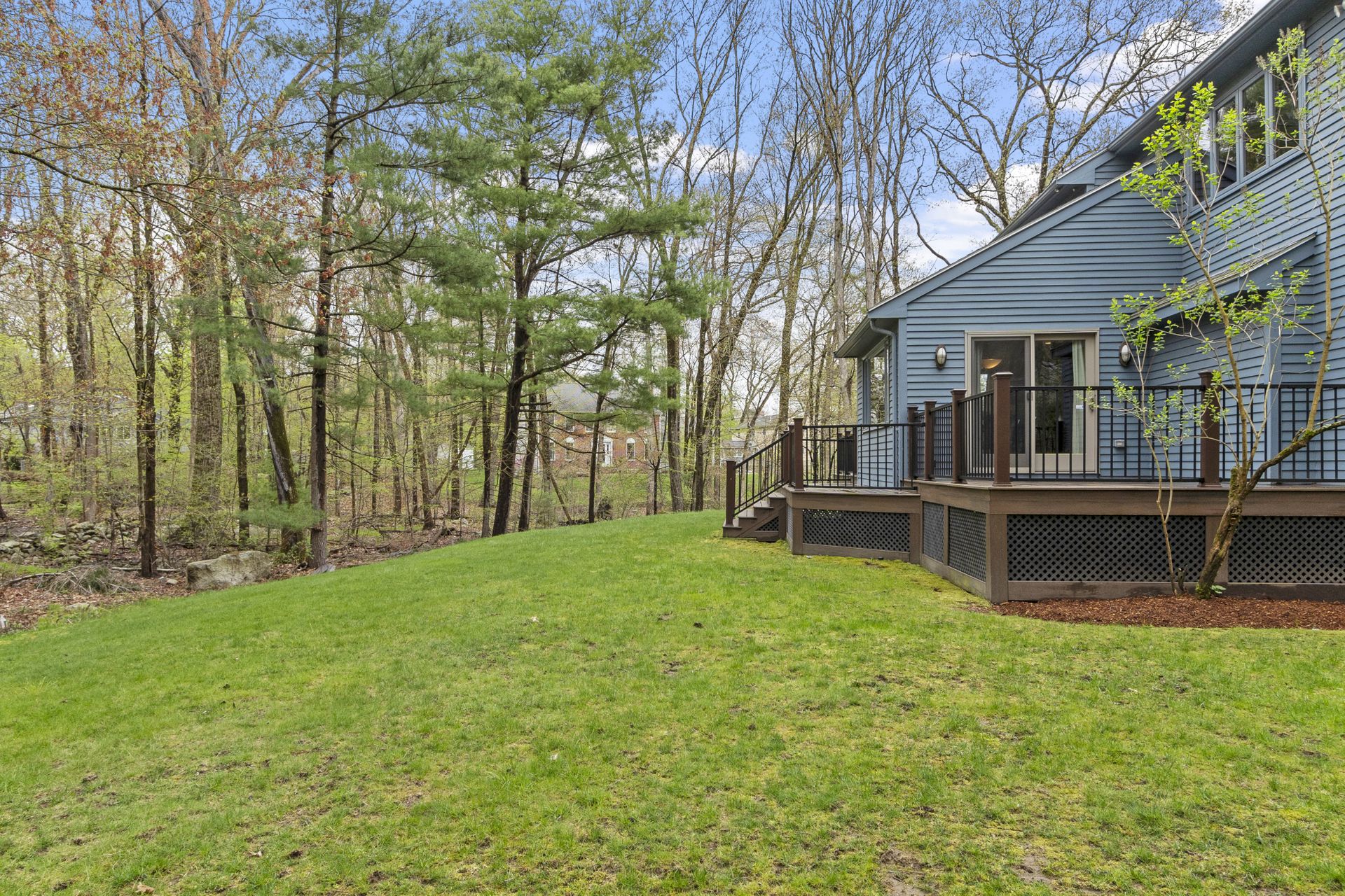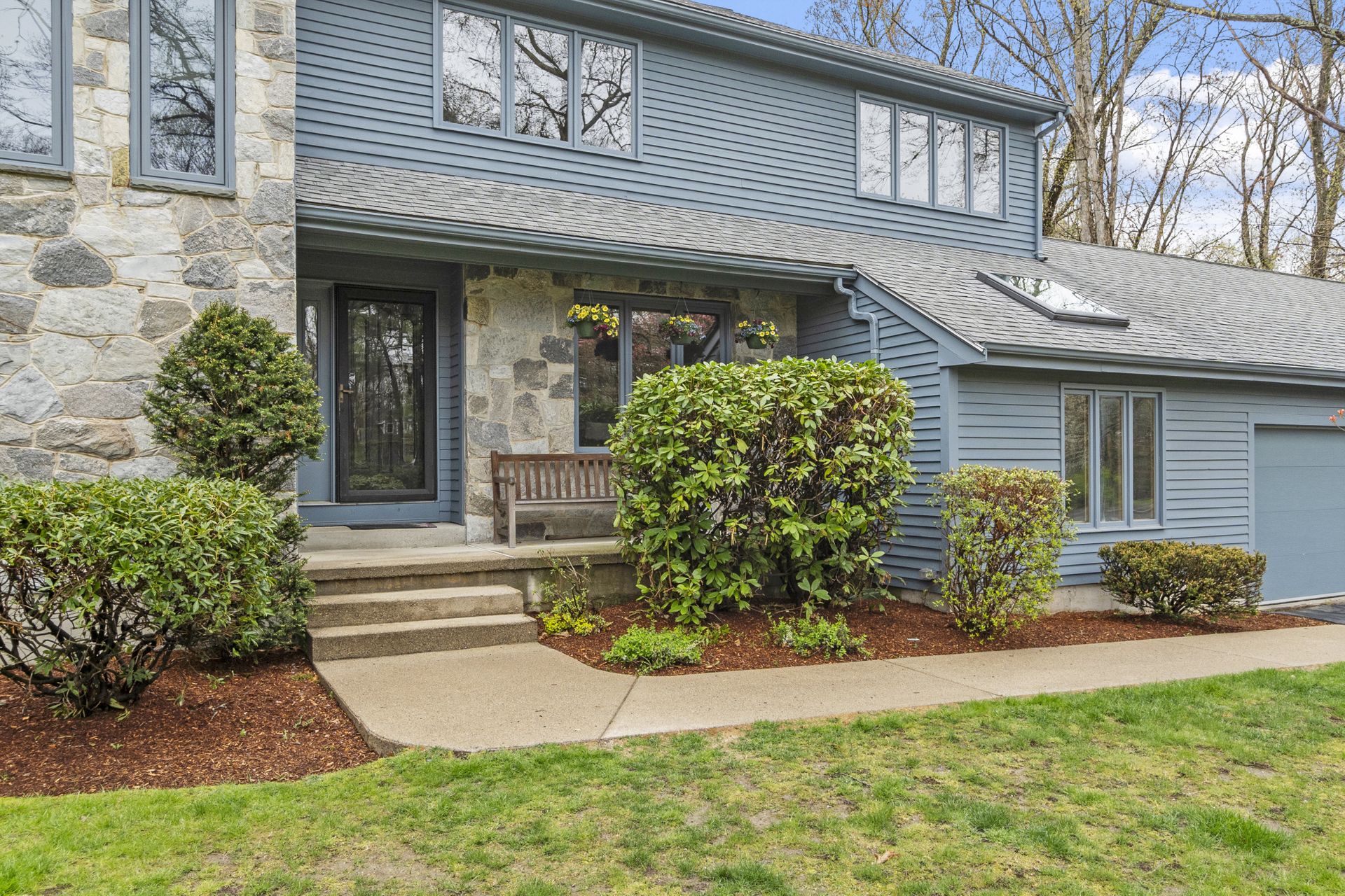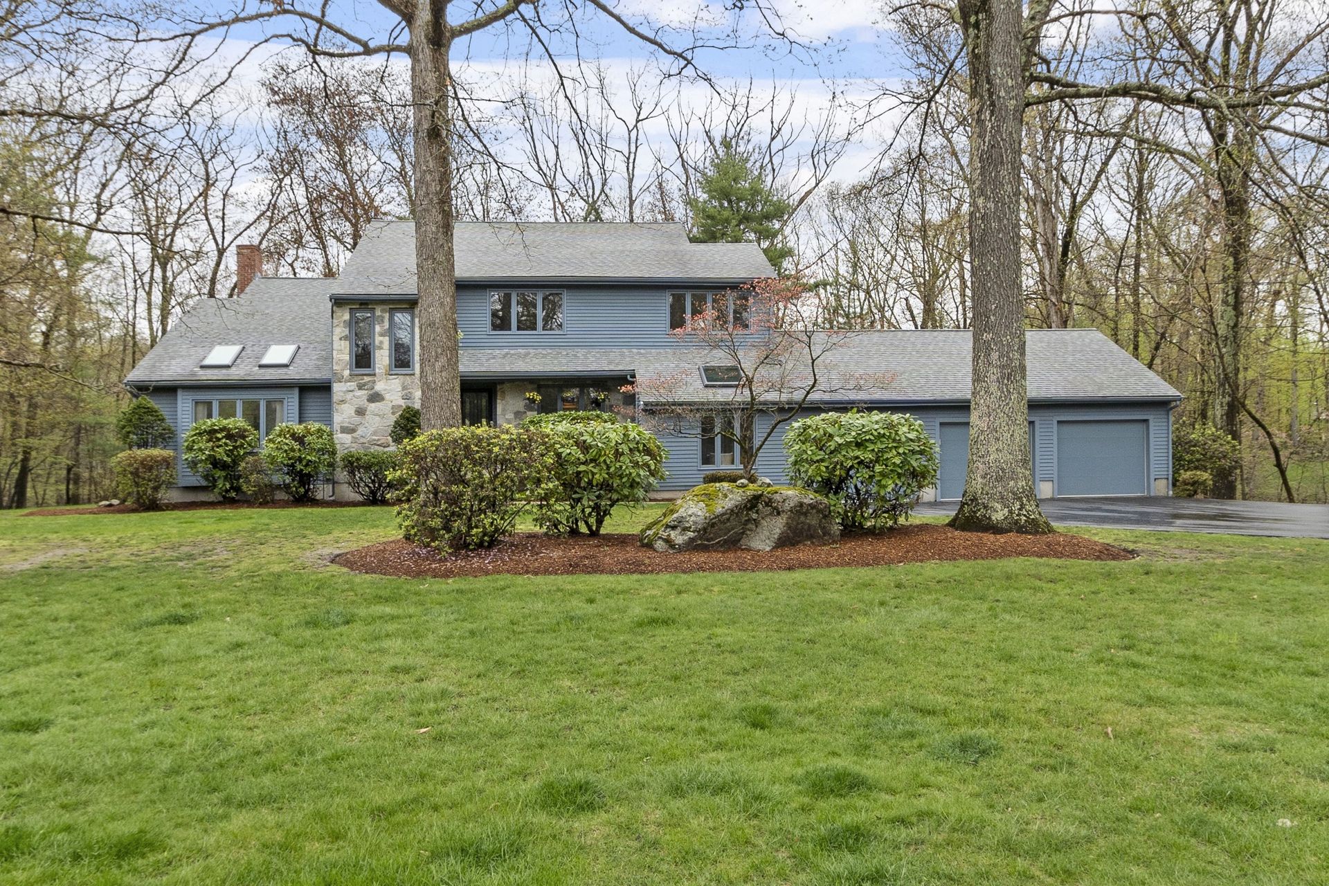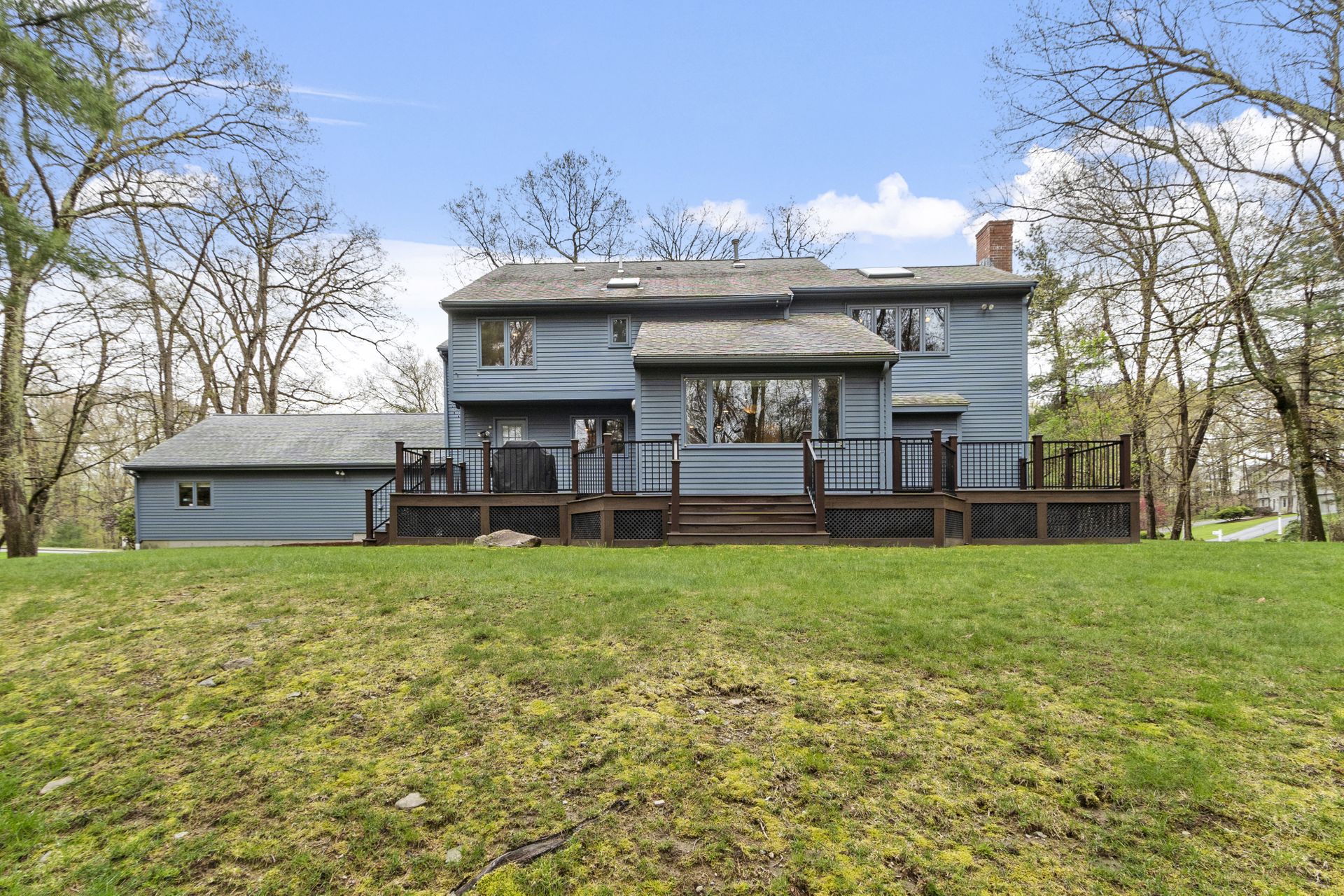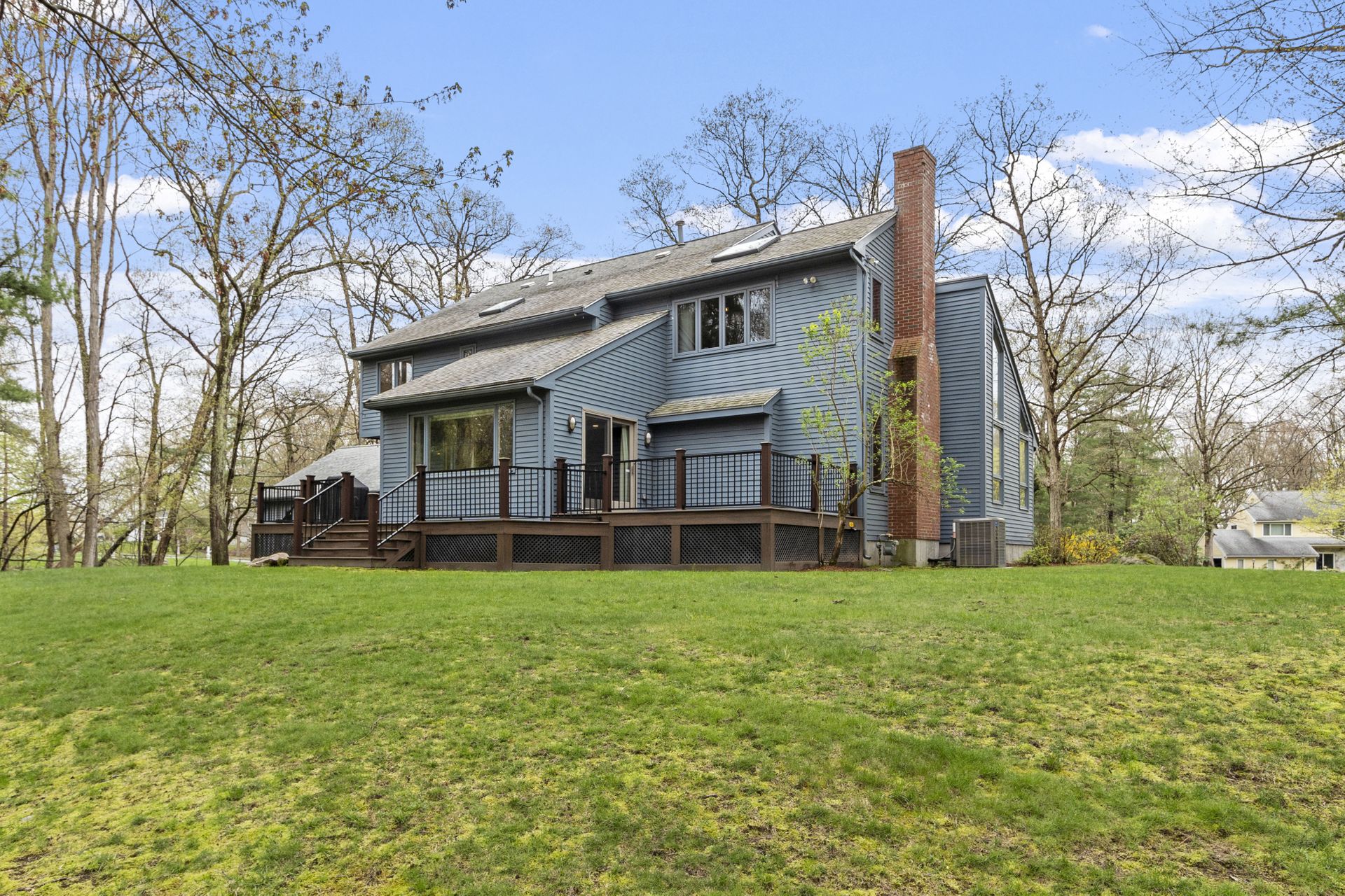 Experience elegance in this stunning Contemporary, boasting luxurious living spaces, three-car garages, and a picturesque acre of manicured grounds. Nestled in a coveted cul-de-sac neighborhood, this home exudes a sense of spaciousness, airiness, and modernity. Its remodeled kitchen, with a sun-drenched breakfast room, overlooks the backyard and an inviting wrap-around deck, perfect for outside leisure. The captivating stone fireplace in the Family Room is complemented by built-ins. A vaulted ceiling graces the formal Living Room, surrounded by expansive windows. The first floor hosts a dining room for entertaining, along with a skylit study adaptable to a cozy den or home office. The seamless layout extends to the upper level, where you'll find a sizeable primary bedroom and three generous bedrooms, each offering high ceilings and ample closet space. The expansive finished basement/game room provides additional space for recreation and play, completing this suburban oasis. Love Where You Live!